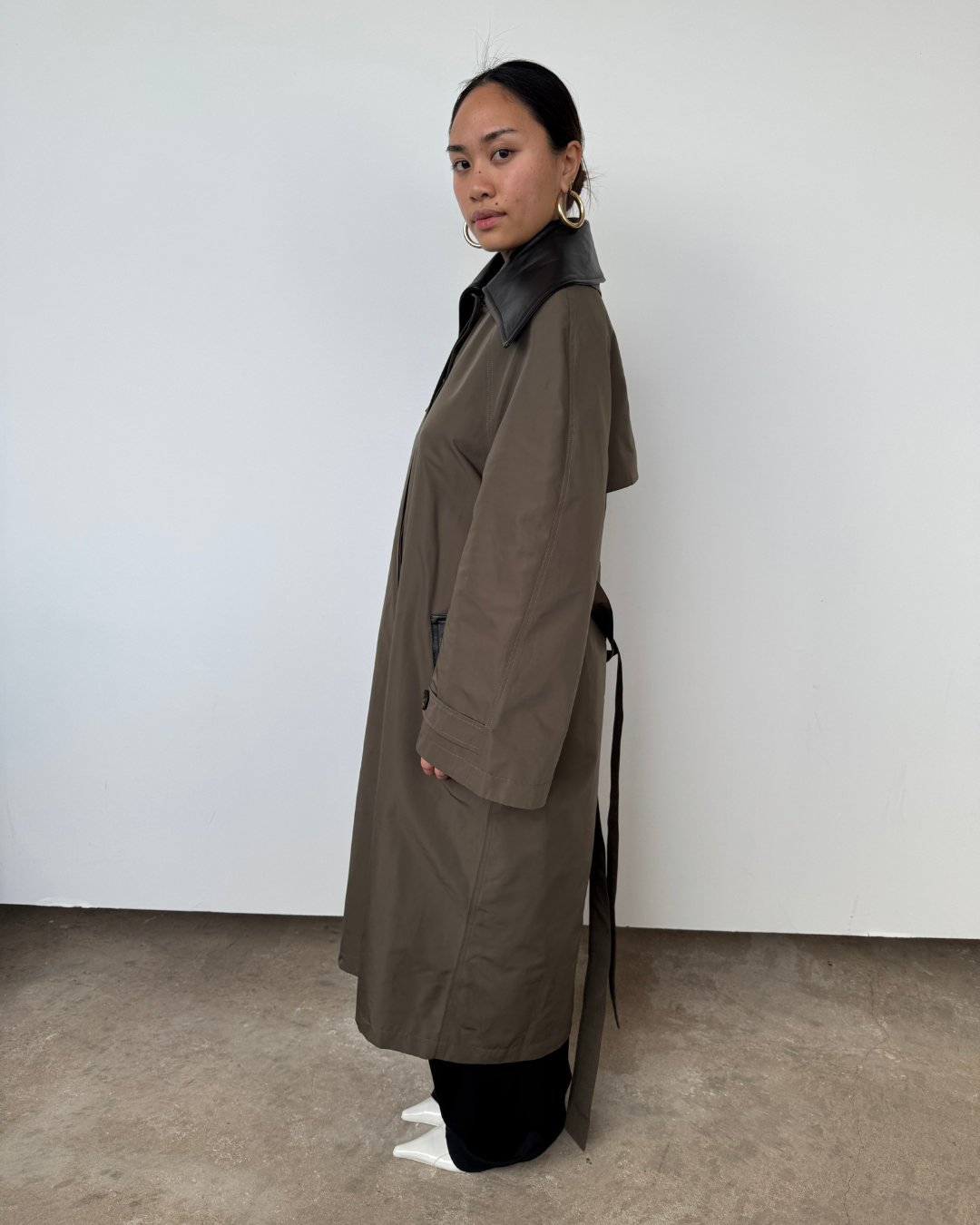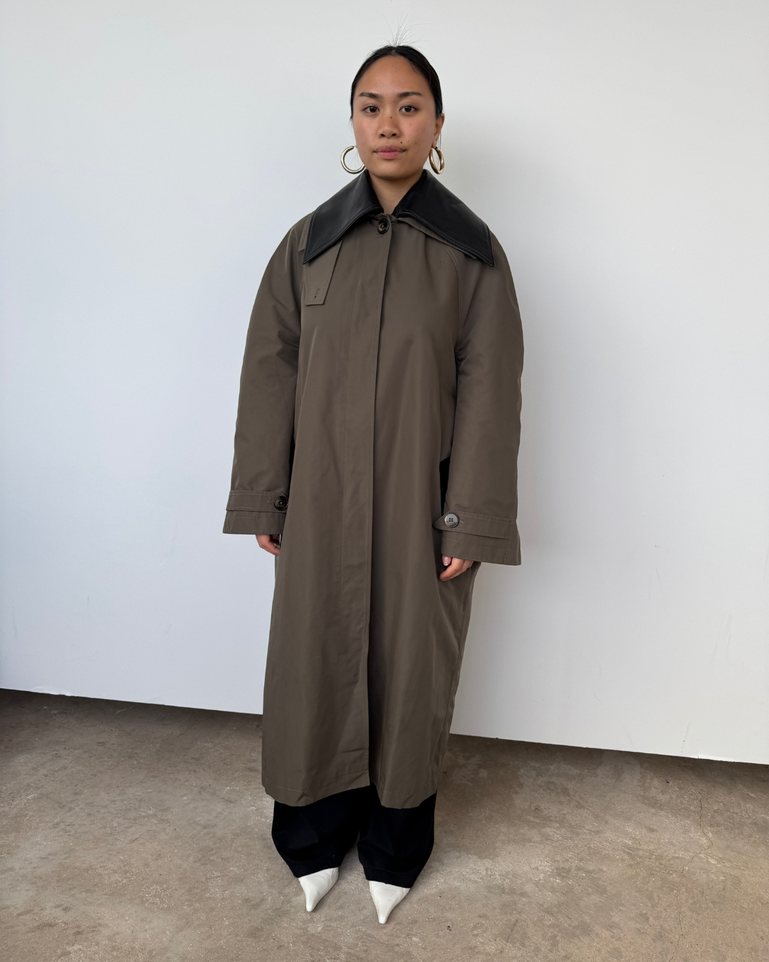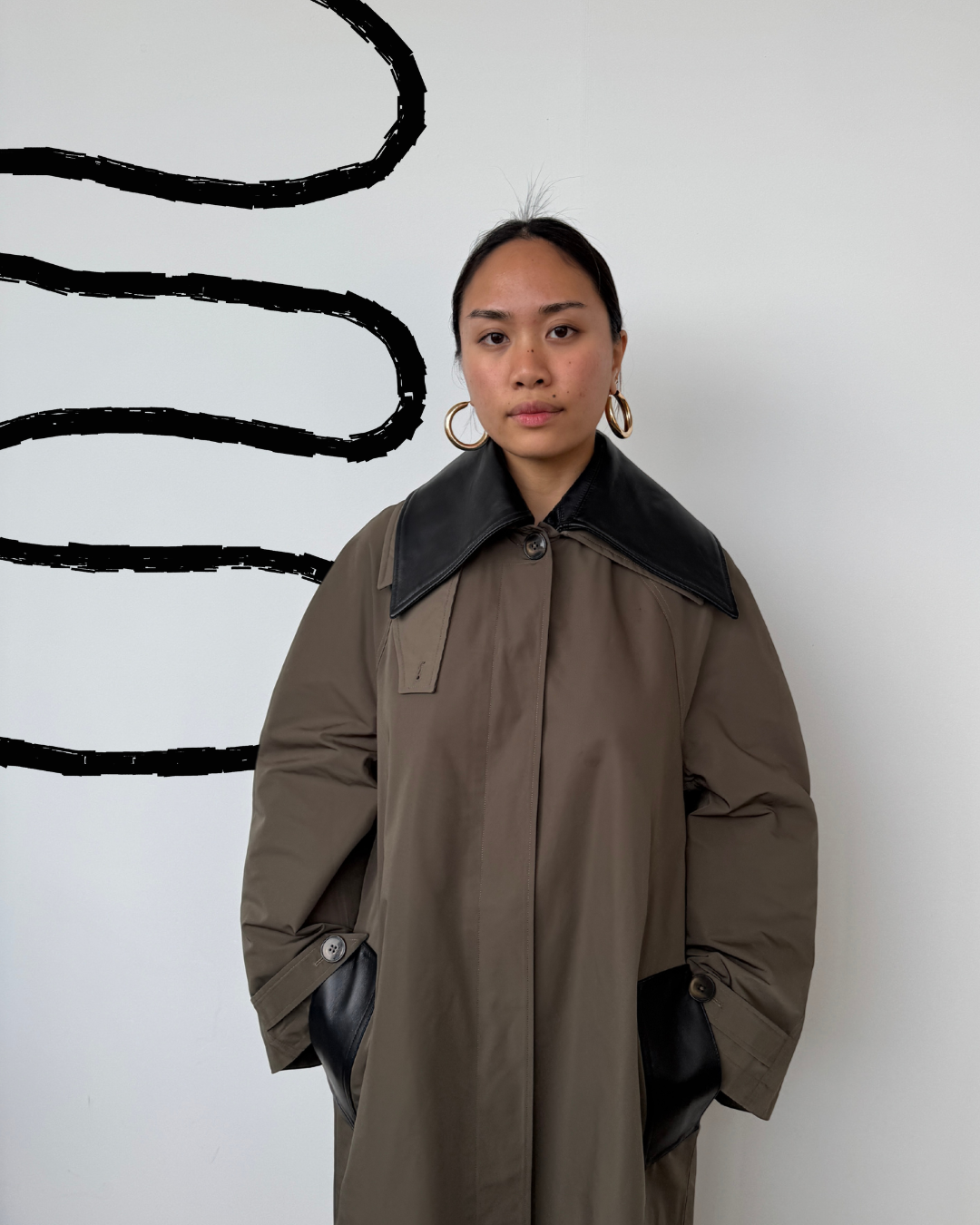 "A raglan sleeve can also soften a broader shoulder in some instances — it's all about the angle of the seamline. Also from Curate & Rotate is a pared-back 16Arlington trench with detachable leather collar that can be tweaked to make it work on your shoulder line (£349 on sale, curateandrotate.co.uk)."