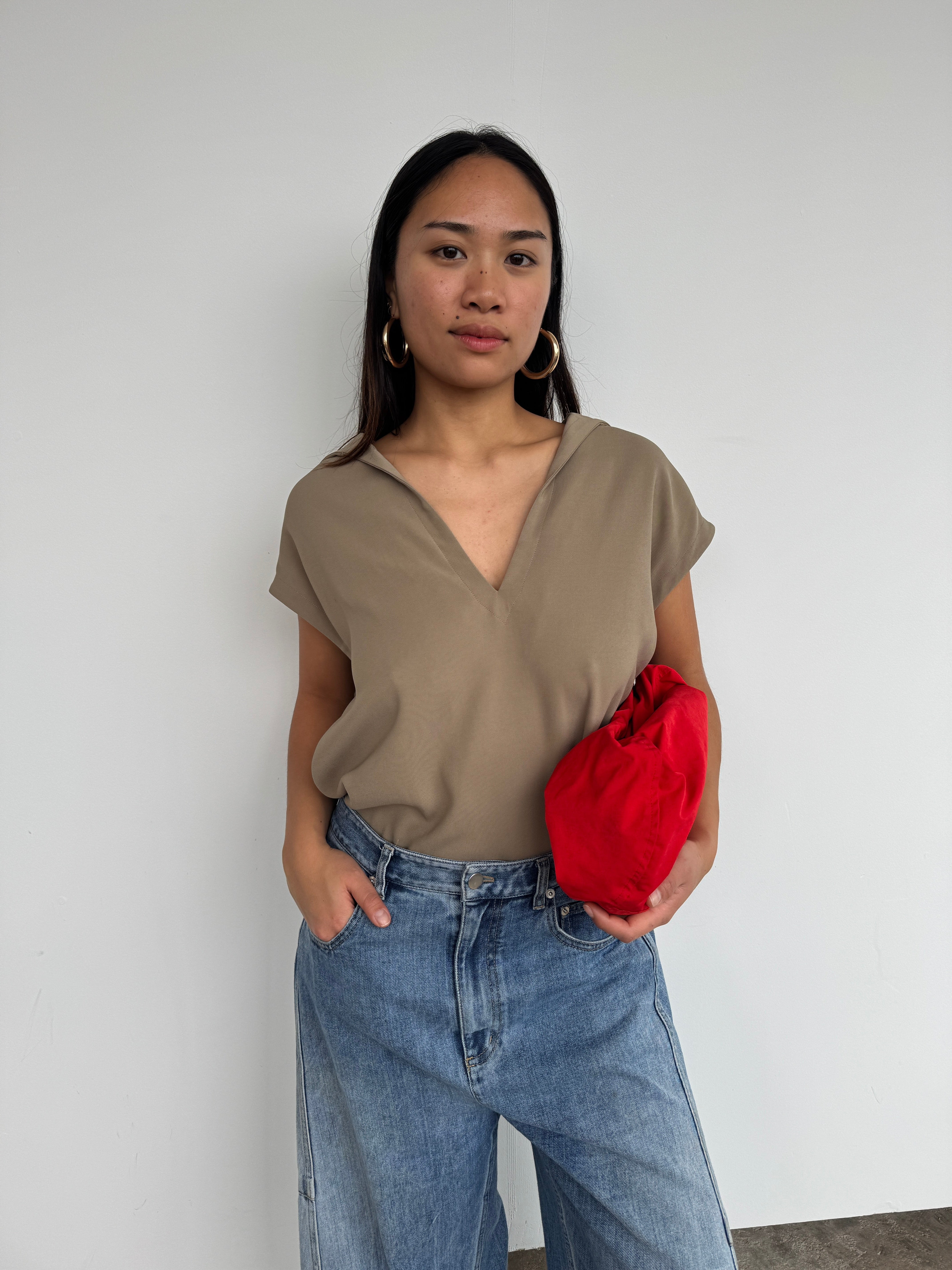 Arket Beige Linen Blend Loose Top | M