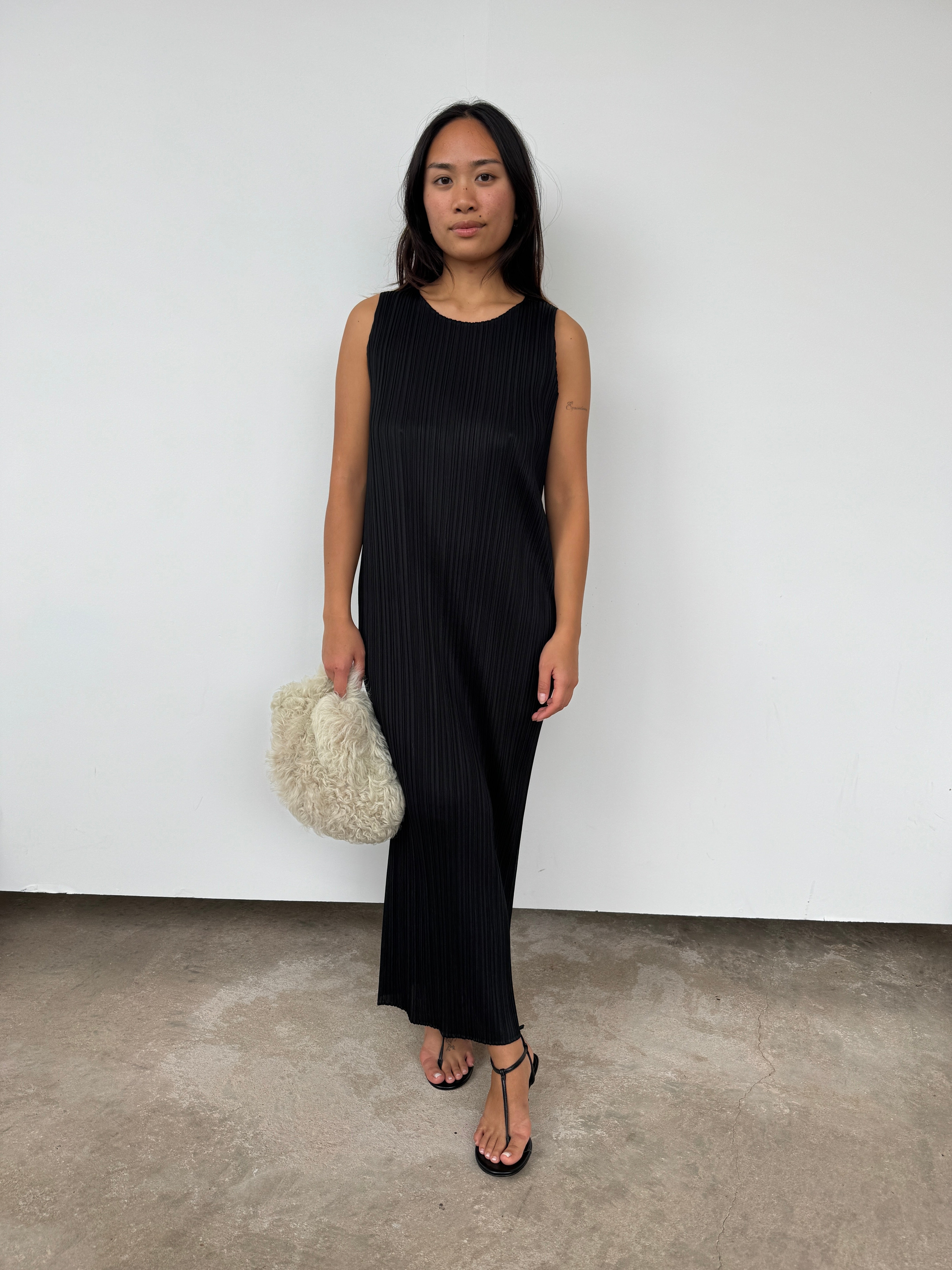 Issey Miyake Pleats Please Black Sleeveless Dress | UK8-10