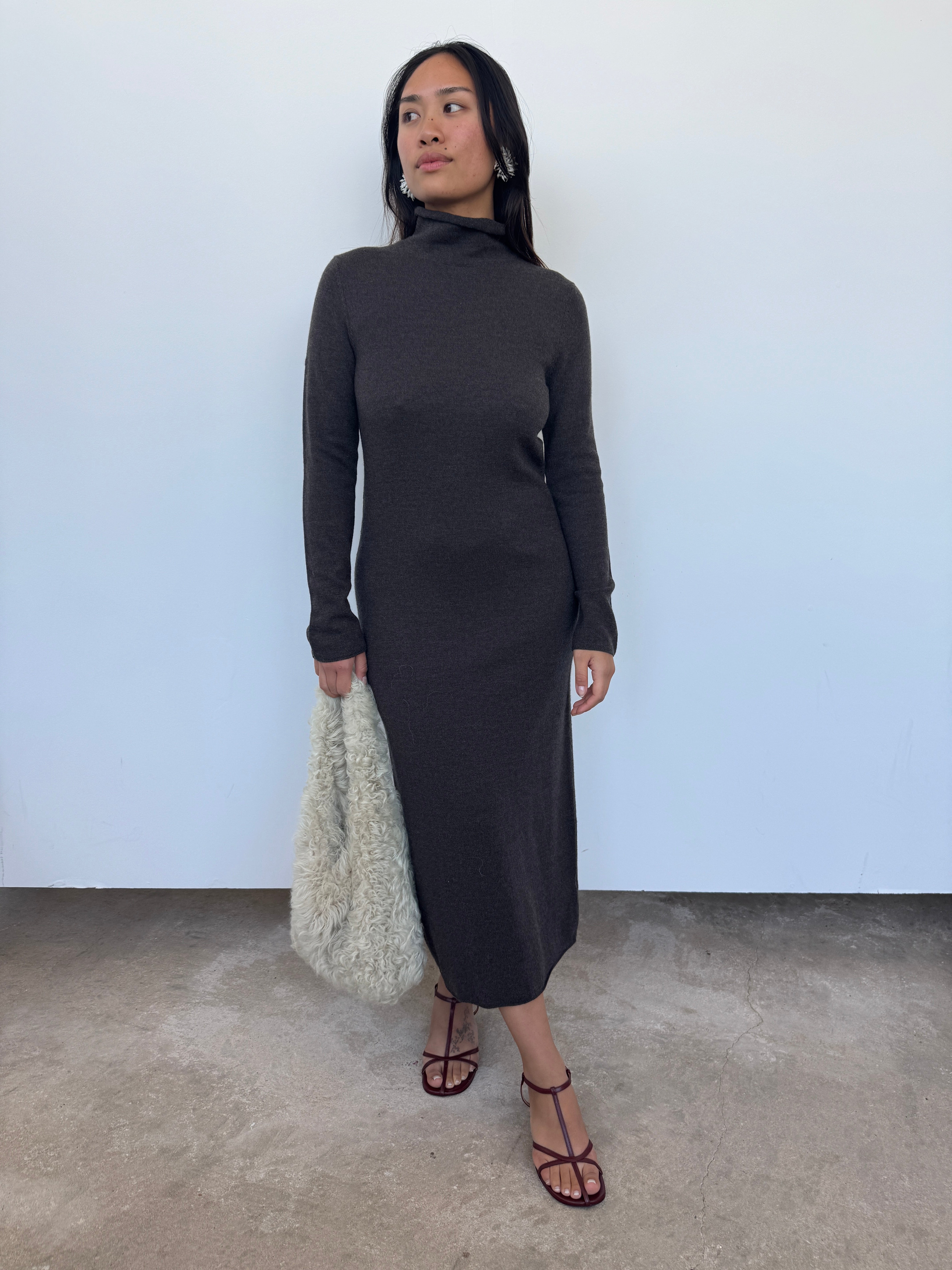 Marcela London Brown Roll Neck Knit Maxi Dress | UK8-12