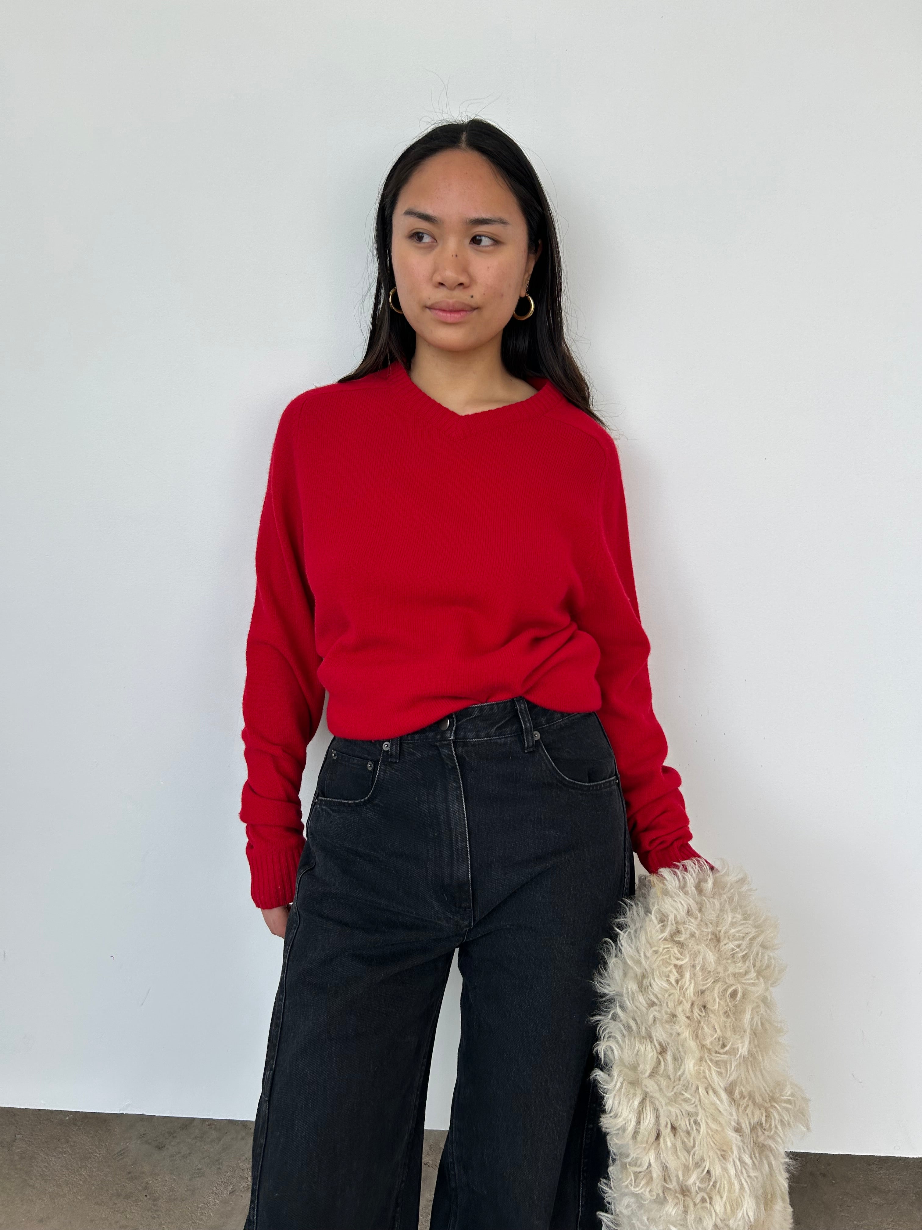 Vintage Jaeger Red V-Neck Wool Jumper | M