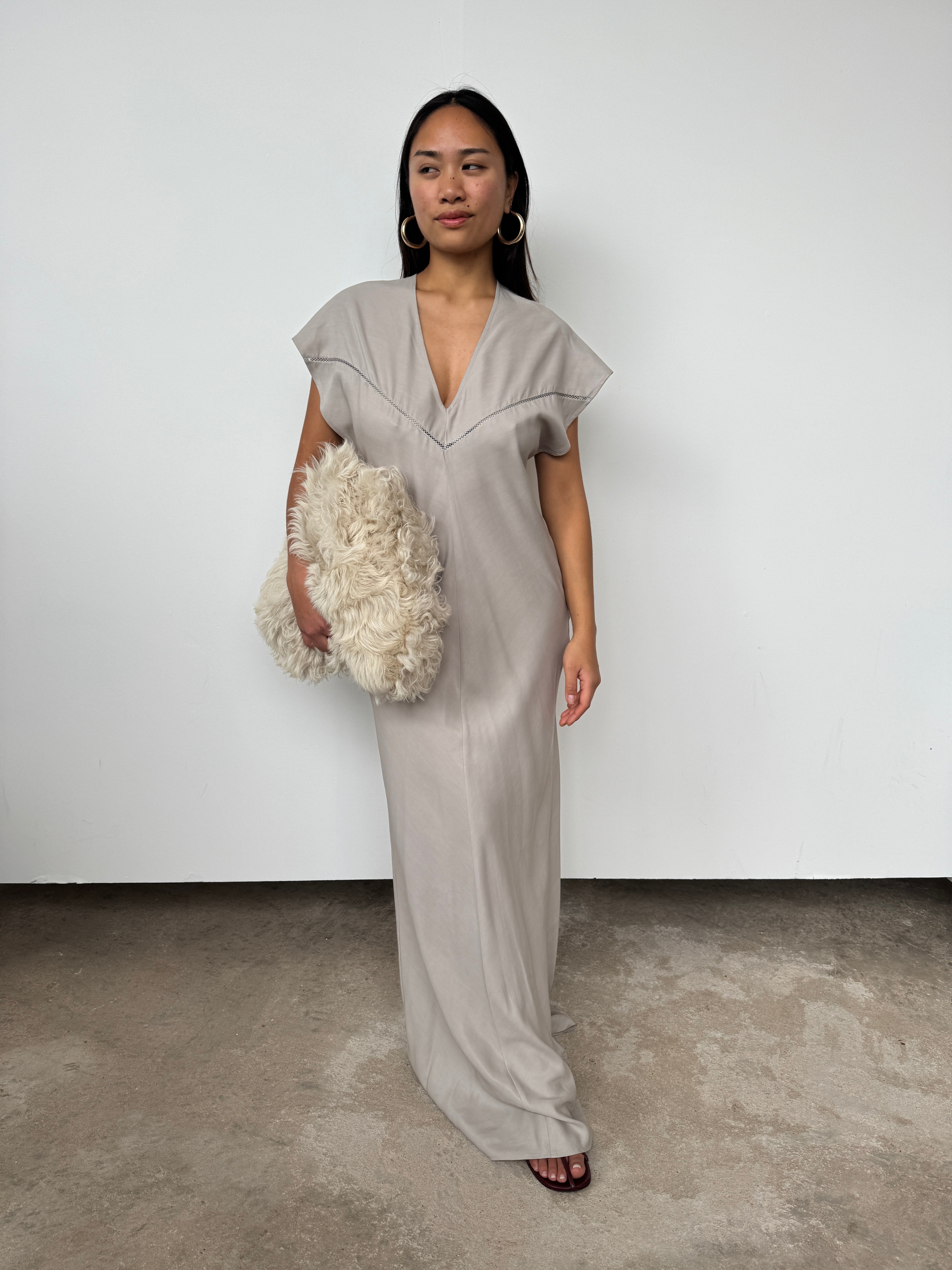 Eudon Choi Misty Grey 'Capri' V-Neck Maxi Dress | UK10 + UK12