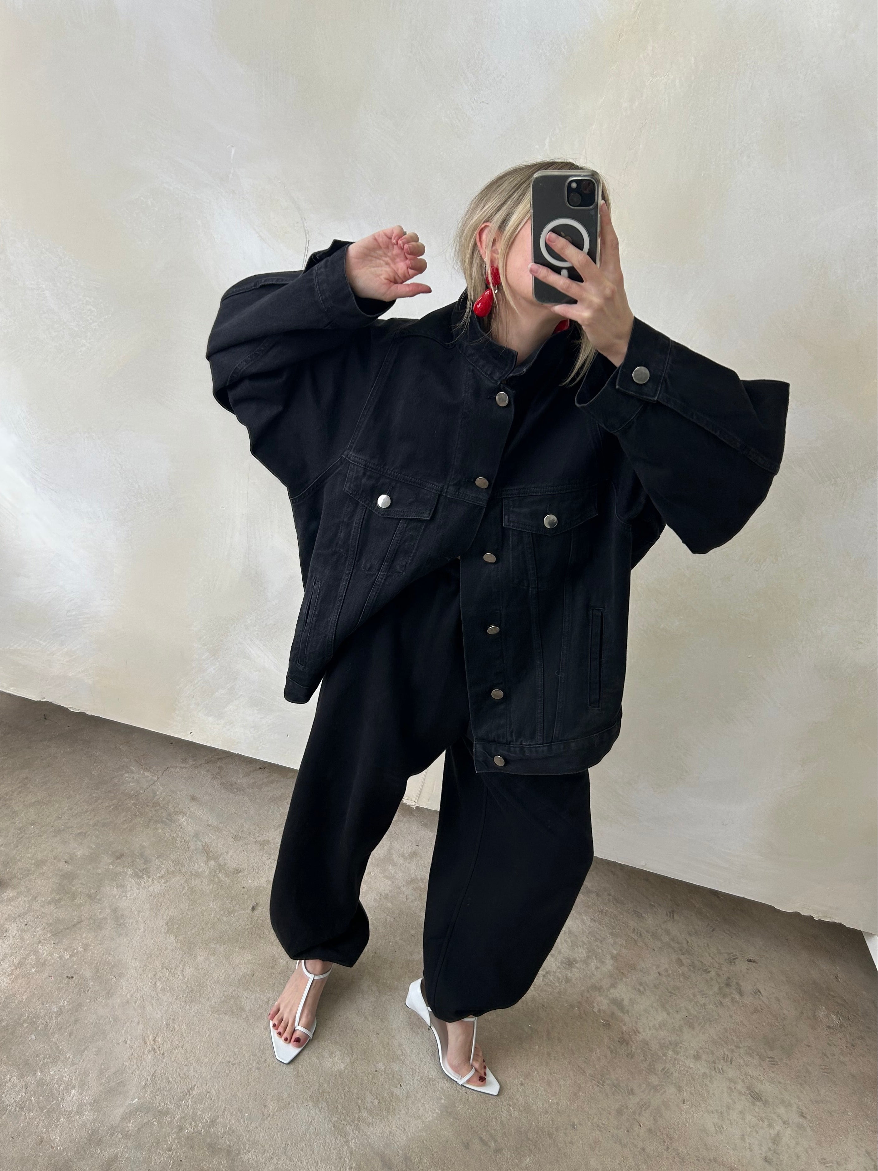 L Cuppini Black Daria Oversized Leather Jacket | M