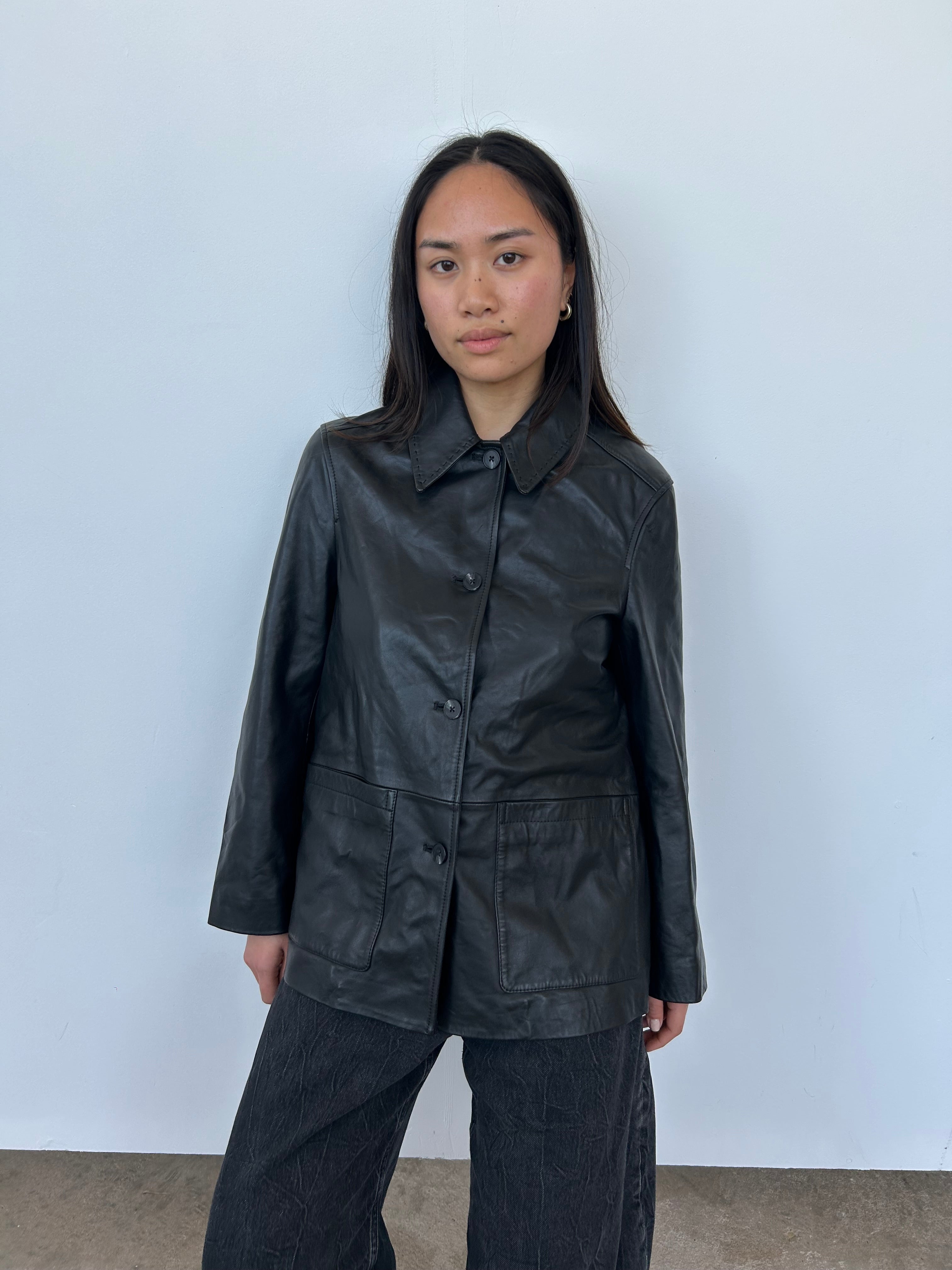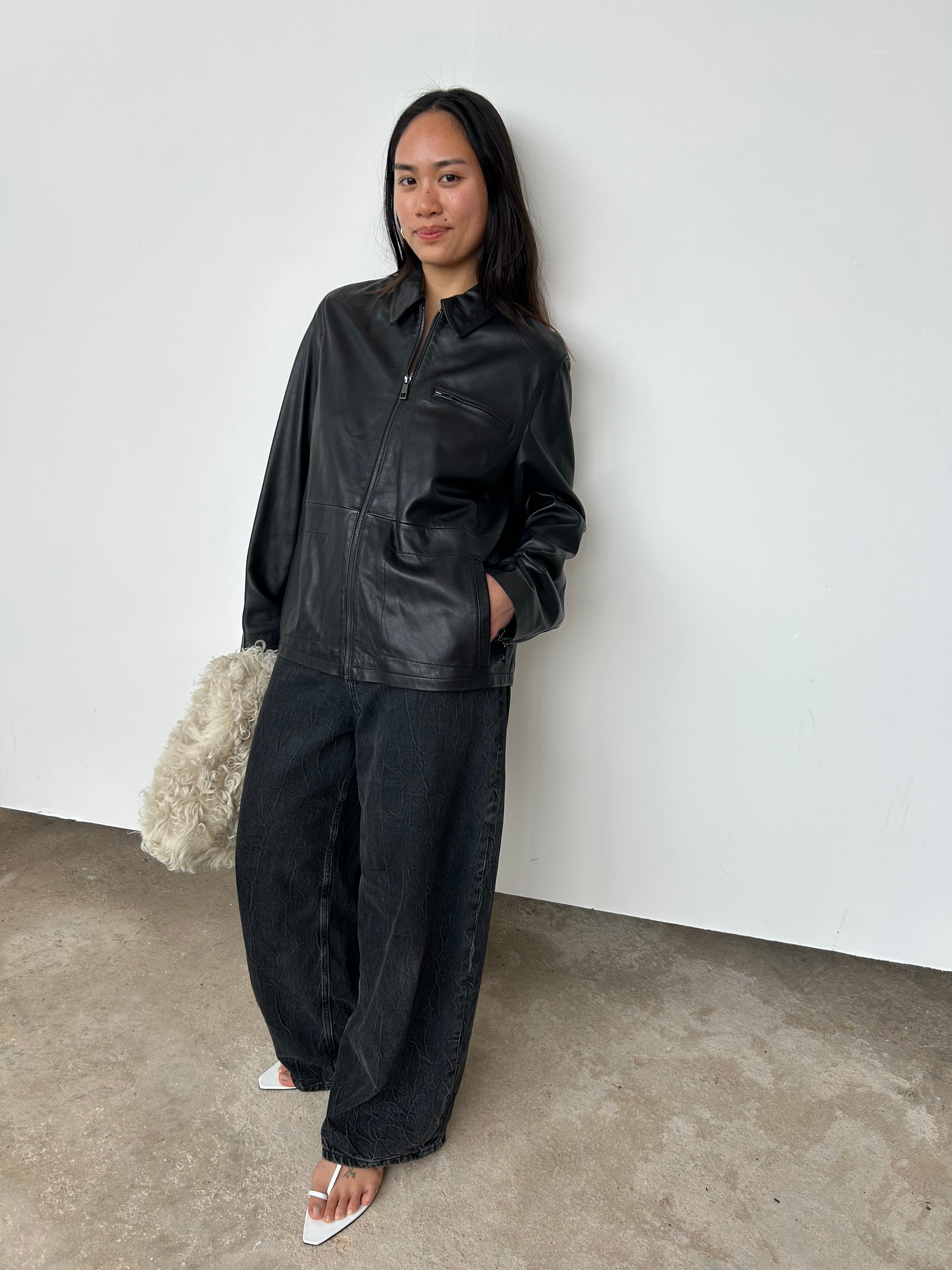 Whistles Black 'Gemma' Bonded Leather Jacket | UK14