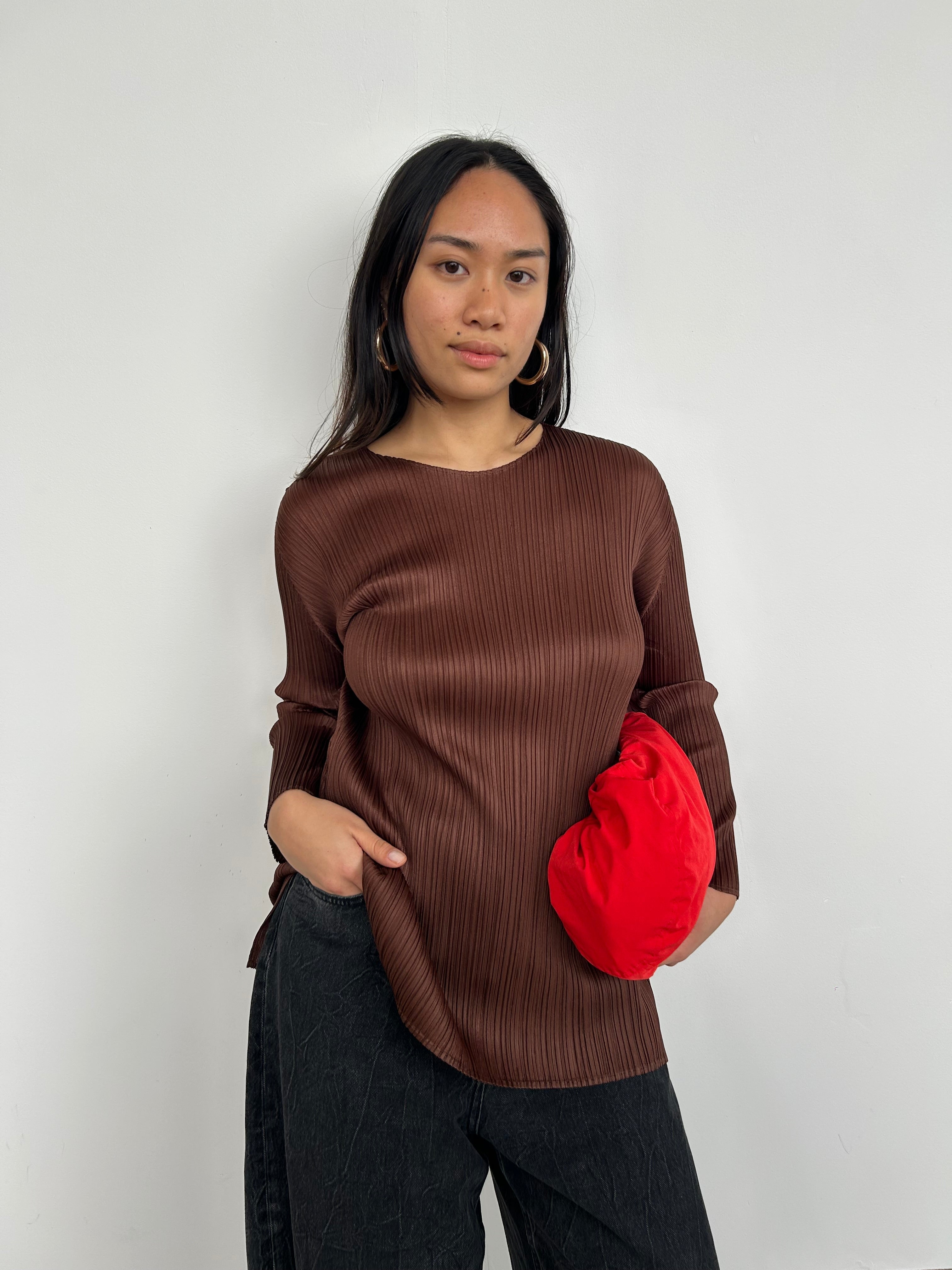 Issey Miyake Pleats Please Brown Long Sleeve Top | UK8-10