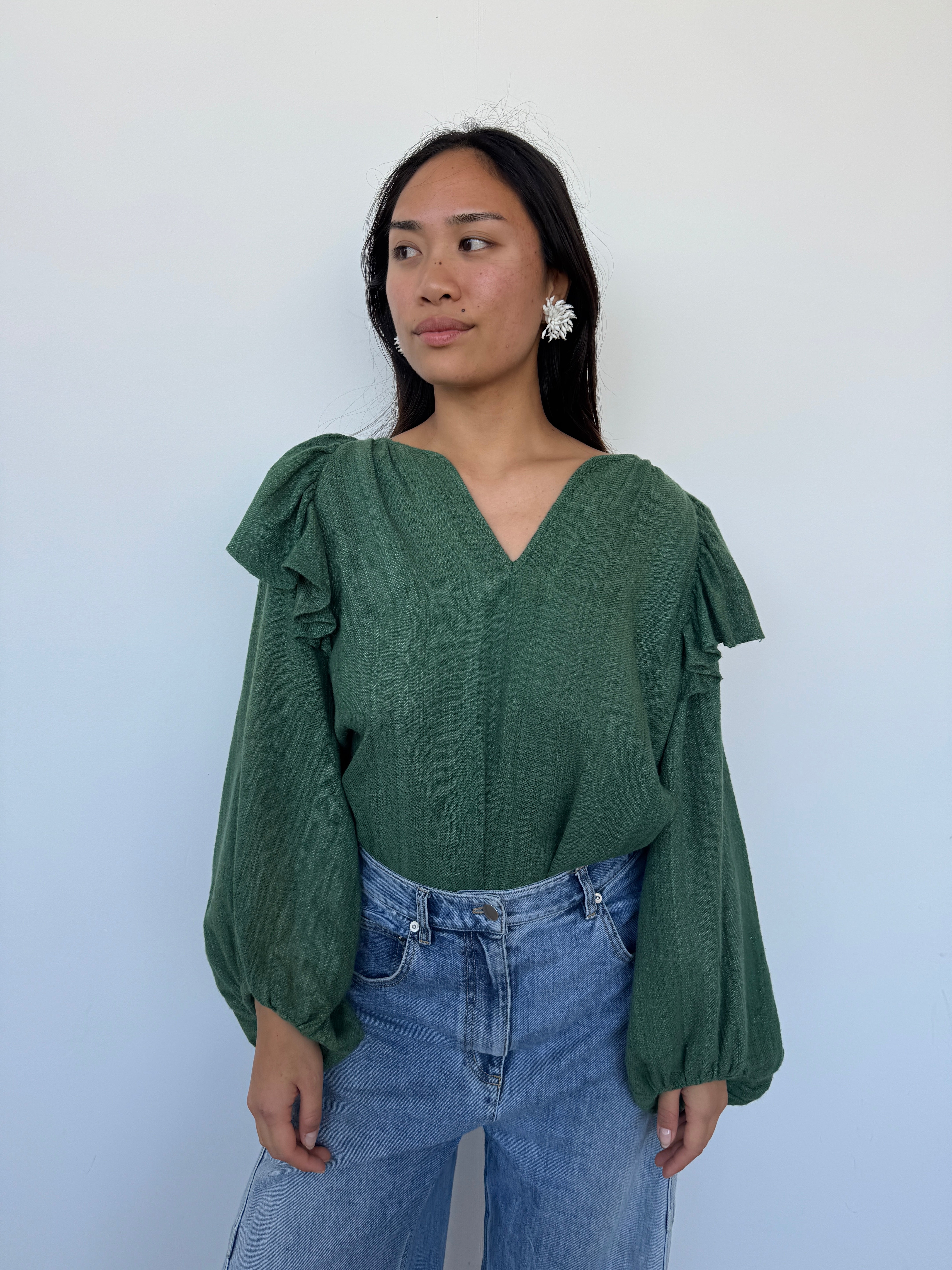 Studio Wylder Forest Green Silk Blouse | O/S