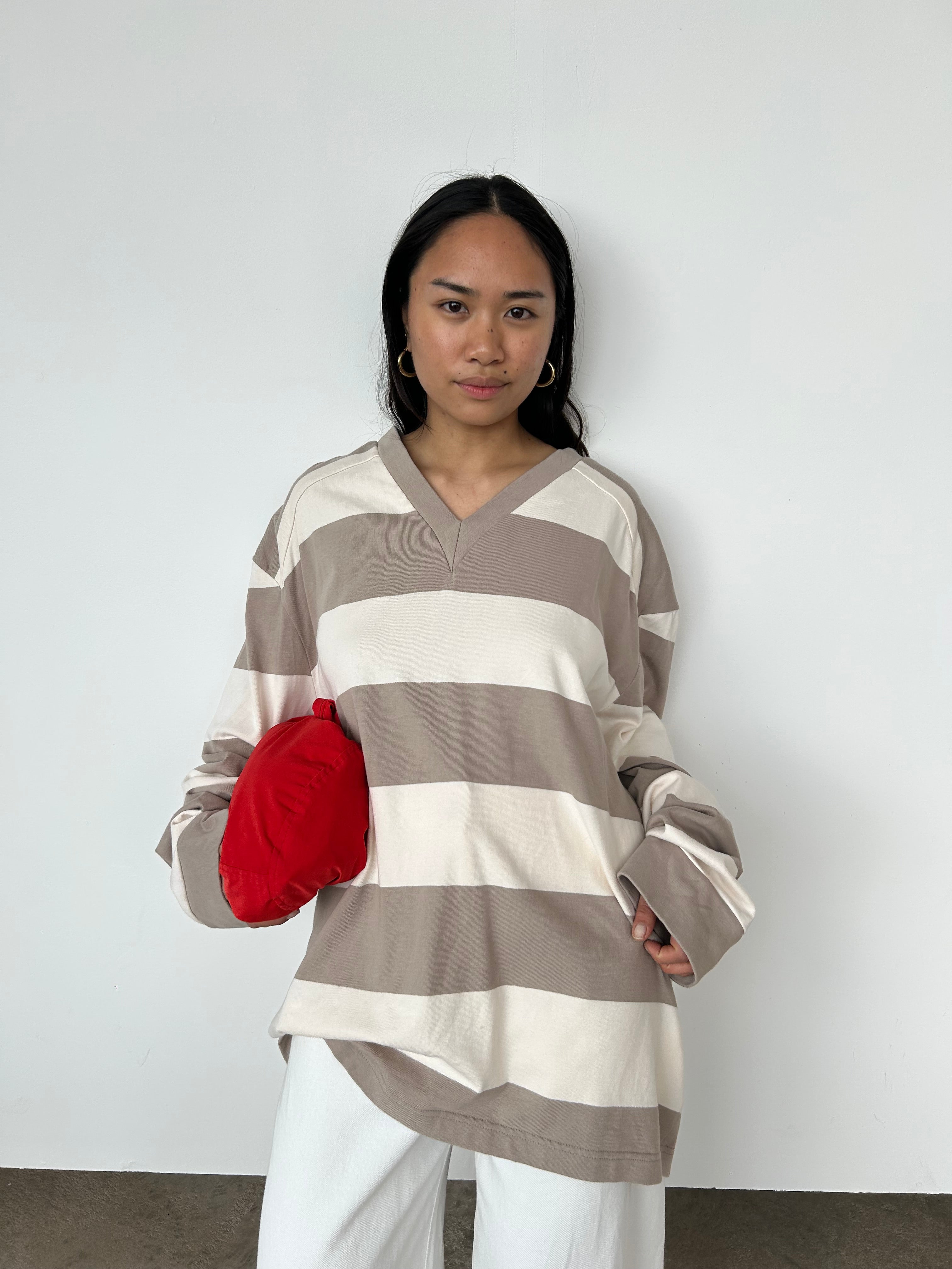Raey Cream Striped Cotton V-Neck Rugby Top | L/XL