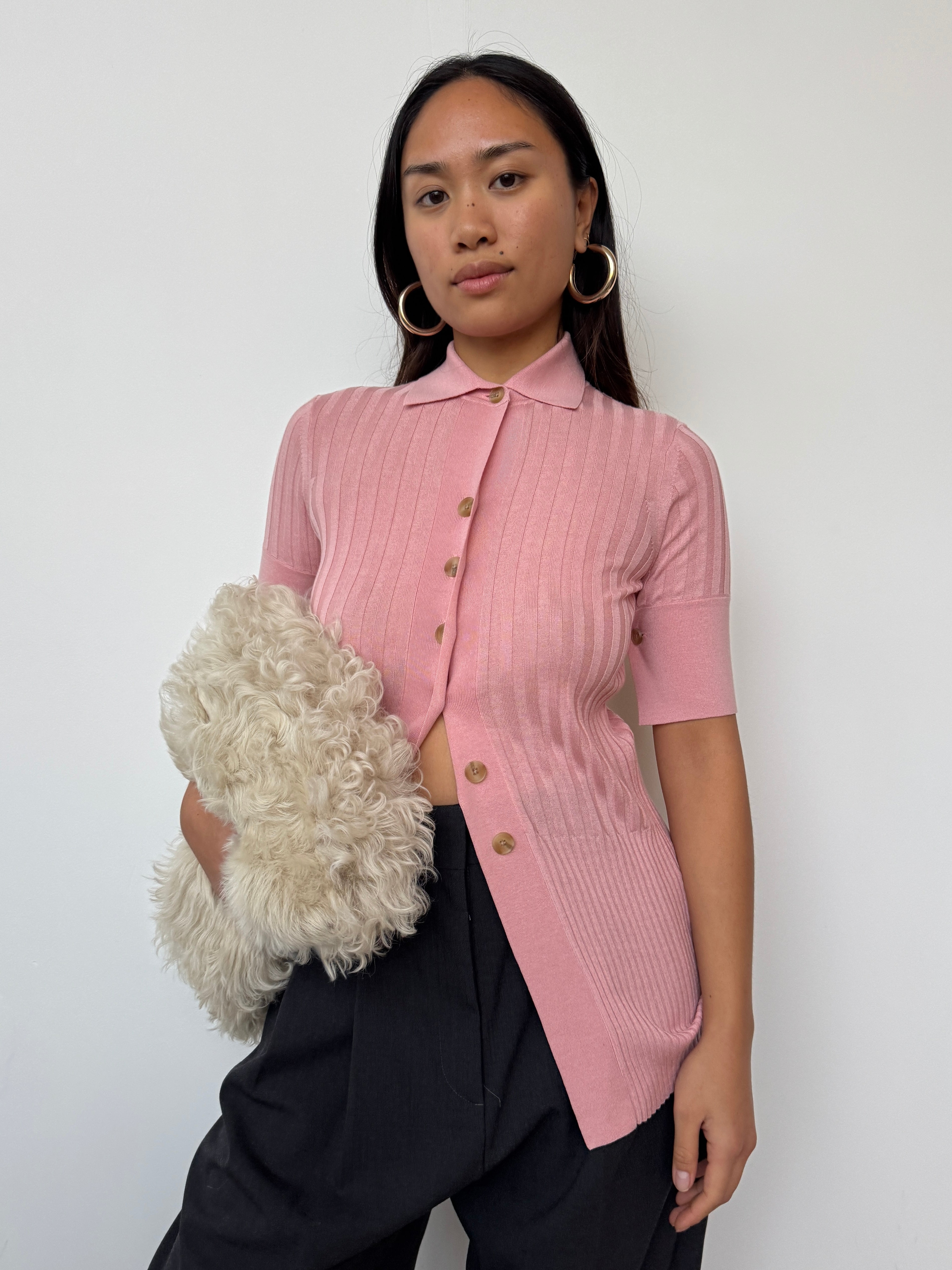 Eudon Choi Pink 'Rod' Knit Polo Sweater | Small
