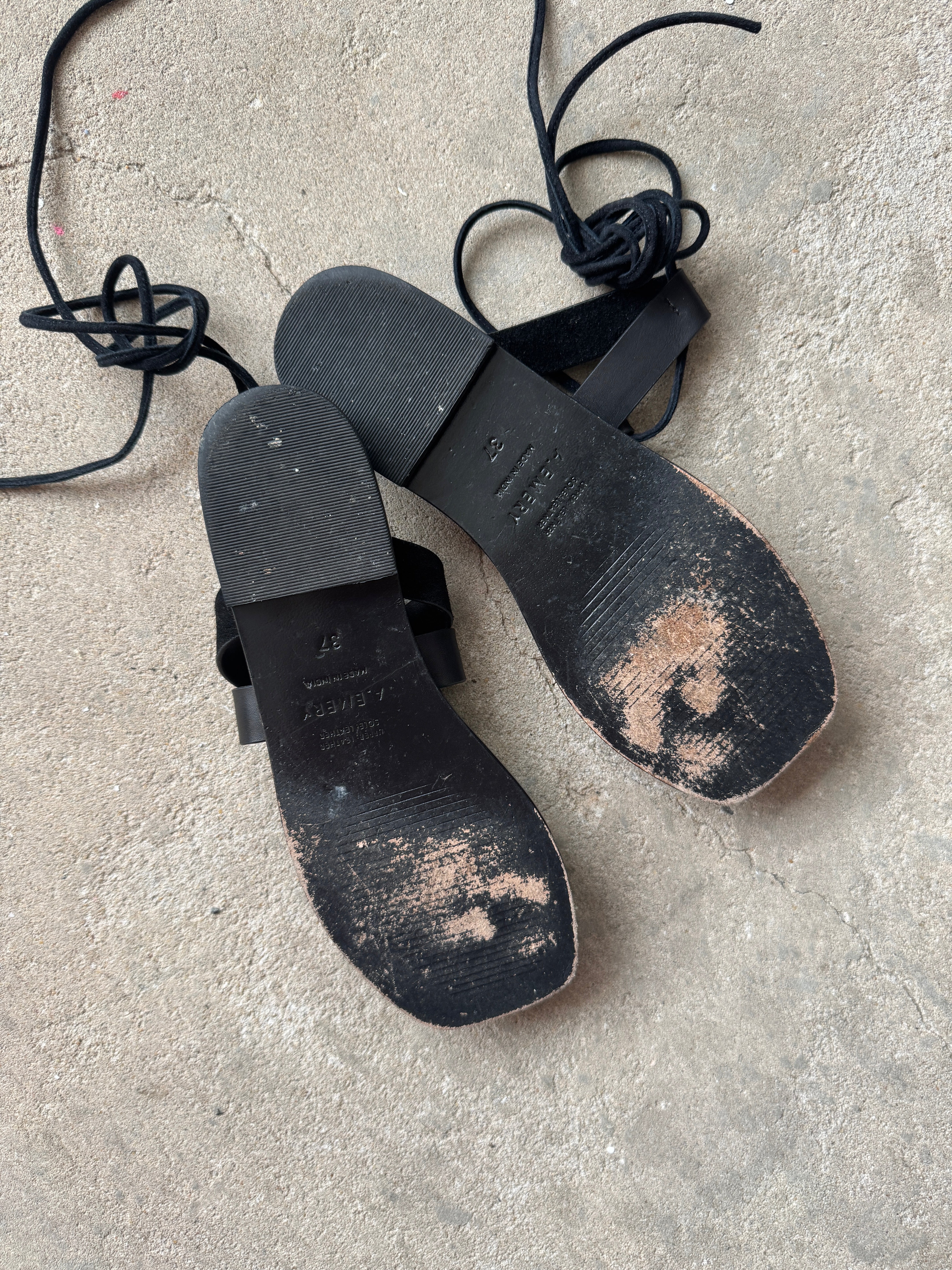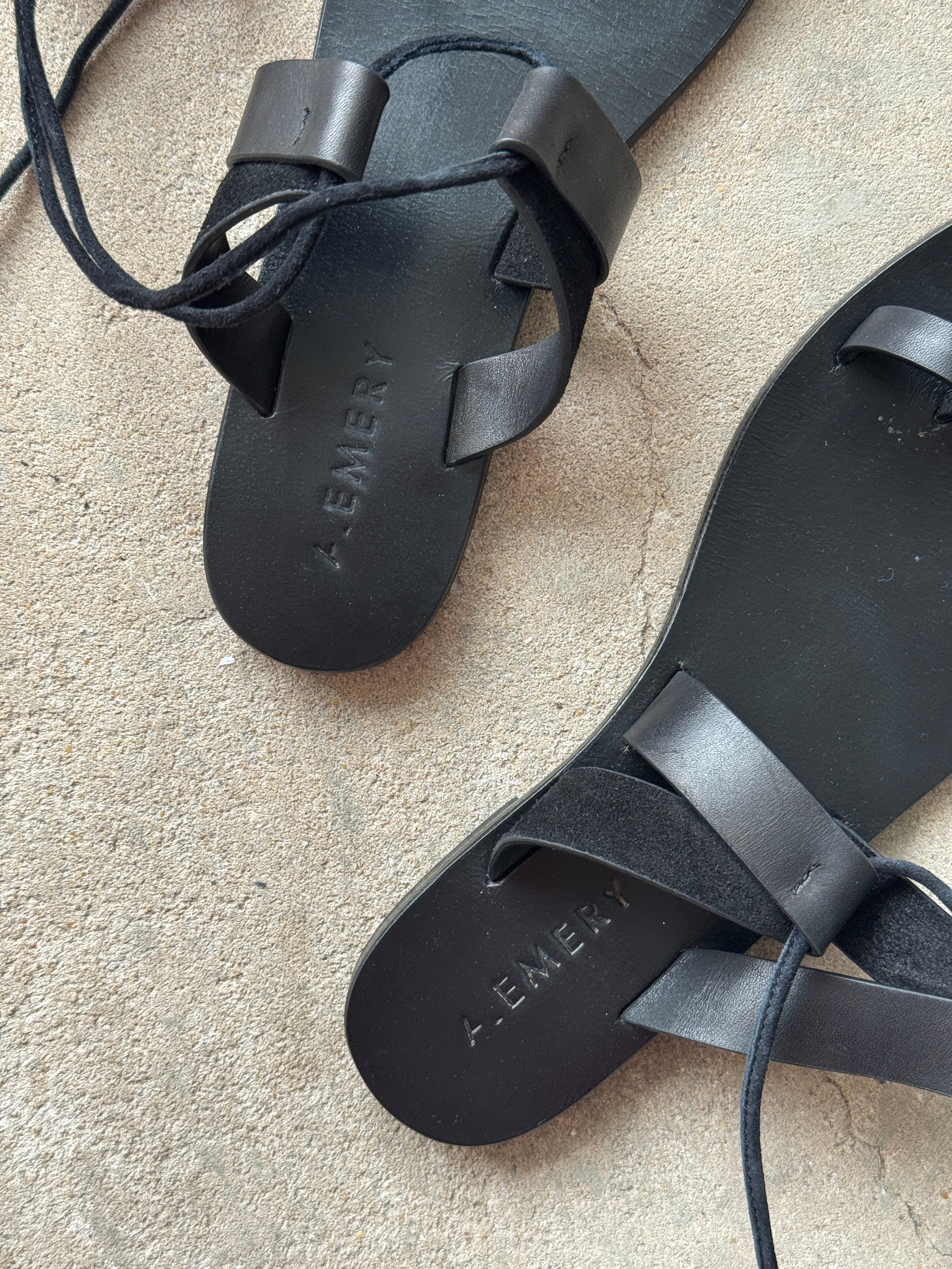 The PAIGE sandal is your new lace up sandal. The toe hold silhouette comfortably secures the foot white all the detail is focused on the ankle. Pairing smooth grain leather and suede for subtle detail. This style is made from full grain leather with leather upper, insole and outsole.