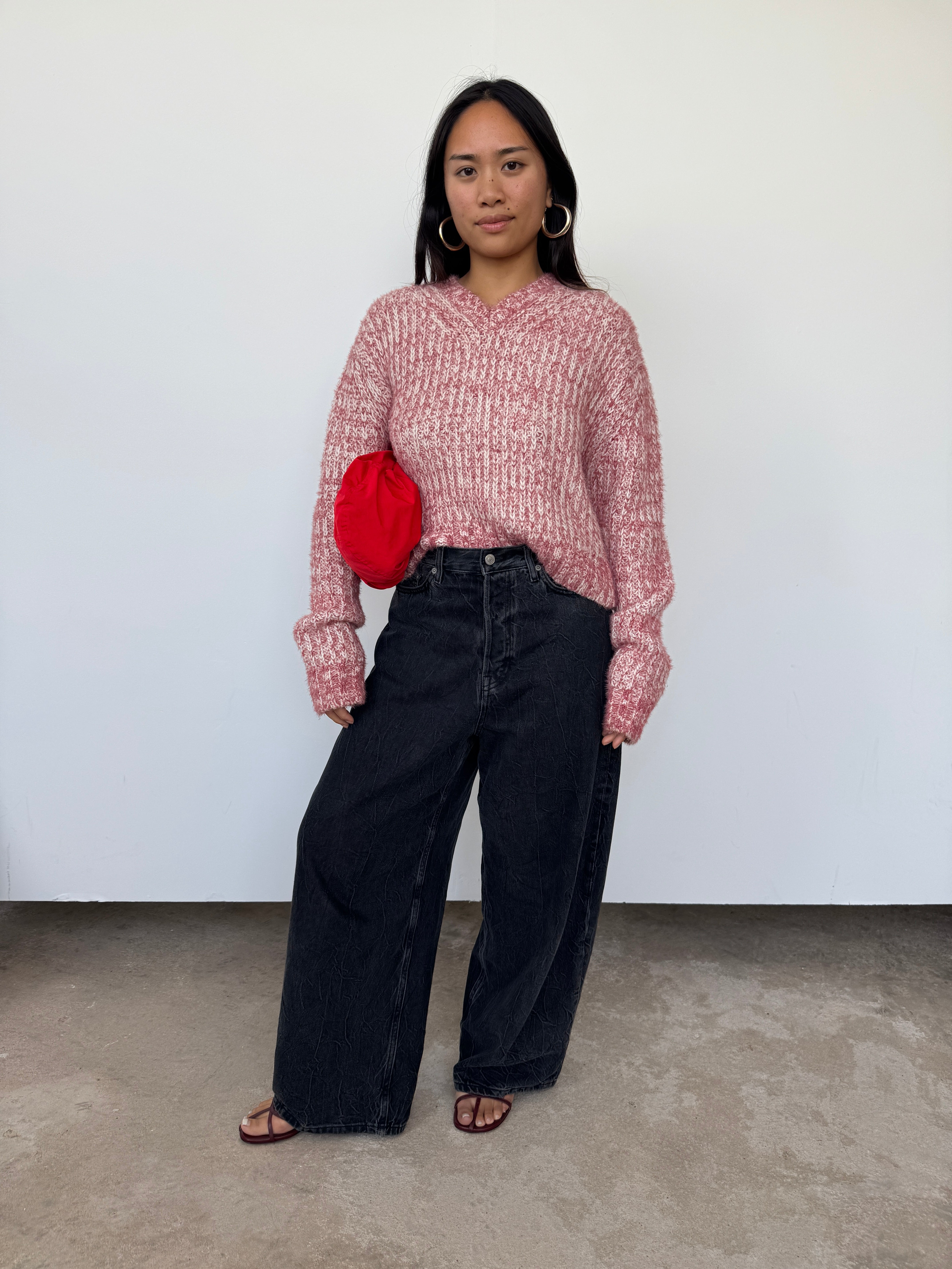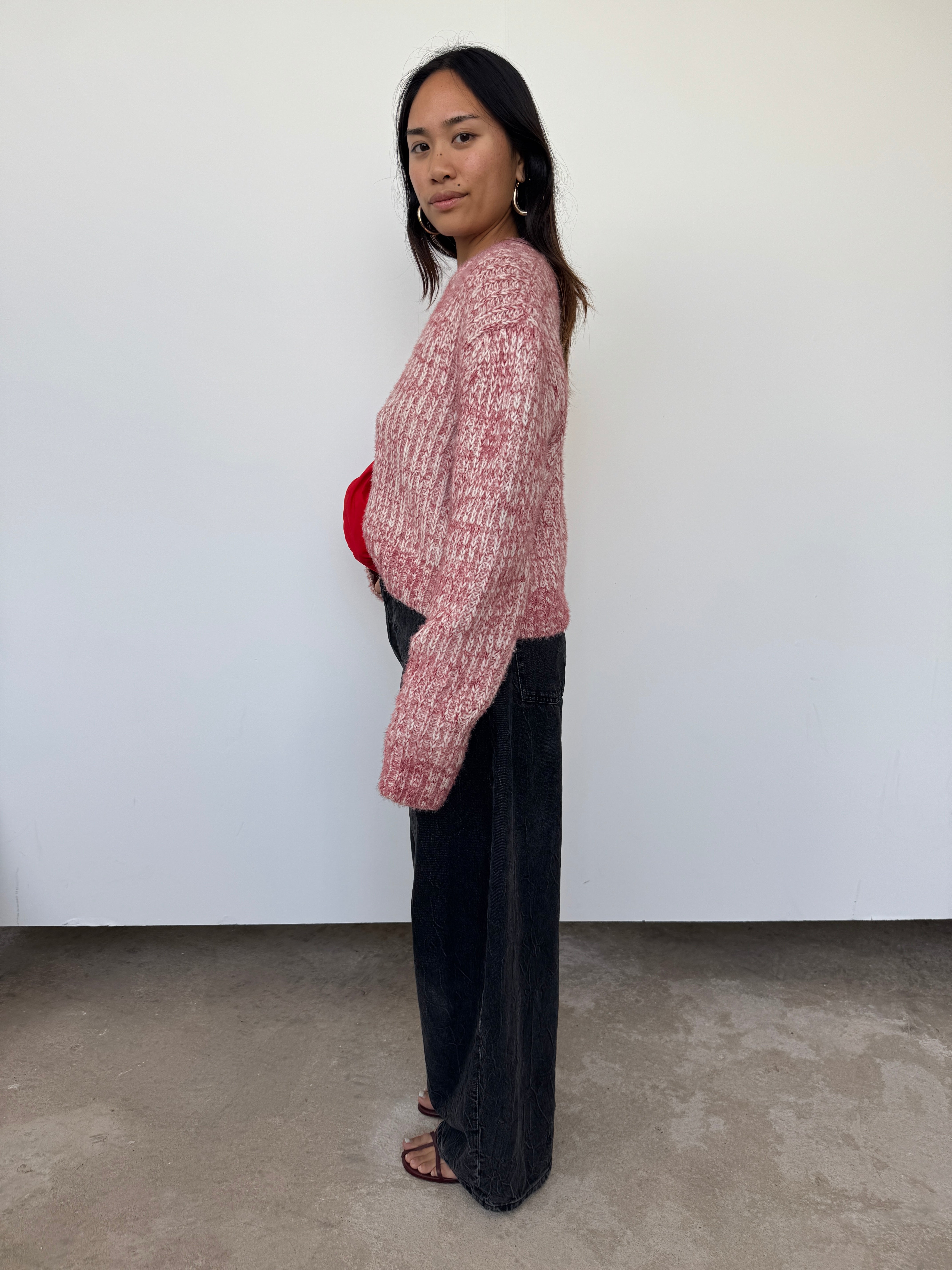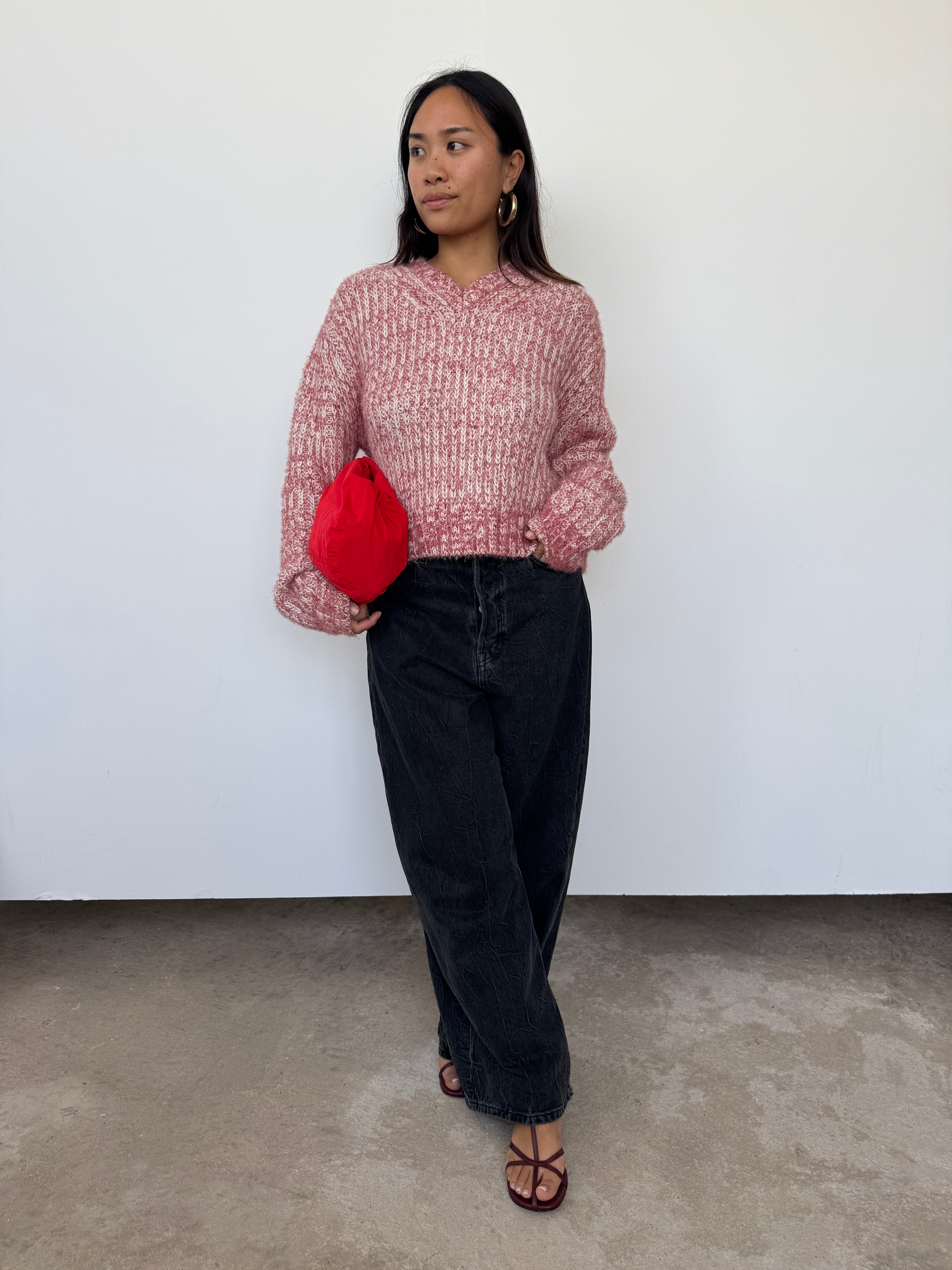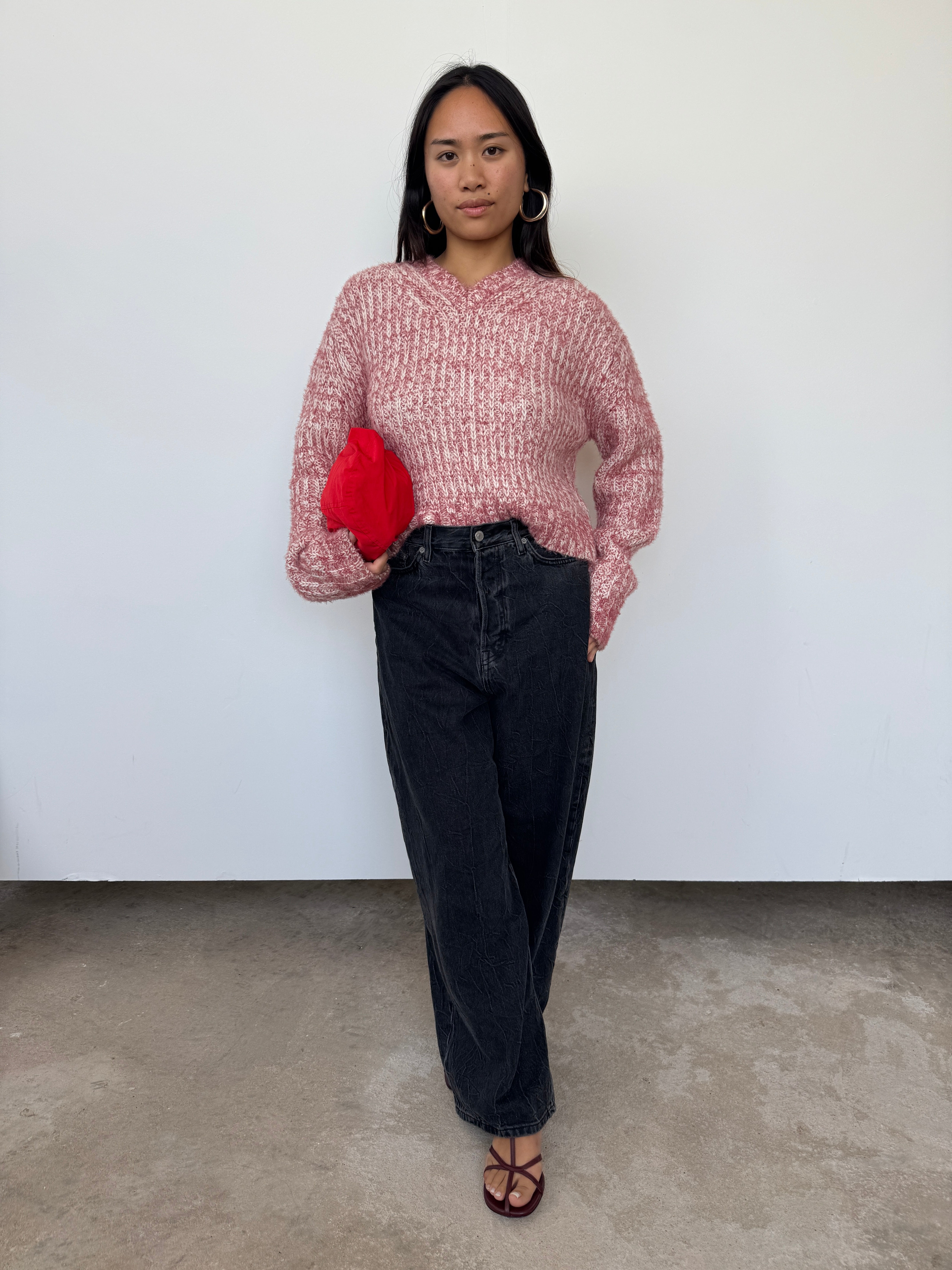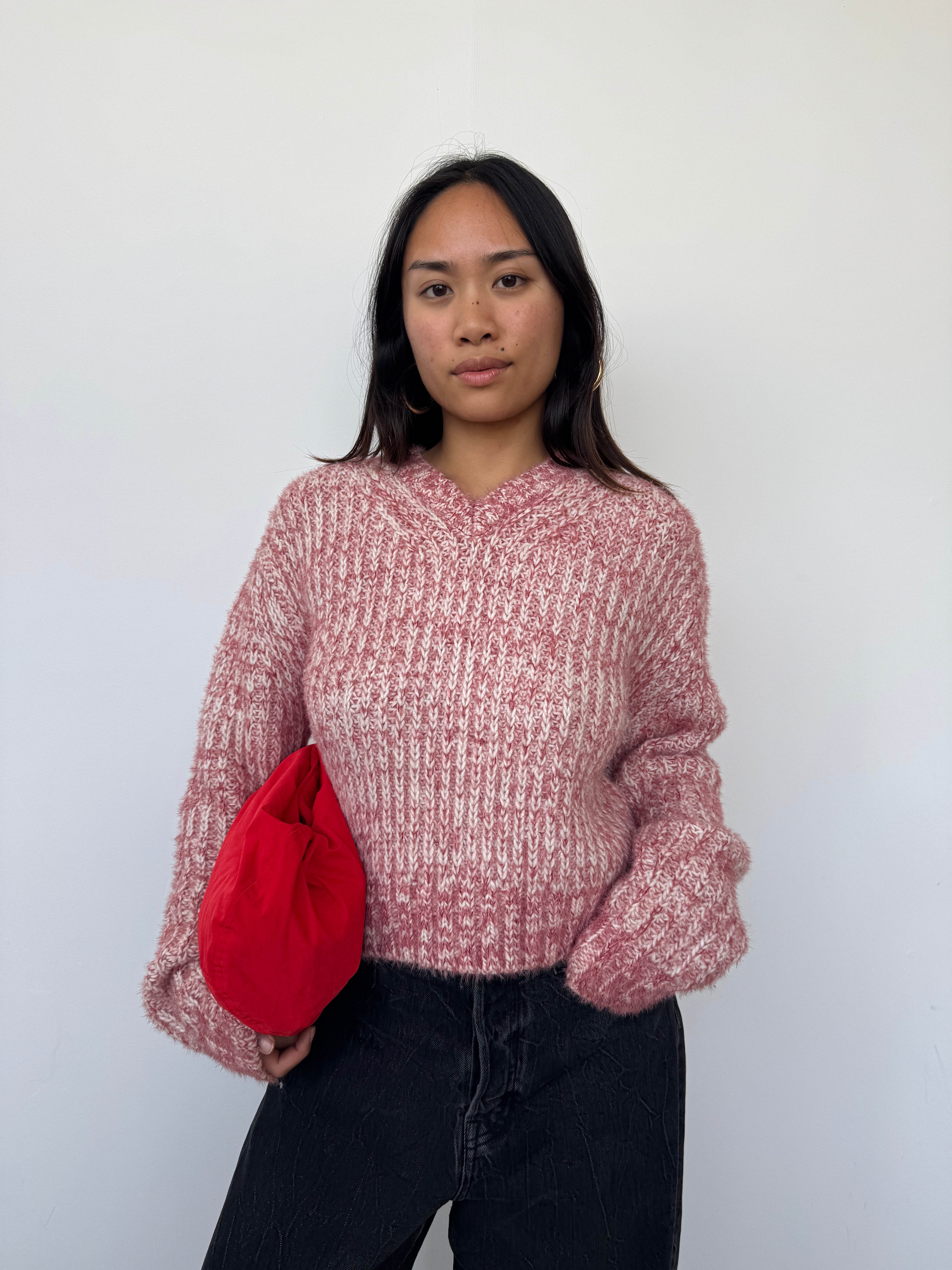 Acne Pink Cropped Wool Blend Jumper | M