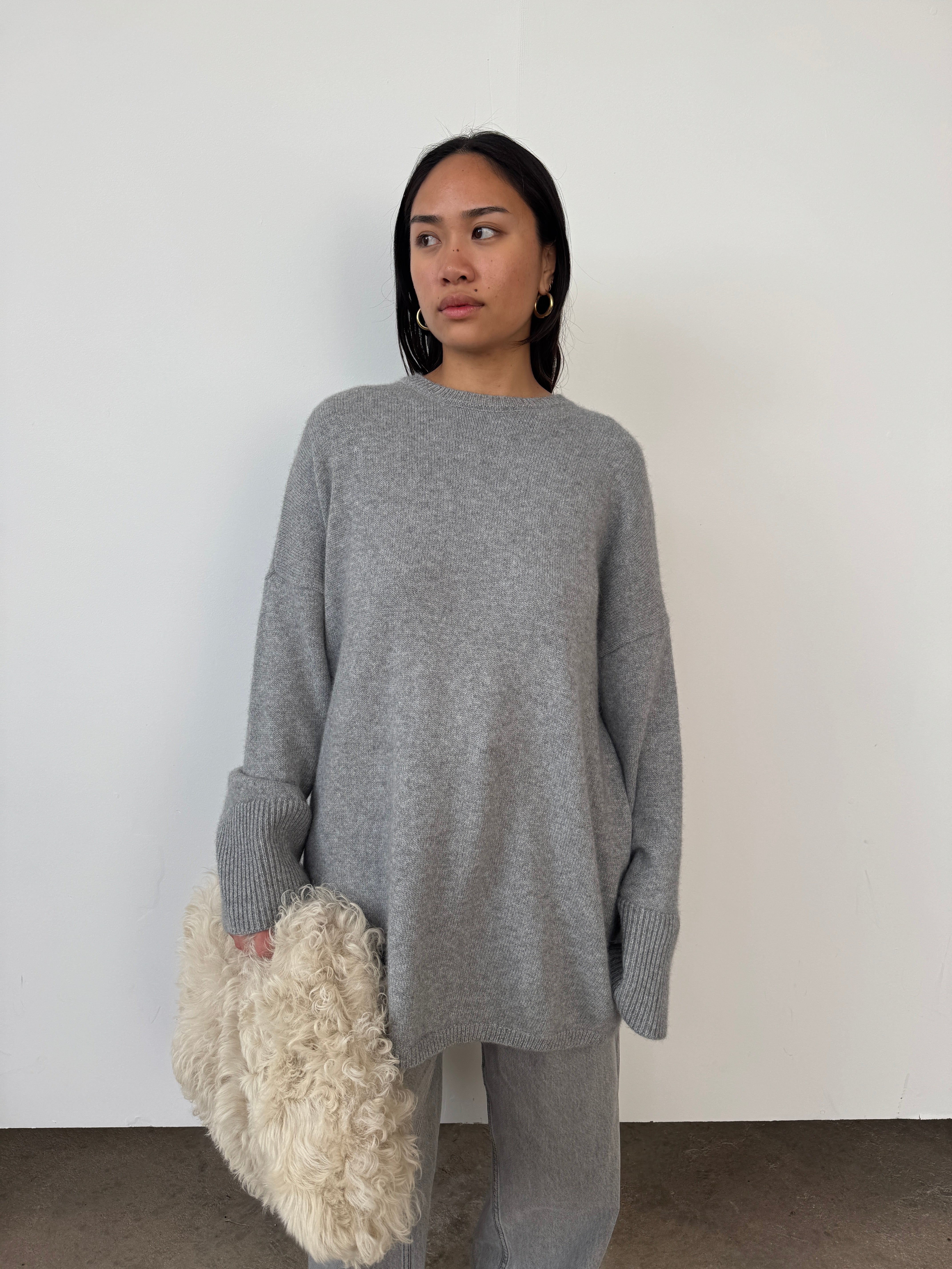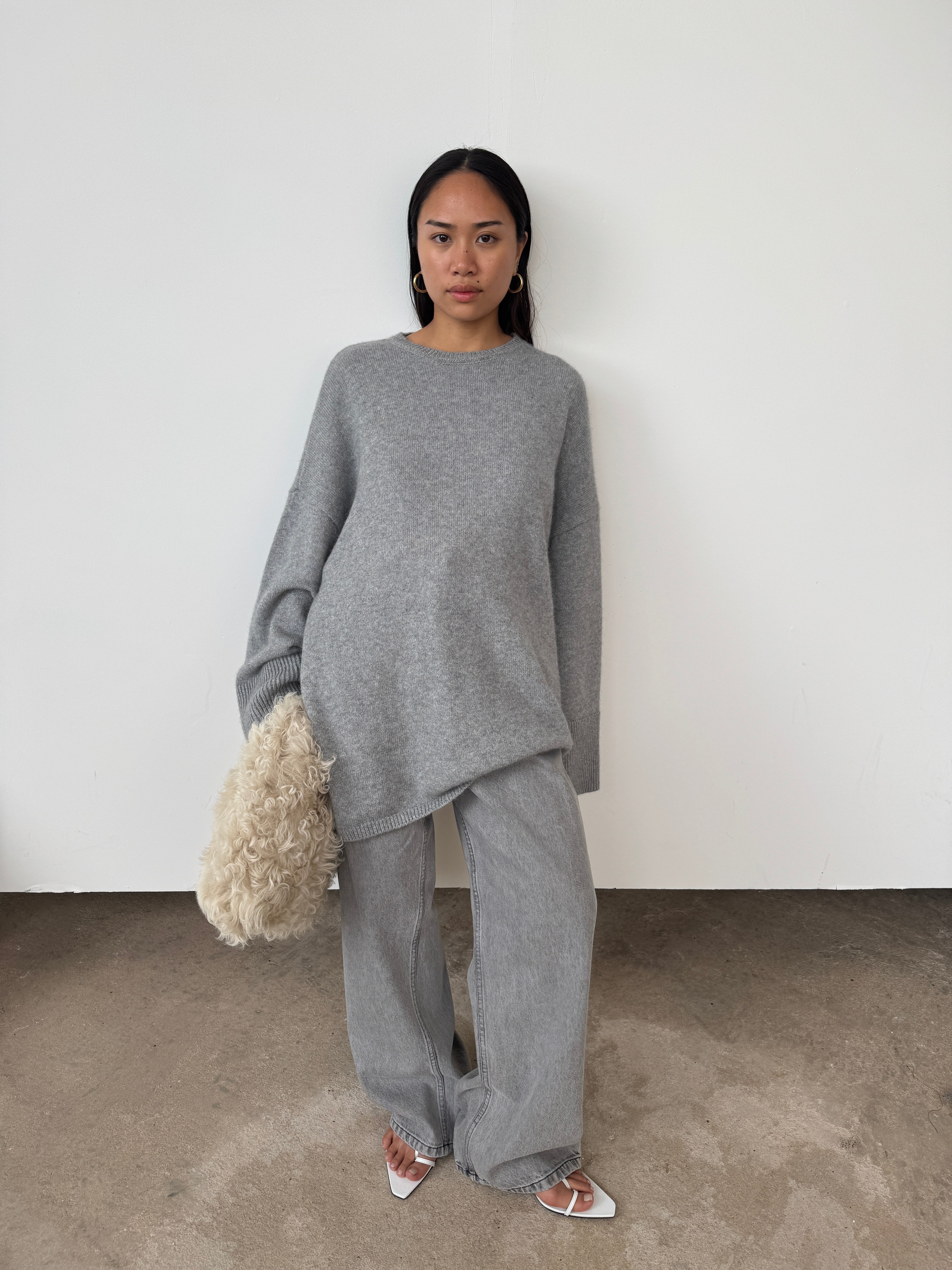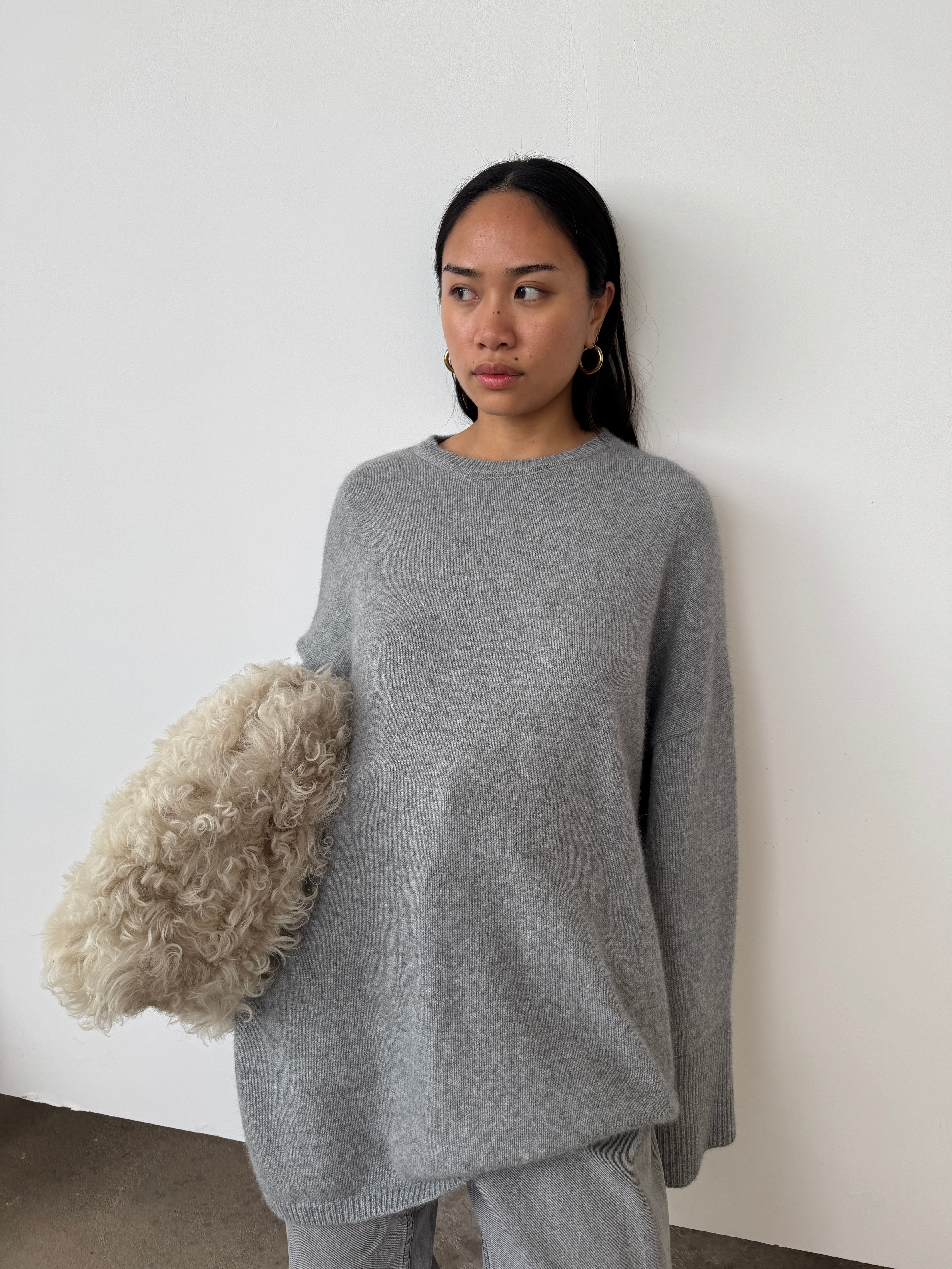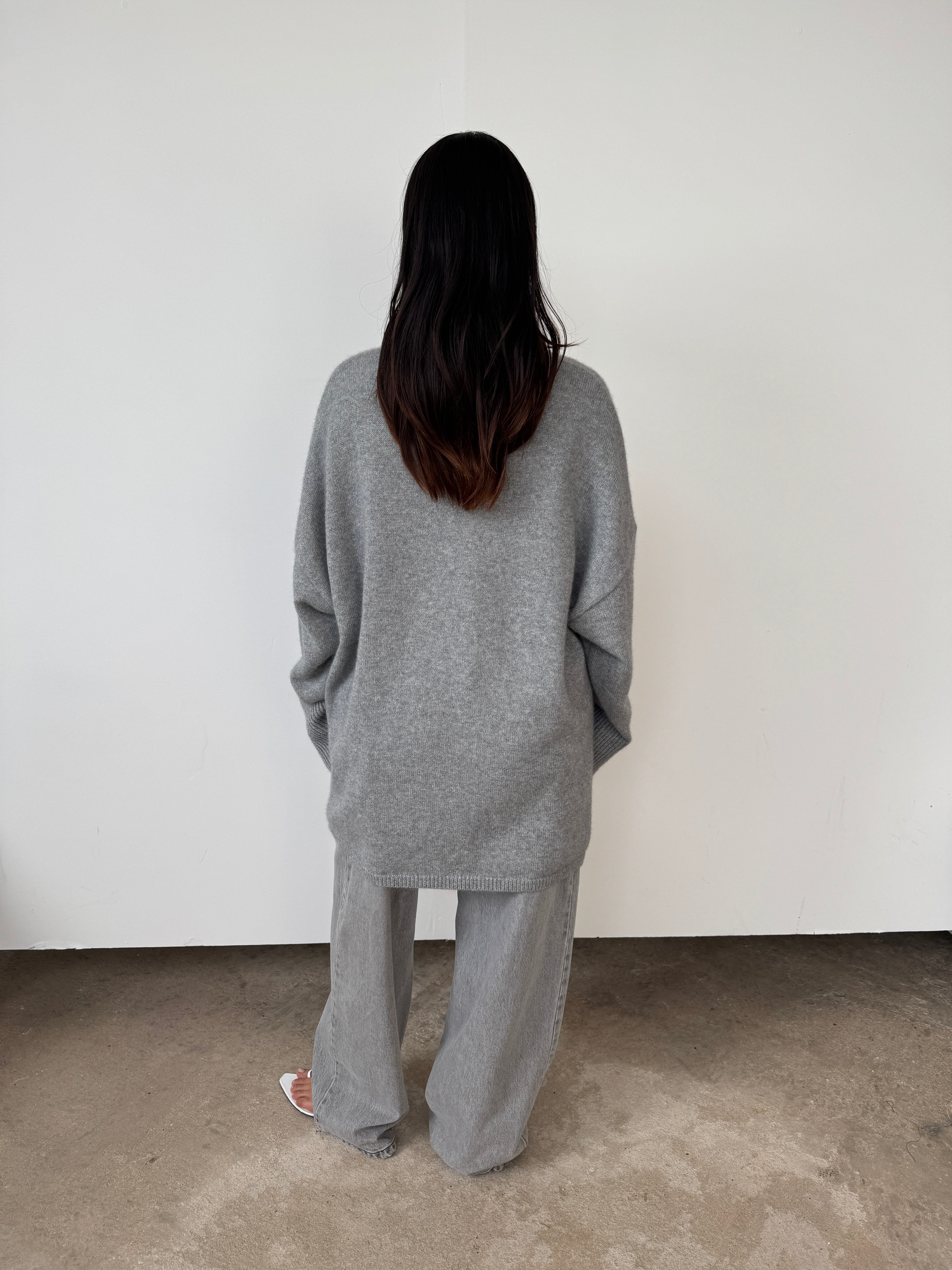 This piece is 100% cashmere and so soft. We love the longline, slouchy silhouette, and it looks great styled with a belt to create shape