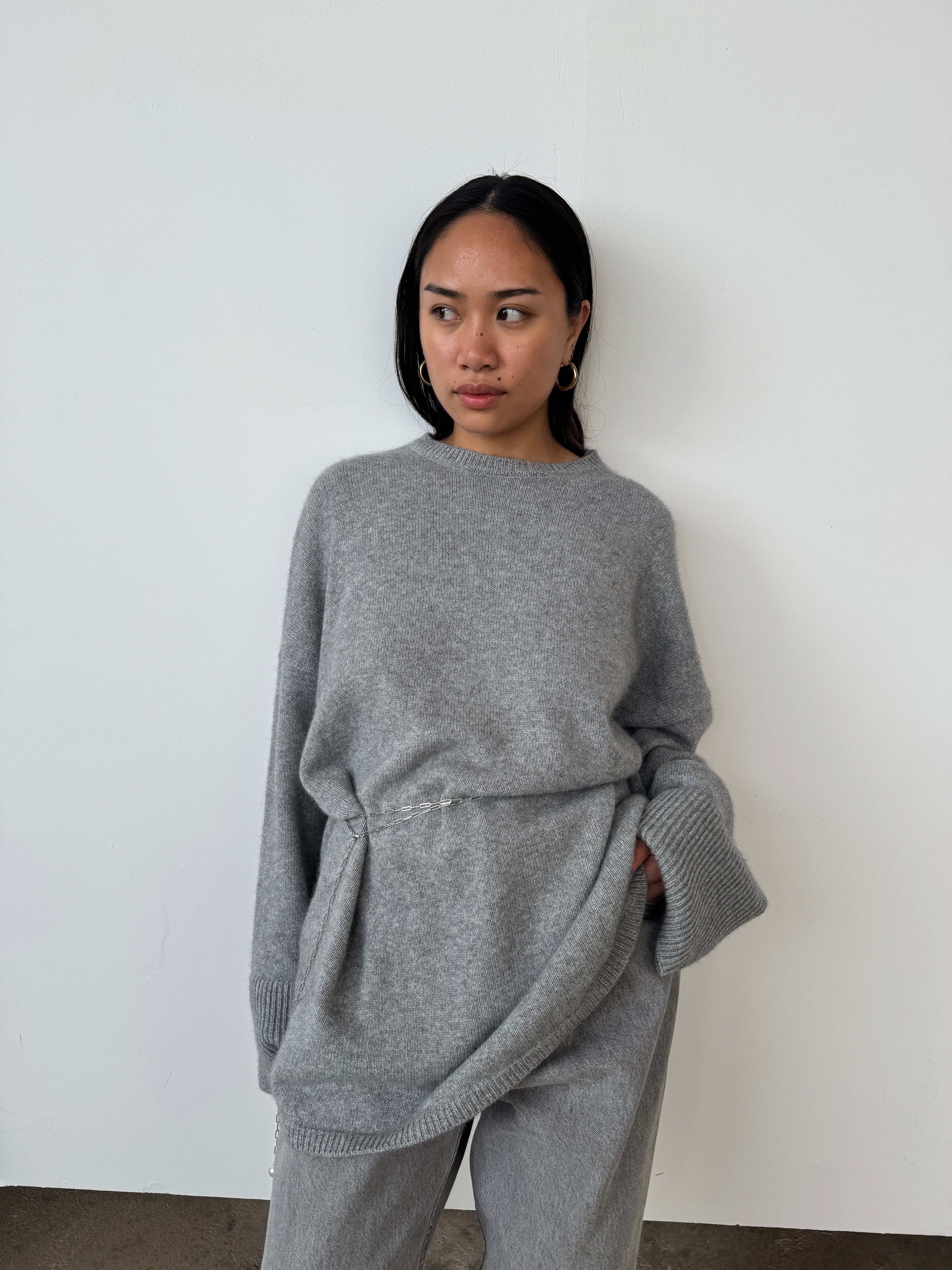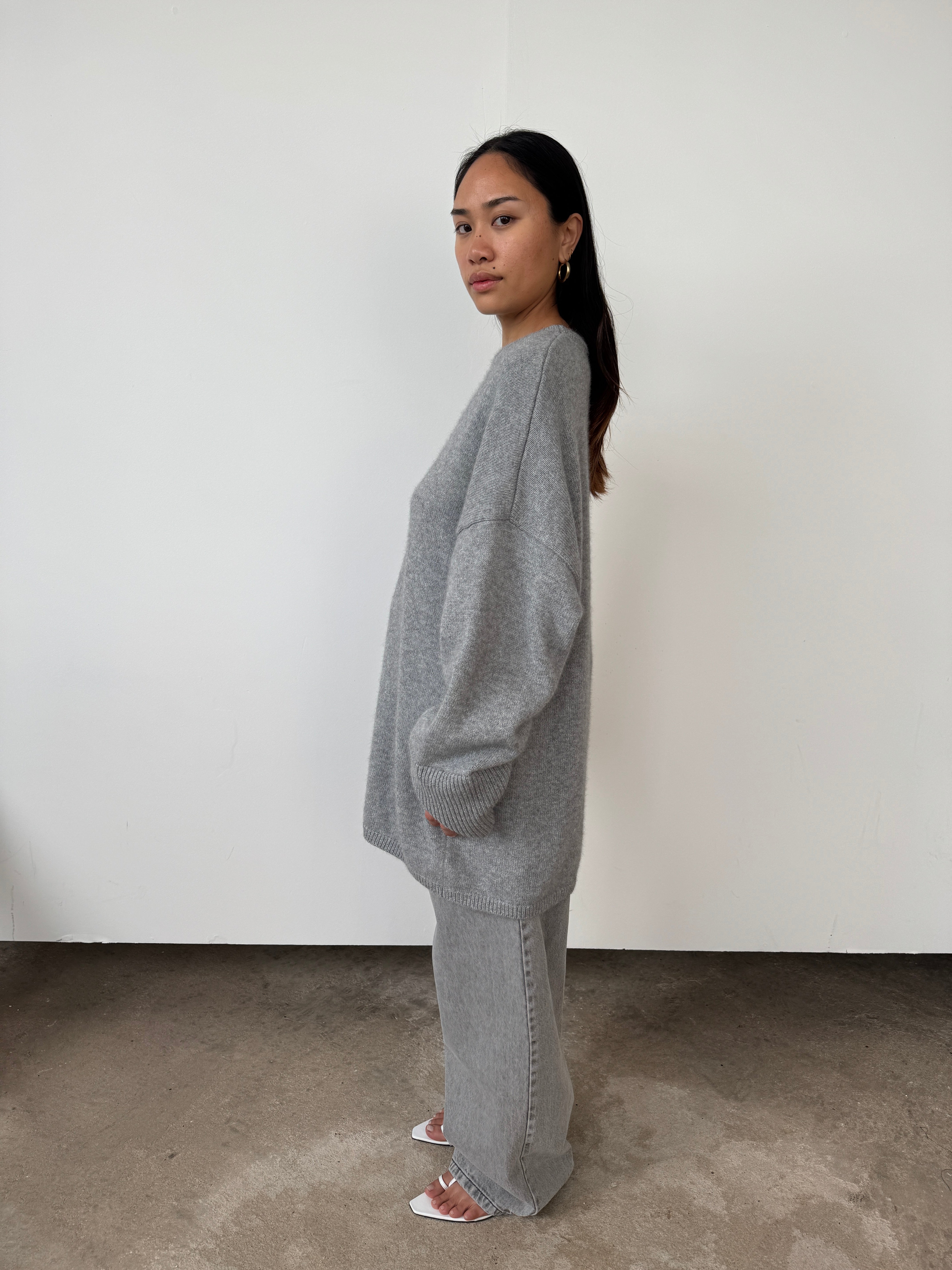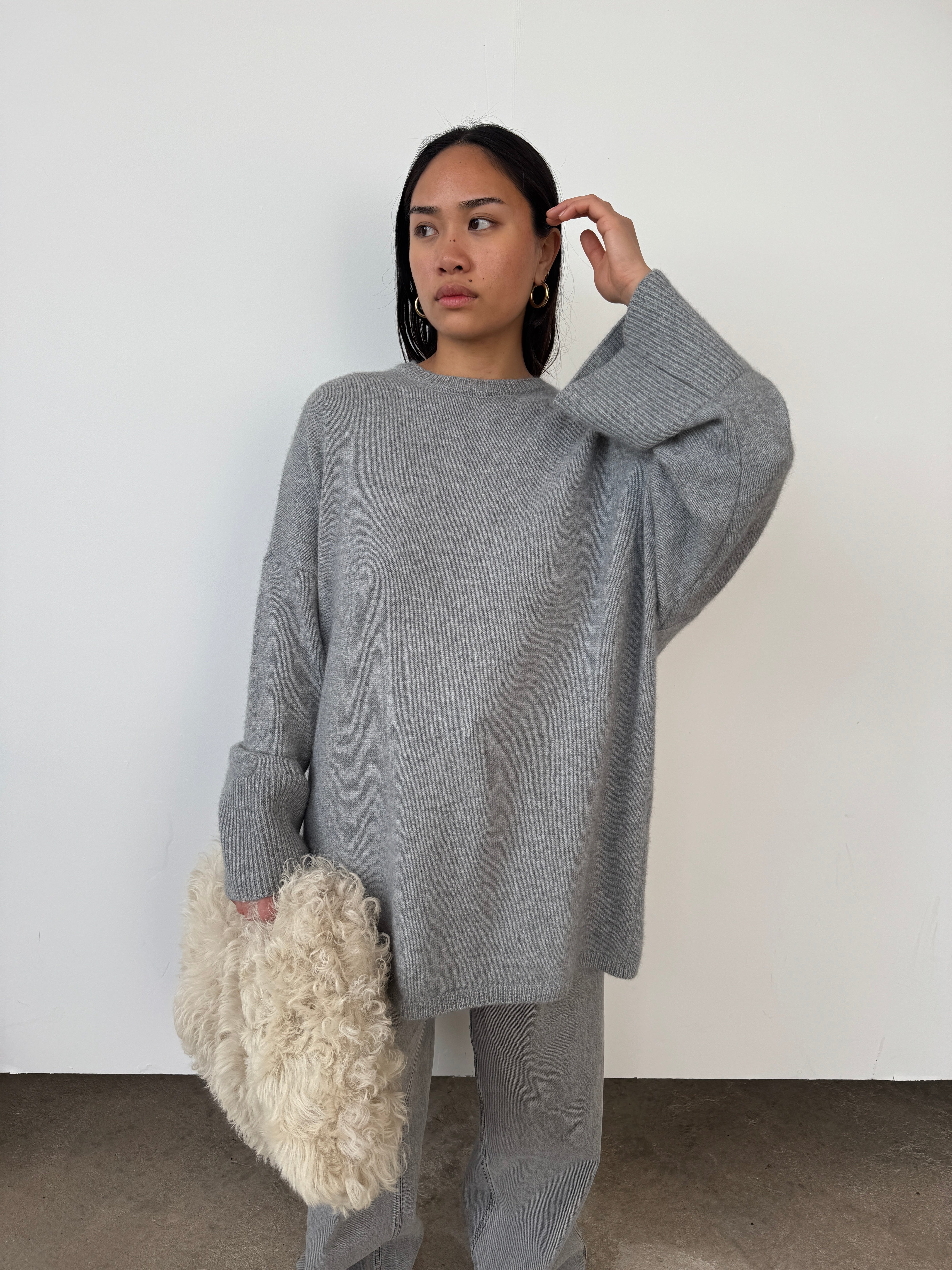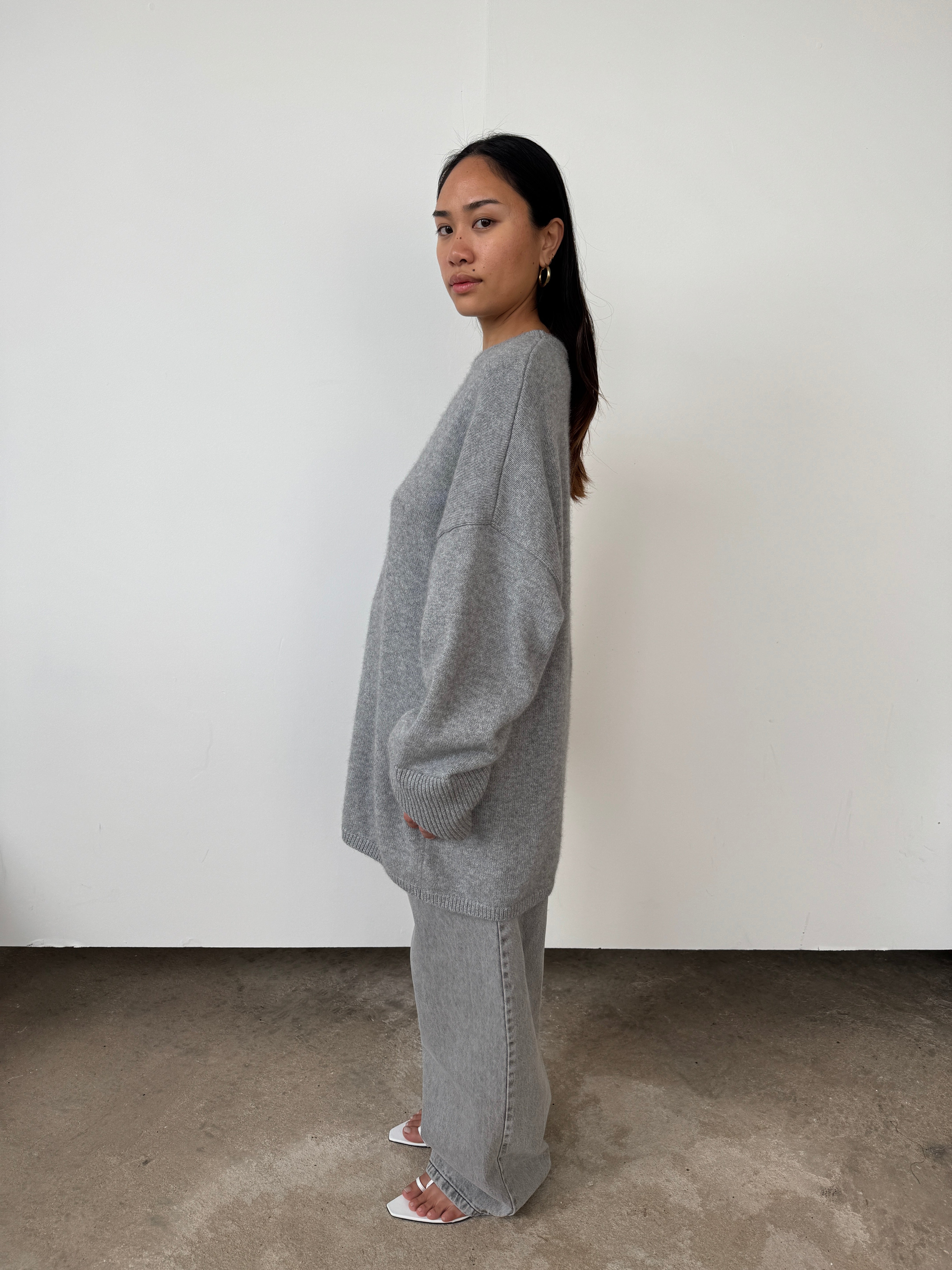 This piece is 100% cashmere and so soft. We love the longline, slouchy silhouette, and it looks great styled with a belt to create shape
