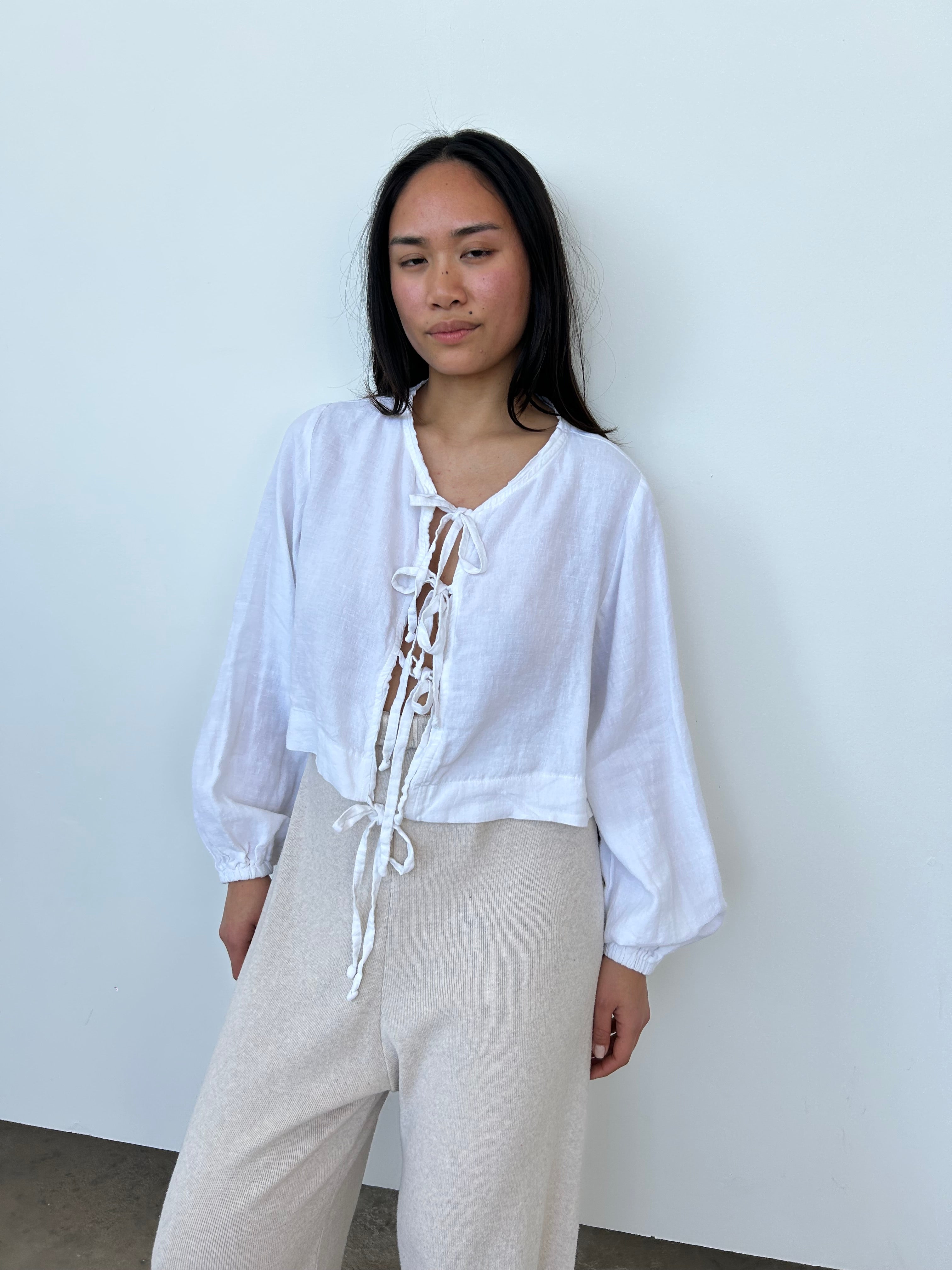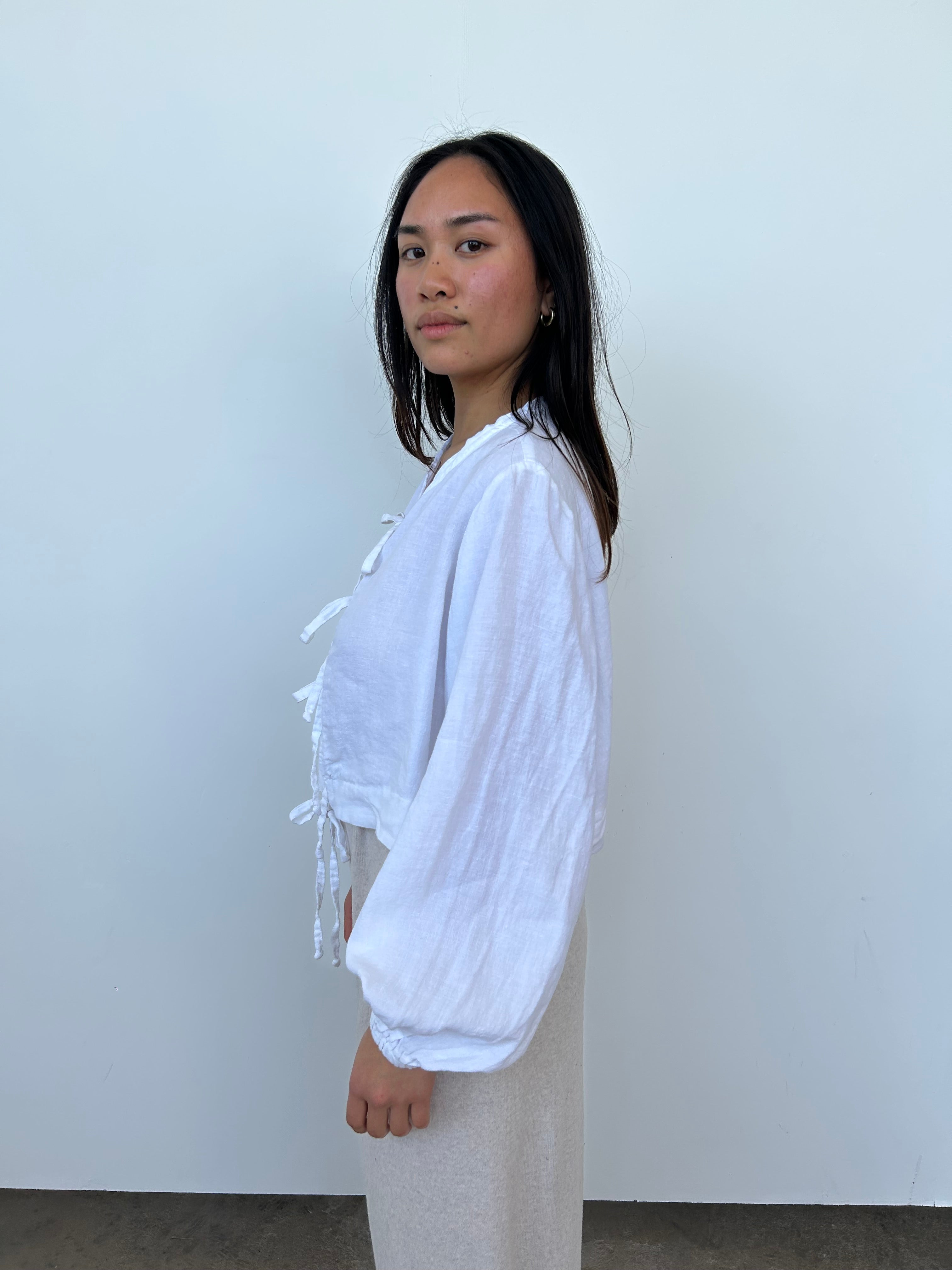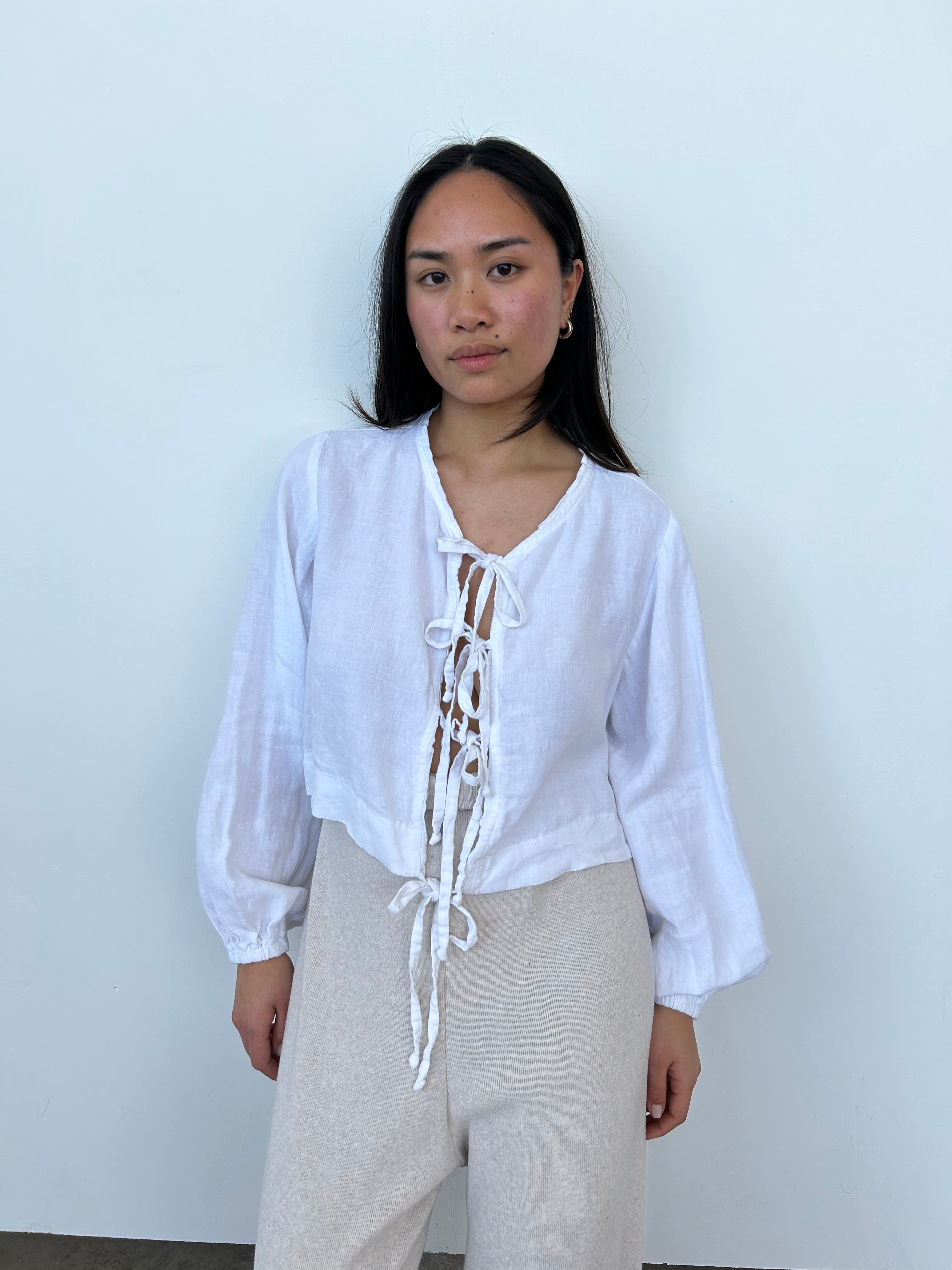 Bohème White Linen Tie Top | UK10-12