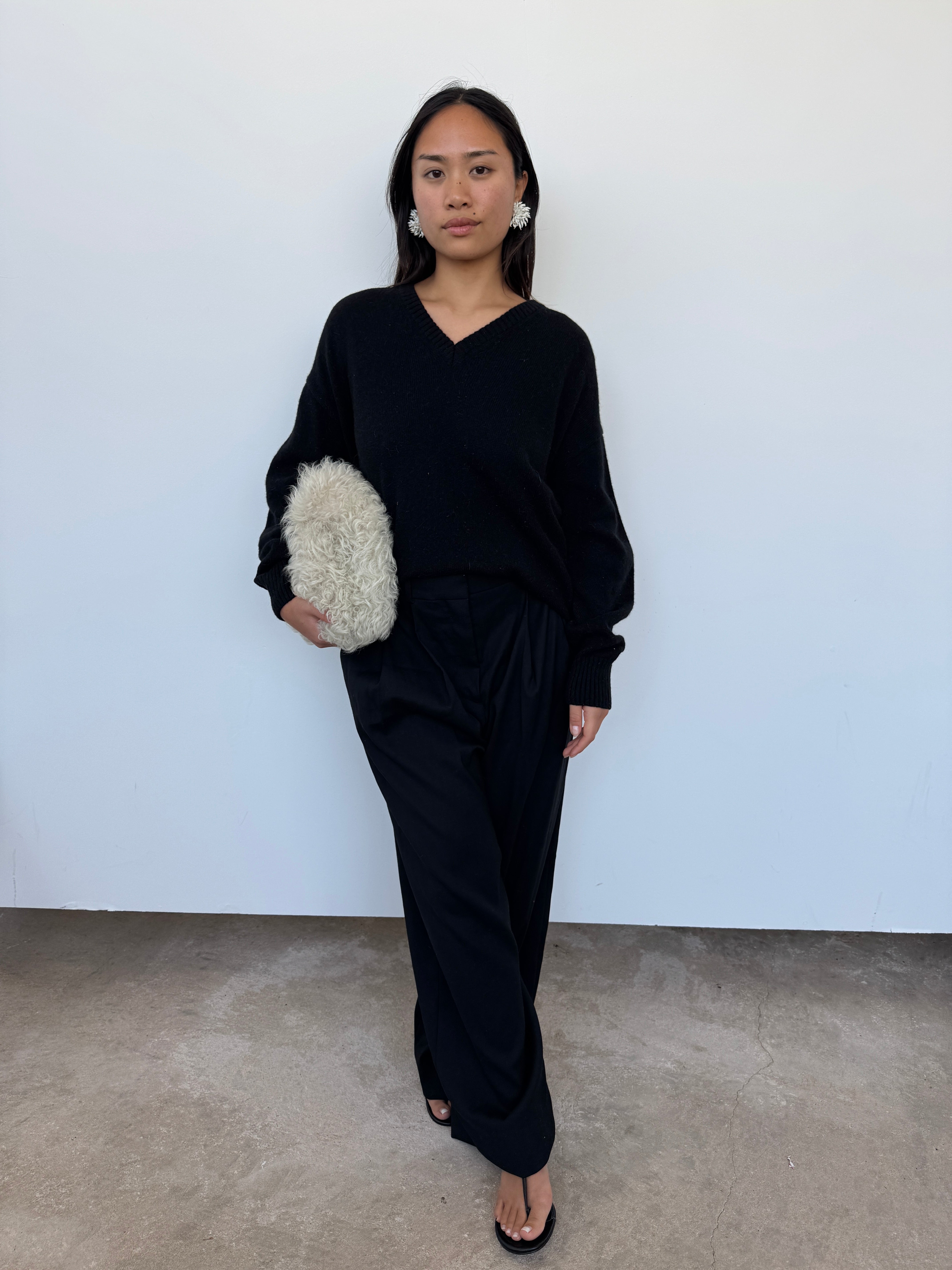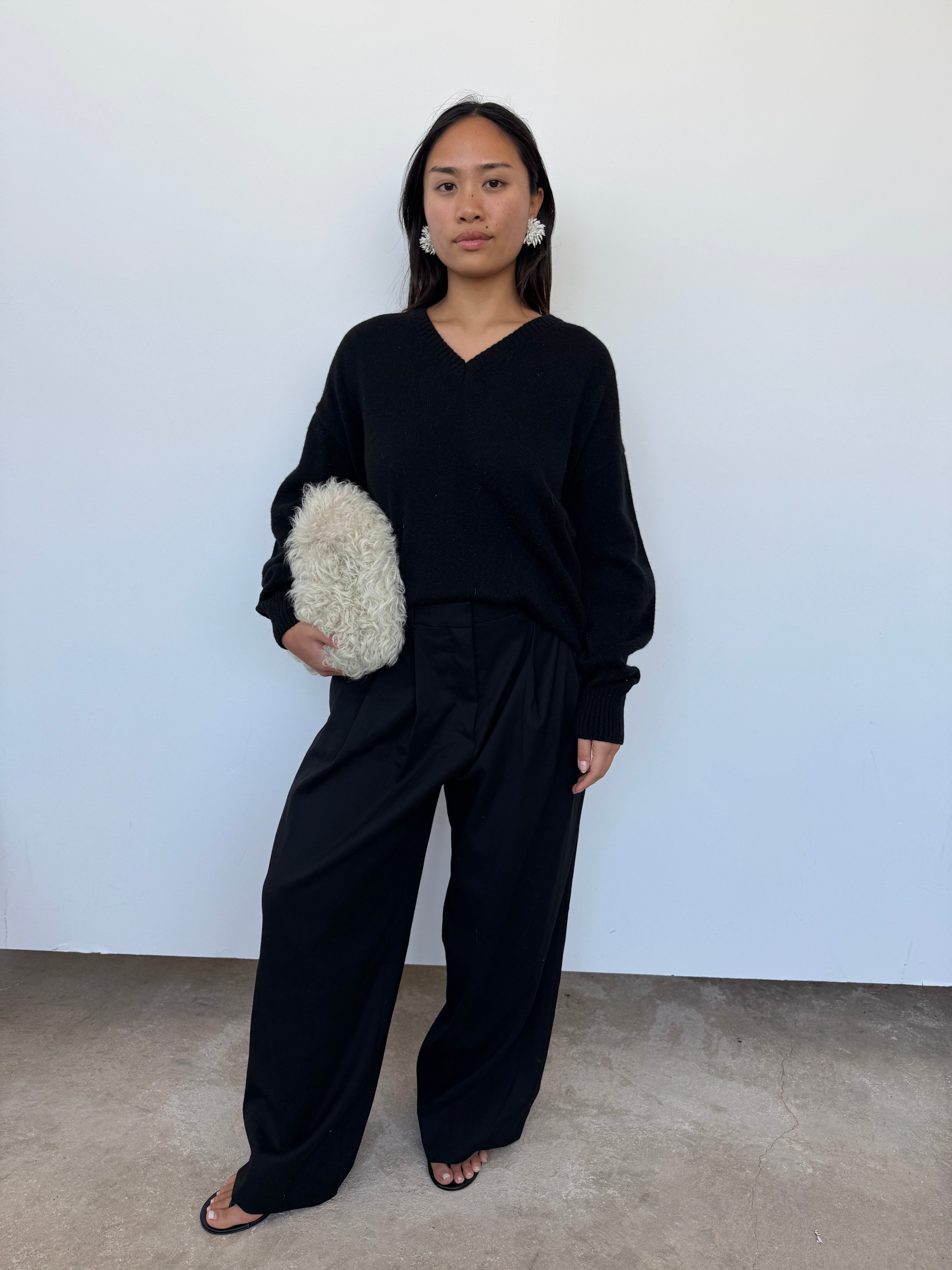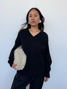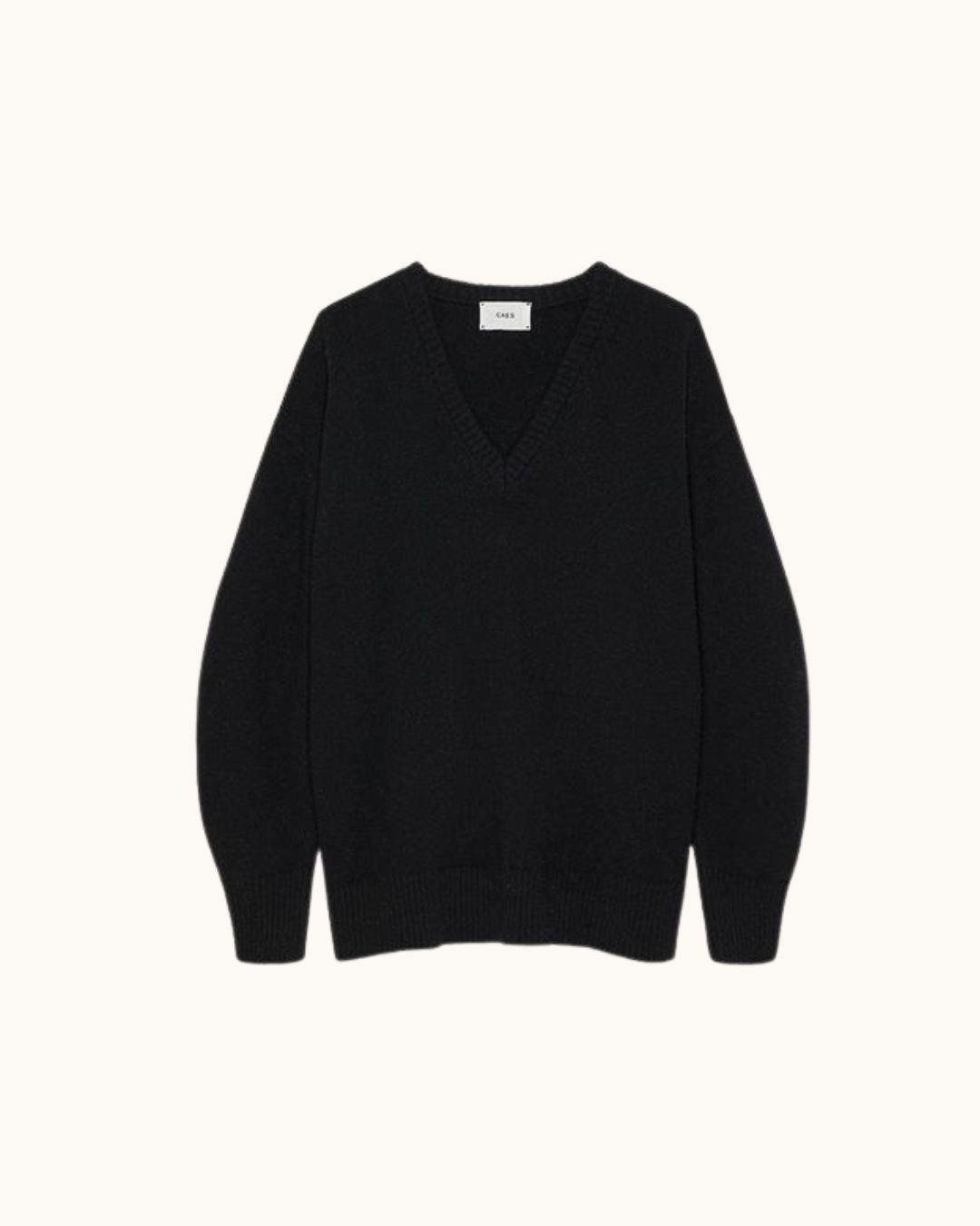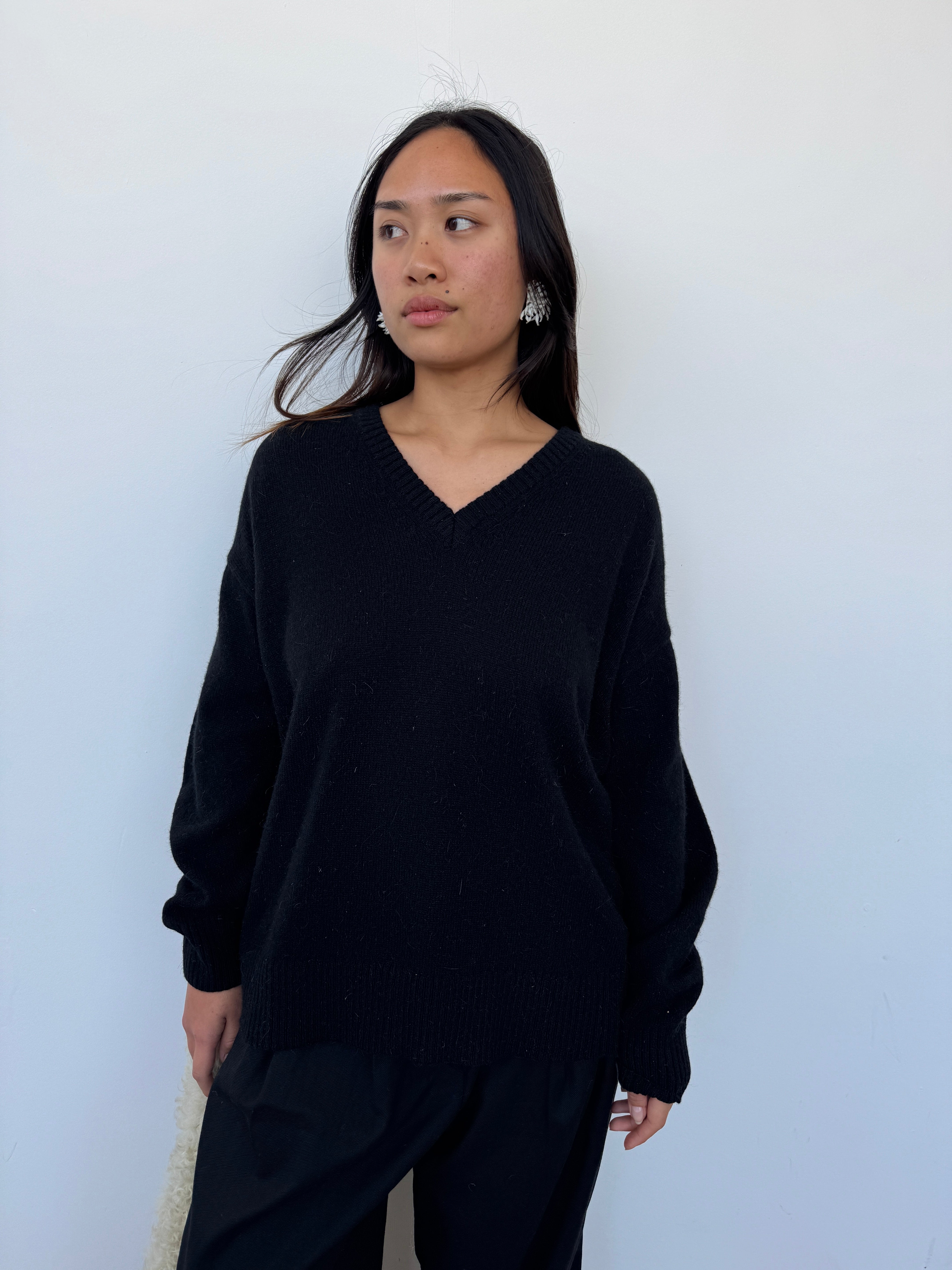 CAES 0065 Black V-neck Oversized Sweater | XS + M