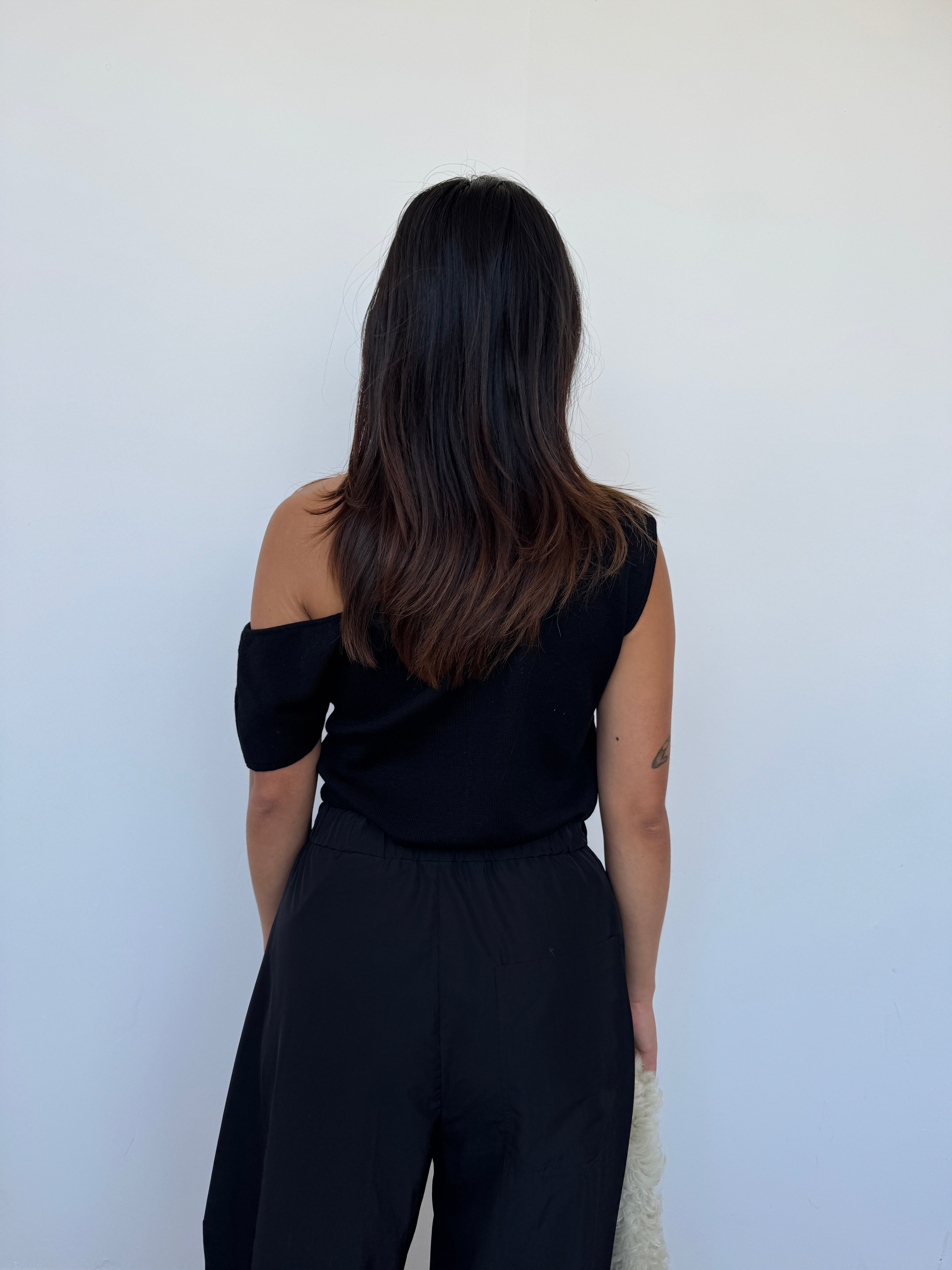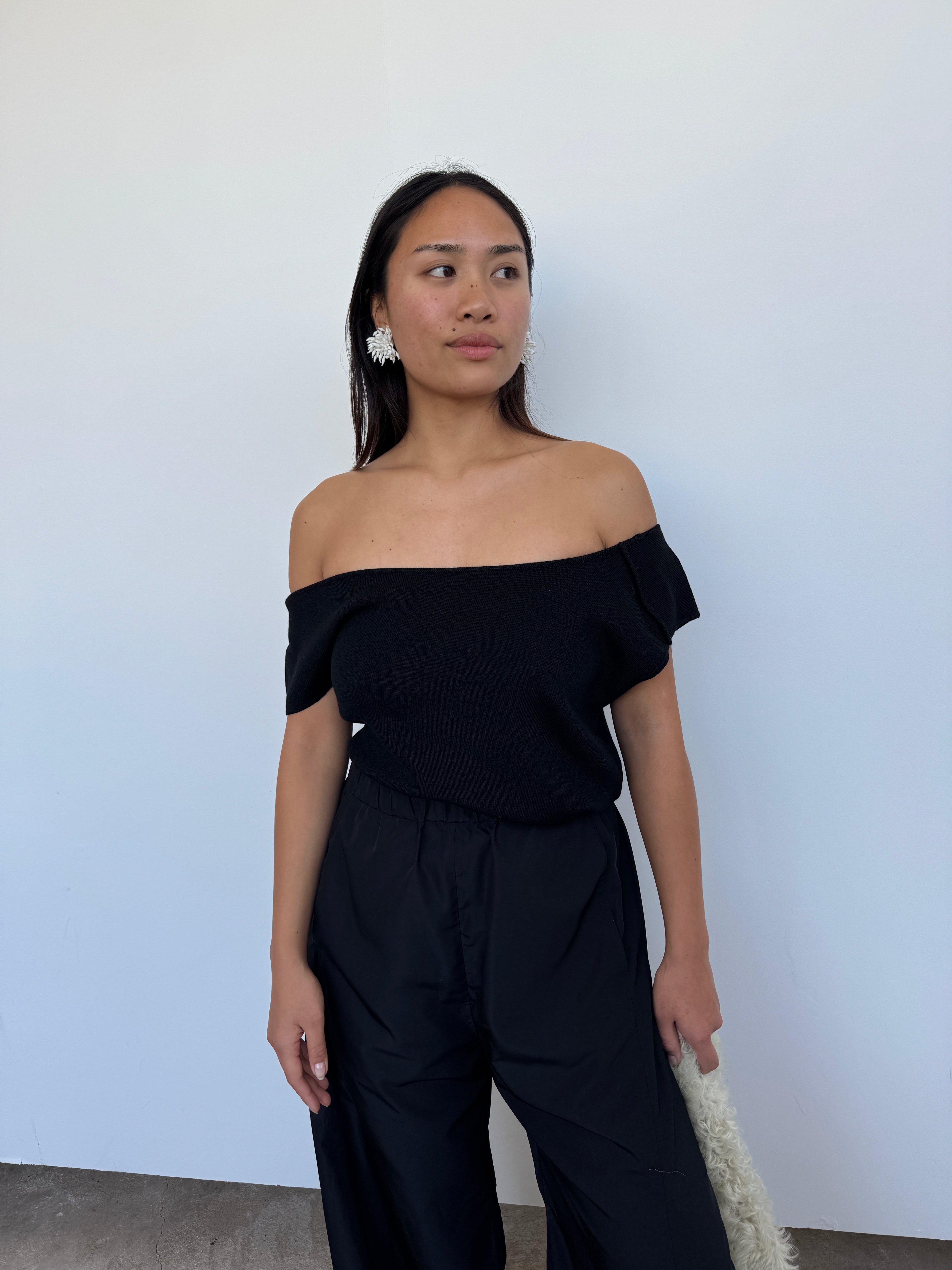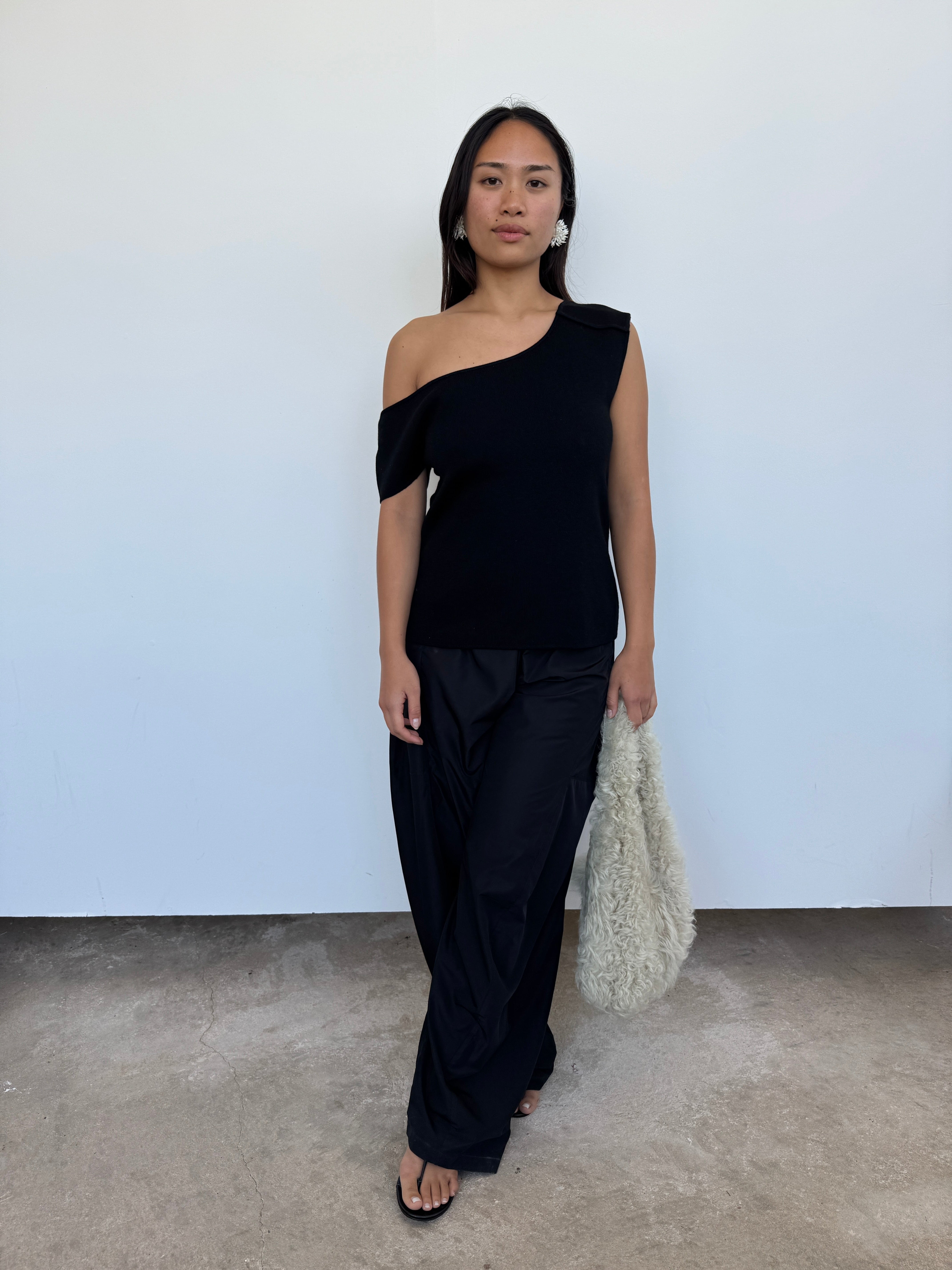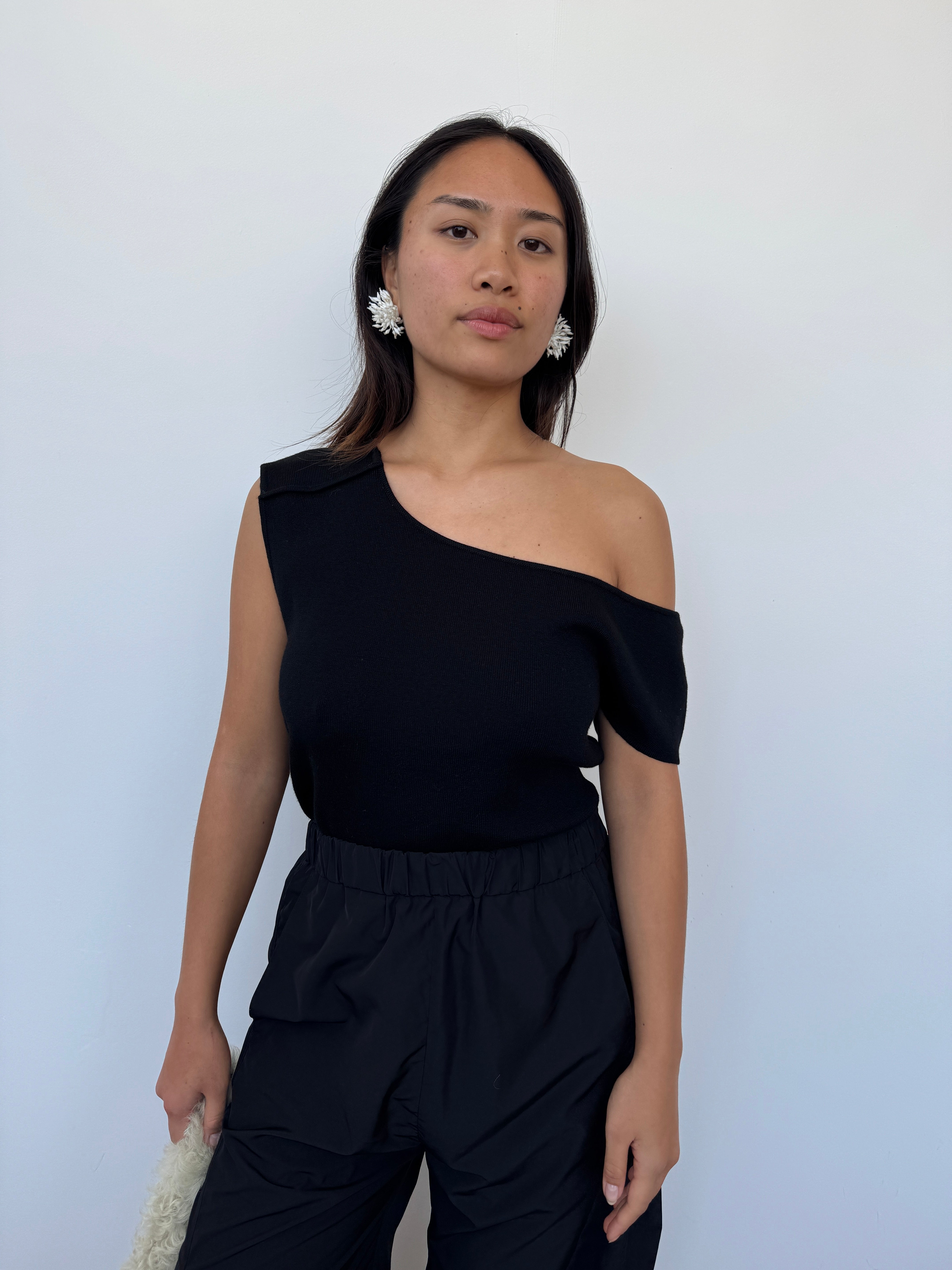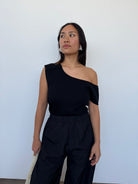 CAES 0162 Black One Shoulder Knit Top | XS, S + M