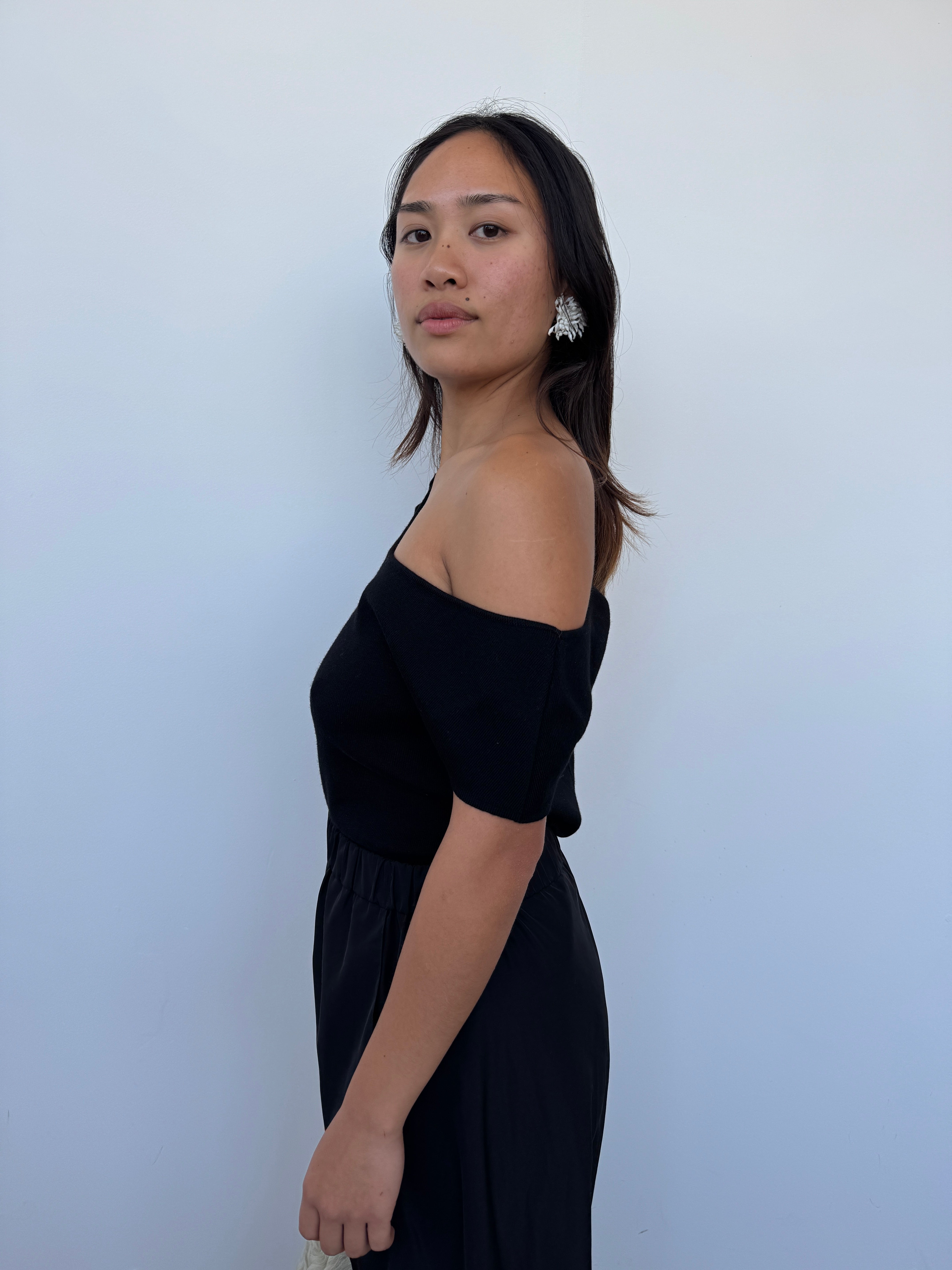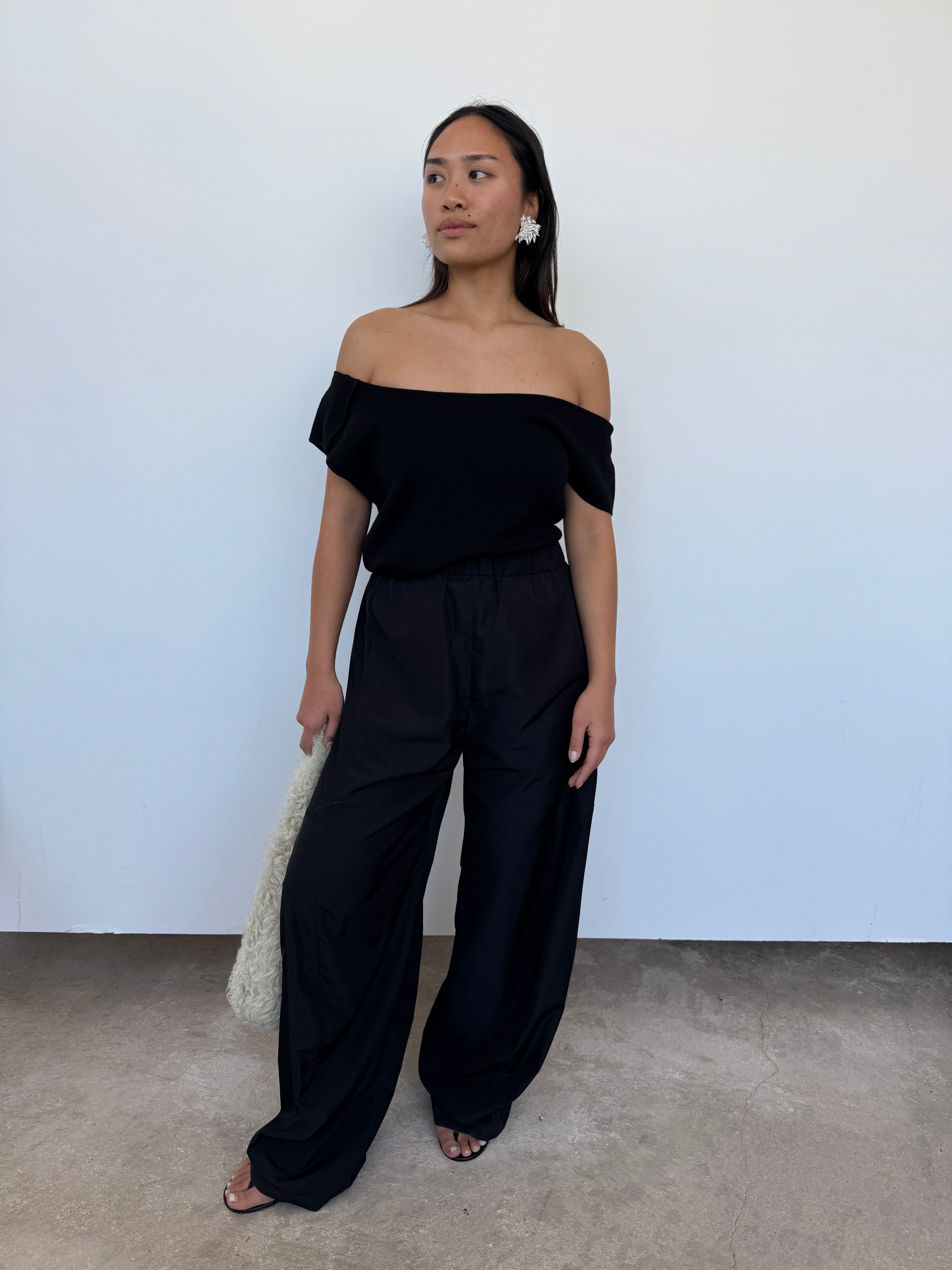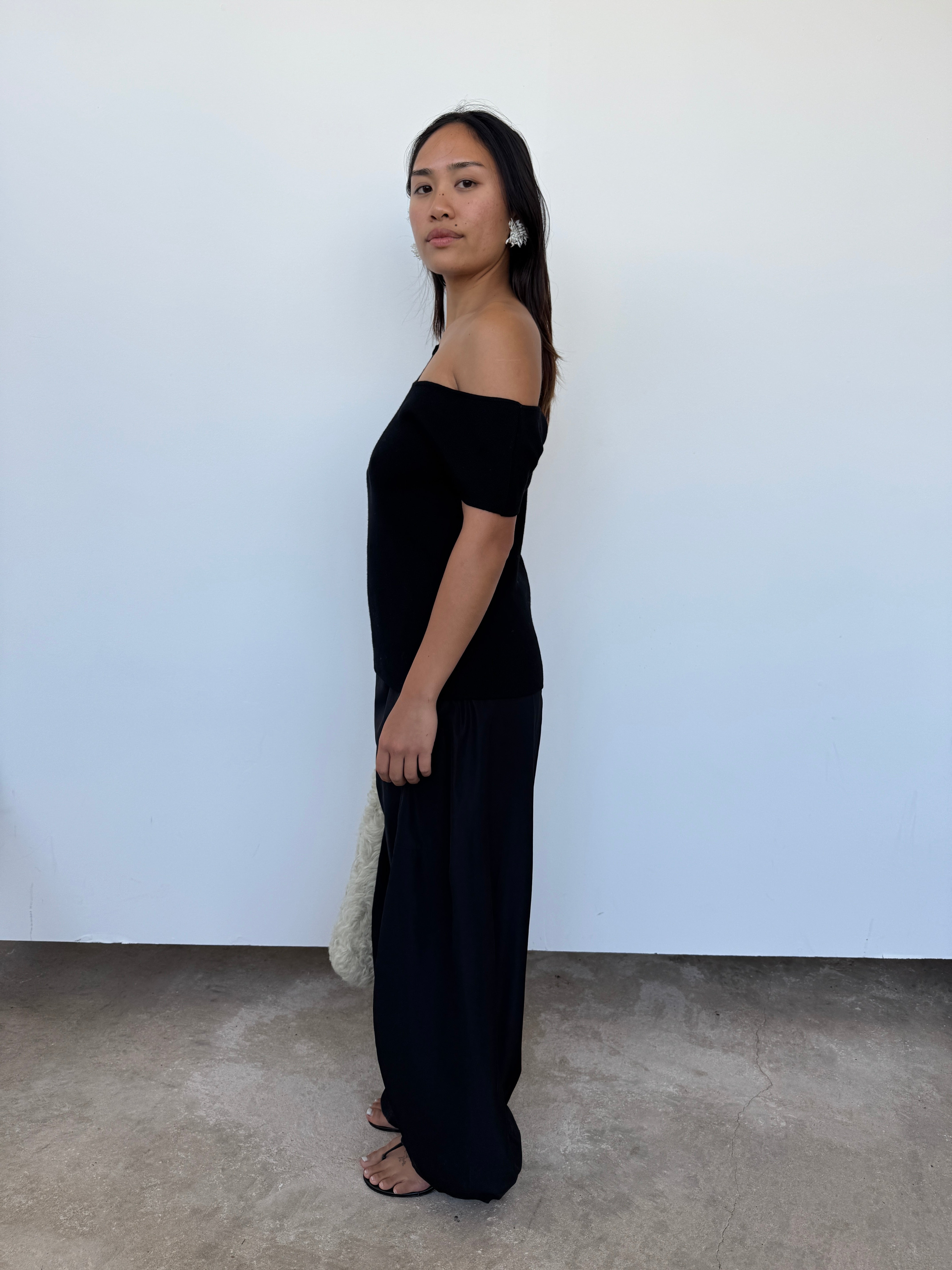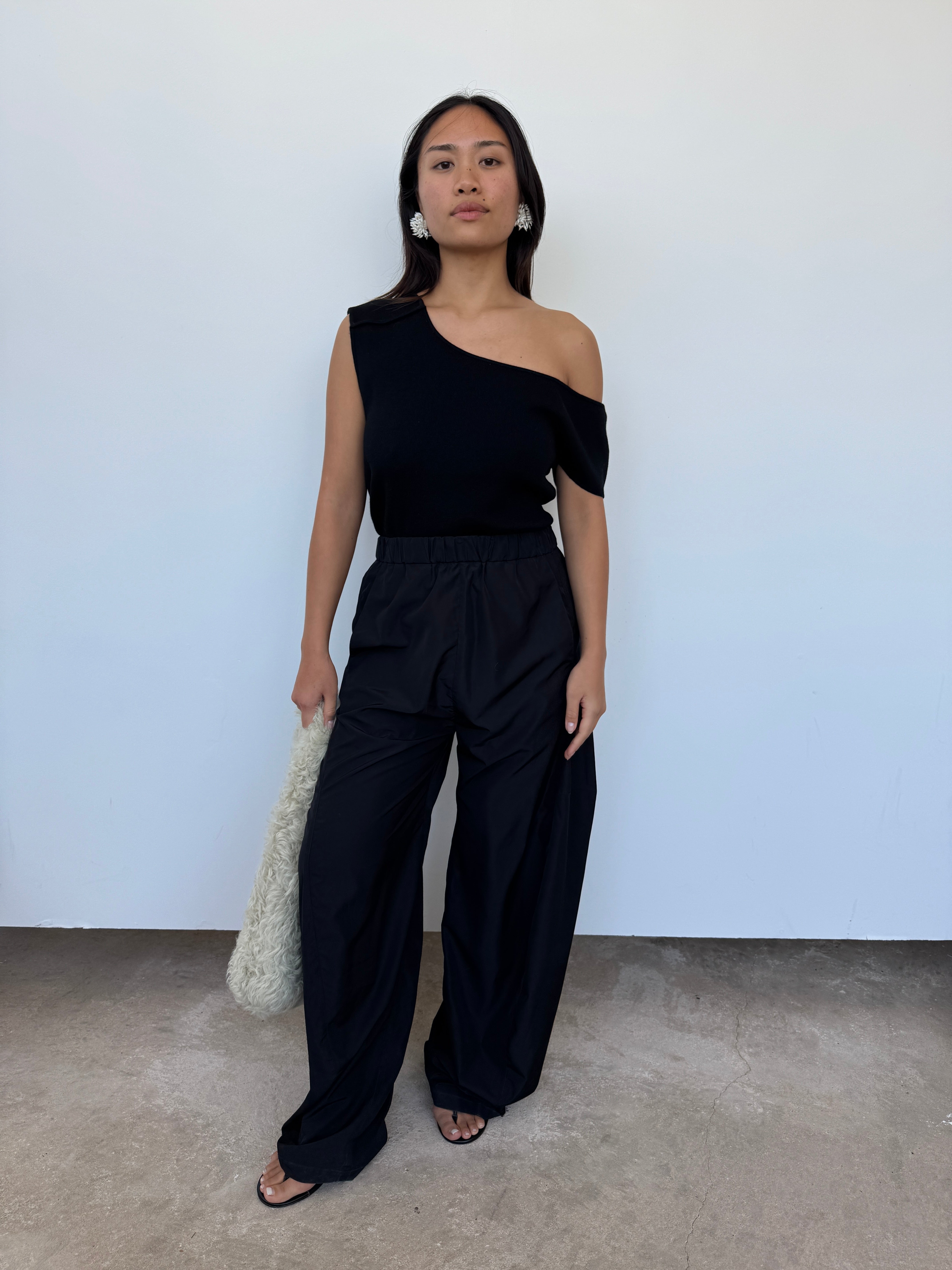 CAES 0162 Black One Shoulder Knit Top | XS, S + M