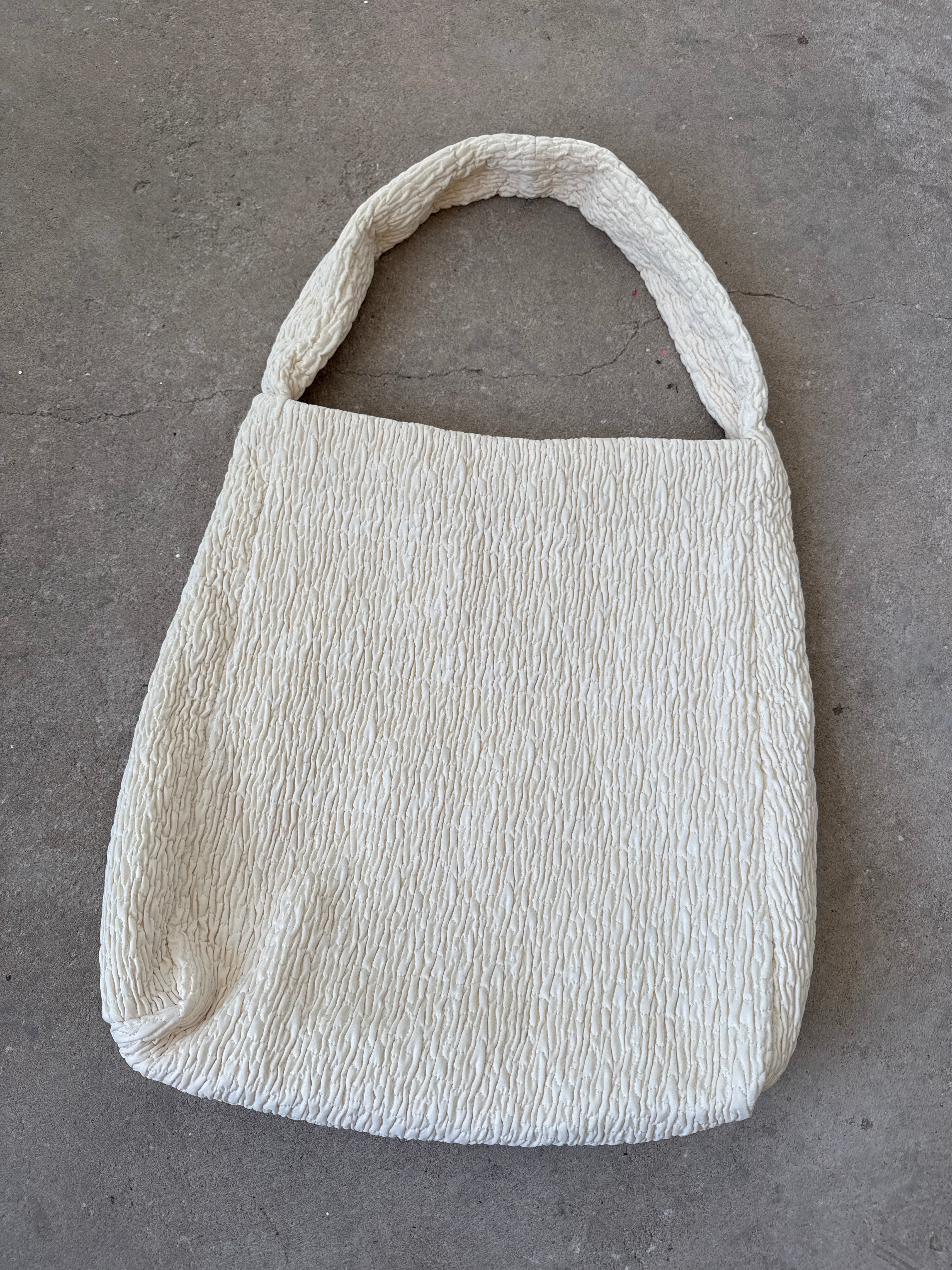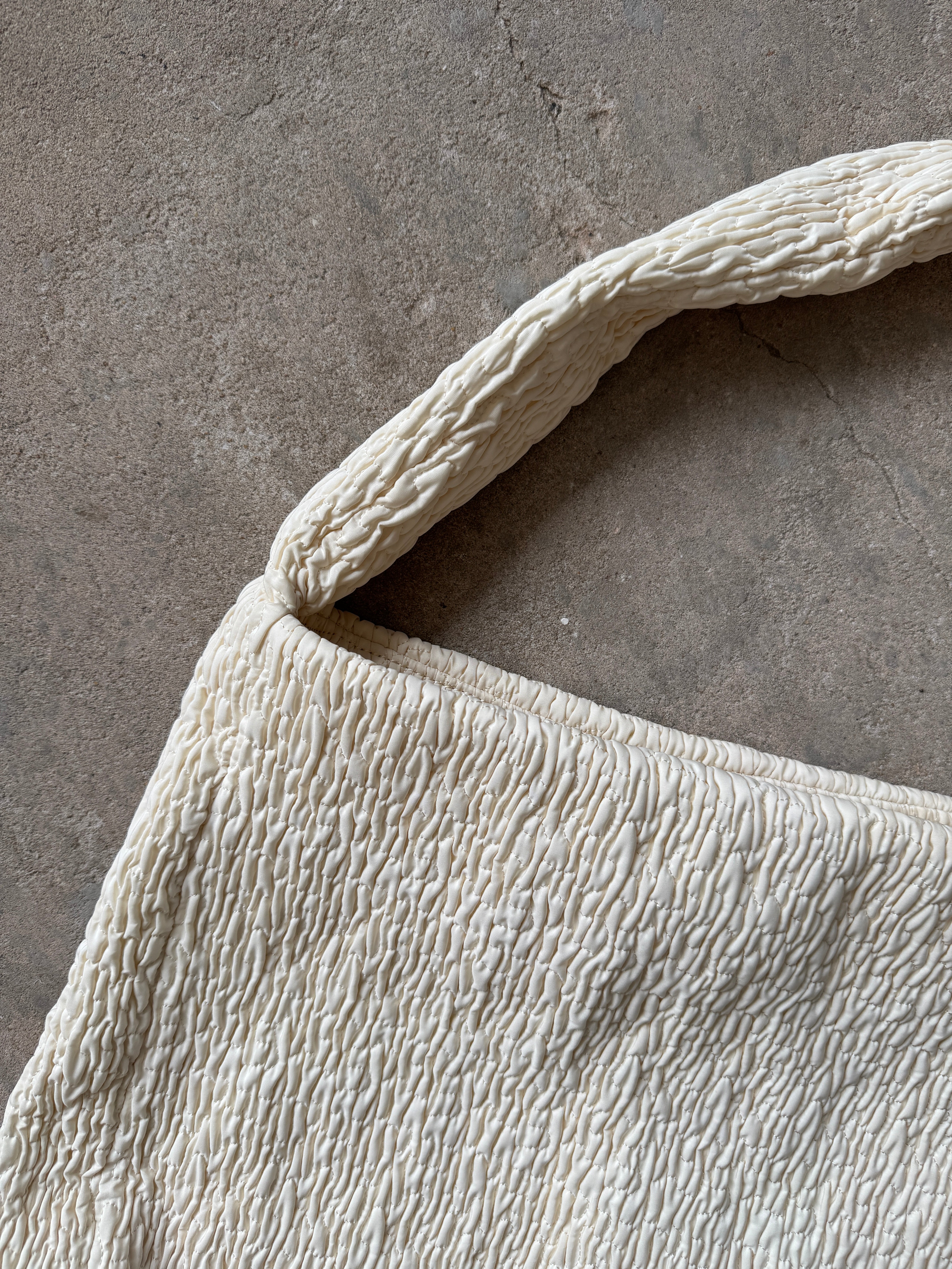 Beautifully constructed with a textured finish. Made from recycled polyester with a recycled cotton lining, this oversized shopper can be worn on the shoulder or as a crossbody bag. A neutral accessory with a sustainable focus.