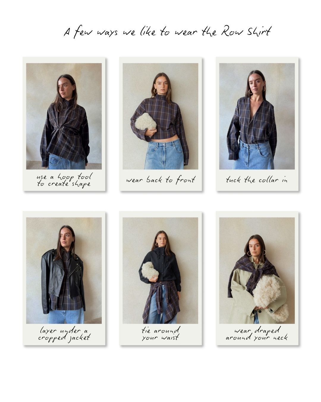 Designed and made in the UK, and produced in limited quantities, the Row Shirt has a wide, boxy cut offering multiple styling options - designed to be worn beyond the conventional way. A unique shaped collar allows it to be worn back to front or tucked in to create an alternative neckline. We've added an additional button at the side seam, which enables a cinched fastening for a more sculpted fit. A uniquely shaped collar allows the shirt to be worn back to front or tucked in to create an alternative neckline, while a covered button placket creates a clean, minimalist finish.