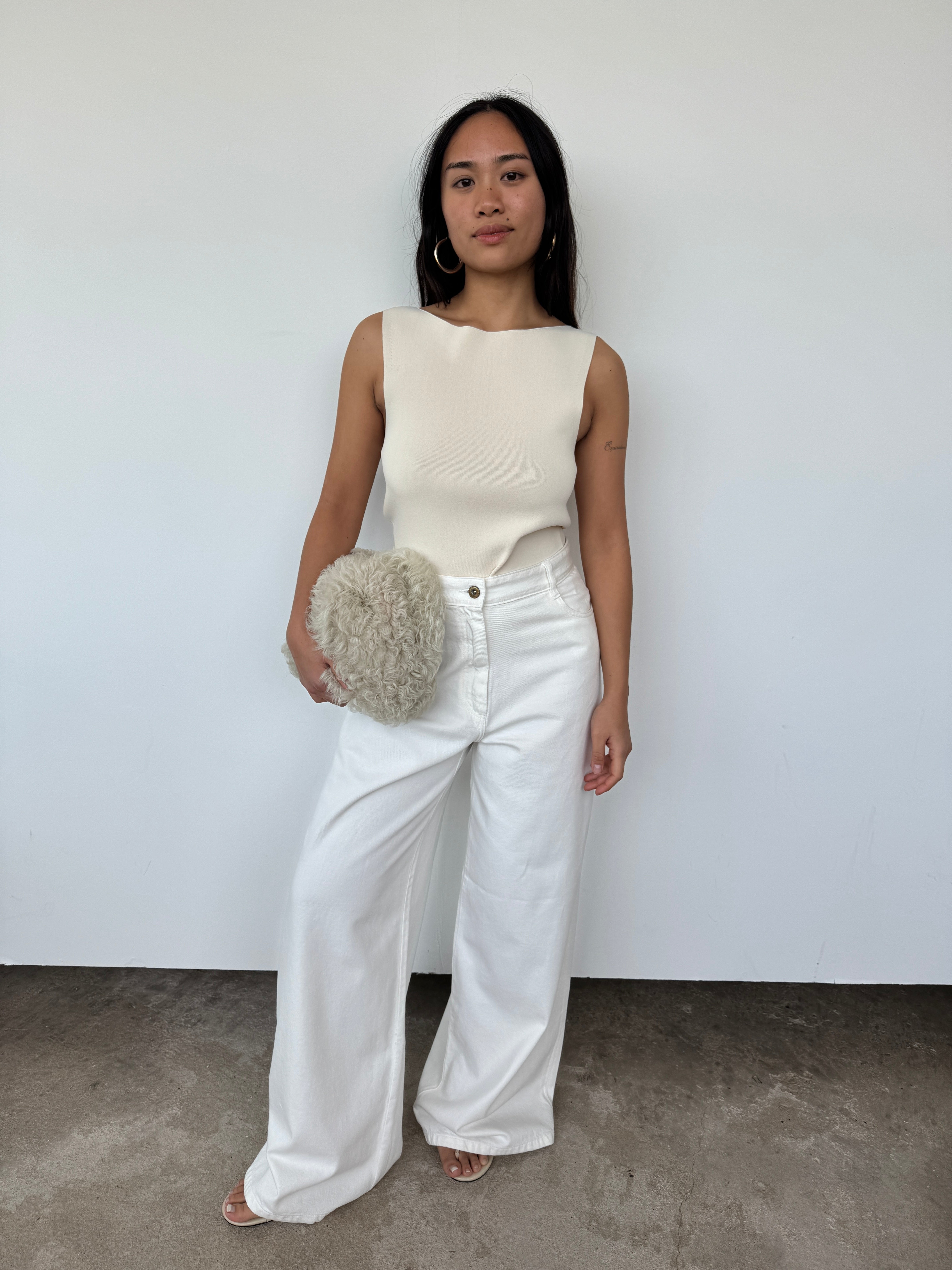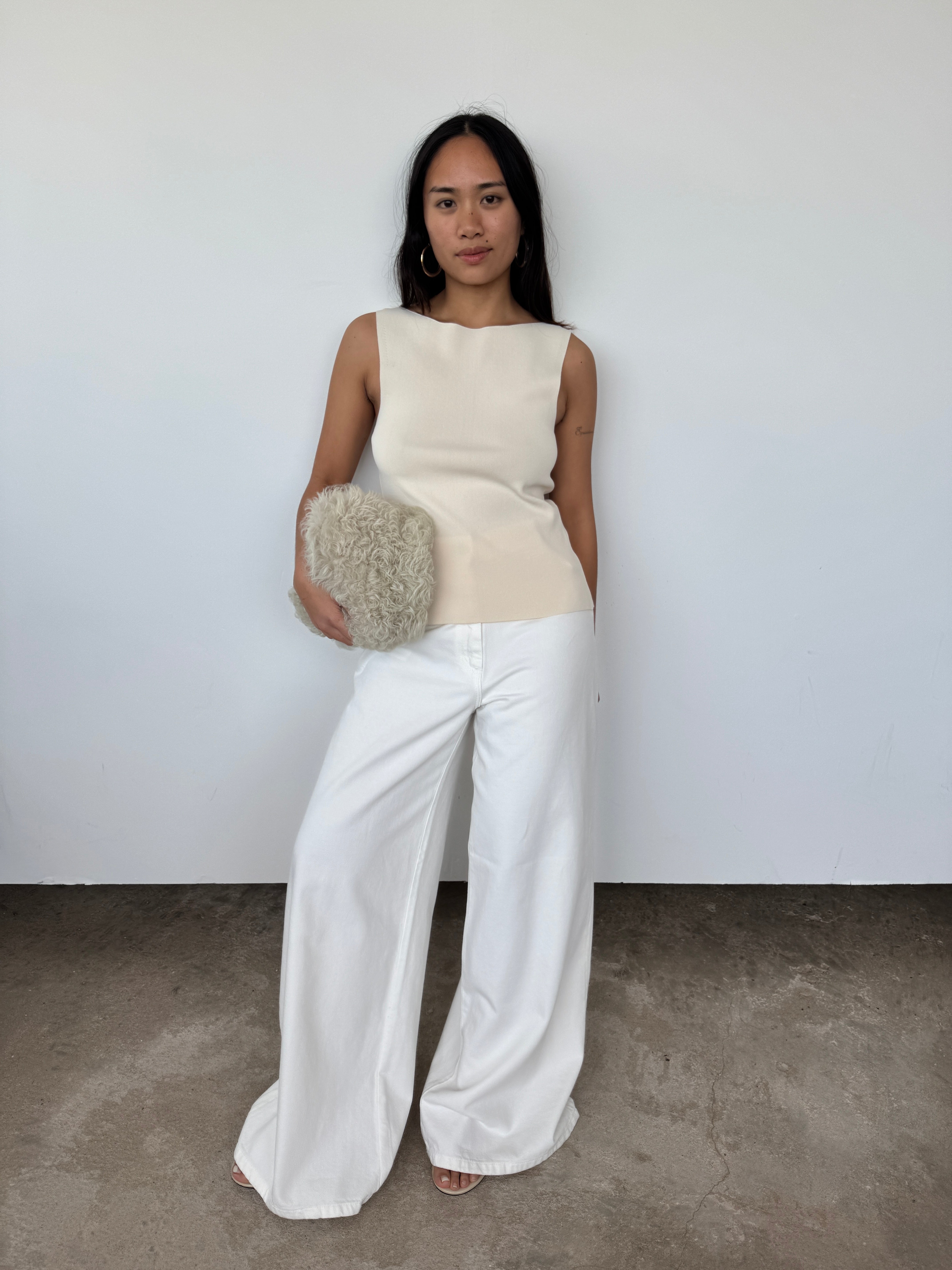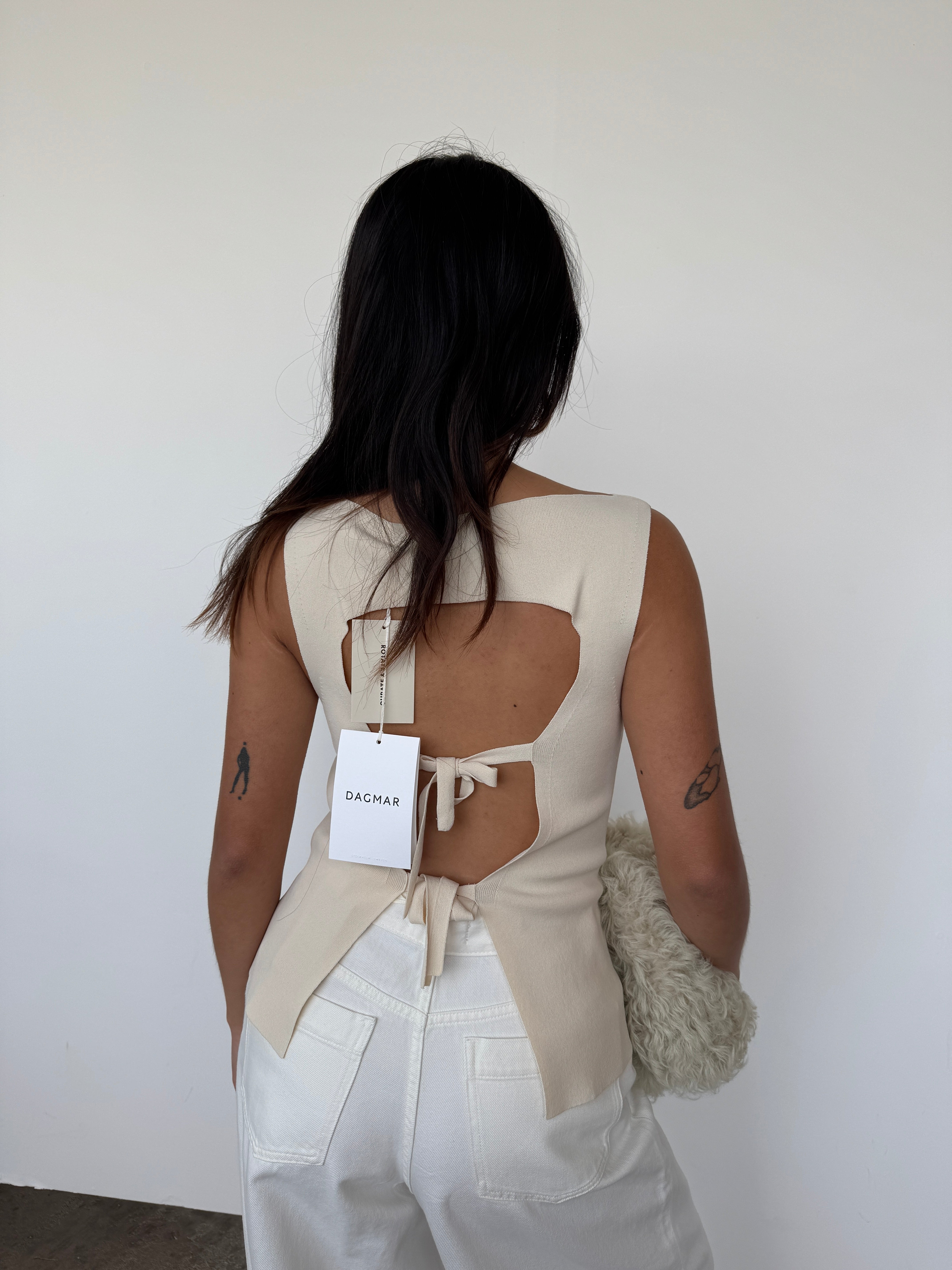 Dagmar 'White Peach' Knitted Open Back Top | M