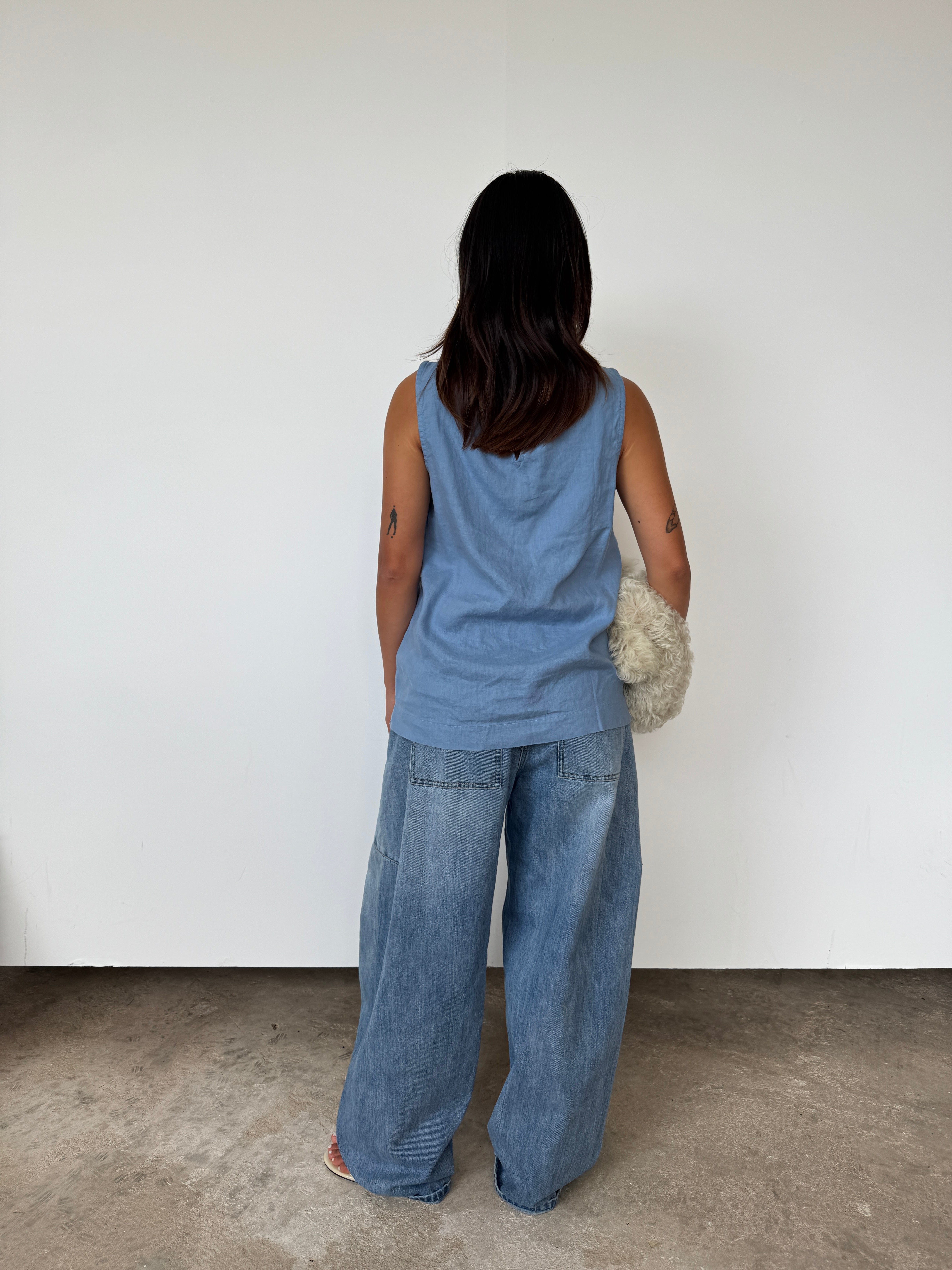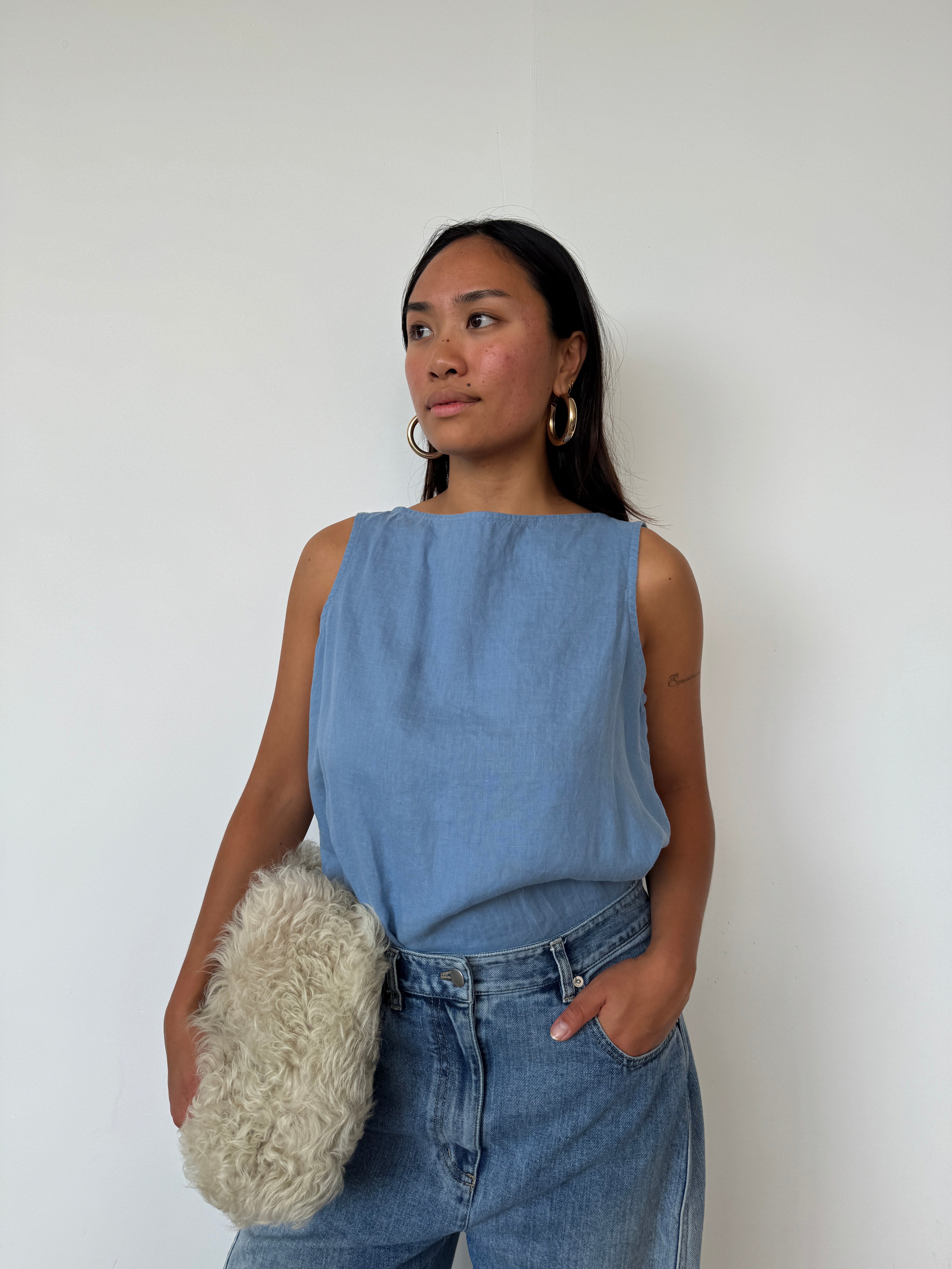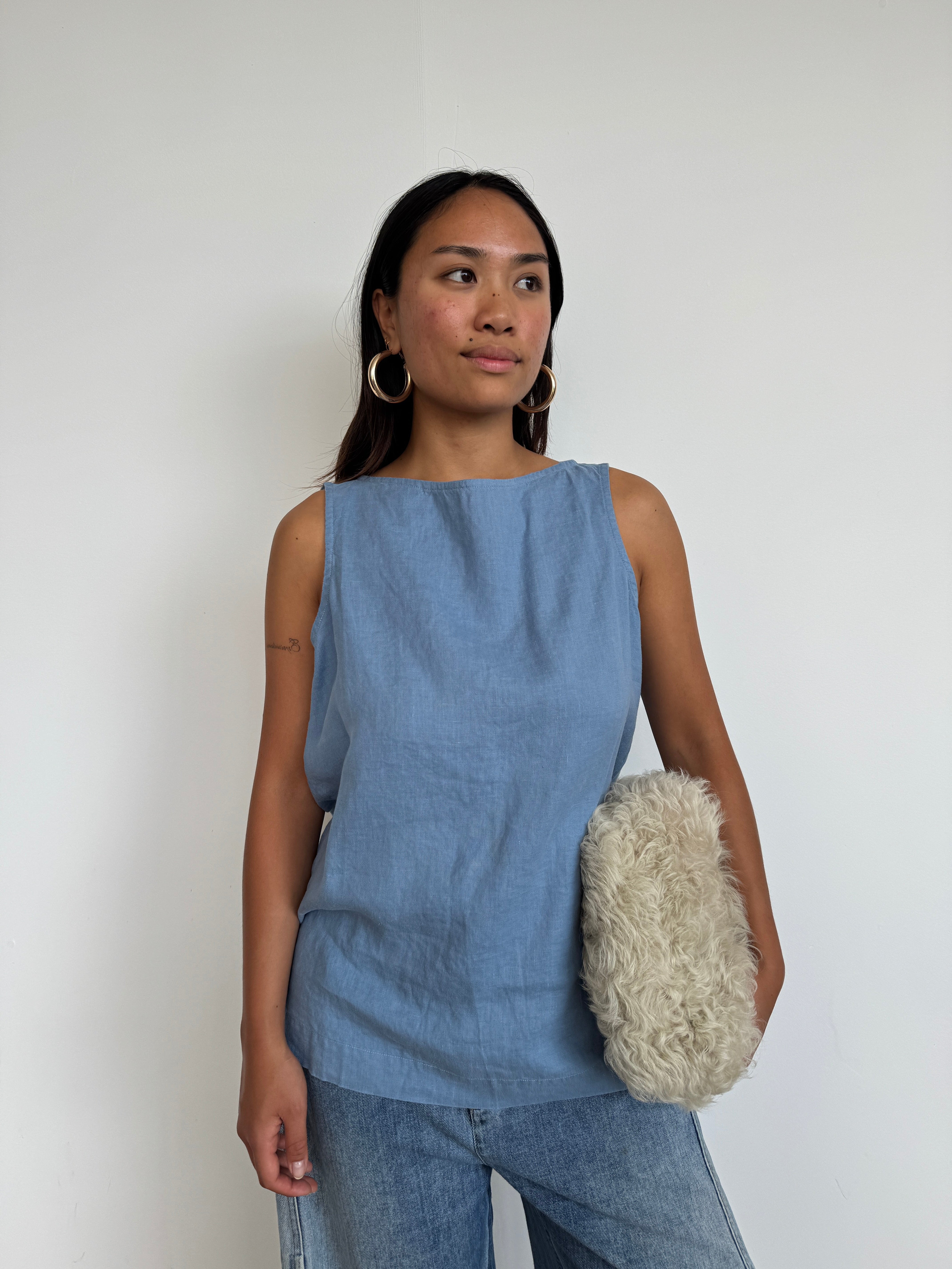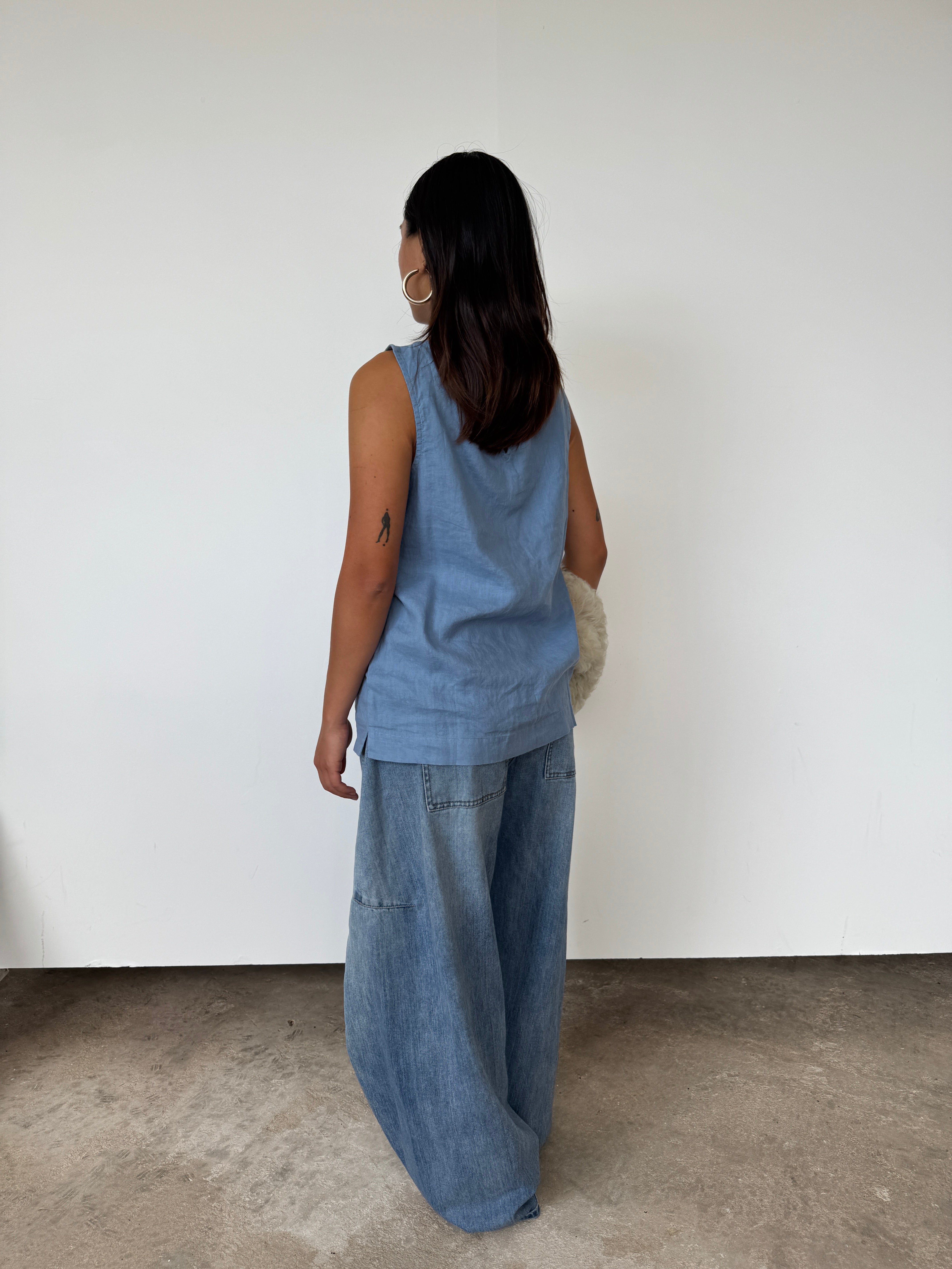 Donni Blue Linen Sleeveless Top | M