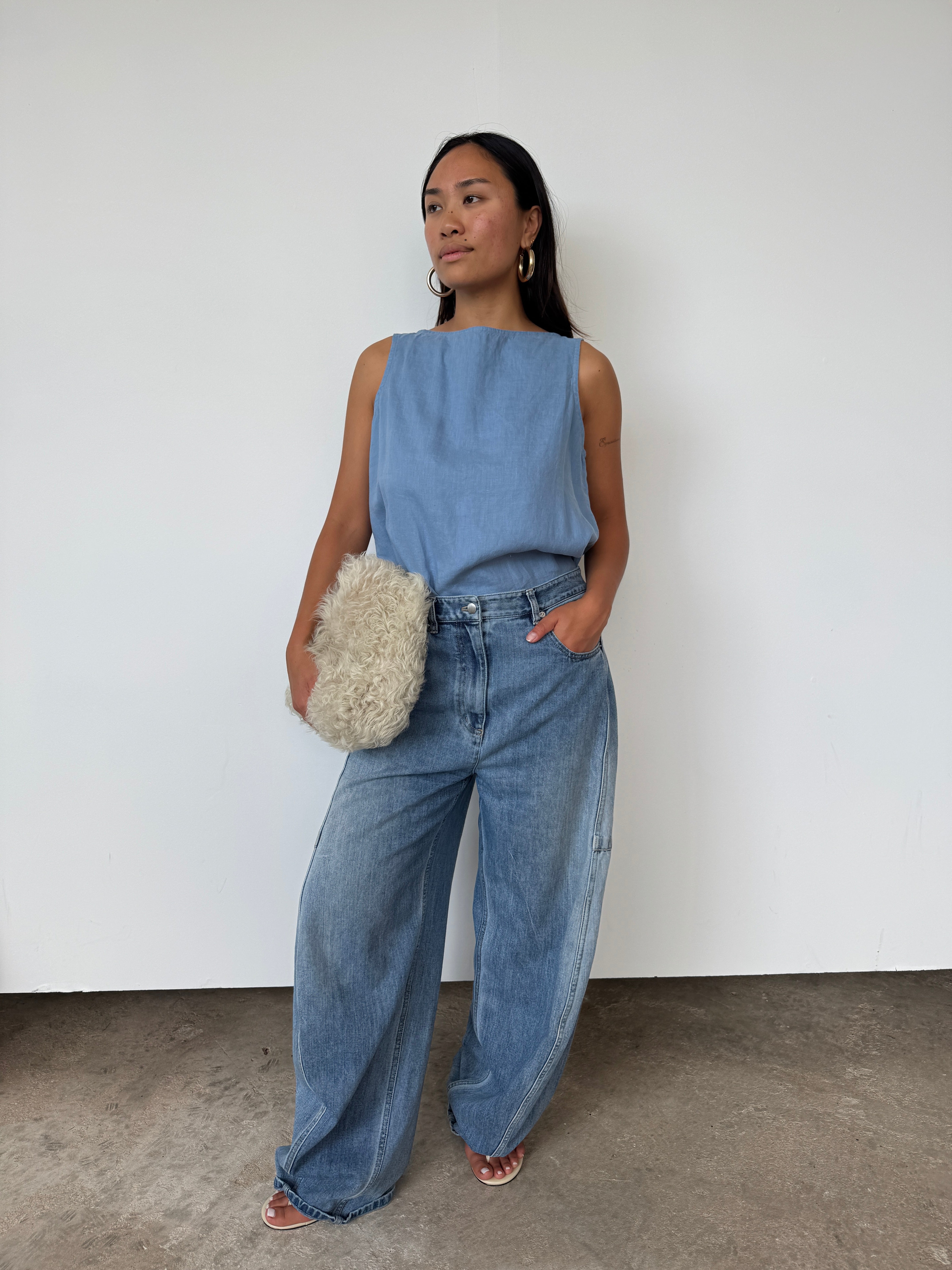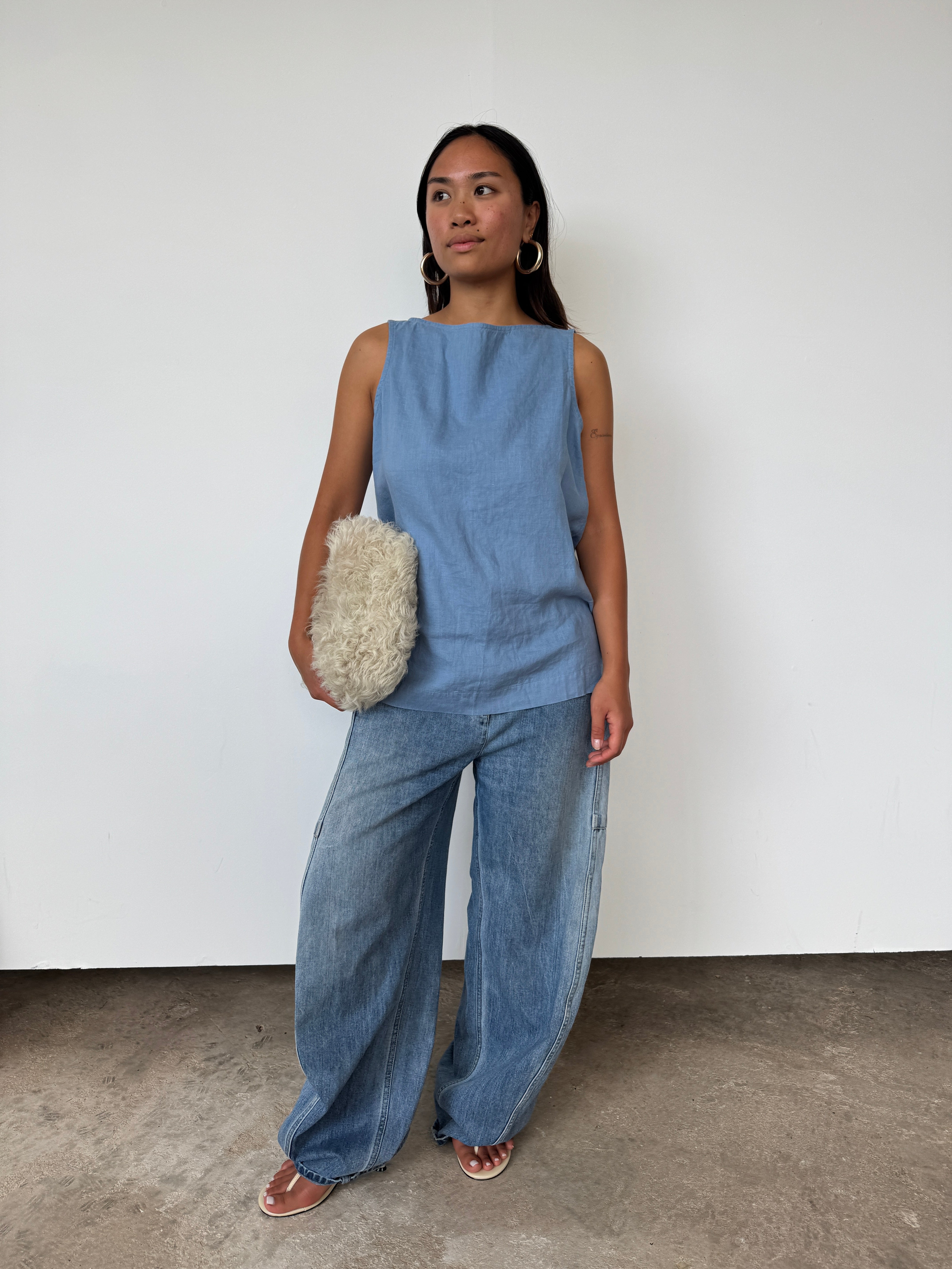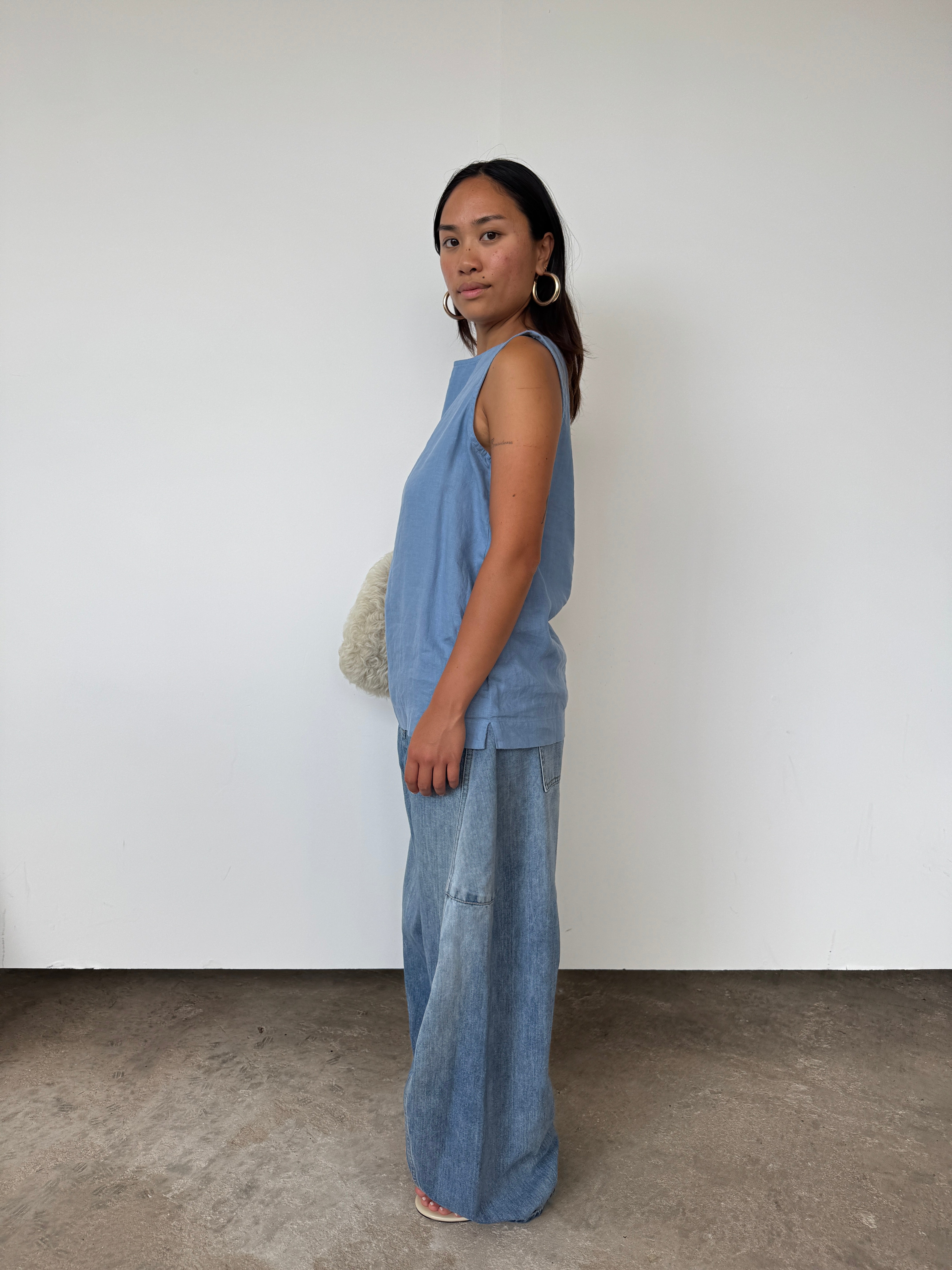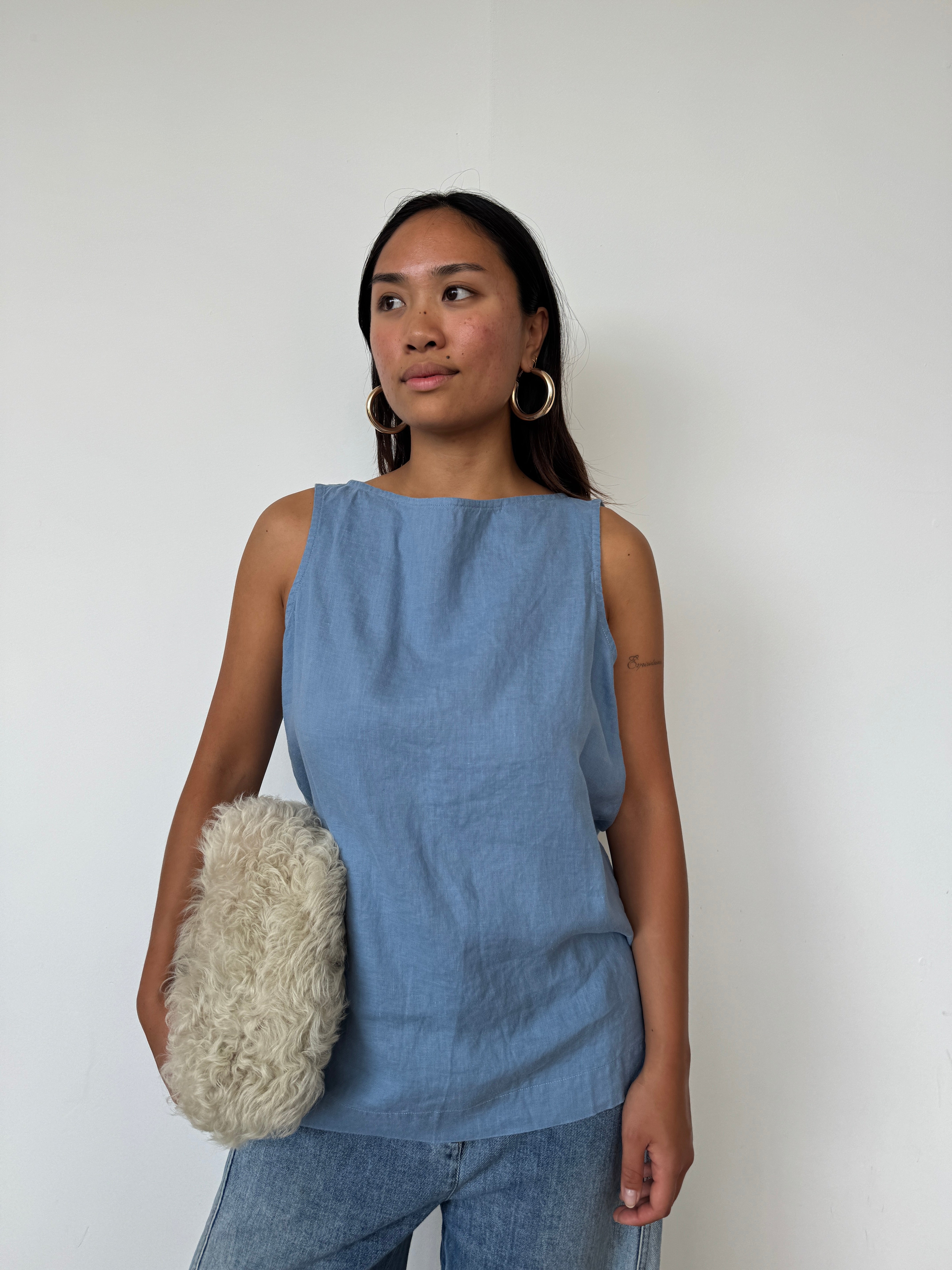 Donni Blue Linen Sleeveless Top | M