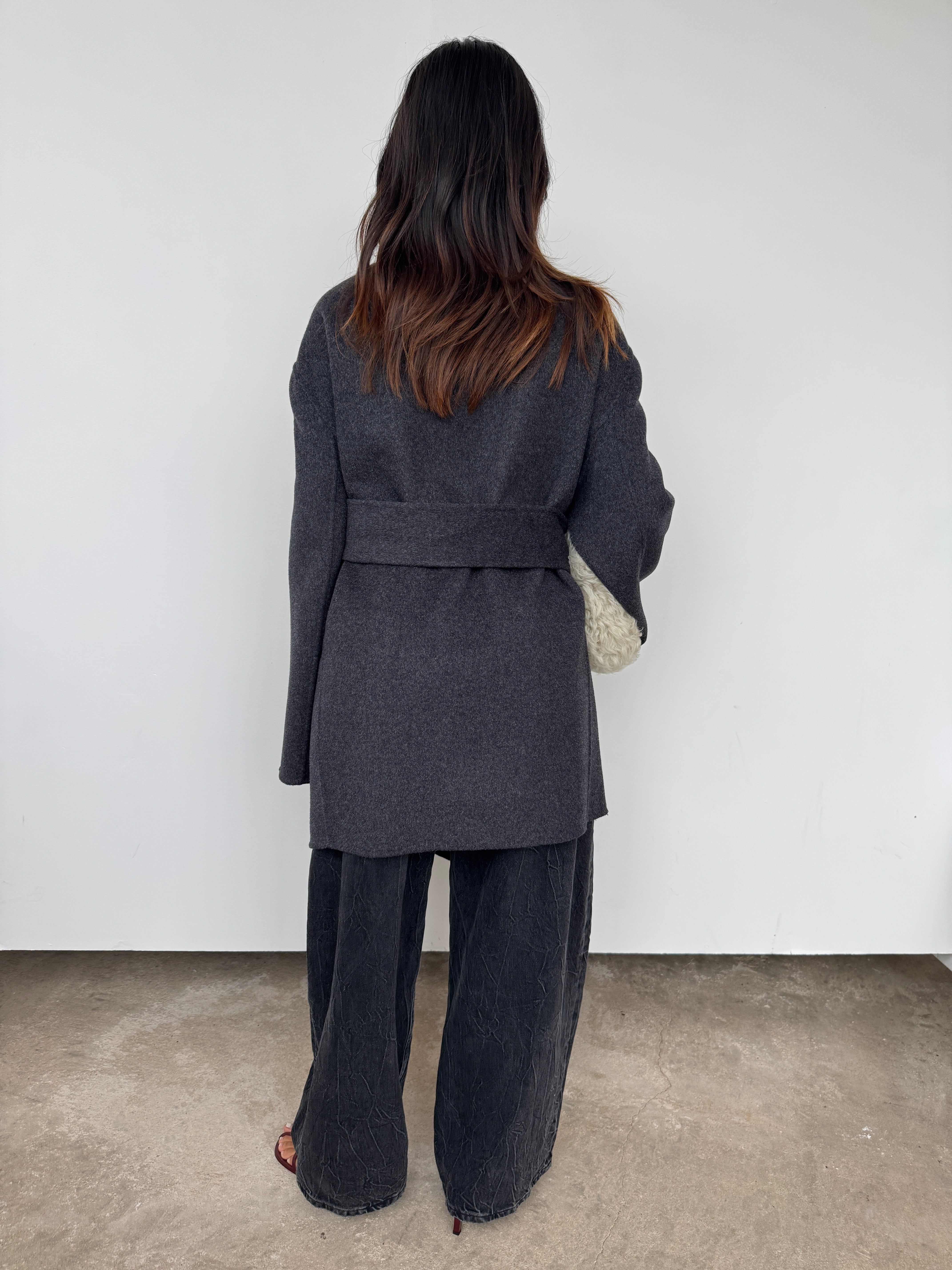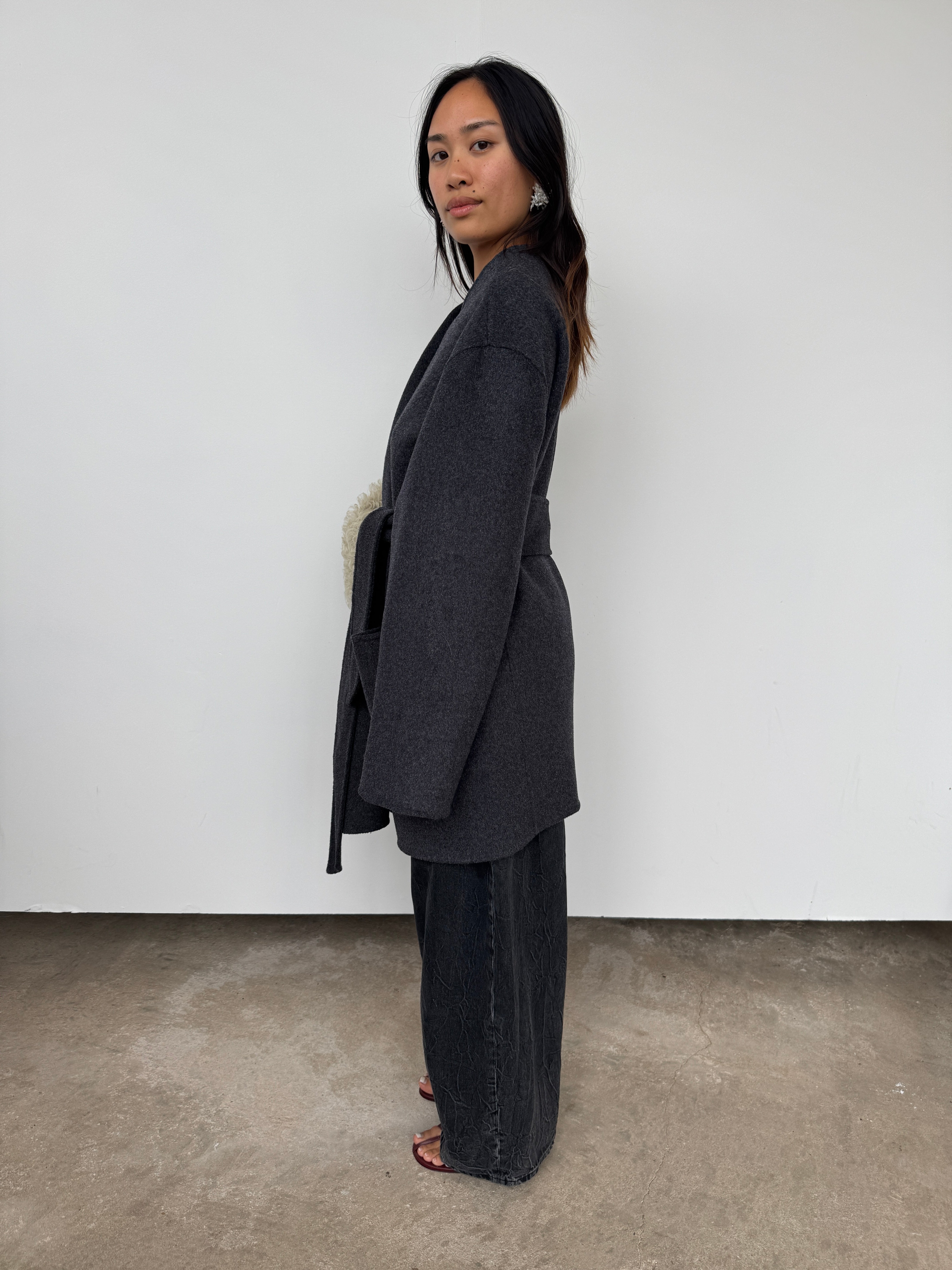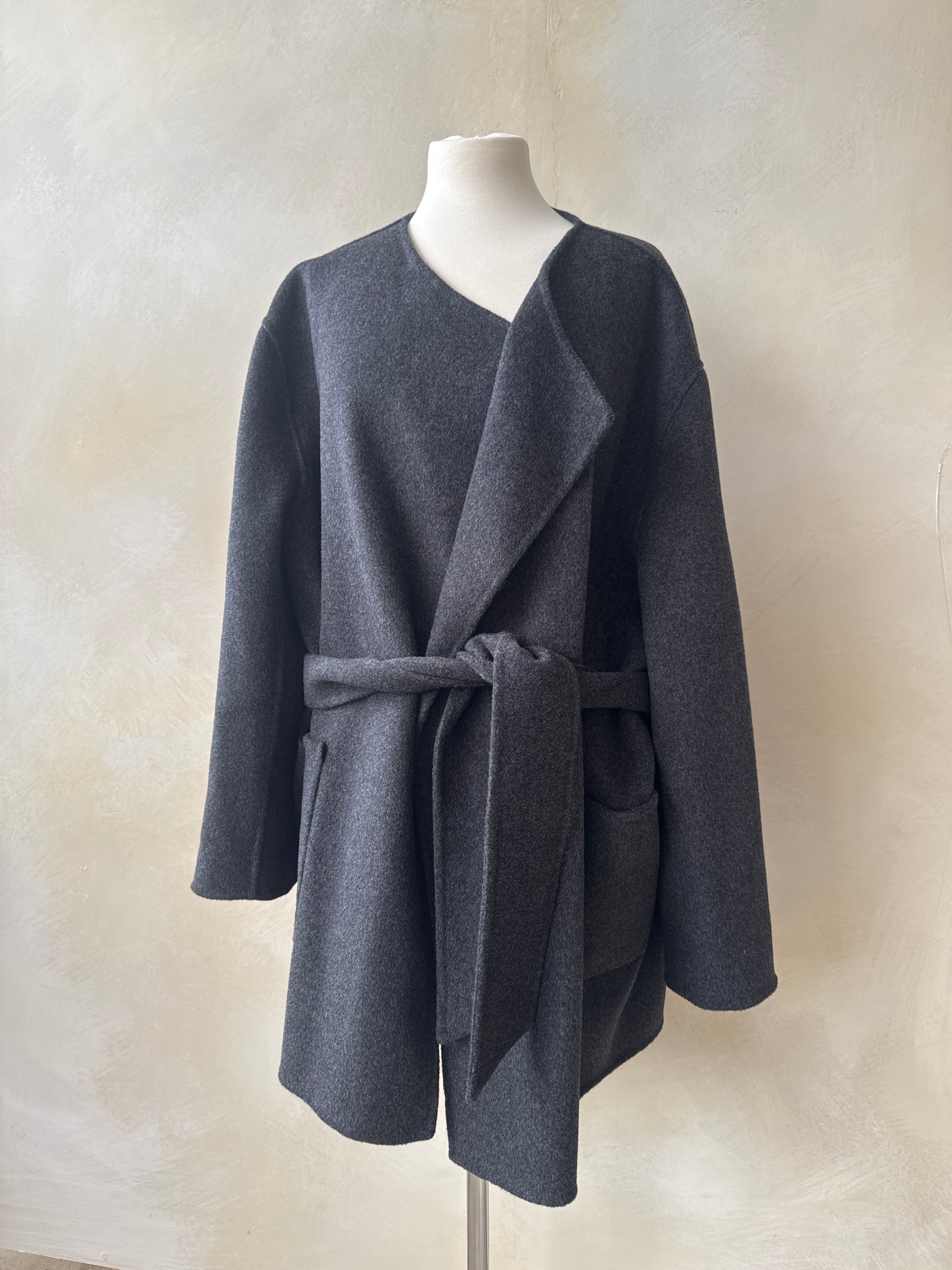 Envelope 1976 Grey Wool Belted Jacket | UK14-16