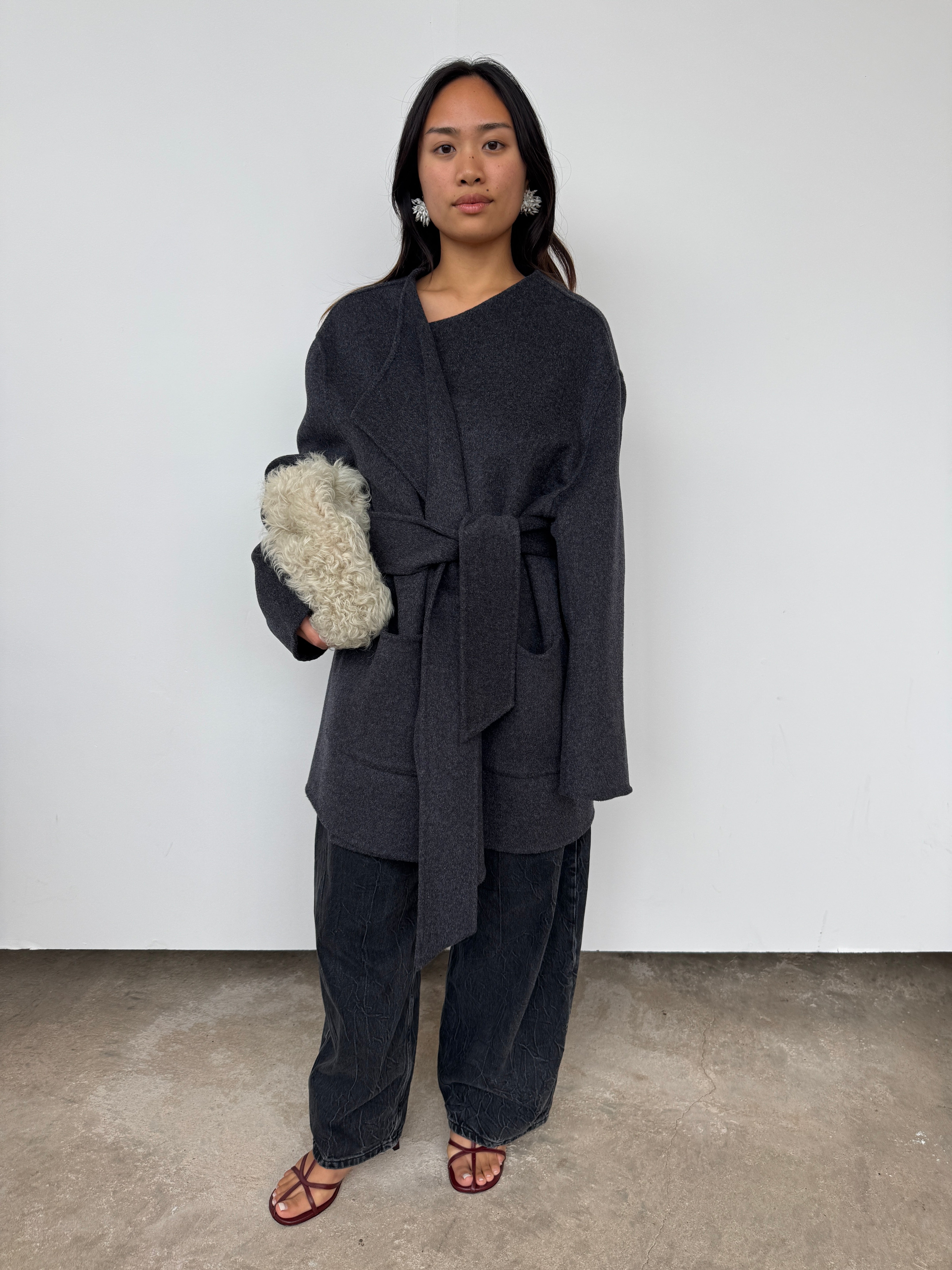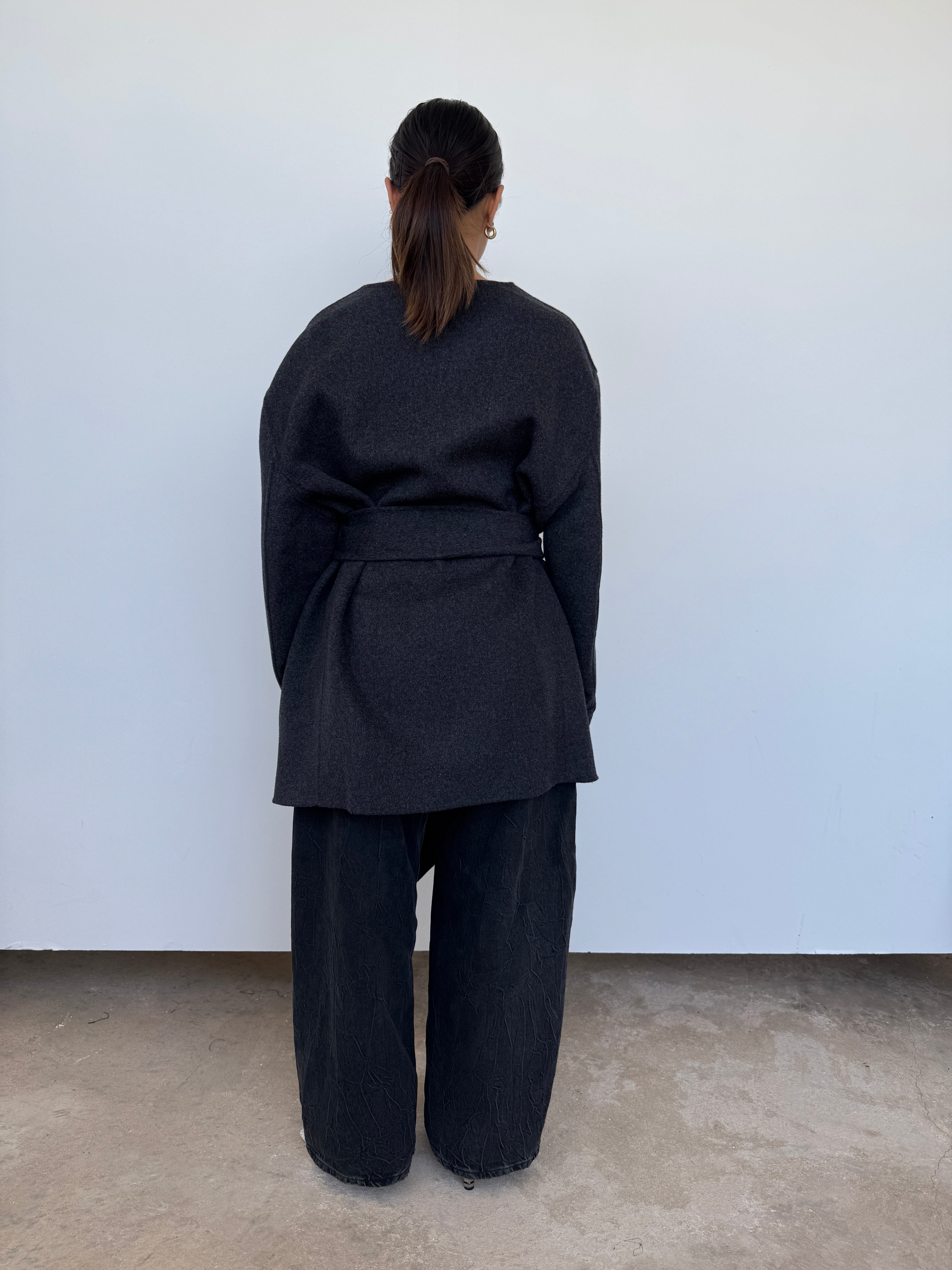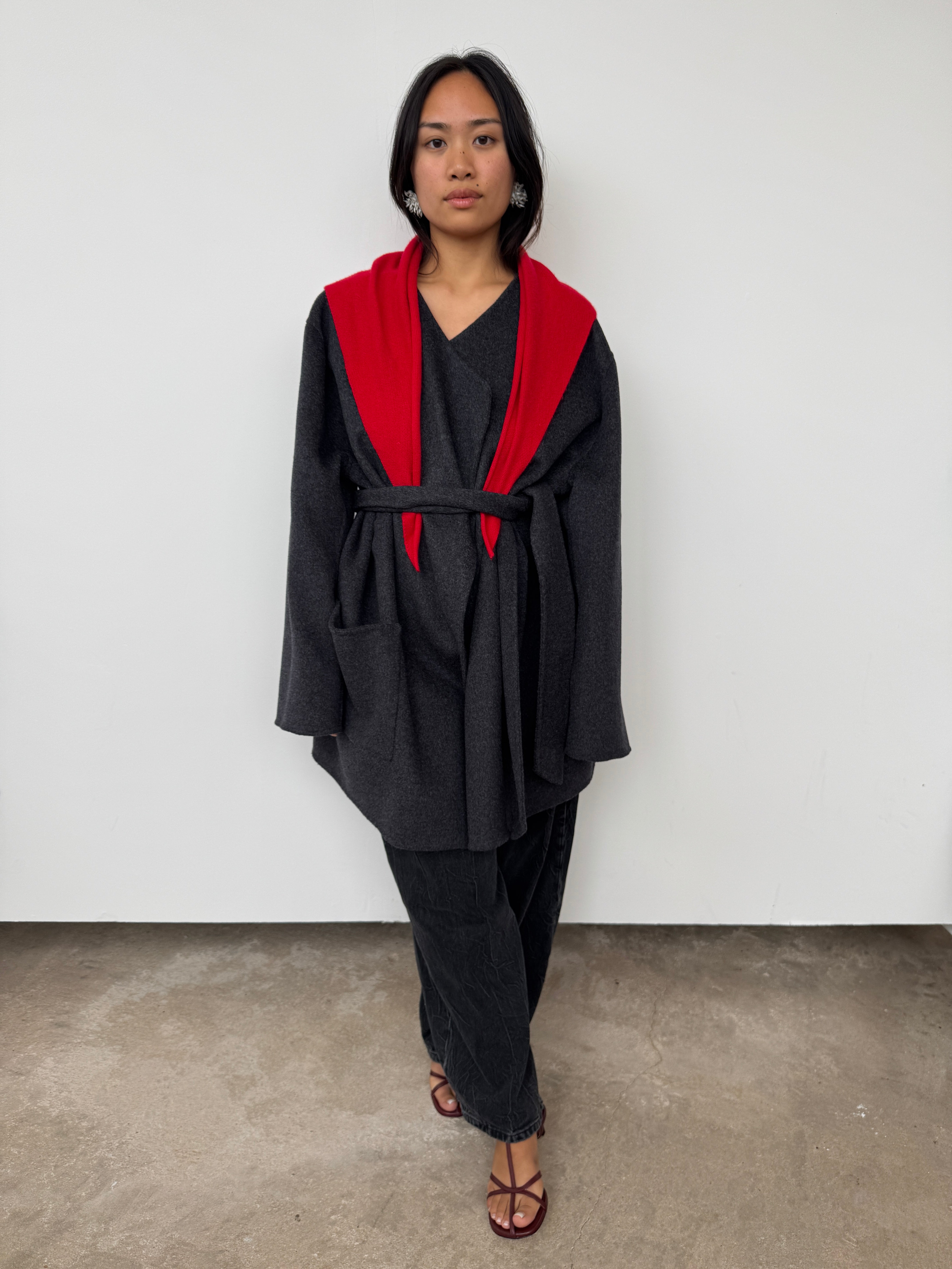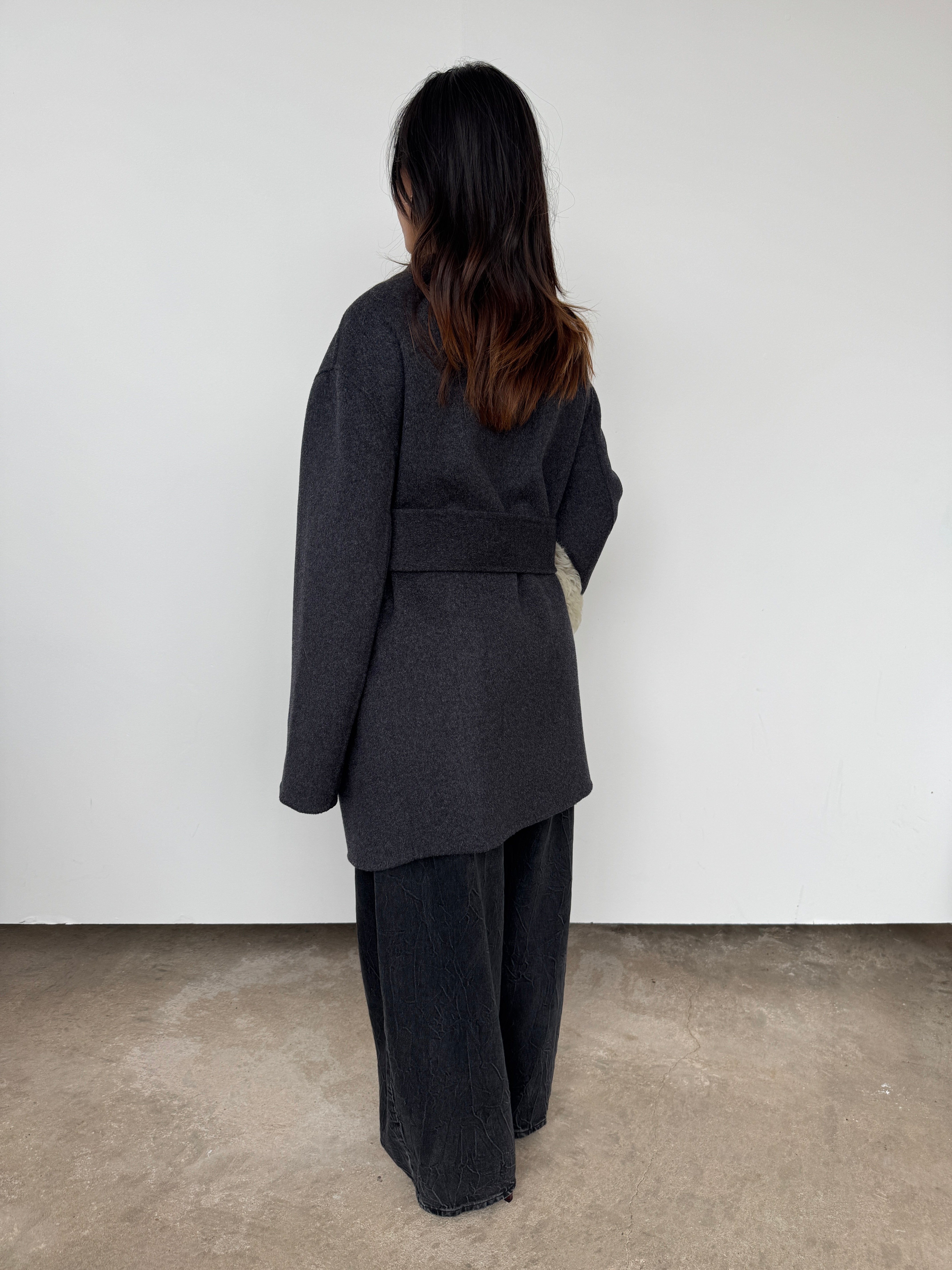 Envelope 1976 Grey Wool Belted Jacket | UK14-16