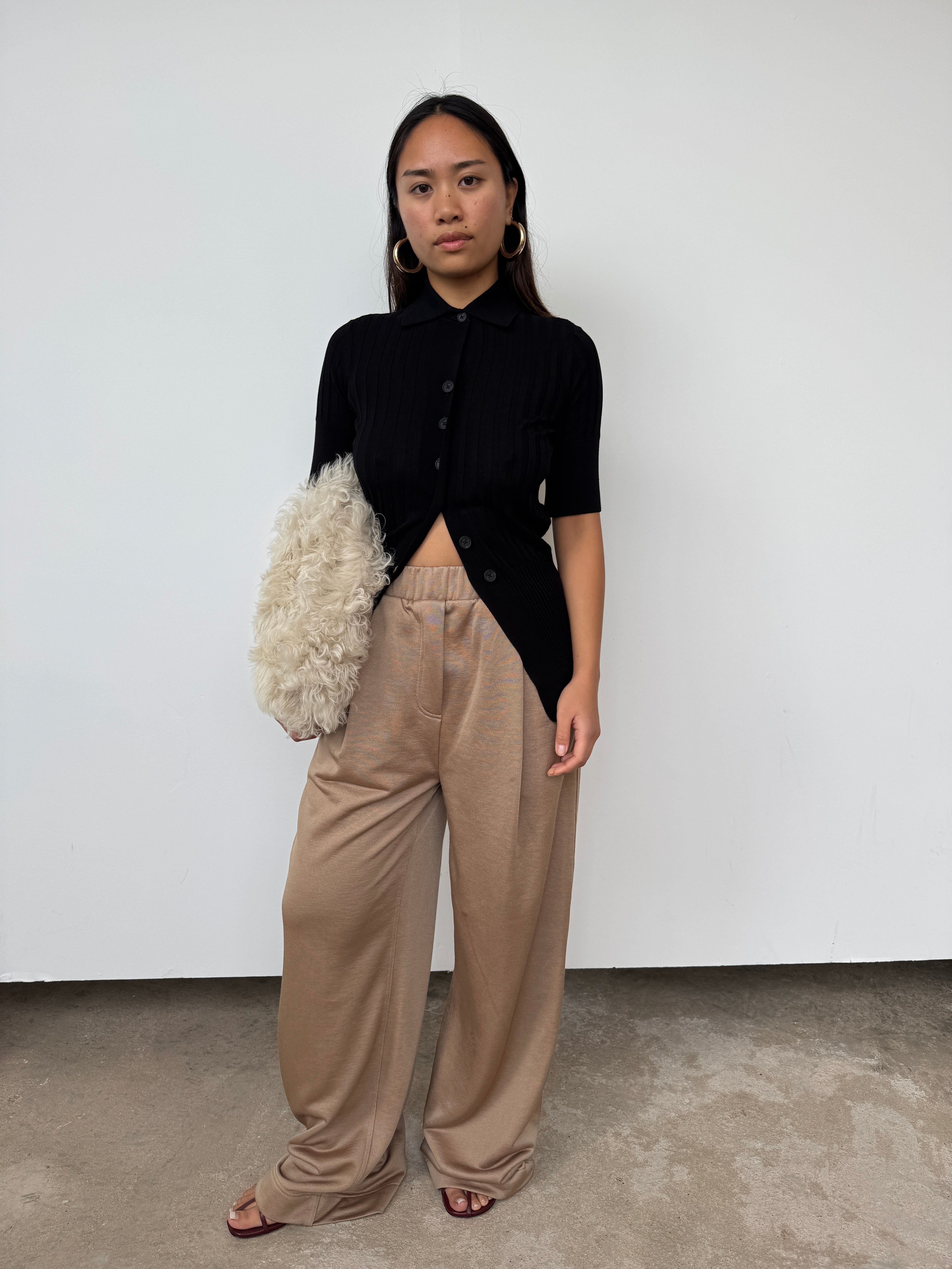 Elevate your wardrobe with this refined knit polo sweater, expertly crafted from a luxurious blend of silk and tencel. The sumptuous fabric delivers an exceptionally soft feel against the skin, while thoughtful design details including front button fastening and ribbed trims.
