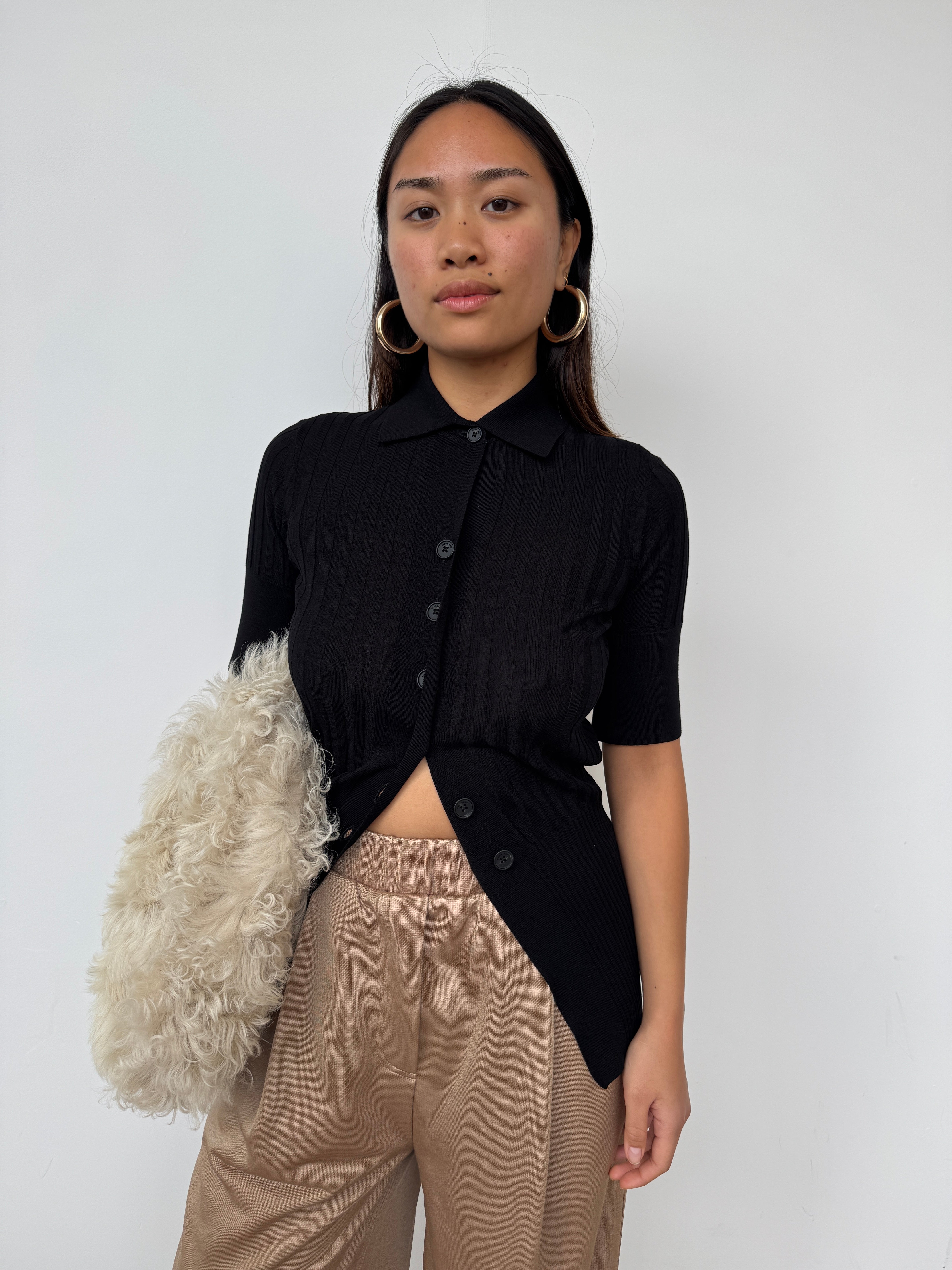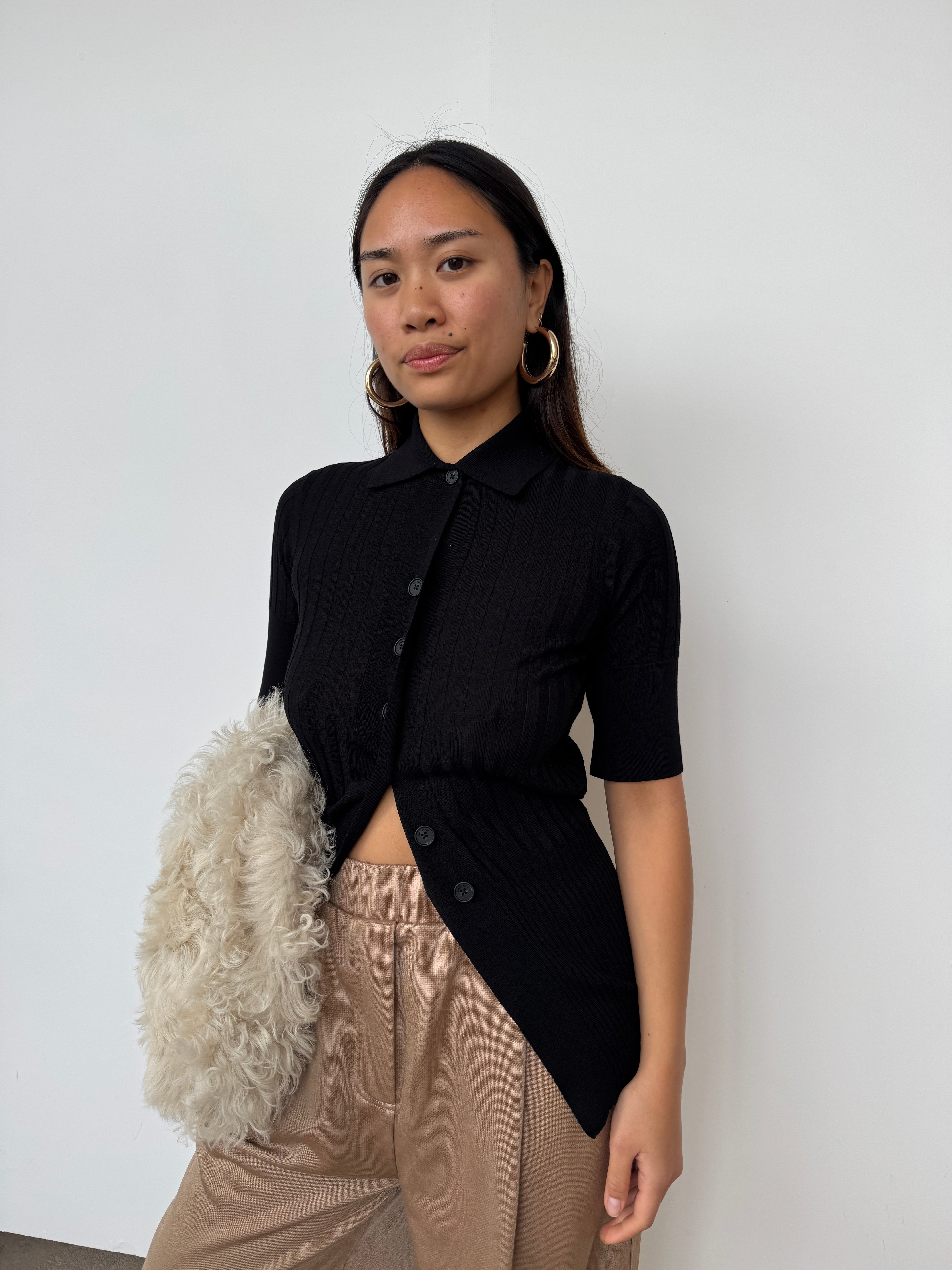Eudon Choi Black 'Rod' Knit Polo Sweater | Small