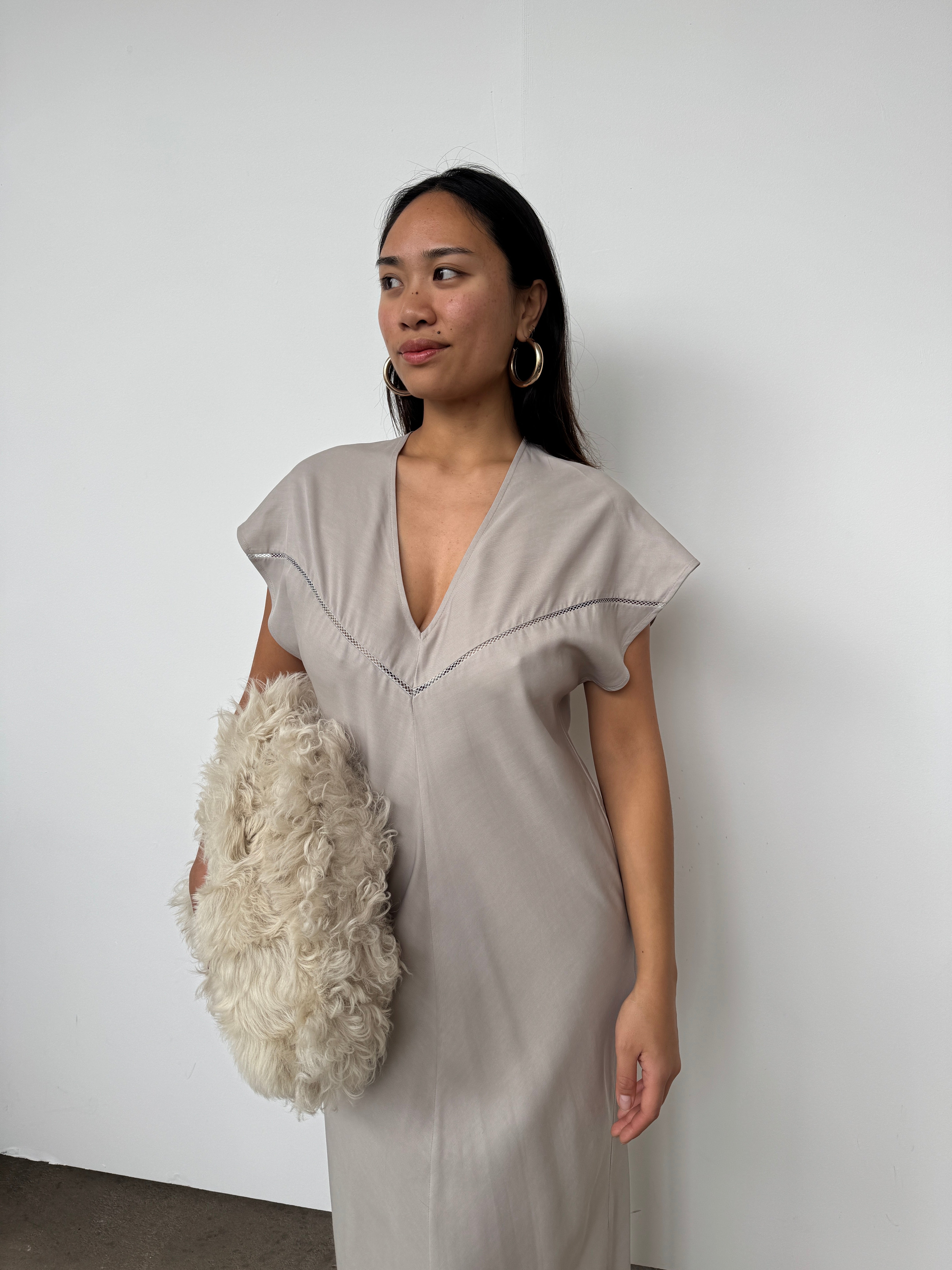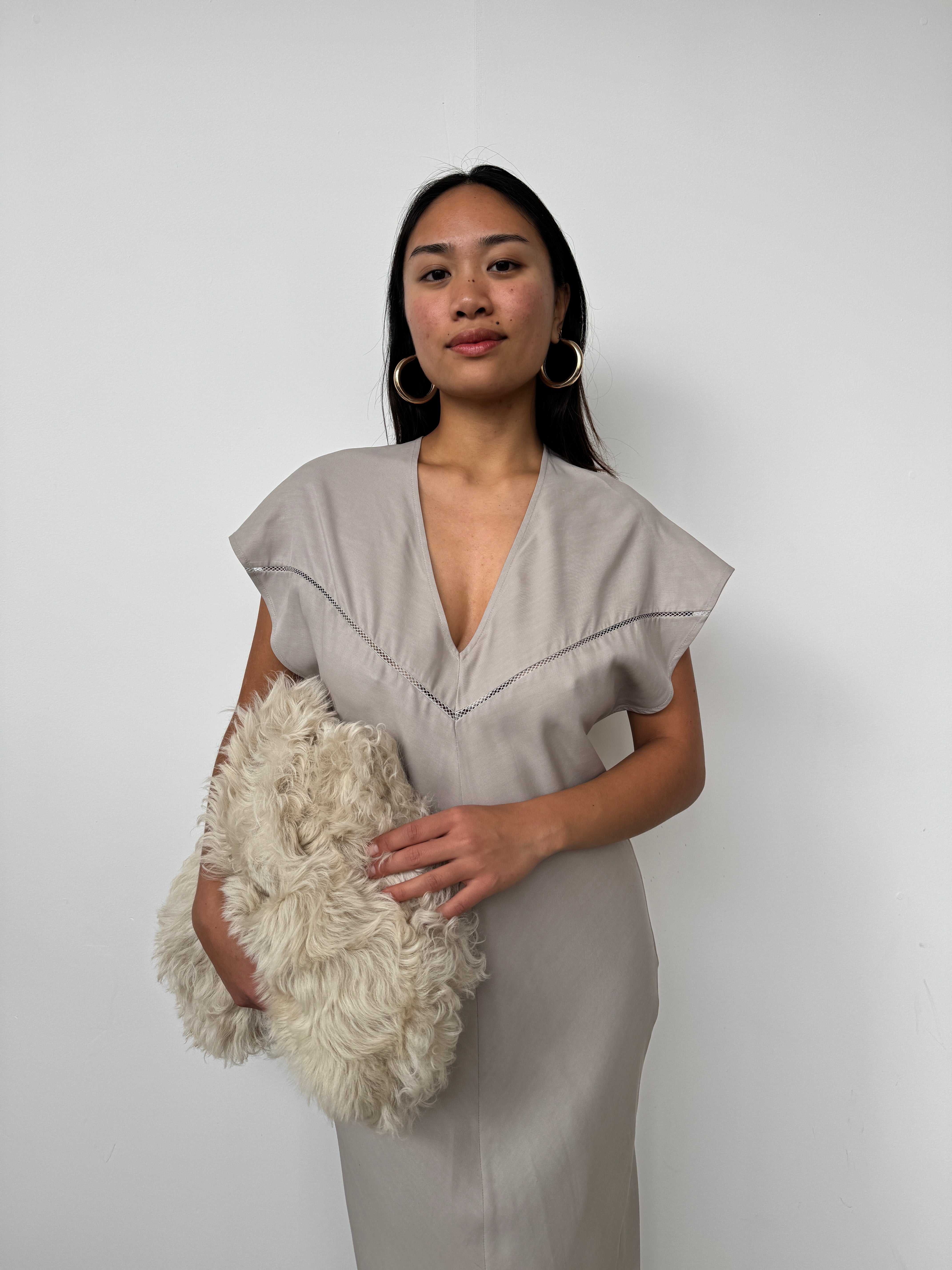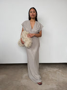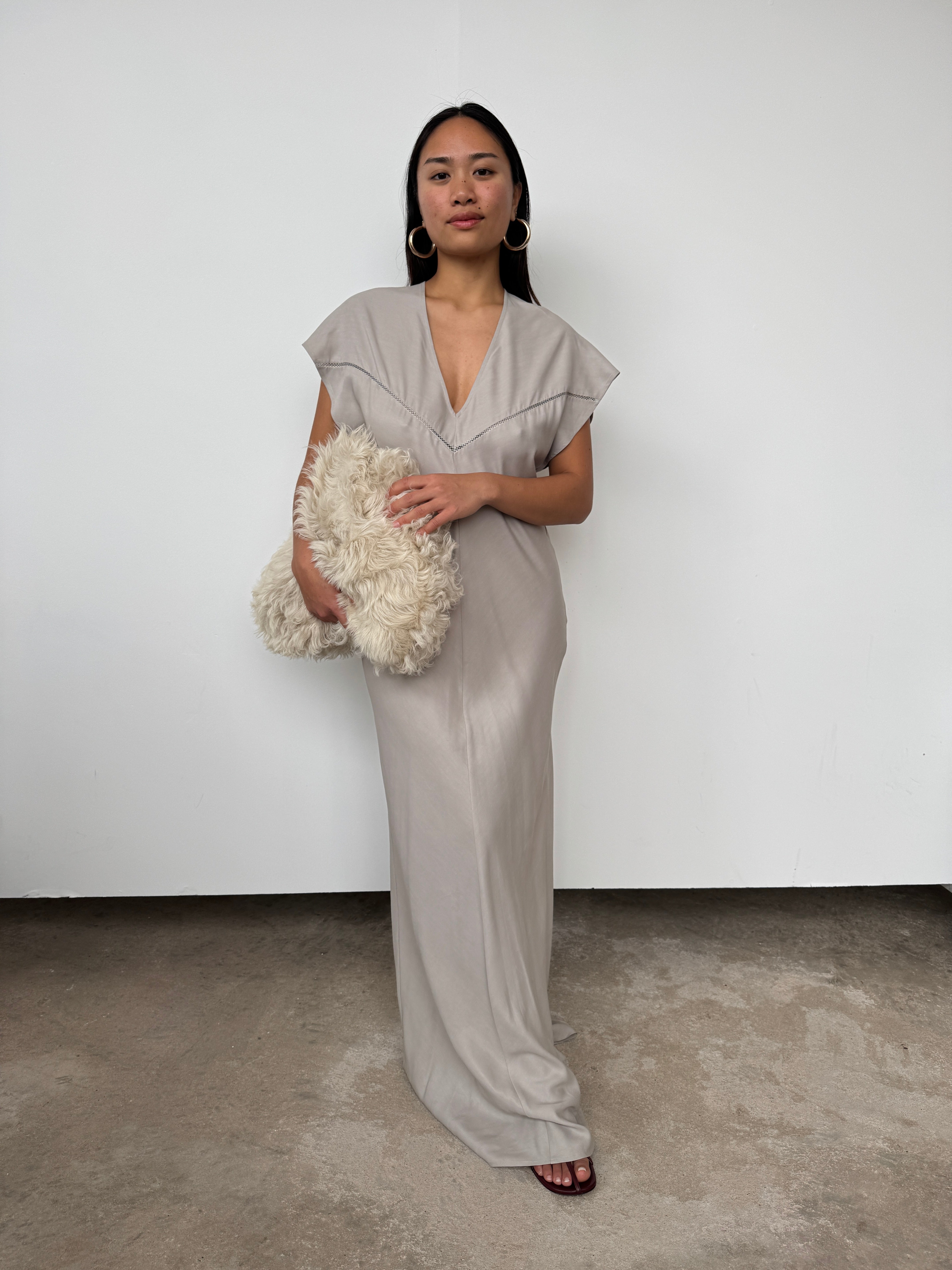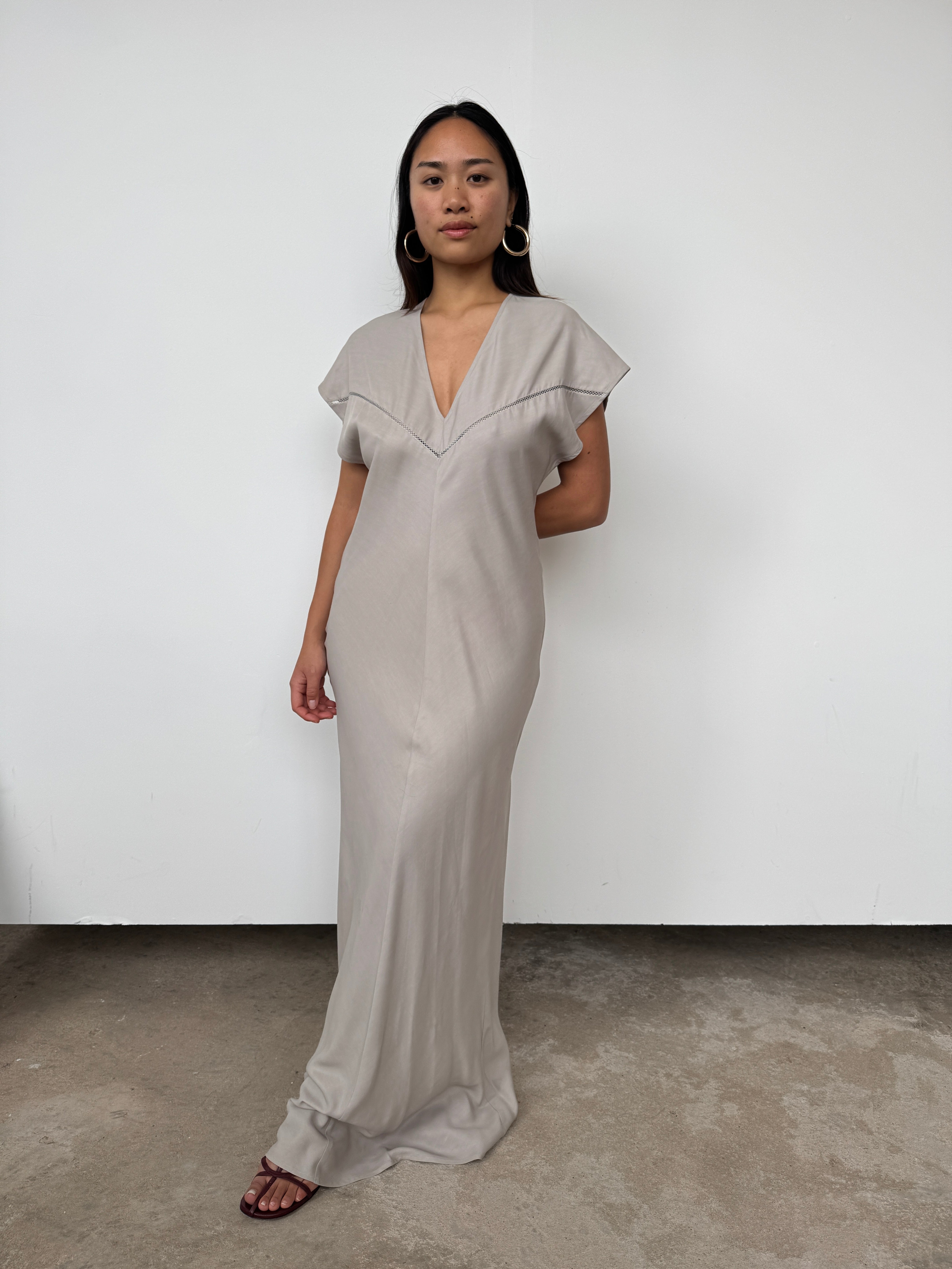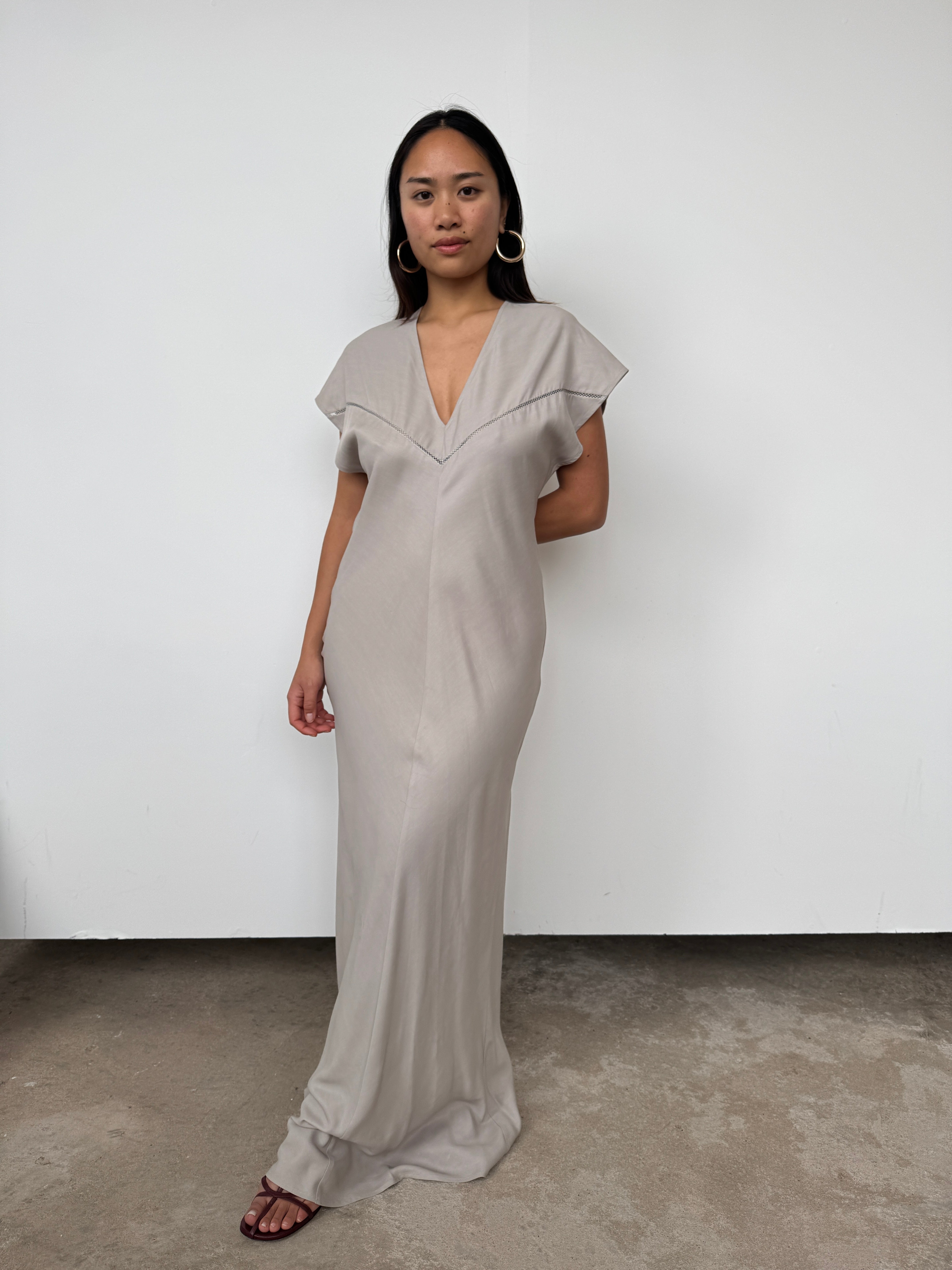 Eudon Choi Misty Grey 'Capri' V-Neck Maxi Dress | UK10 + UK12