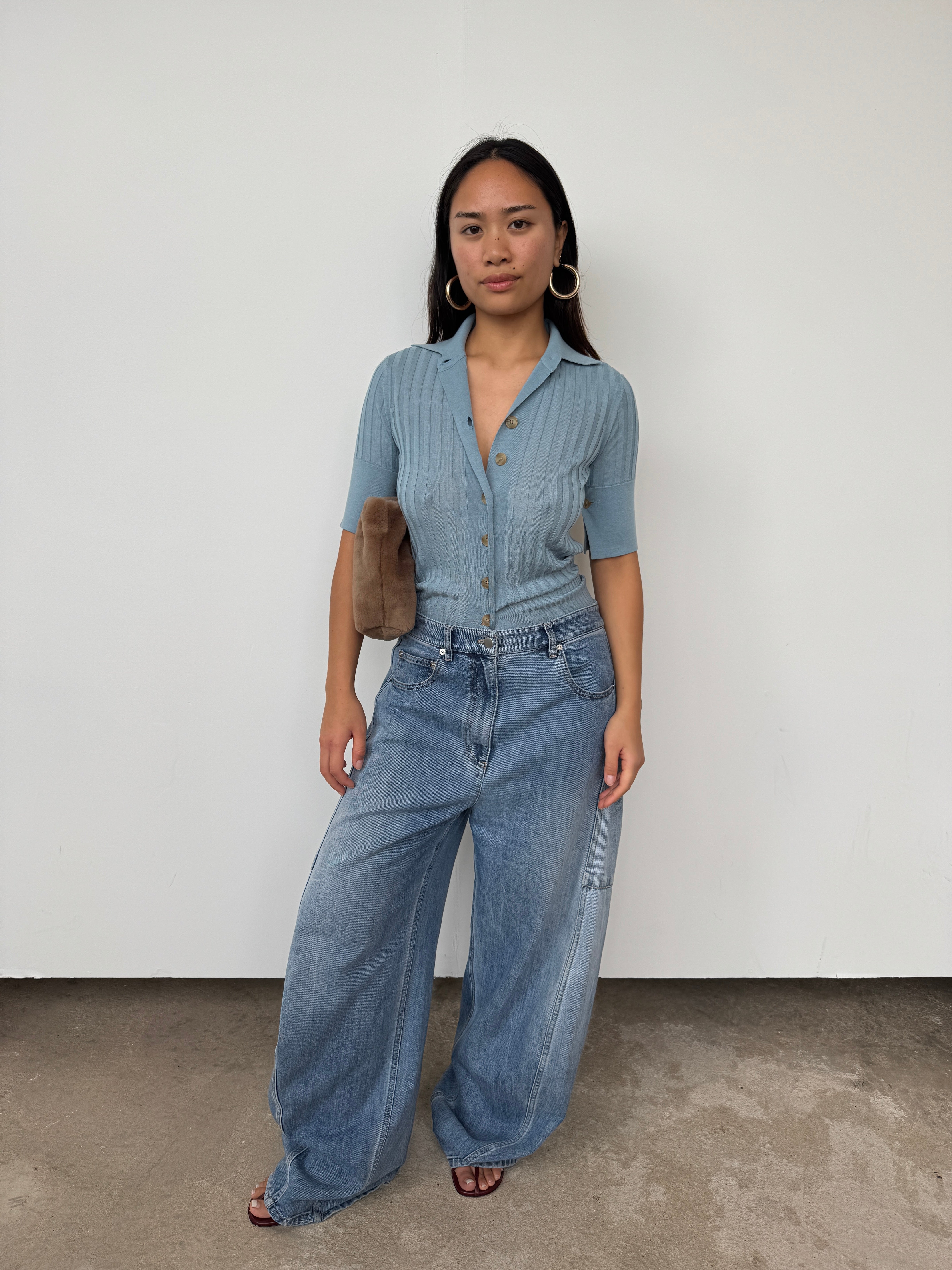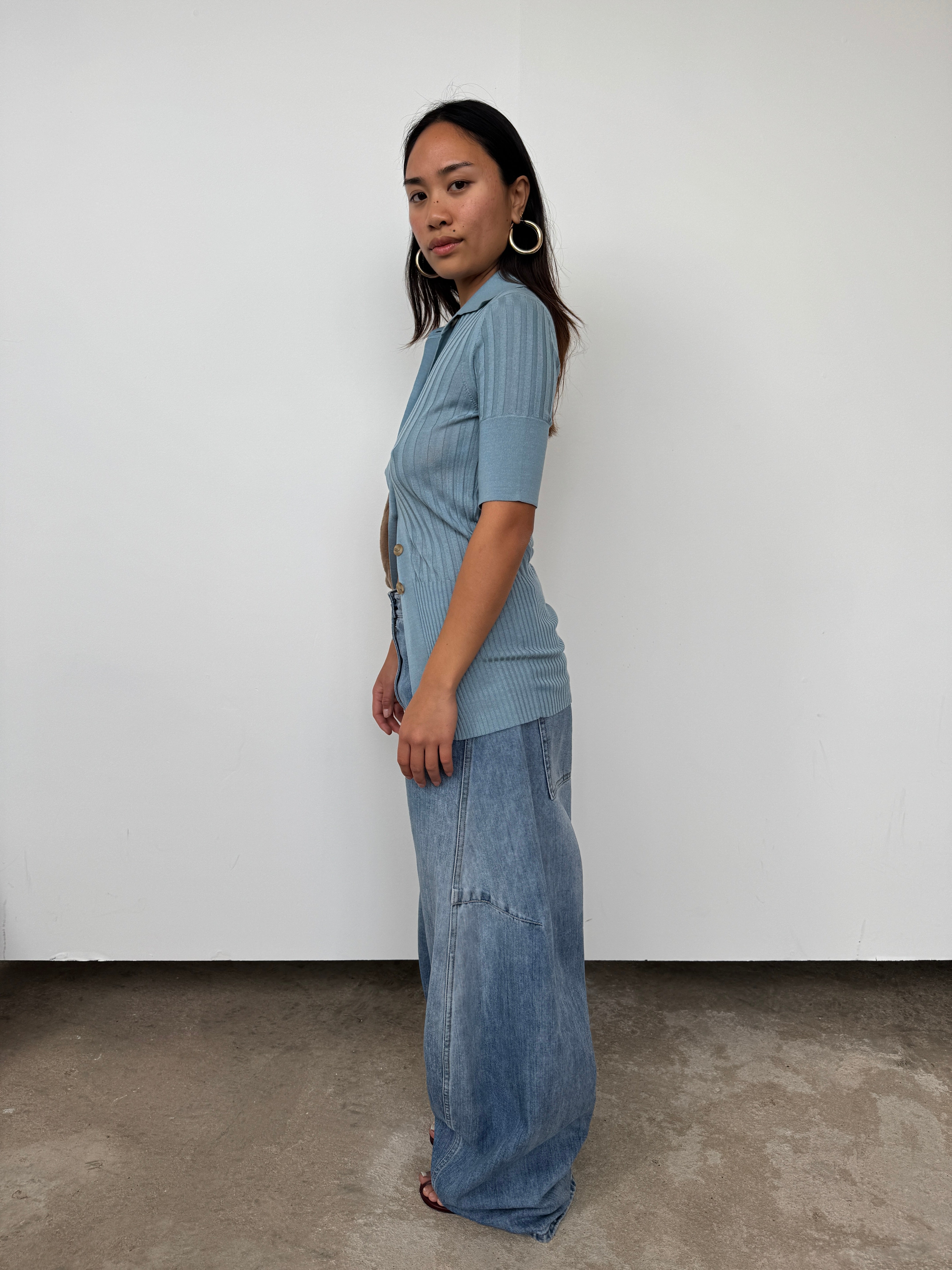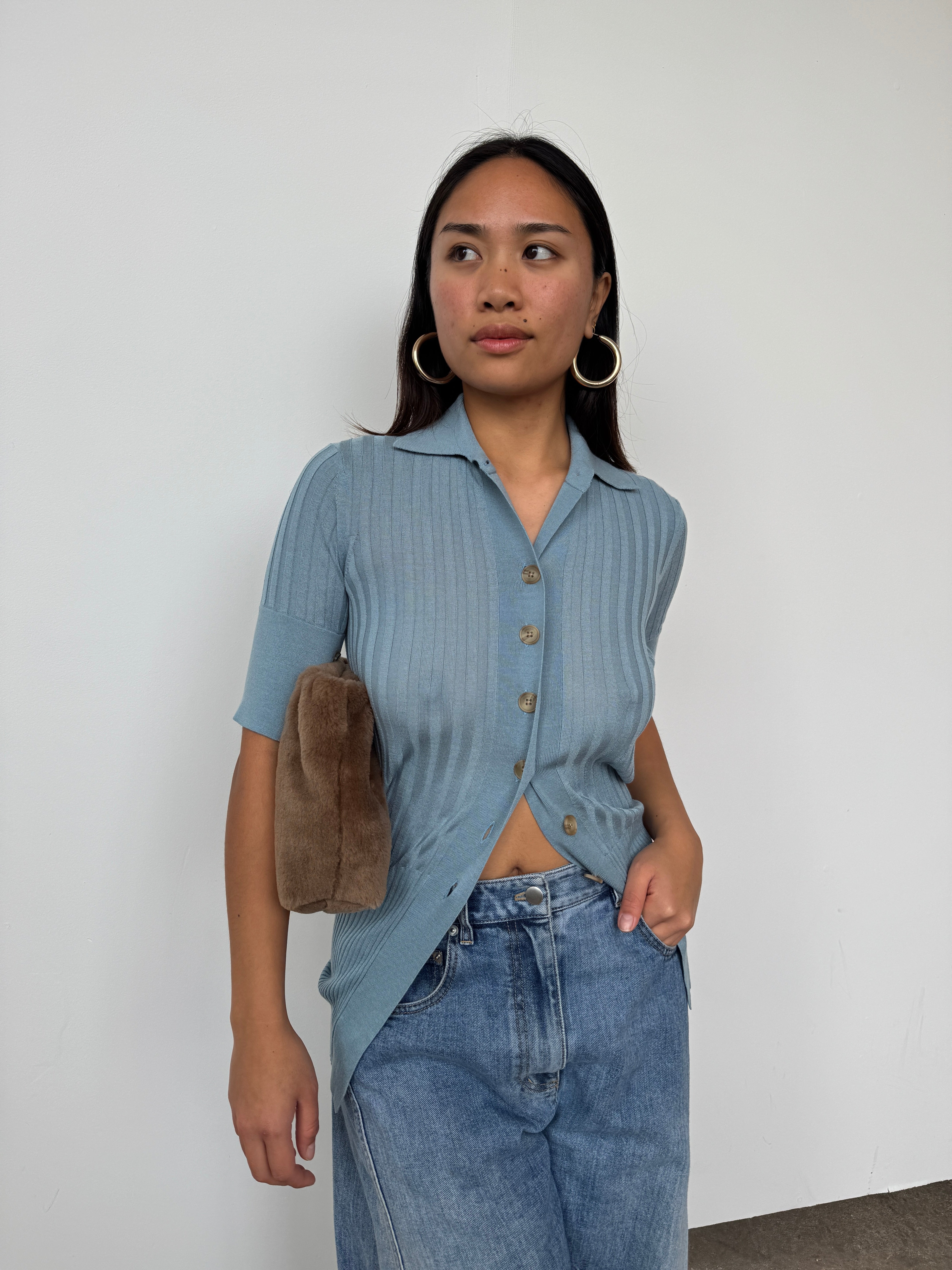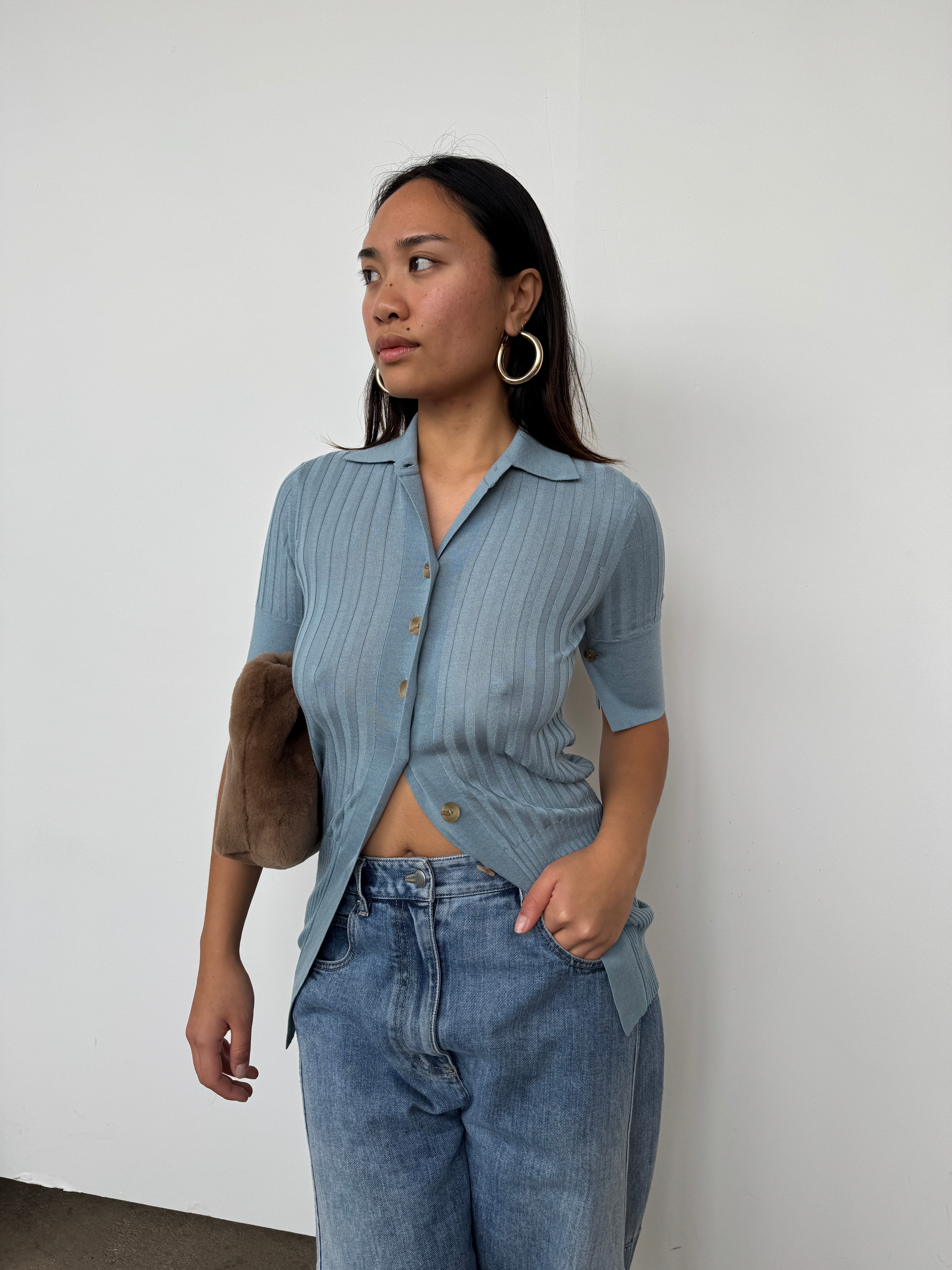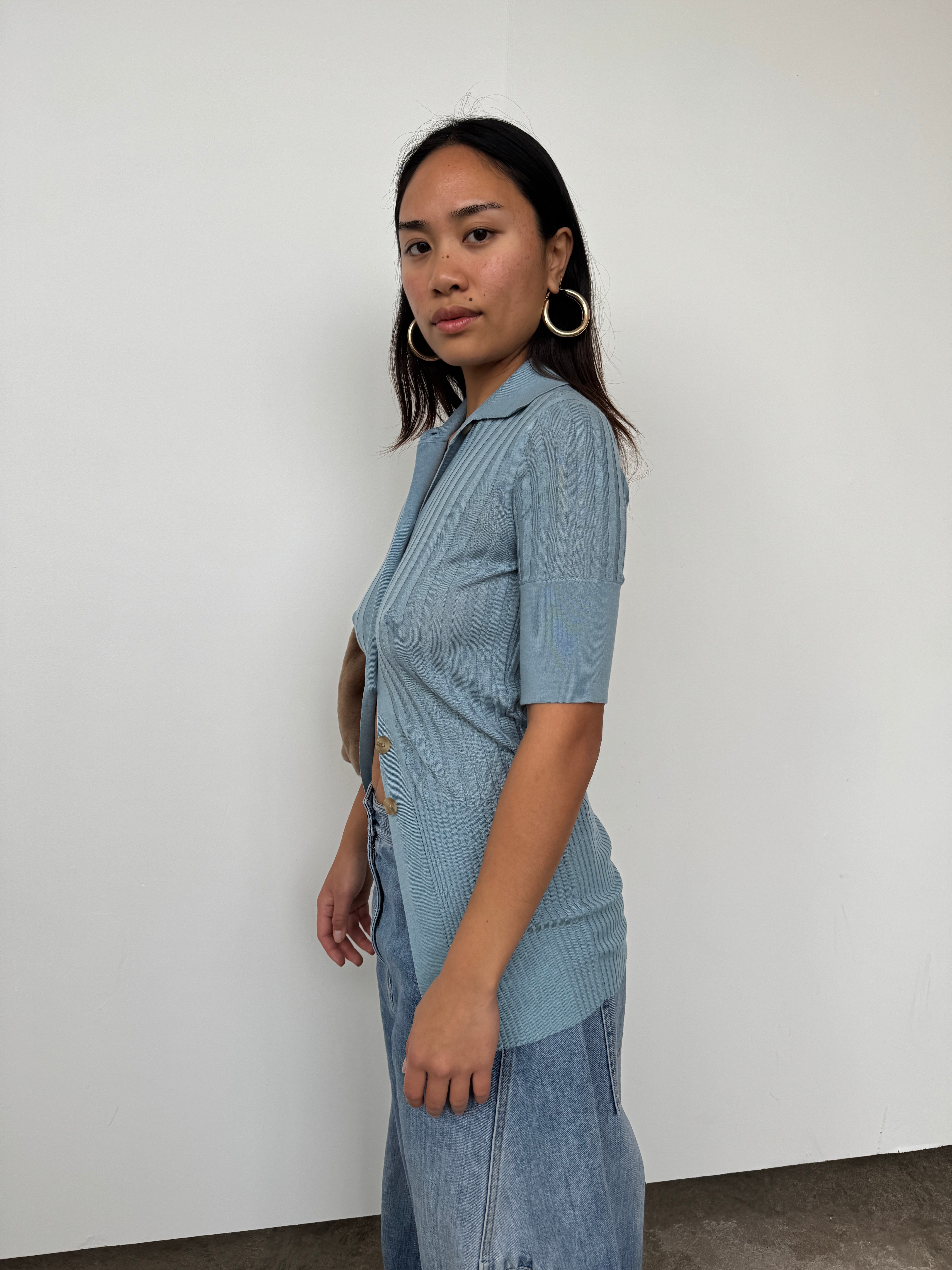 Eudon Choi Stone Blue 'Rod' Knit Polo Sweater | Small