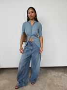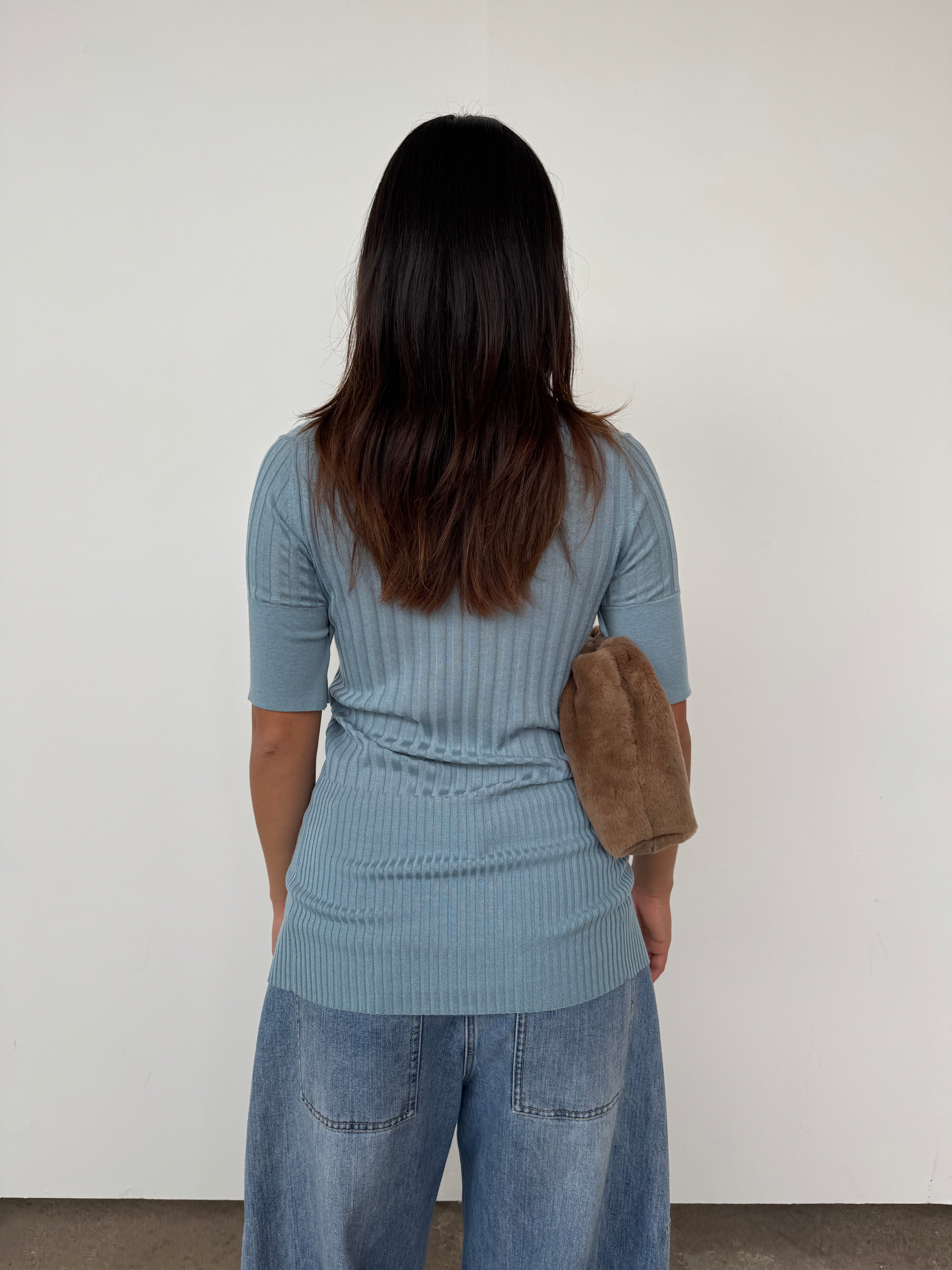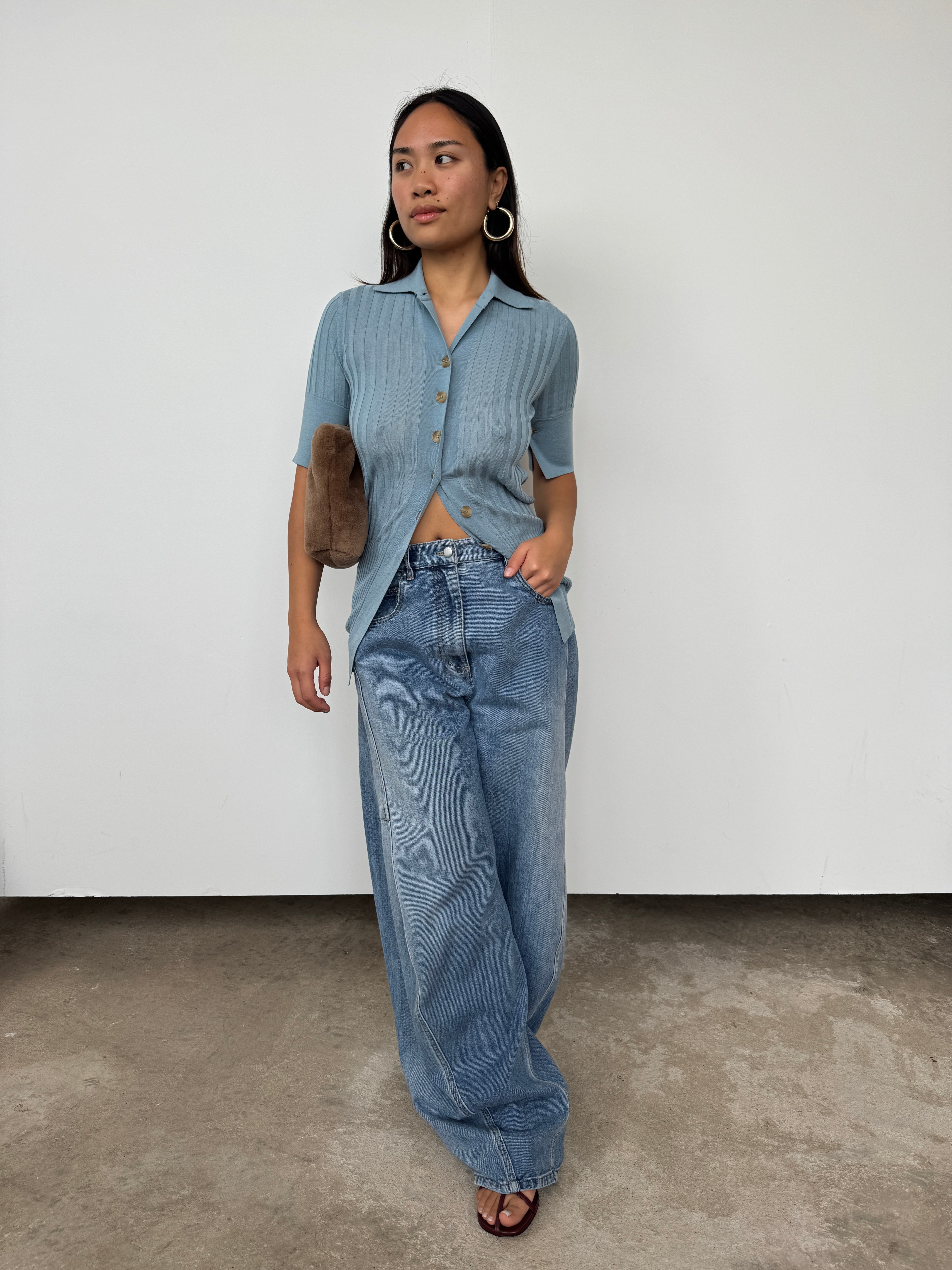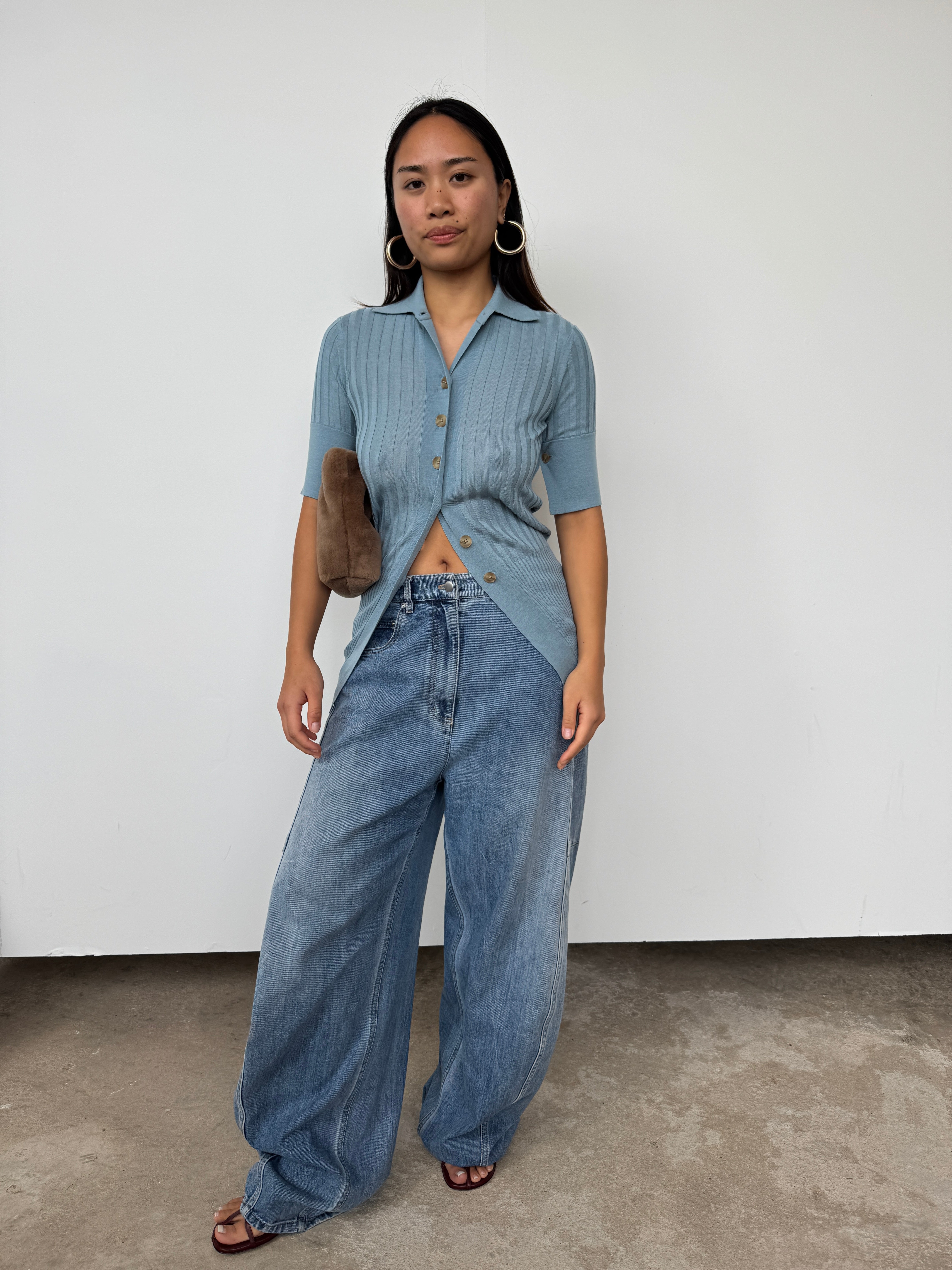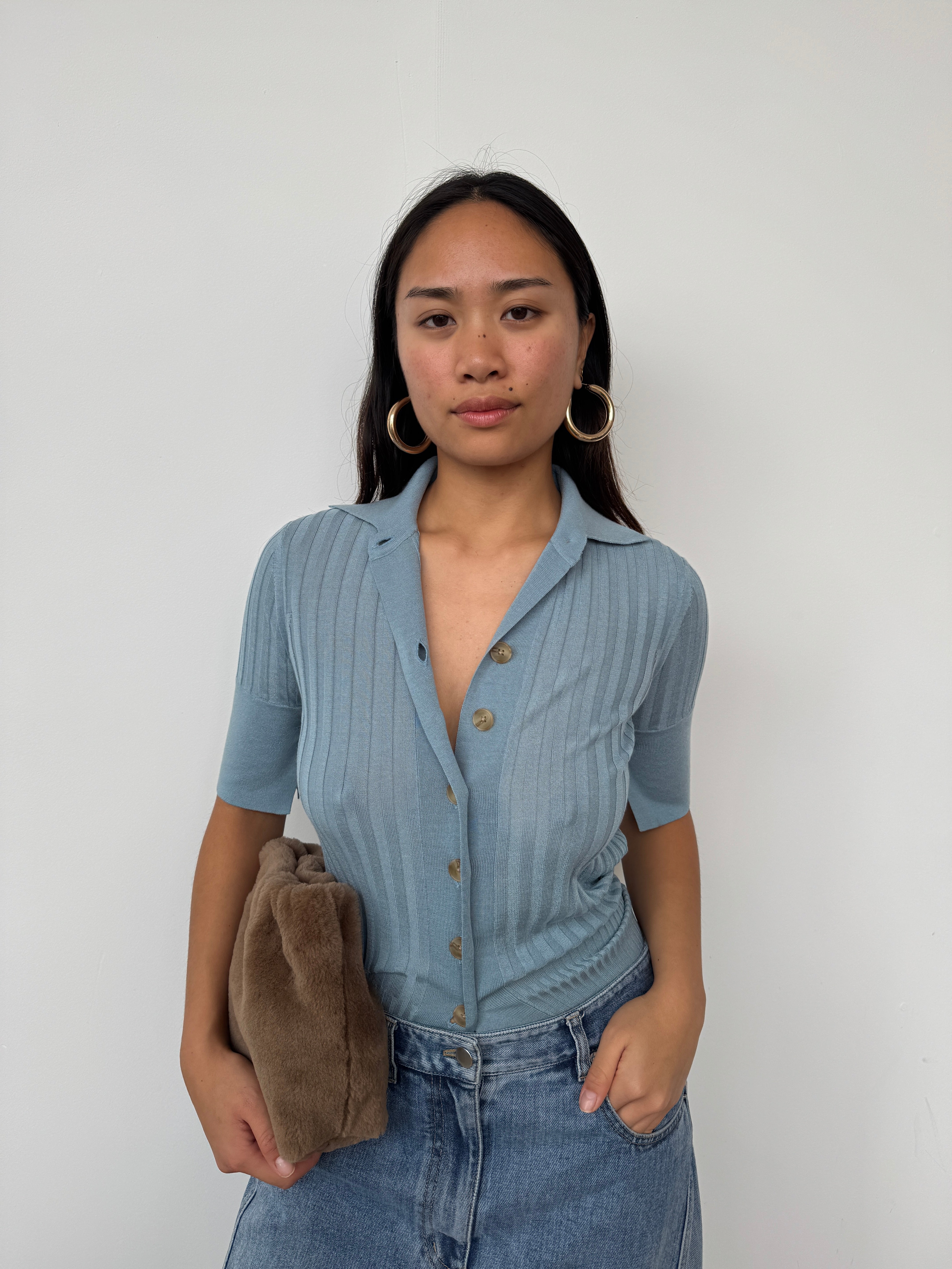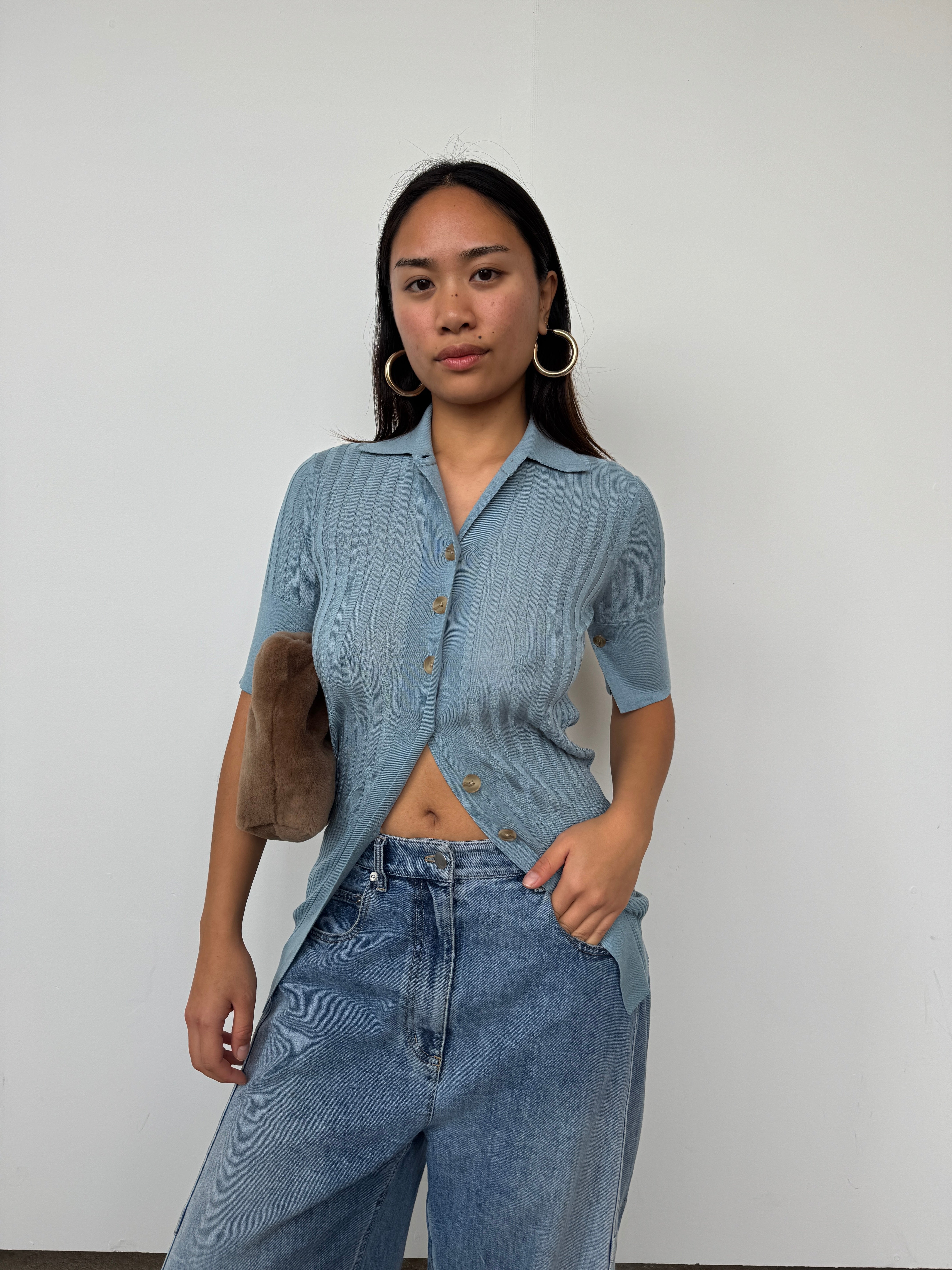 Eudon Choi Stone Blue 'Rod' Knit Polo Sweater | Small