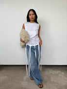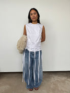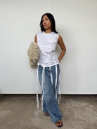 The Noelle top showcases refined tailoring in structured cotton, elevated by distinctive tassel detailing at the cinches. Adjust the drawstrings to shift between silhouettes, offering versatile styling options that transition effortlessly from day to evening. A sophisticated piece that rewards thoughtful layering and pairs beautifully with both tailored and relaxed separates.