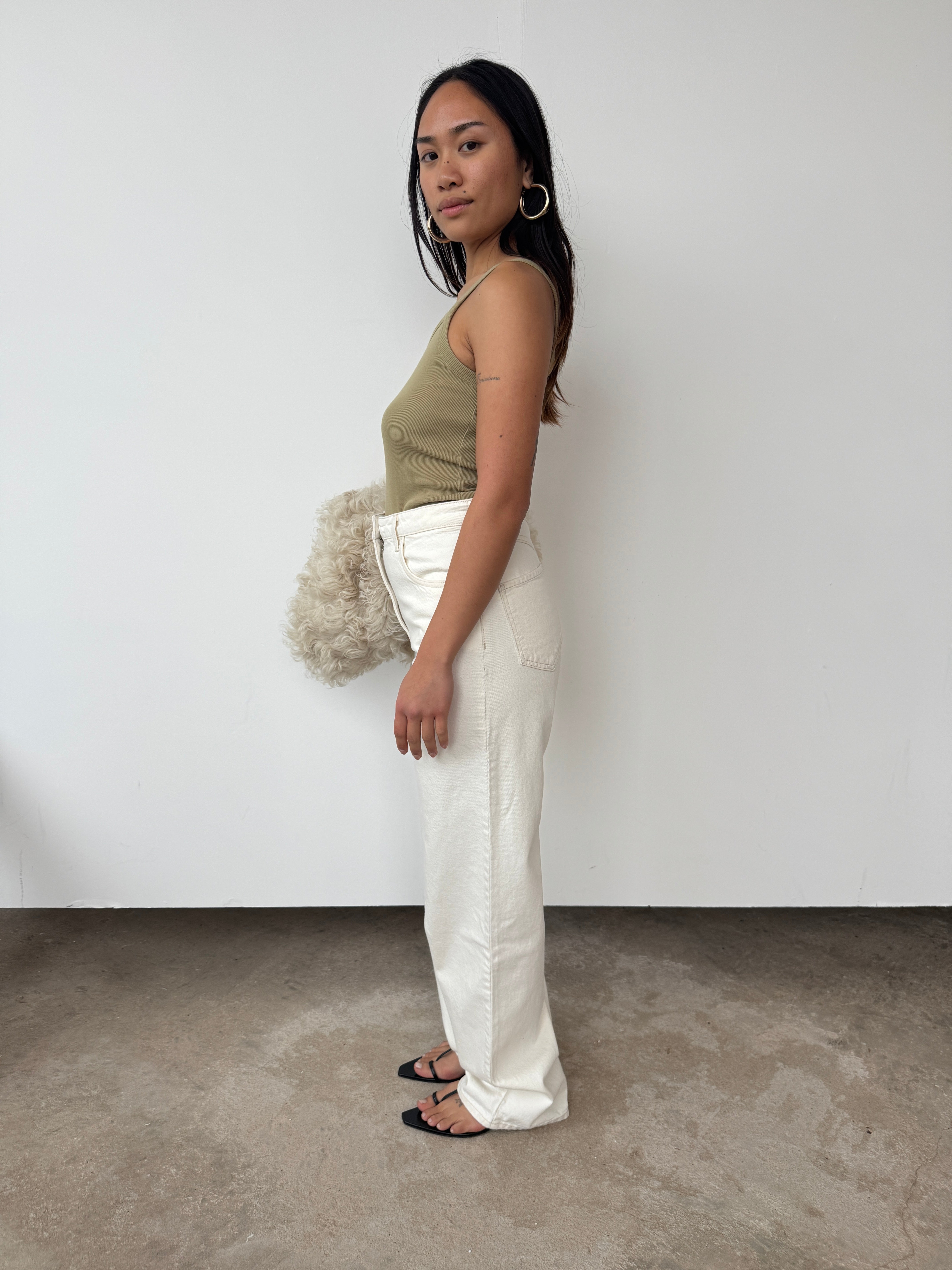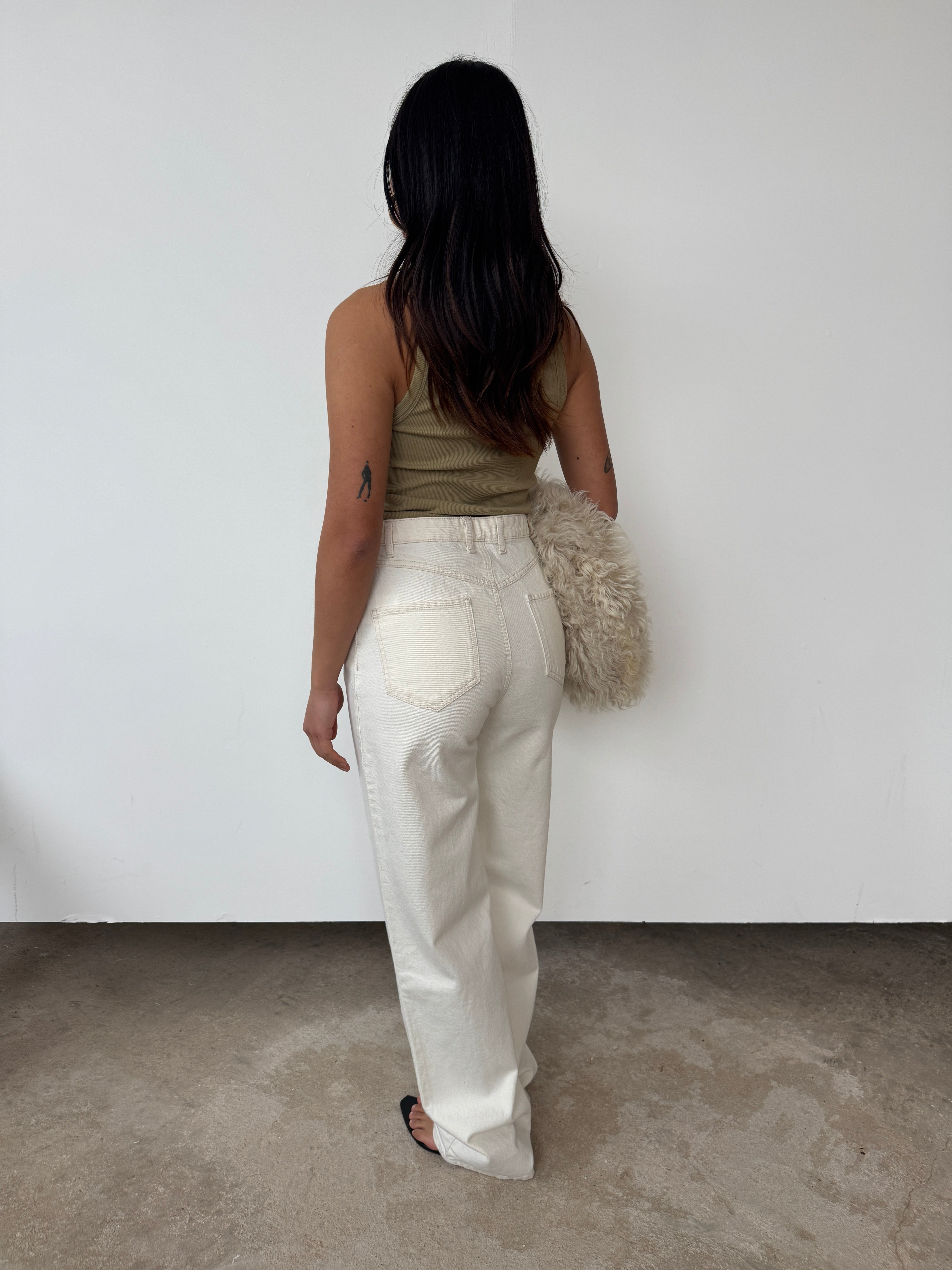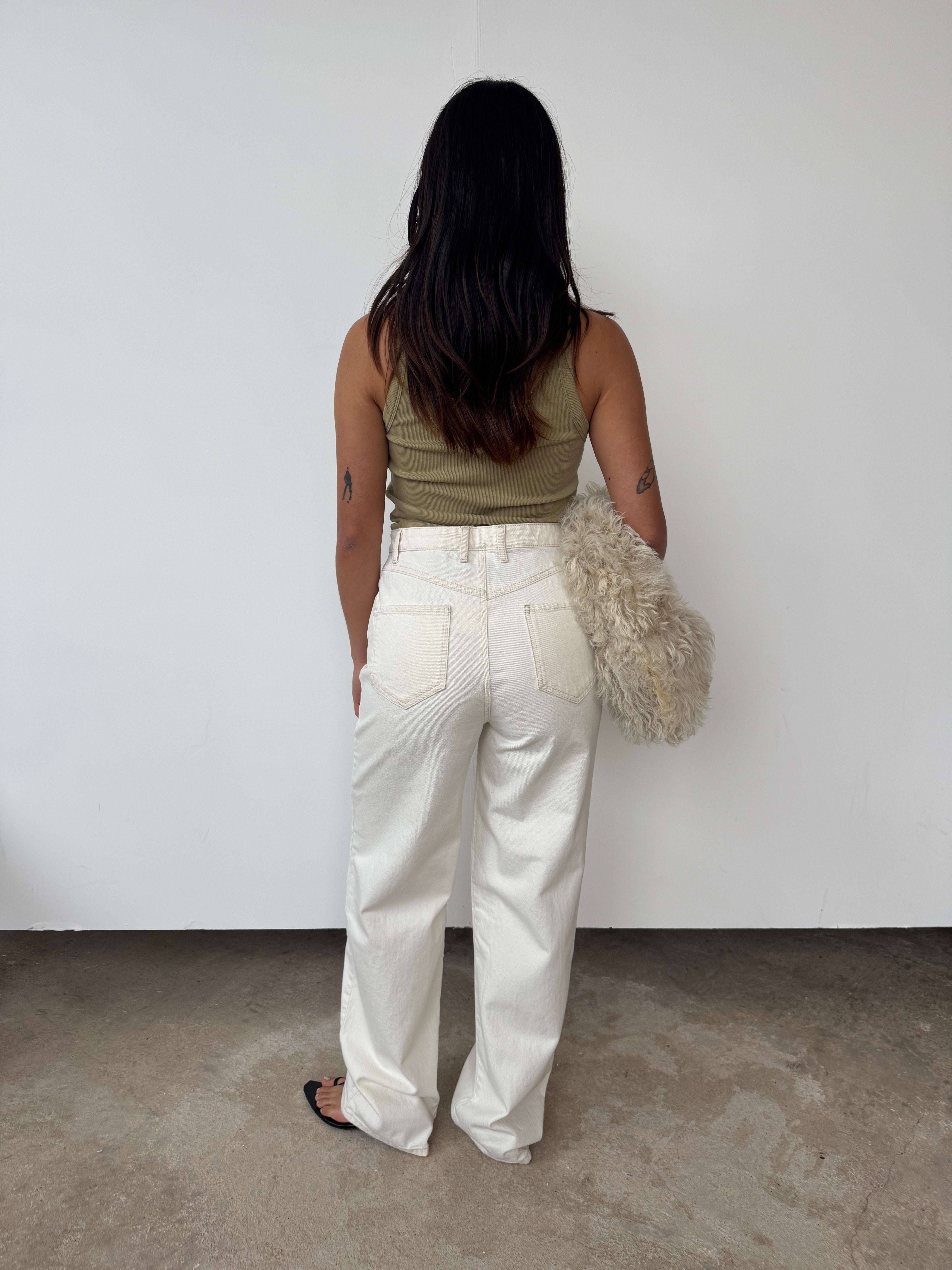"Introducing the FAITHFULL Straight Jean, designed from a 100% cotton in a warm off-white ecru denim wash. A mid-rise fit that sit up on the hips, they are a classic straight leg that are long in length with side and back pockets and a classic front fly opening. Inspired by vintage denim from years past and a second-hand pair our co-founders discovered on their travels to Paris, they are the perfect throw-on pair you will keep forever. Please note the Straight Jean in Ecru runs slightly more comfortable than the Indigo, despite measuring the same. This is due to the finishing of the Indigo fabrication which offers slightly less stretch and movement."