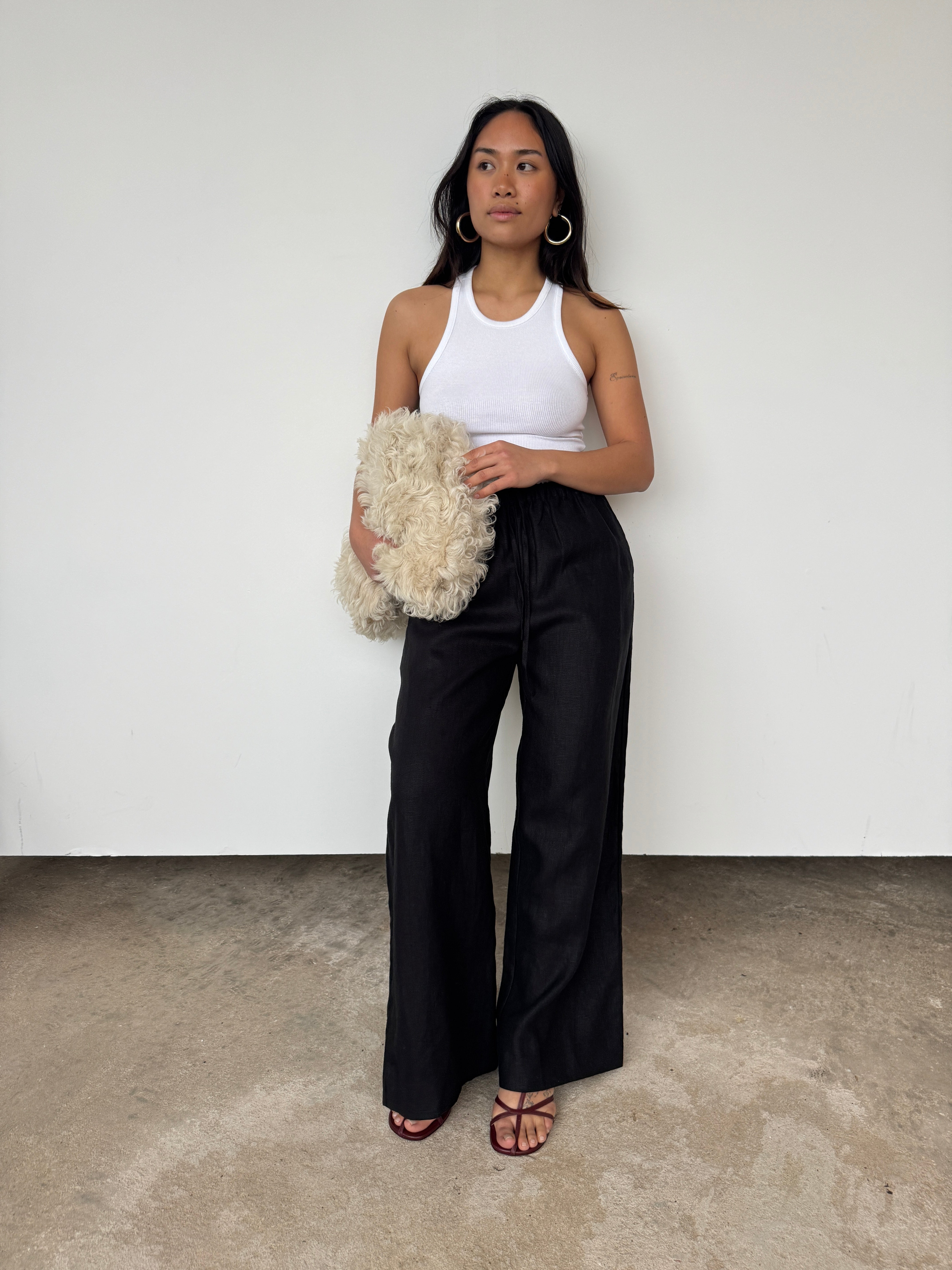 Faithfull The Brand Black 'Jones' Linen Trousers | S