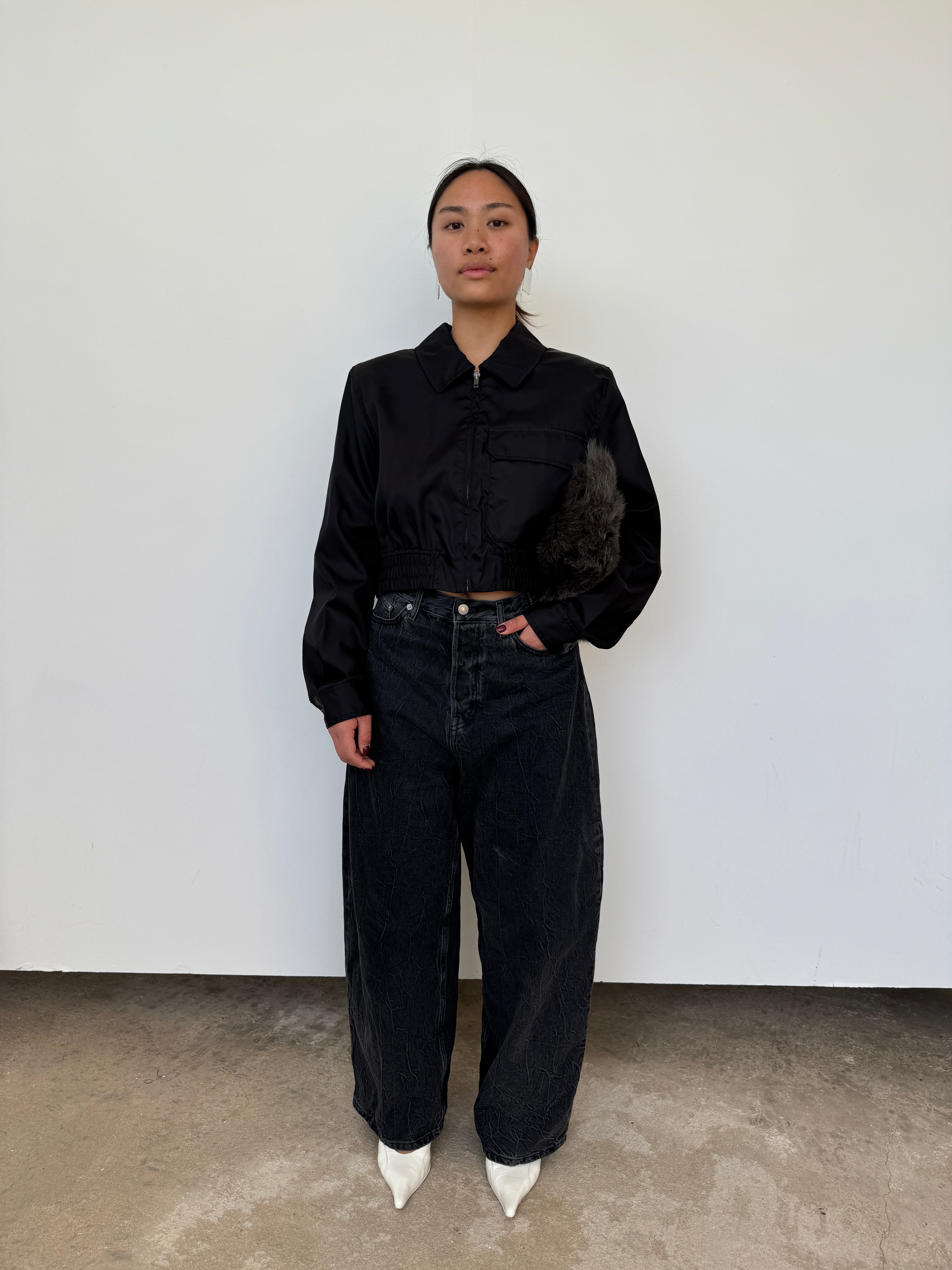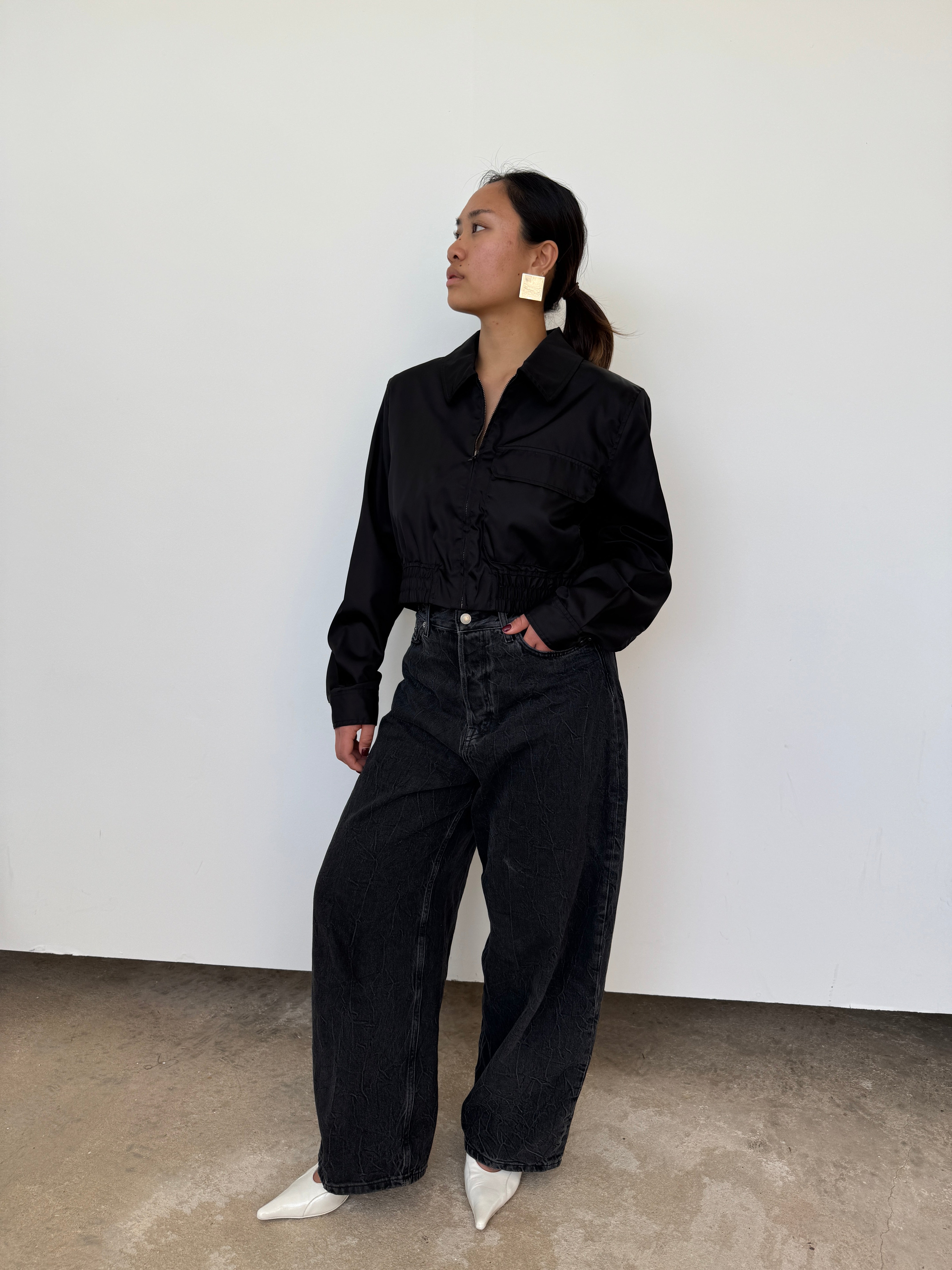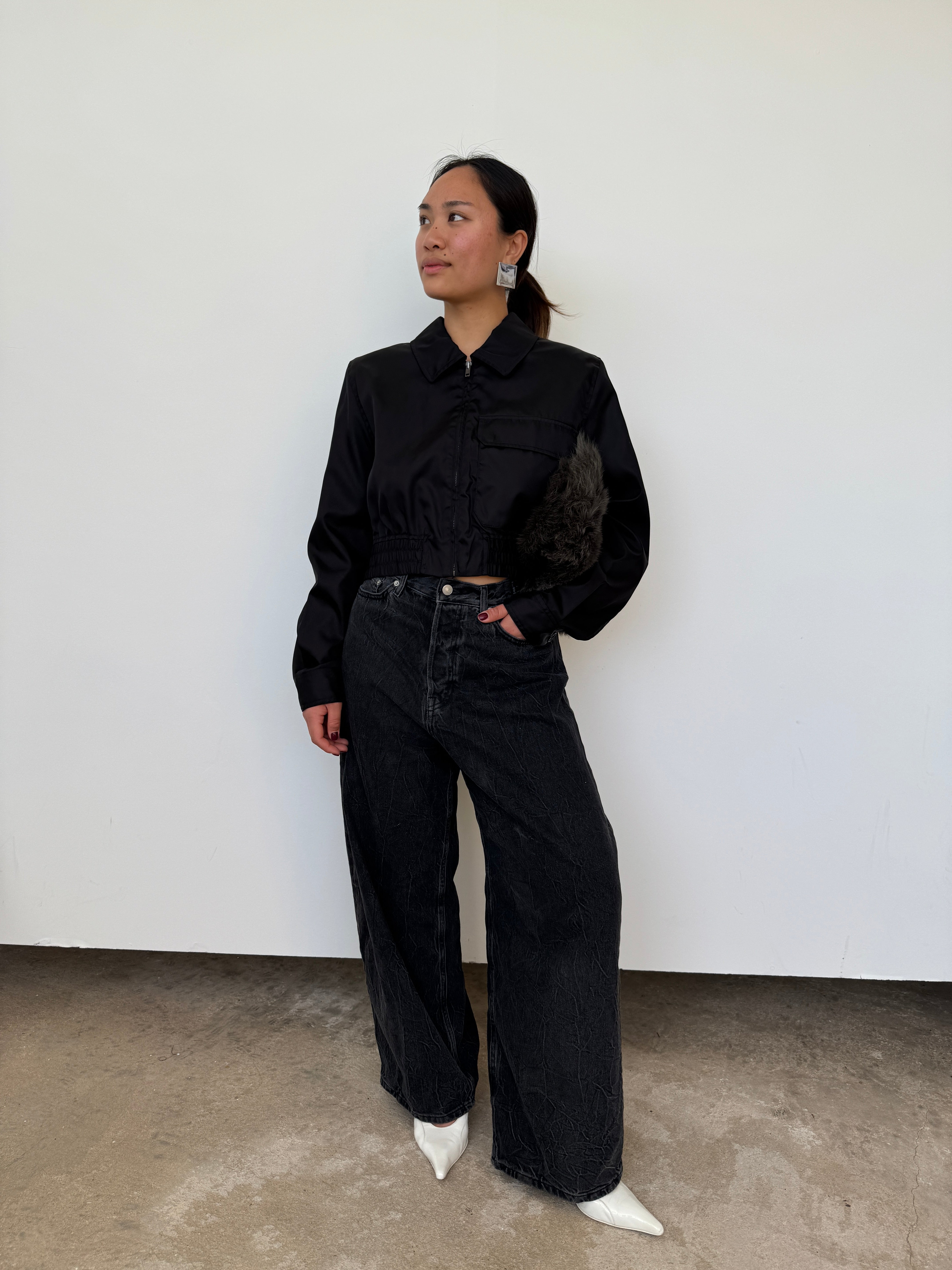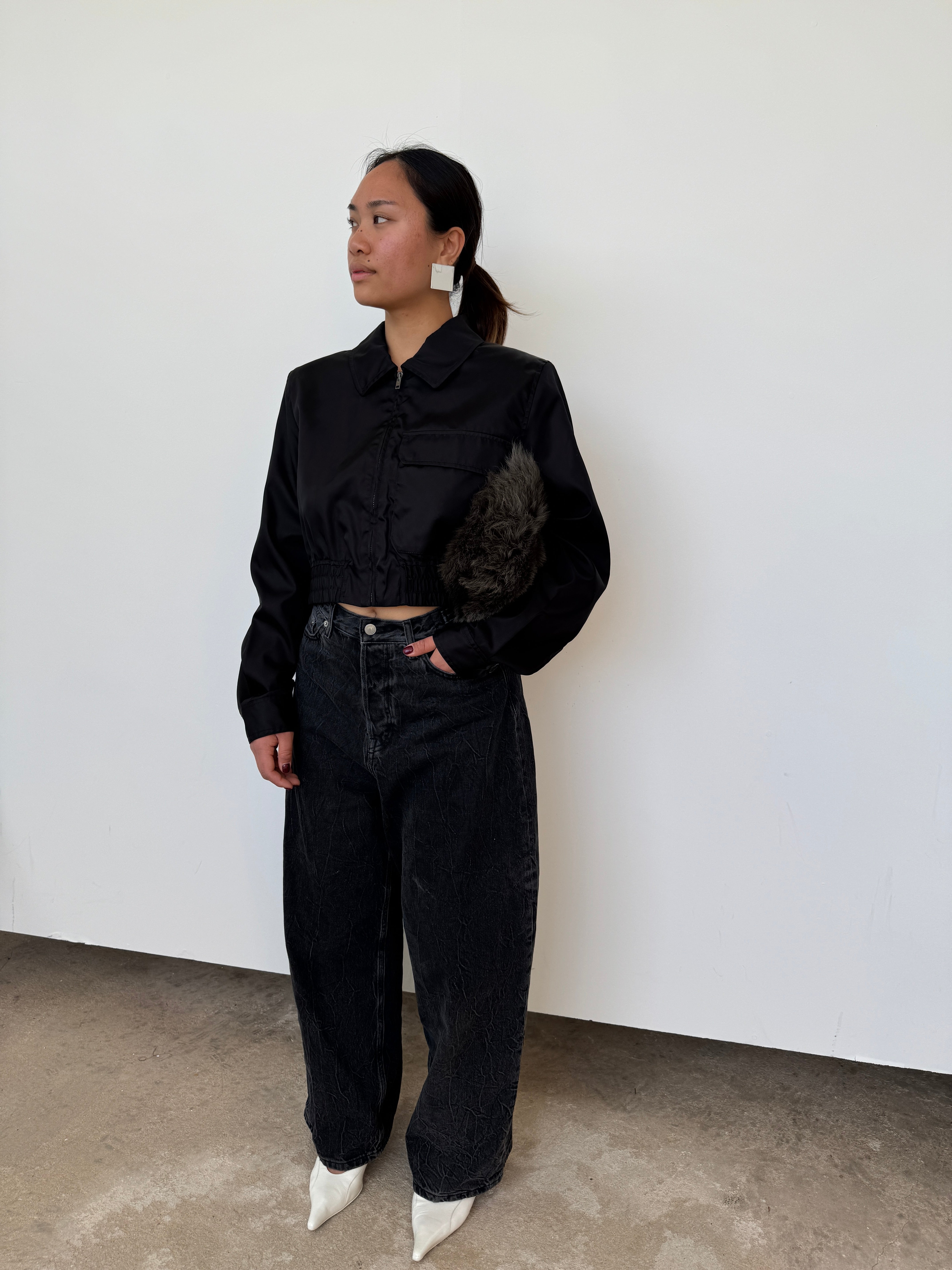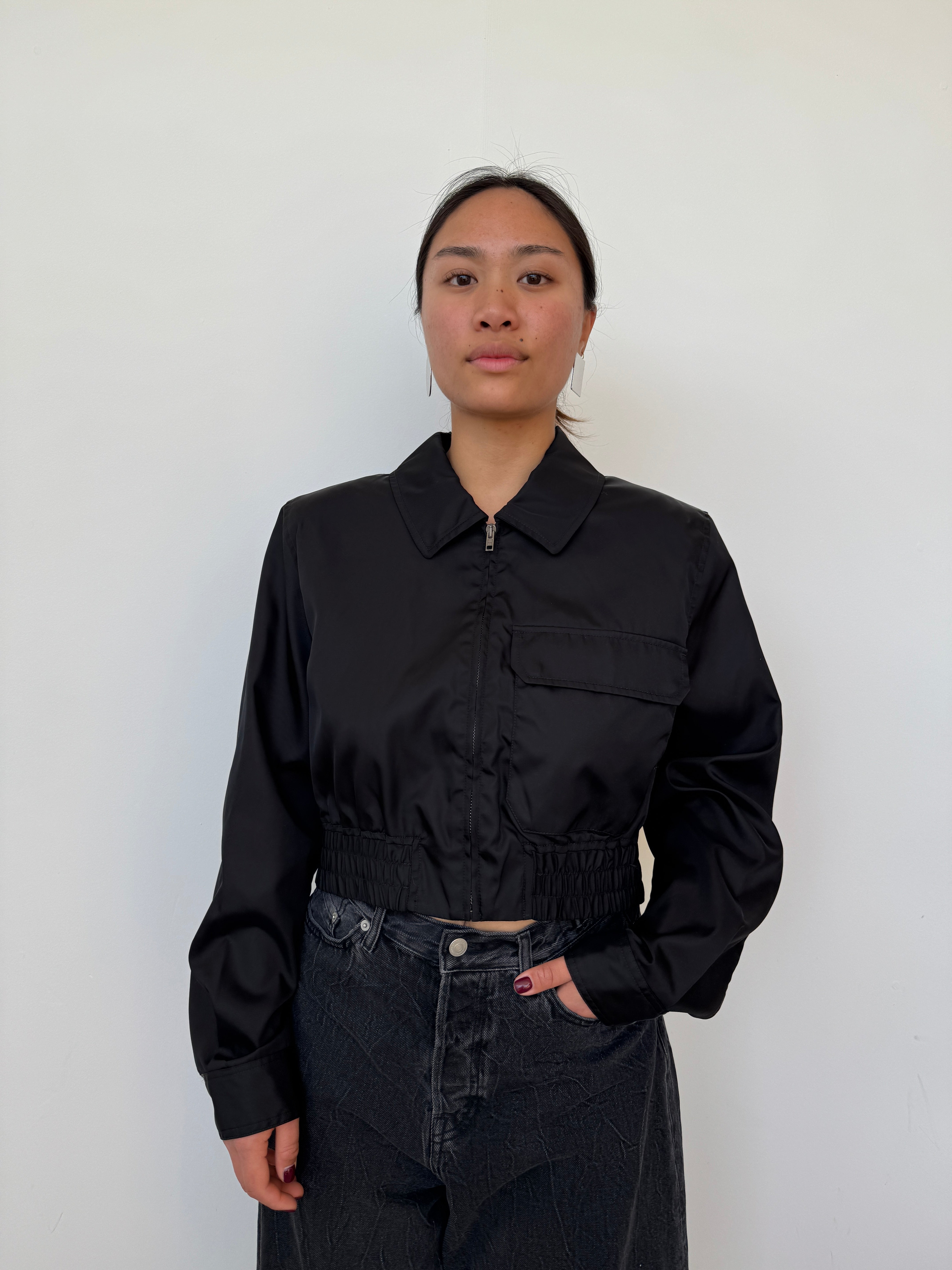 Filippa K Black Cropped Nylon Jacket | UK12