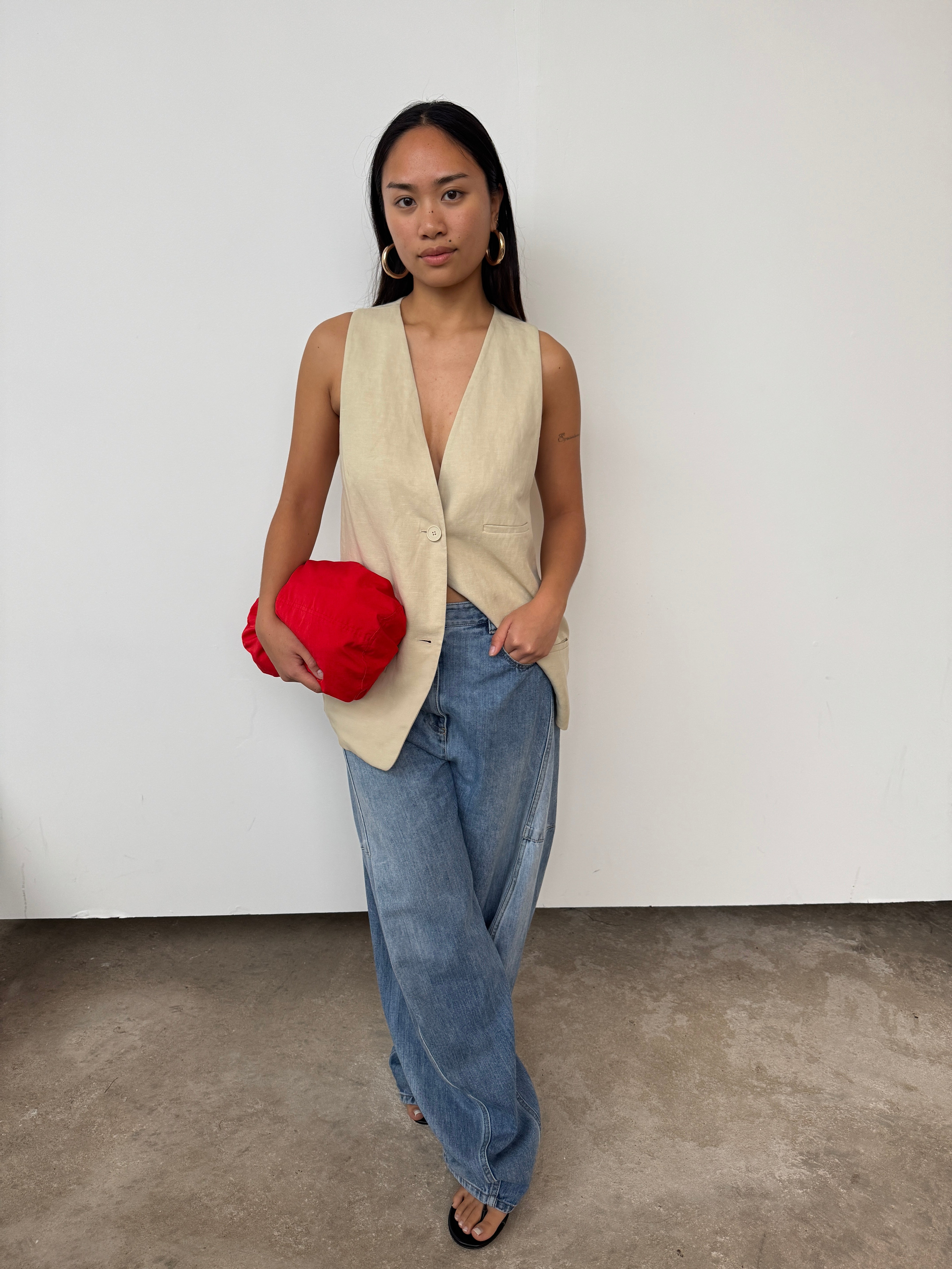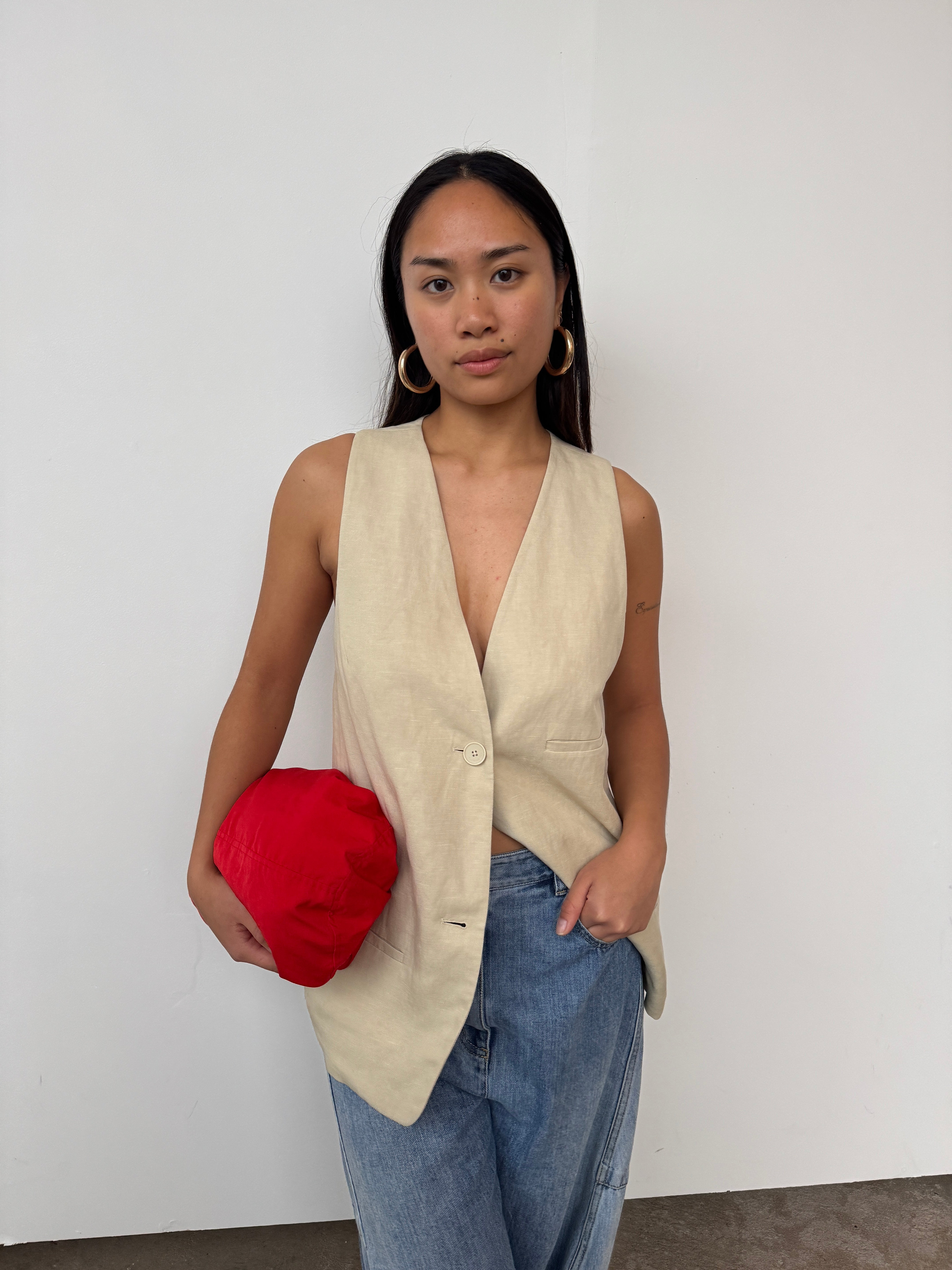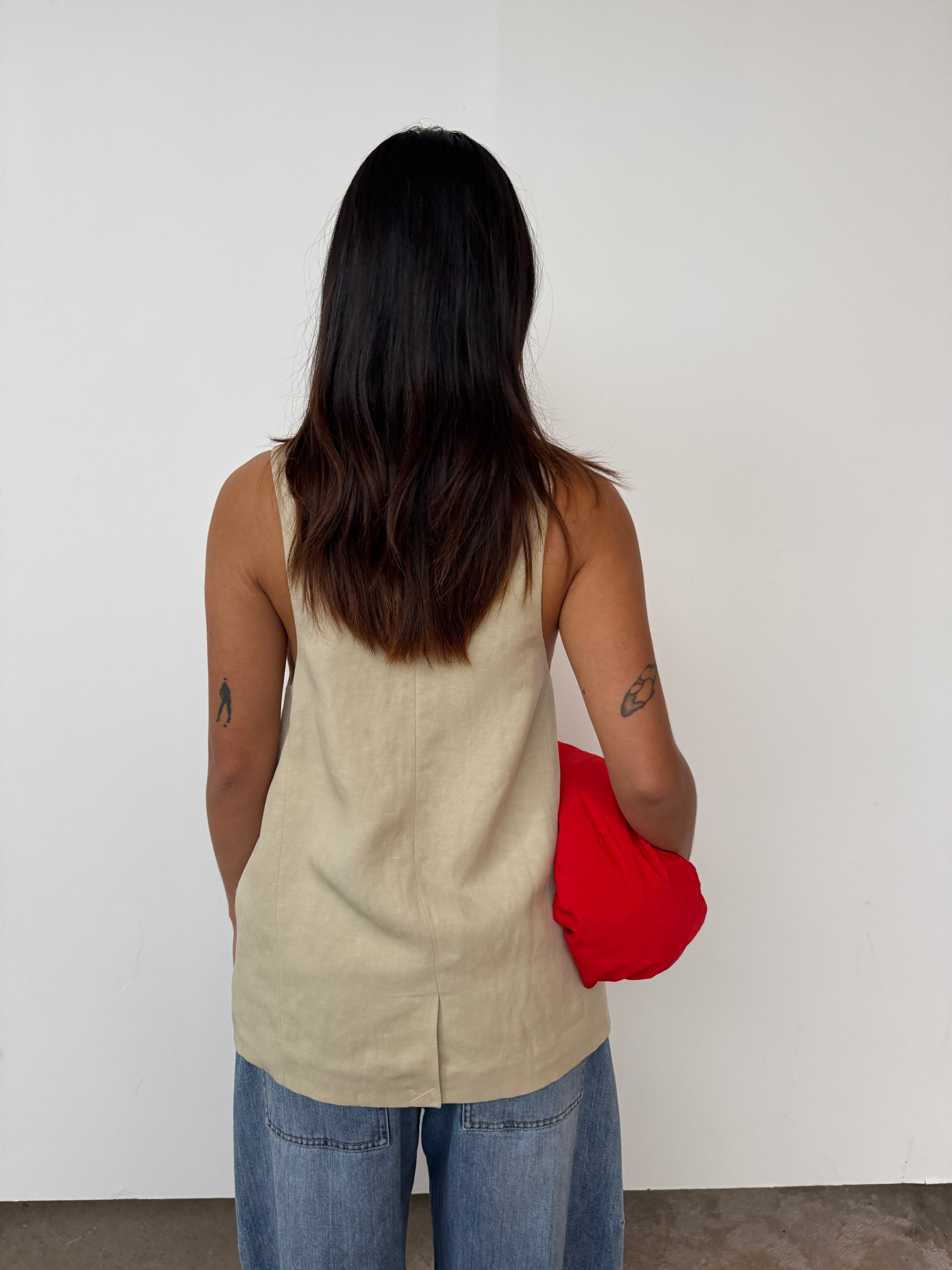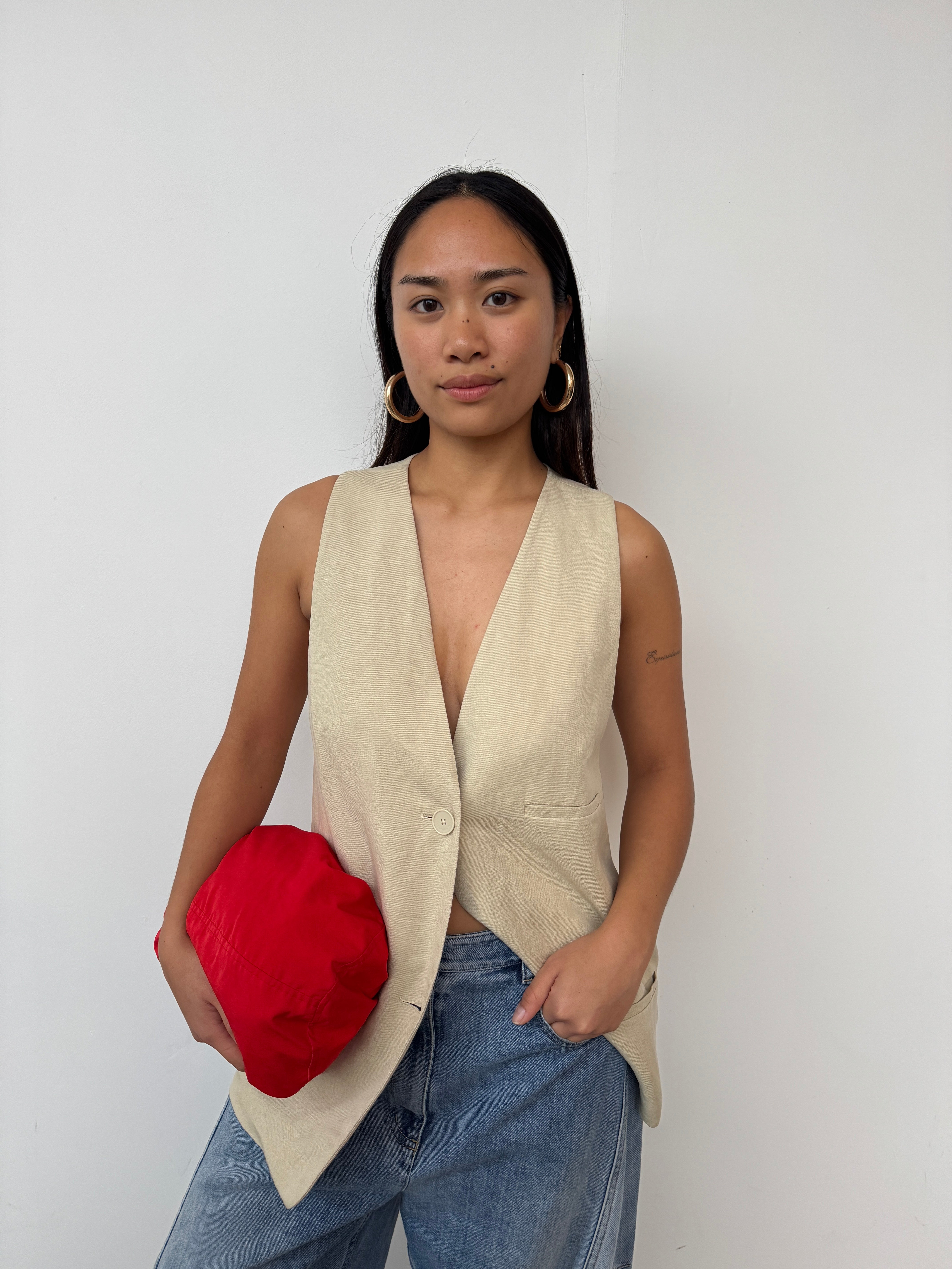 Frankie Shop Cream 'Melrose' Linen Vest | XS