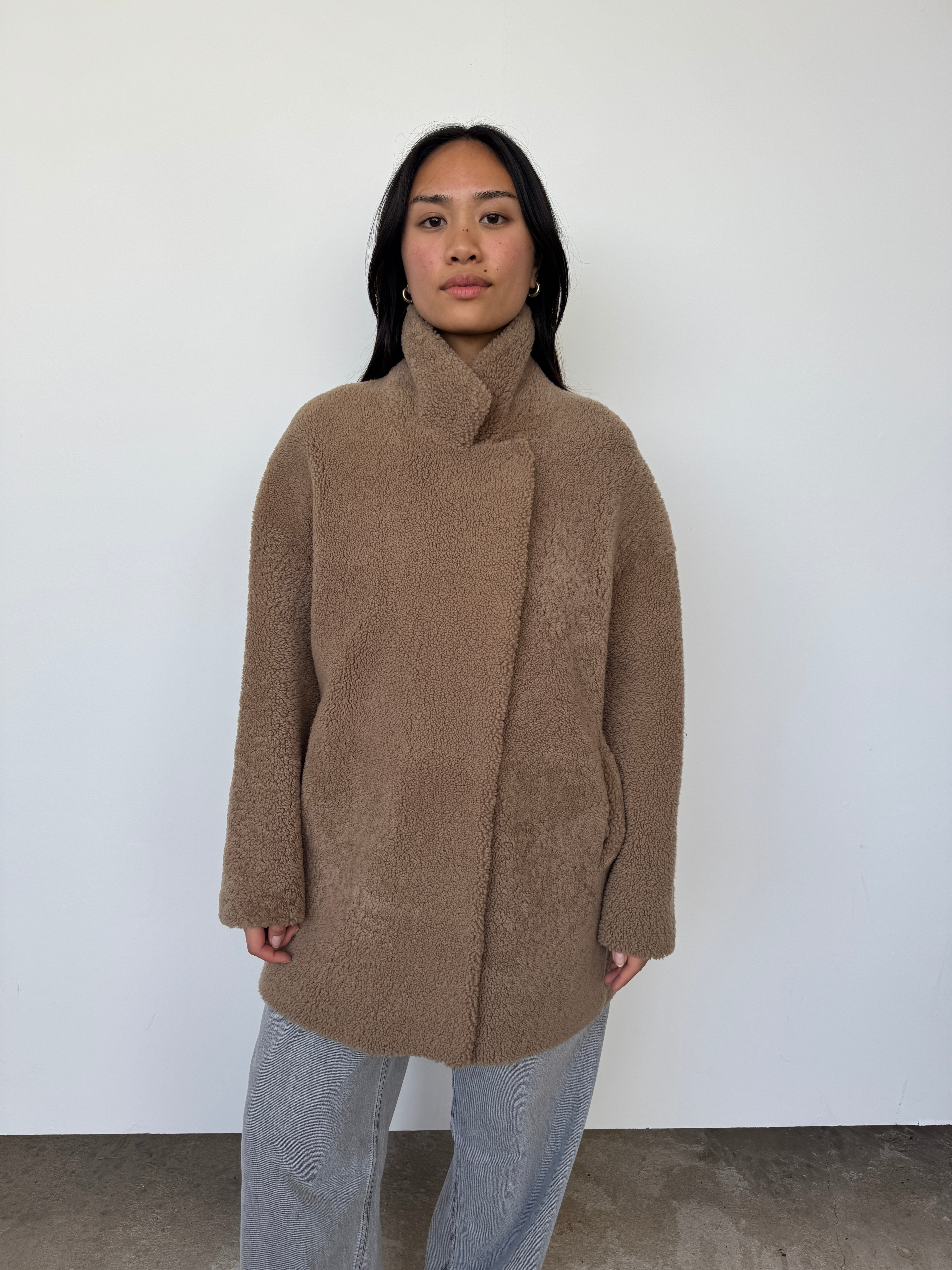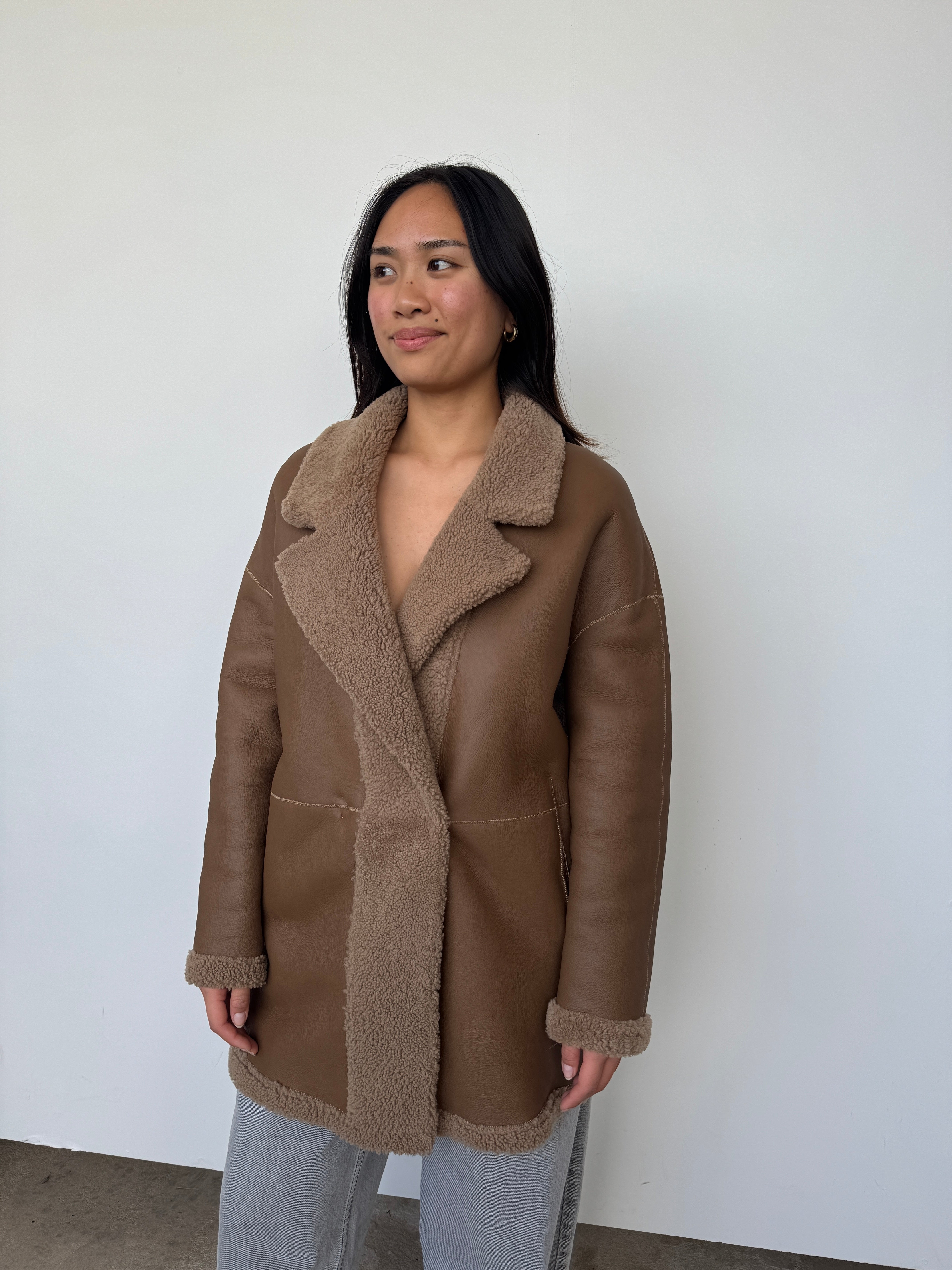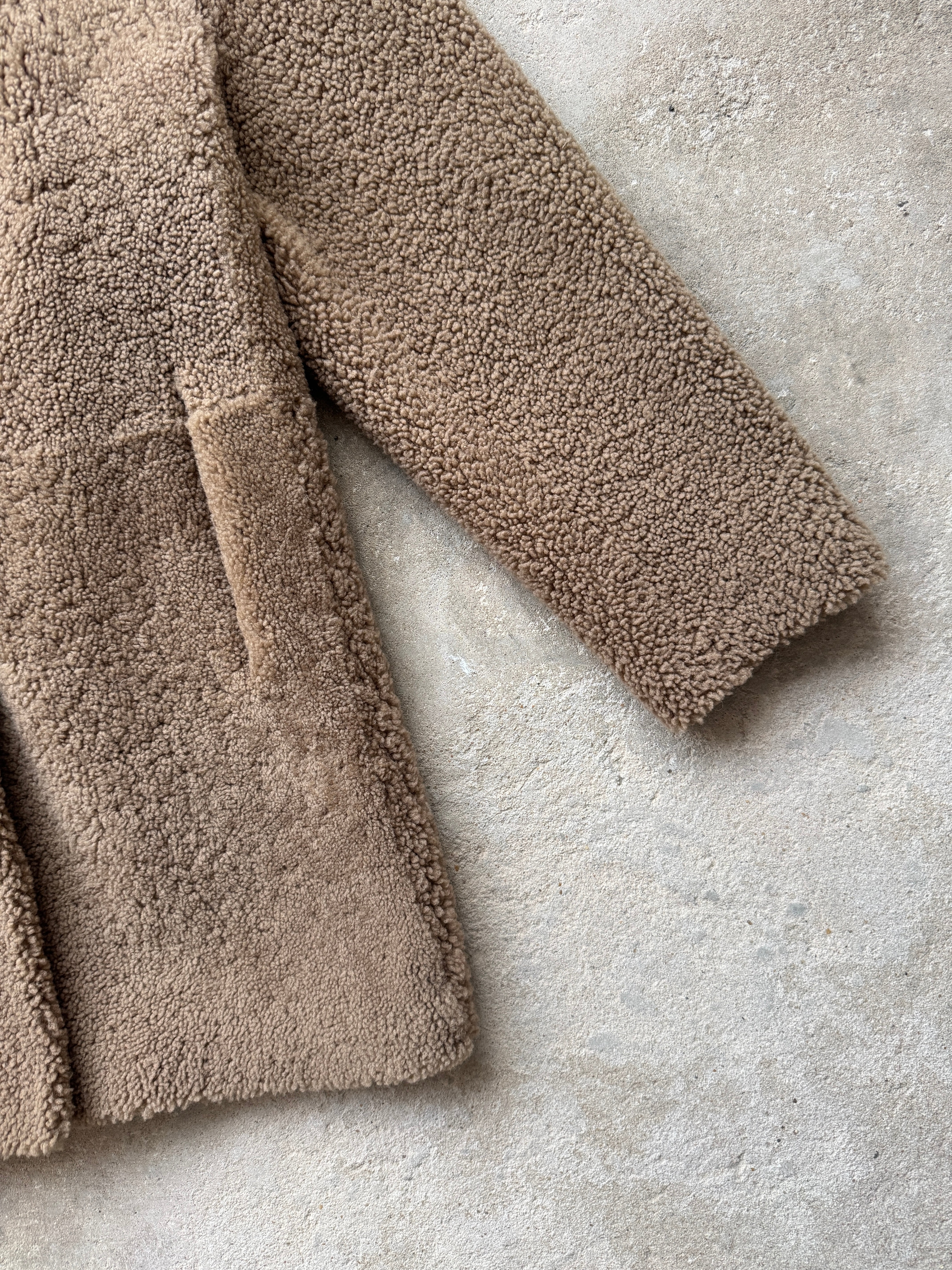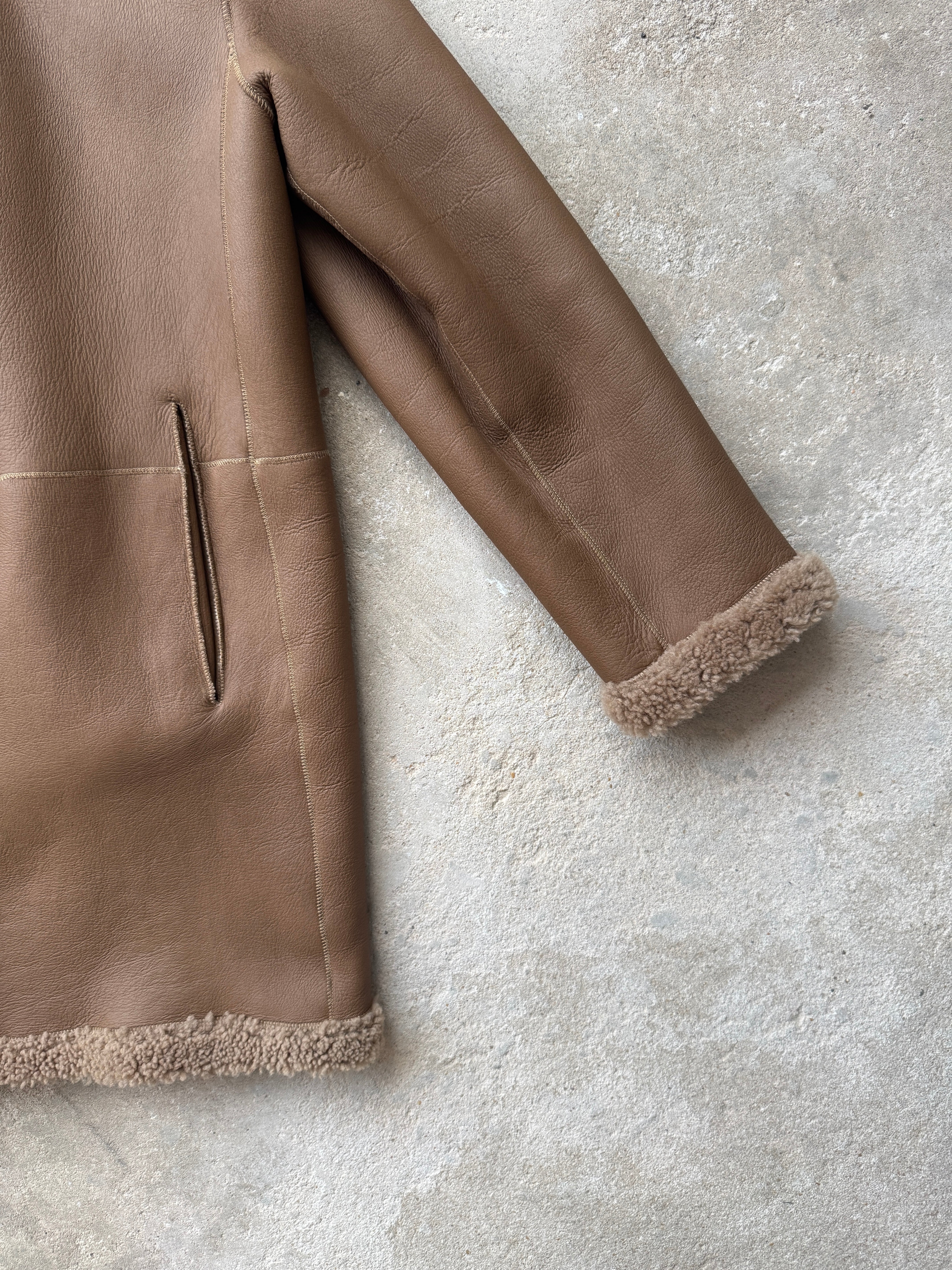 Gushlow & Cole 07 Camel Mid Length Shearling Overcoat | M