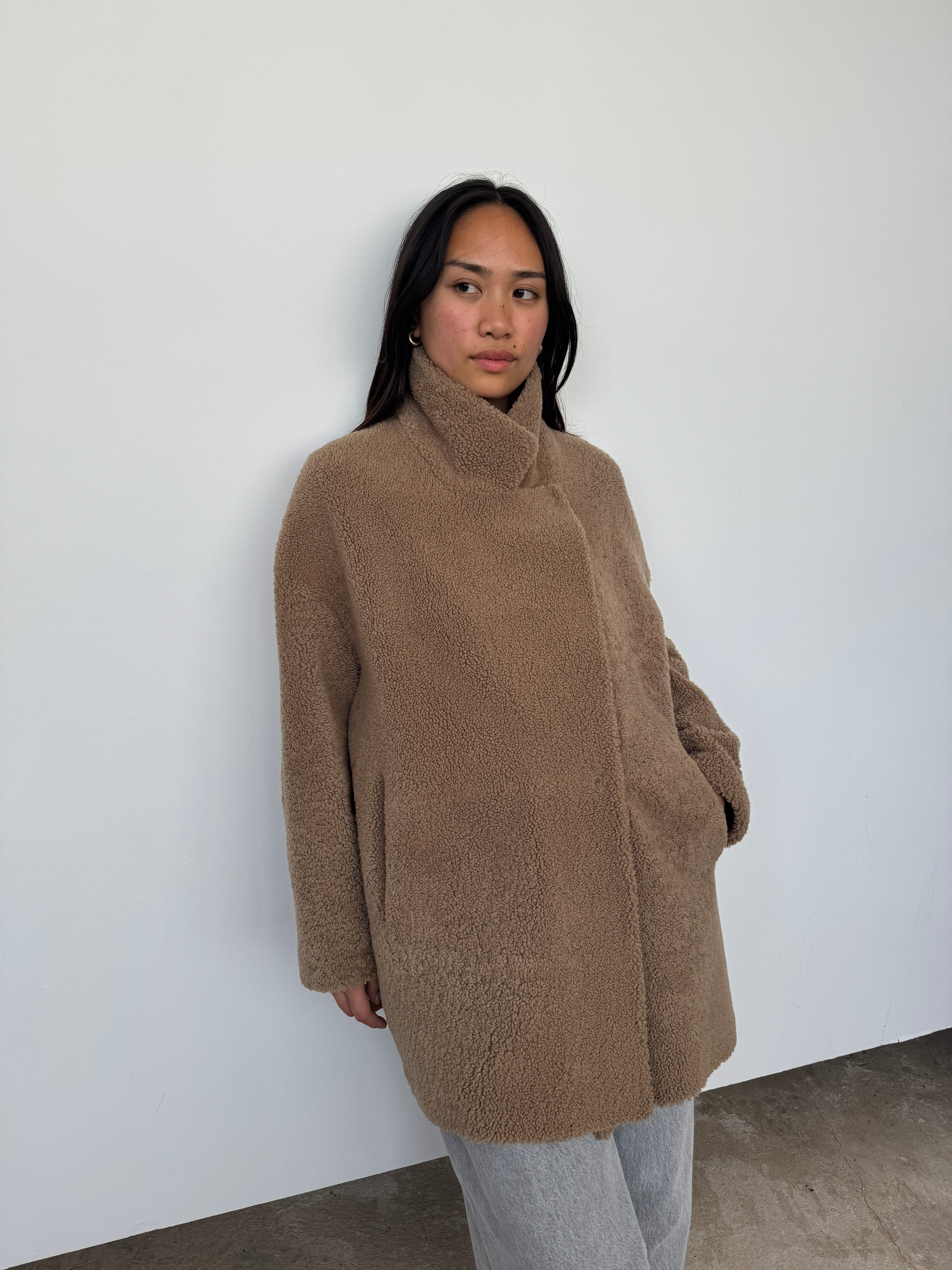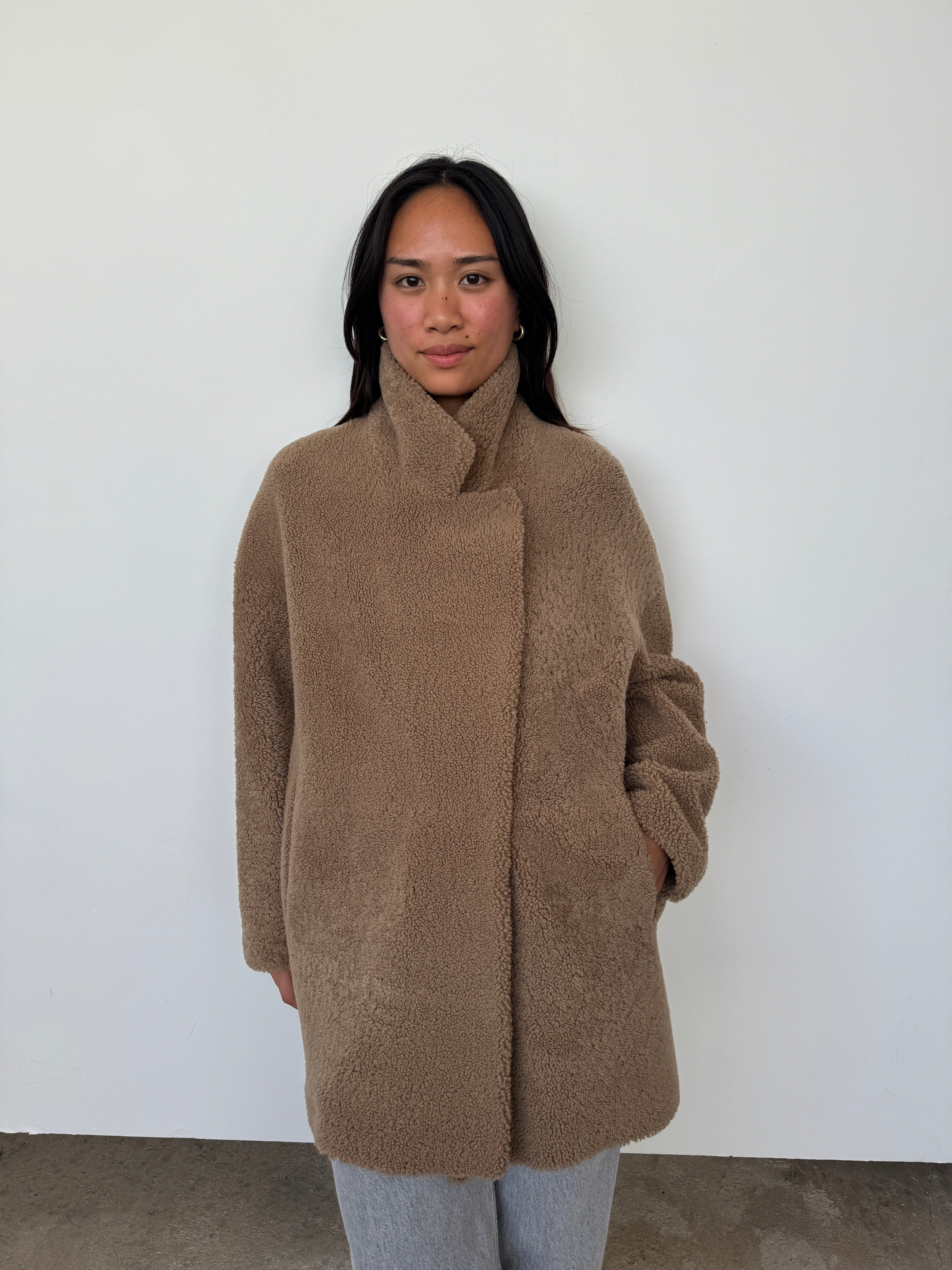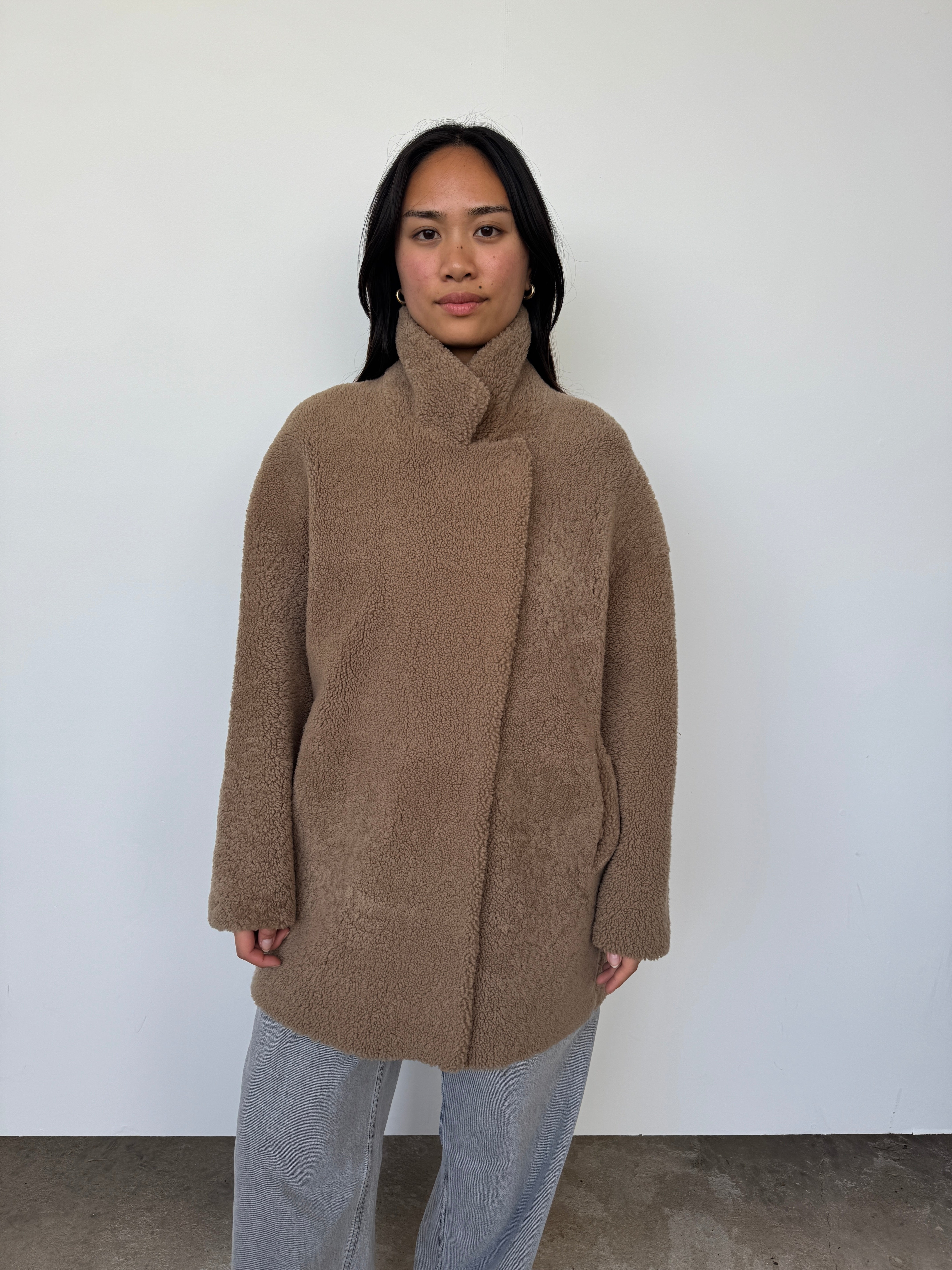 Gushlow & Cole 07 Camel Mid Length Shearling Overcoat | M