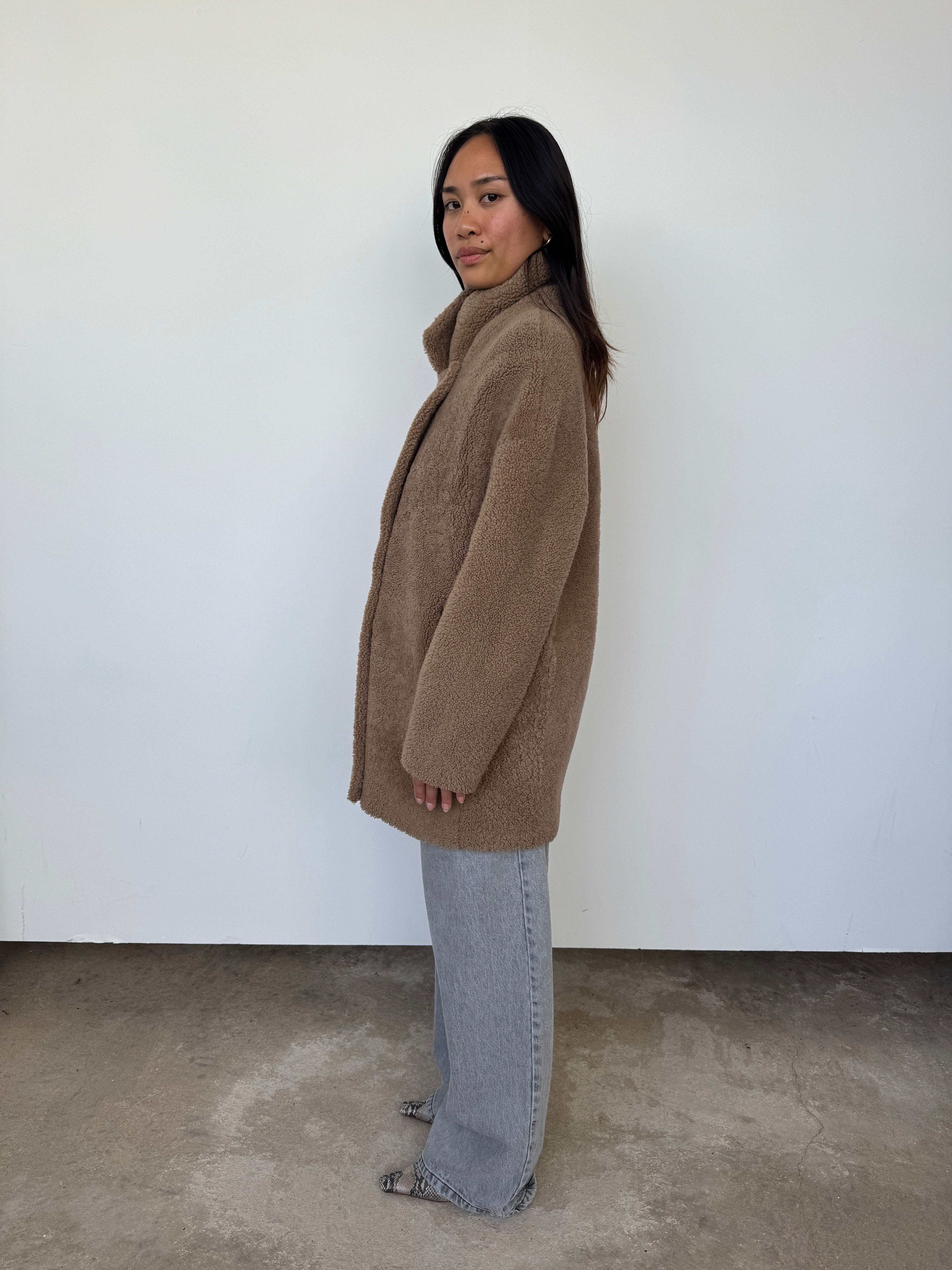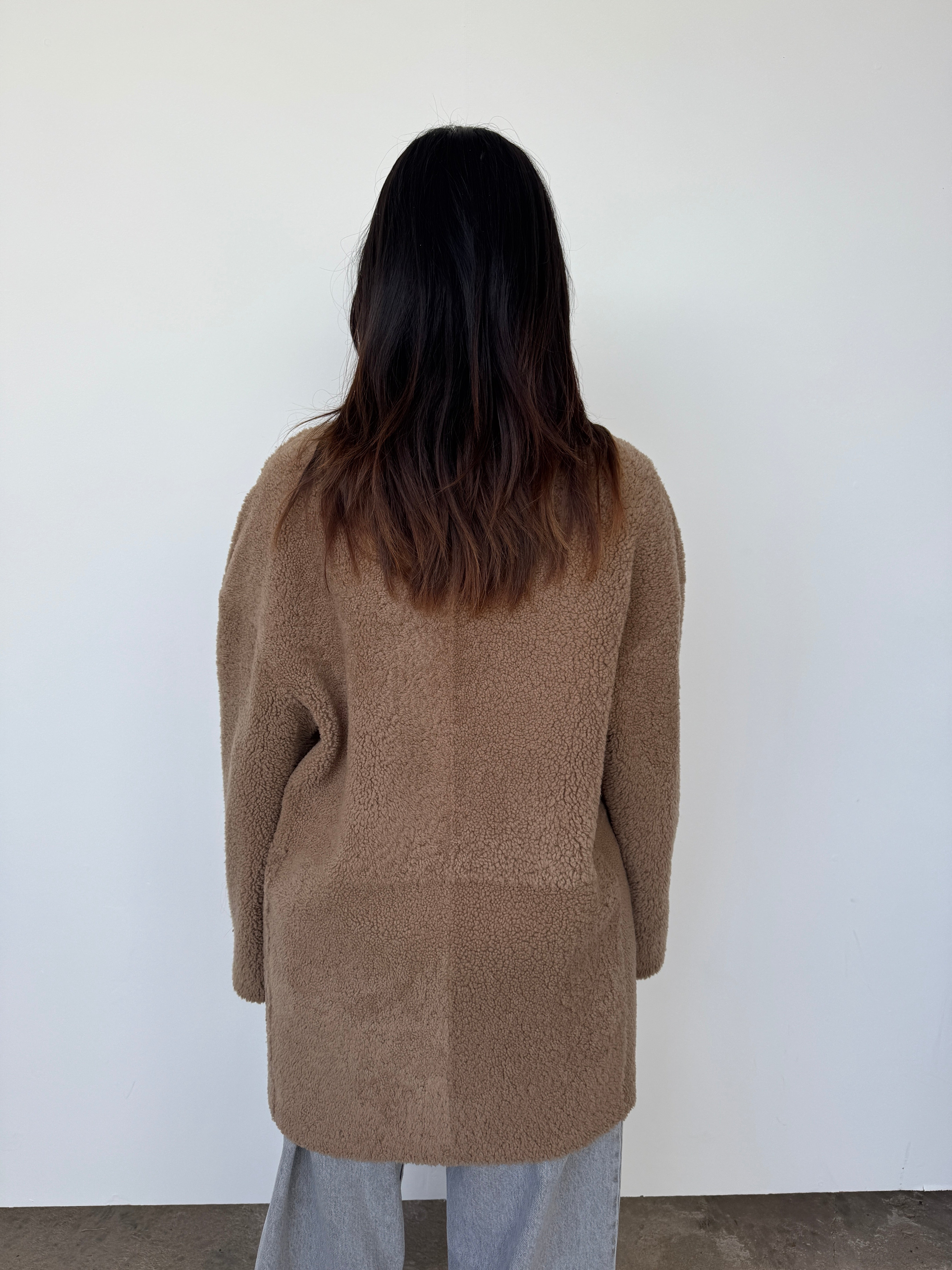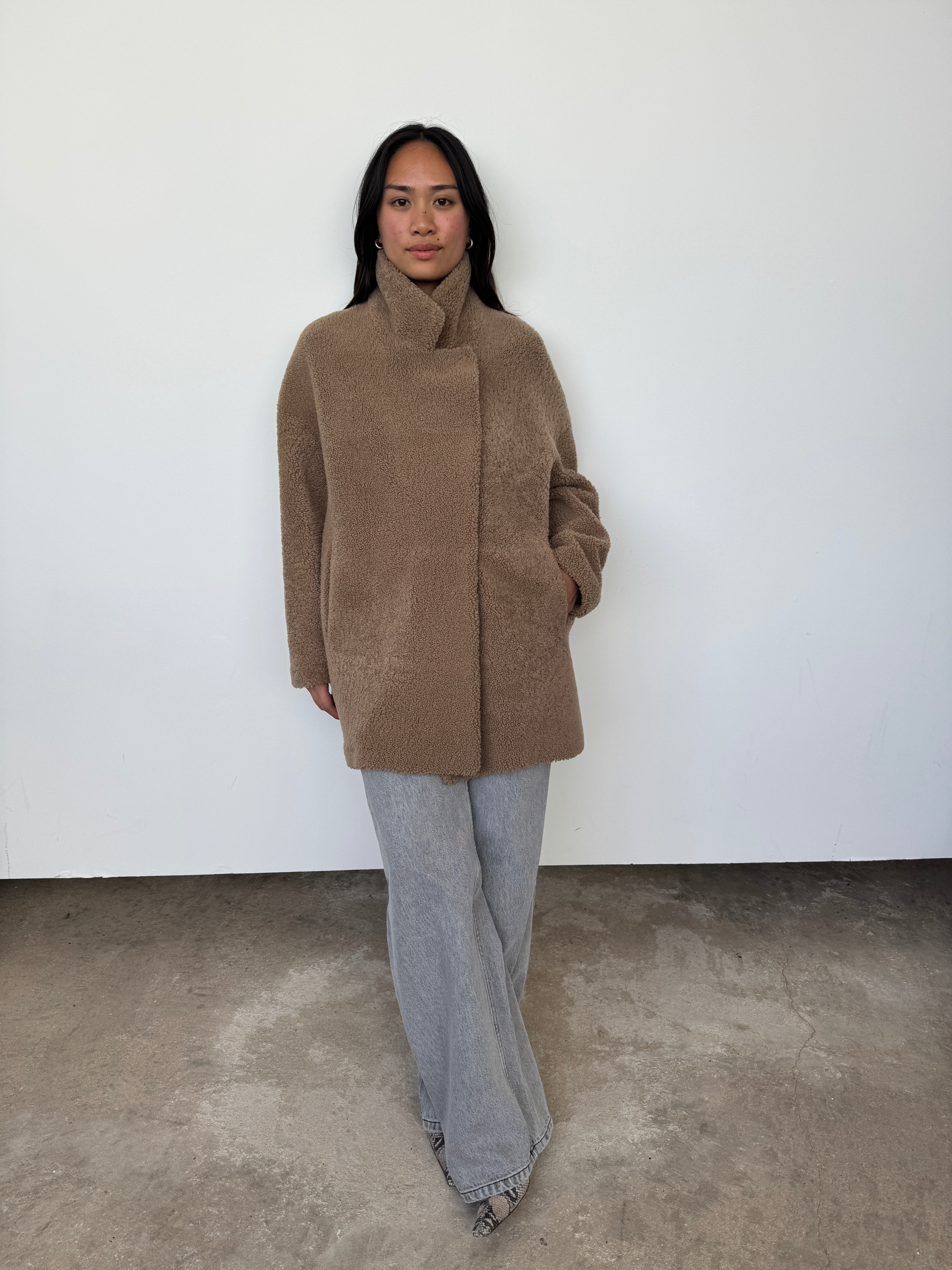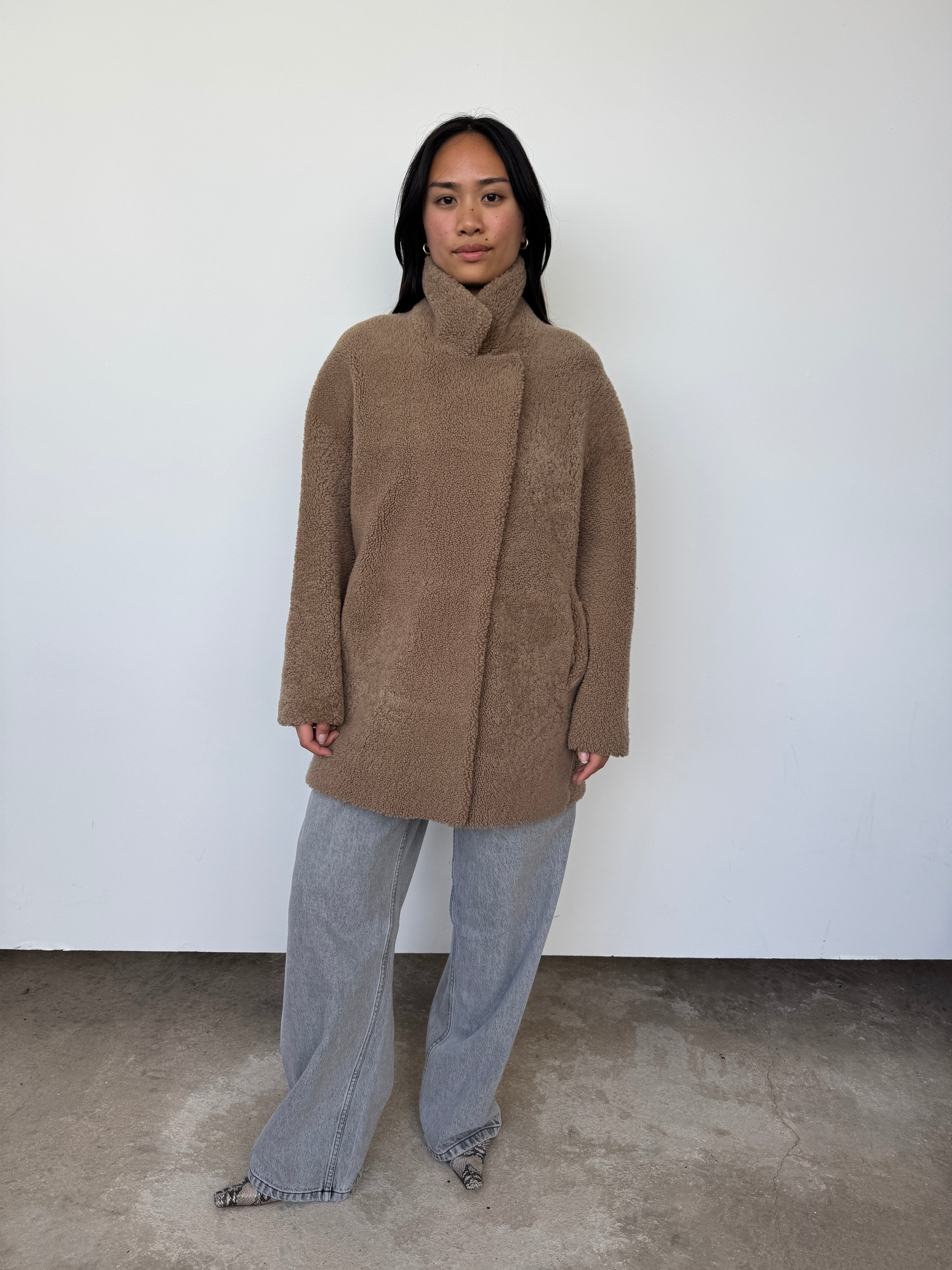 Gushlow & Cole 07 Camel Mid Length Shearling Overcoat | M