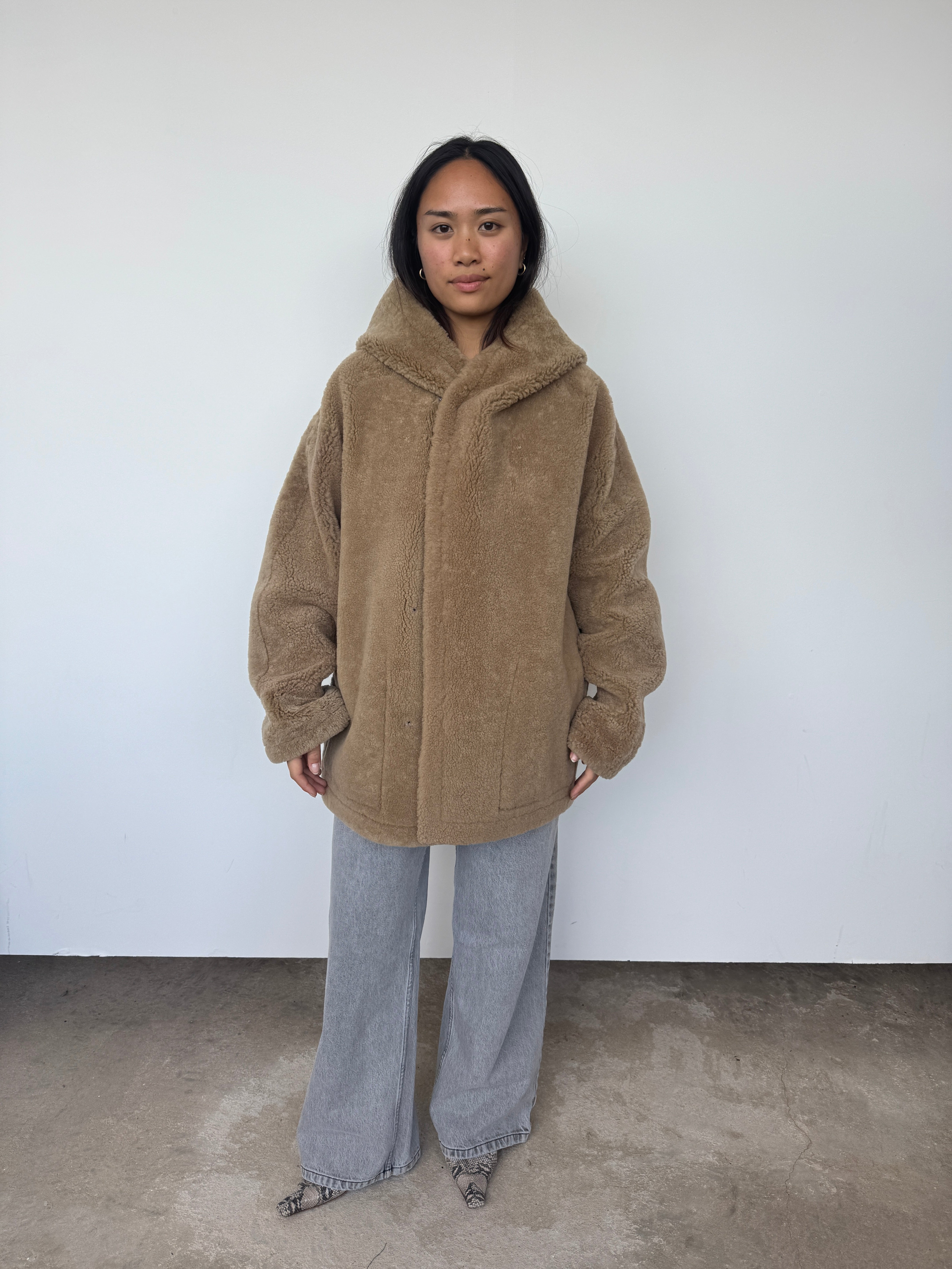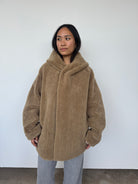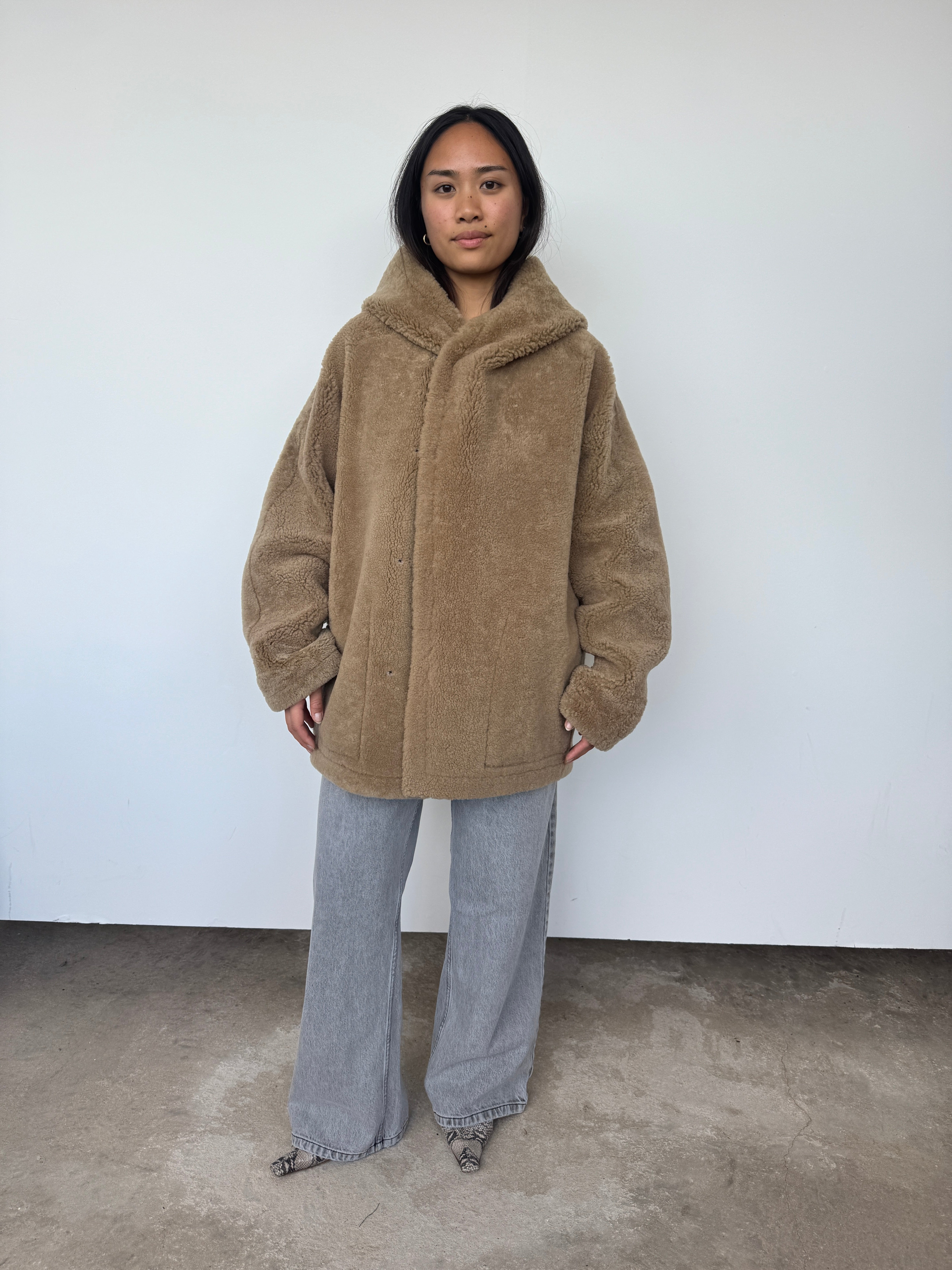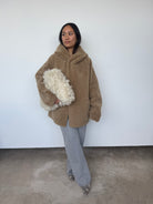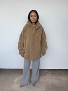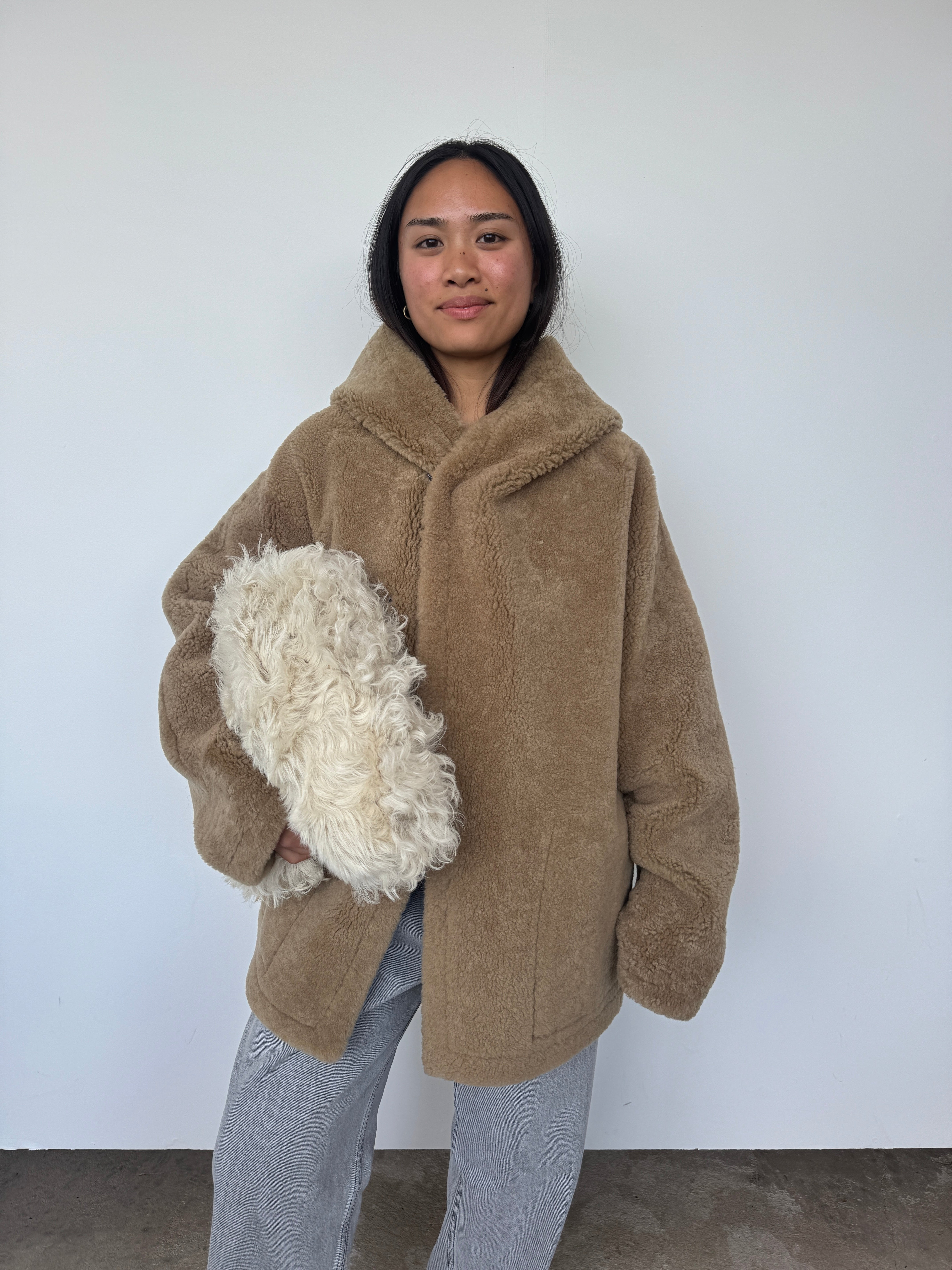 This oversized hooded jacket from Gushlow & Cole combines effortless style with conscious craftsmanship. Featuring a mid-length silhouette and practical patch pockets, it's designed for relaxed elegance. Made in the UK from responsible shearling. This piece is reversible. Please note: When worn with the wool side inside, the fit will feel slightly smaller, though we recommend taking your usual size.
