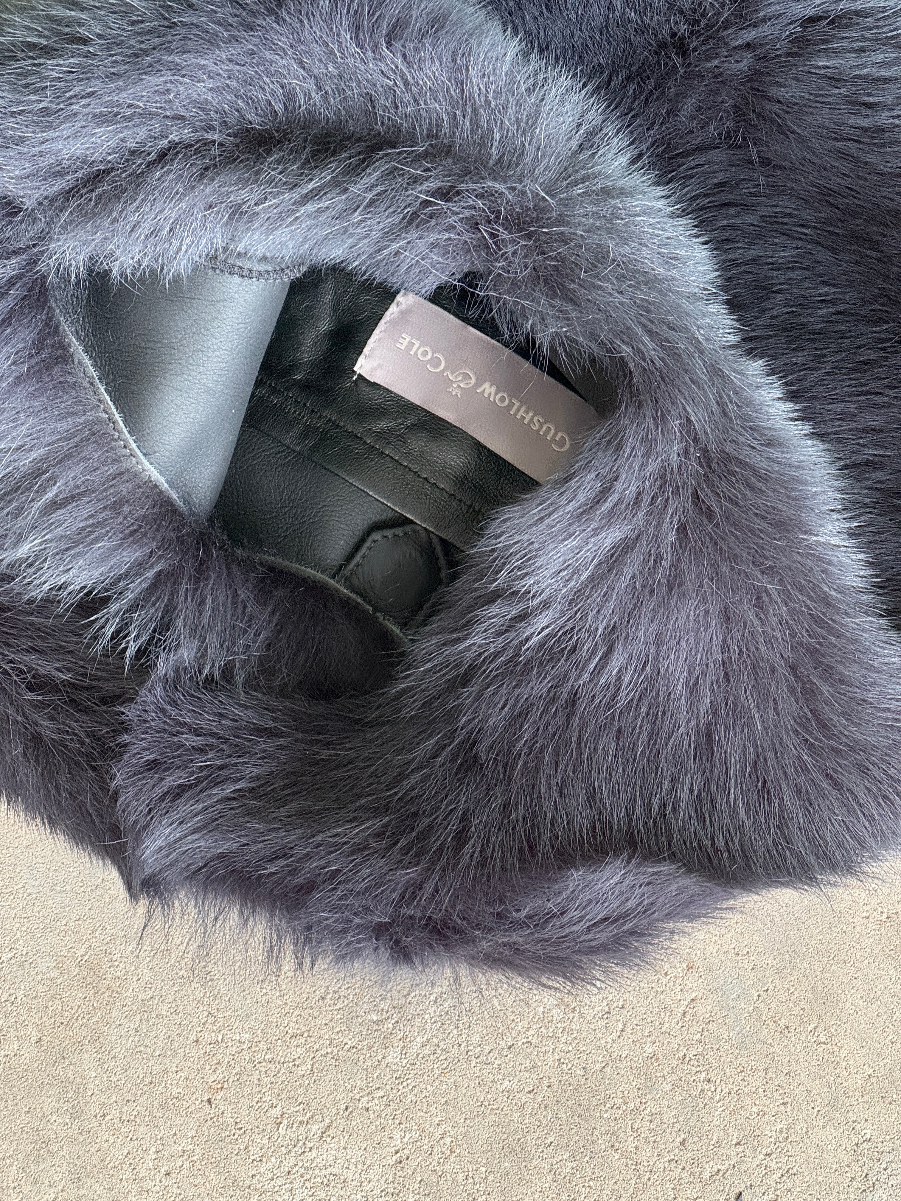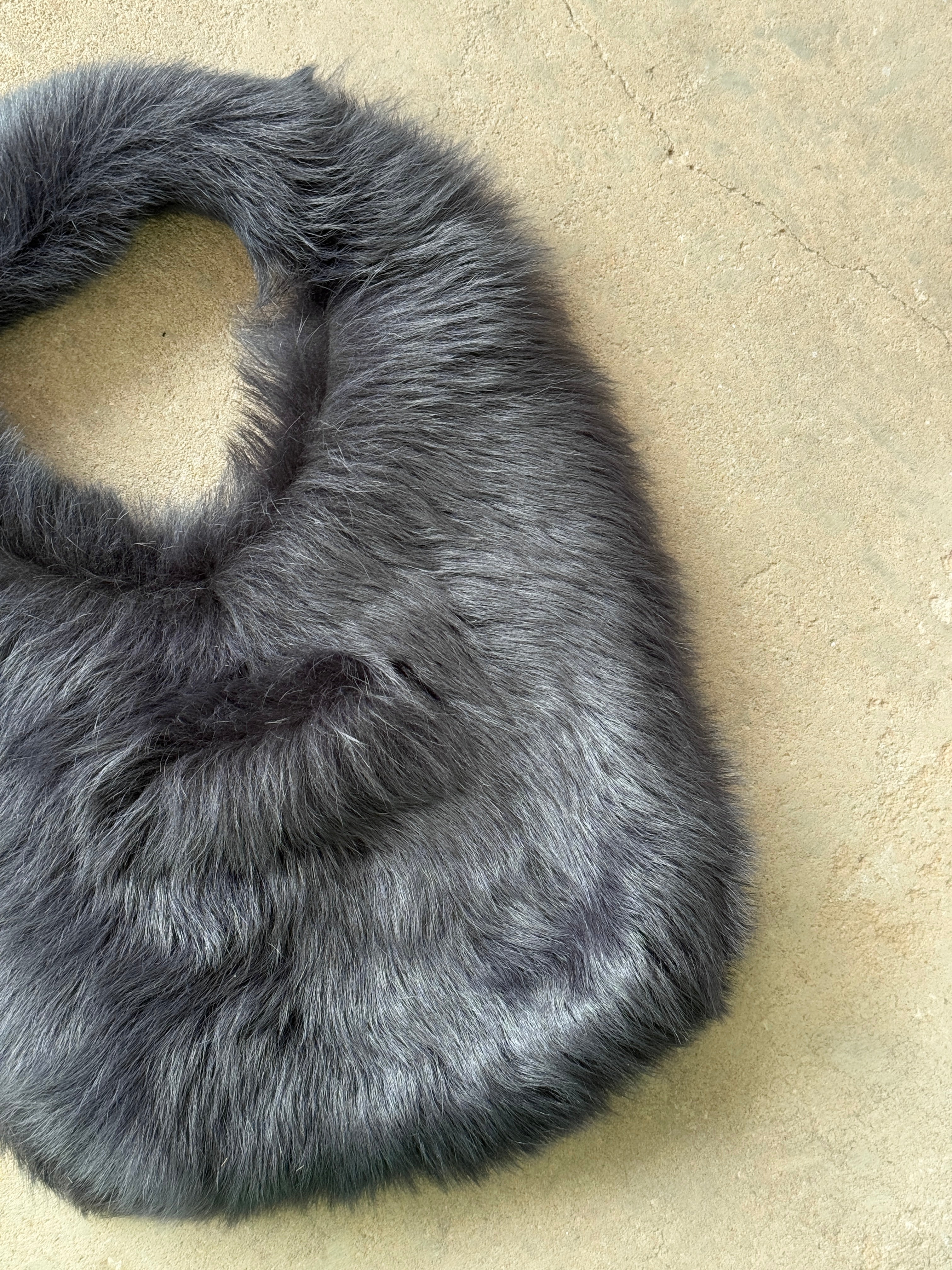 Gushlow & Cole Graphite Blue Shearling Slouch Bag