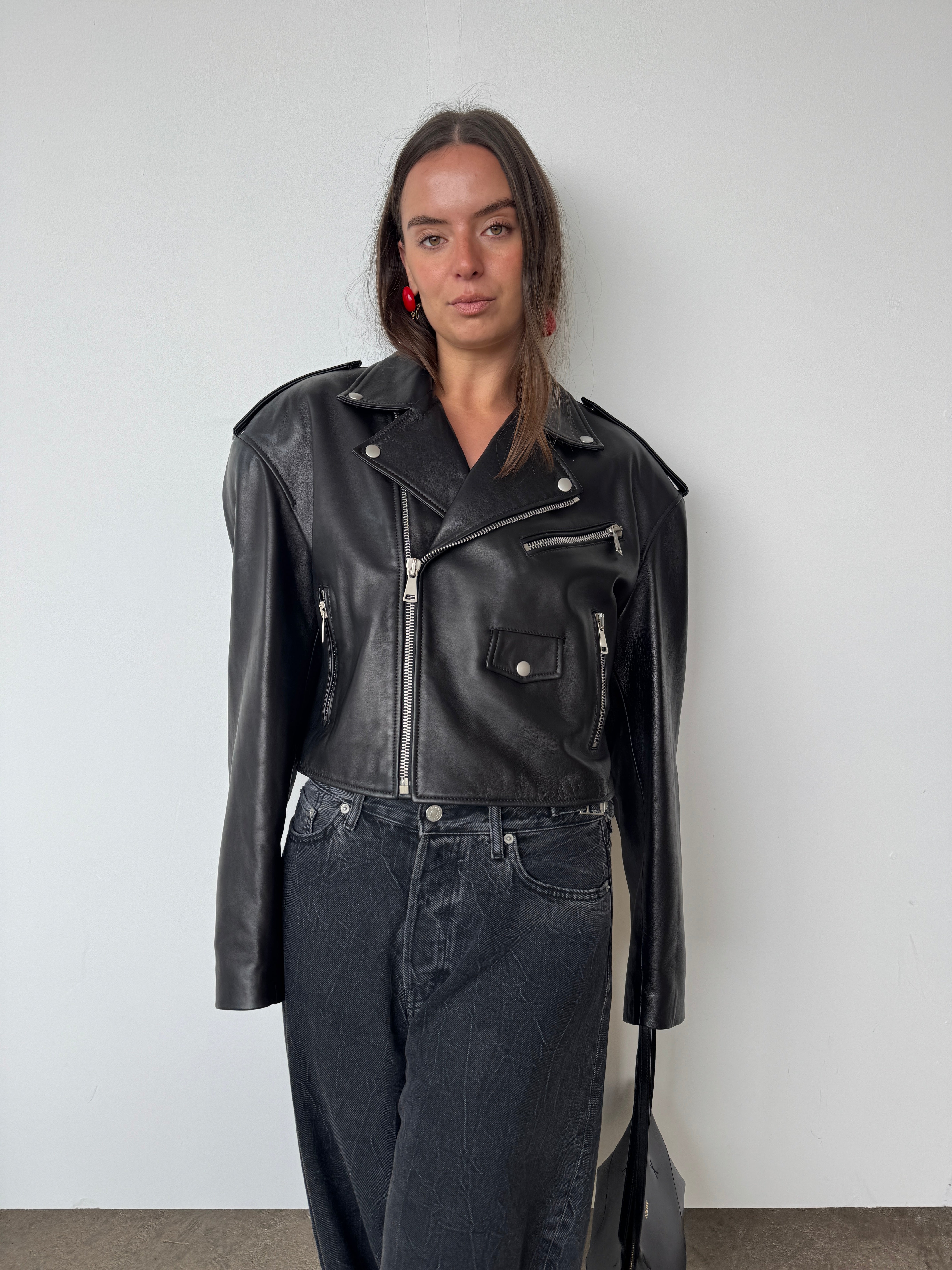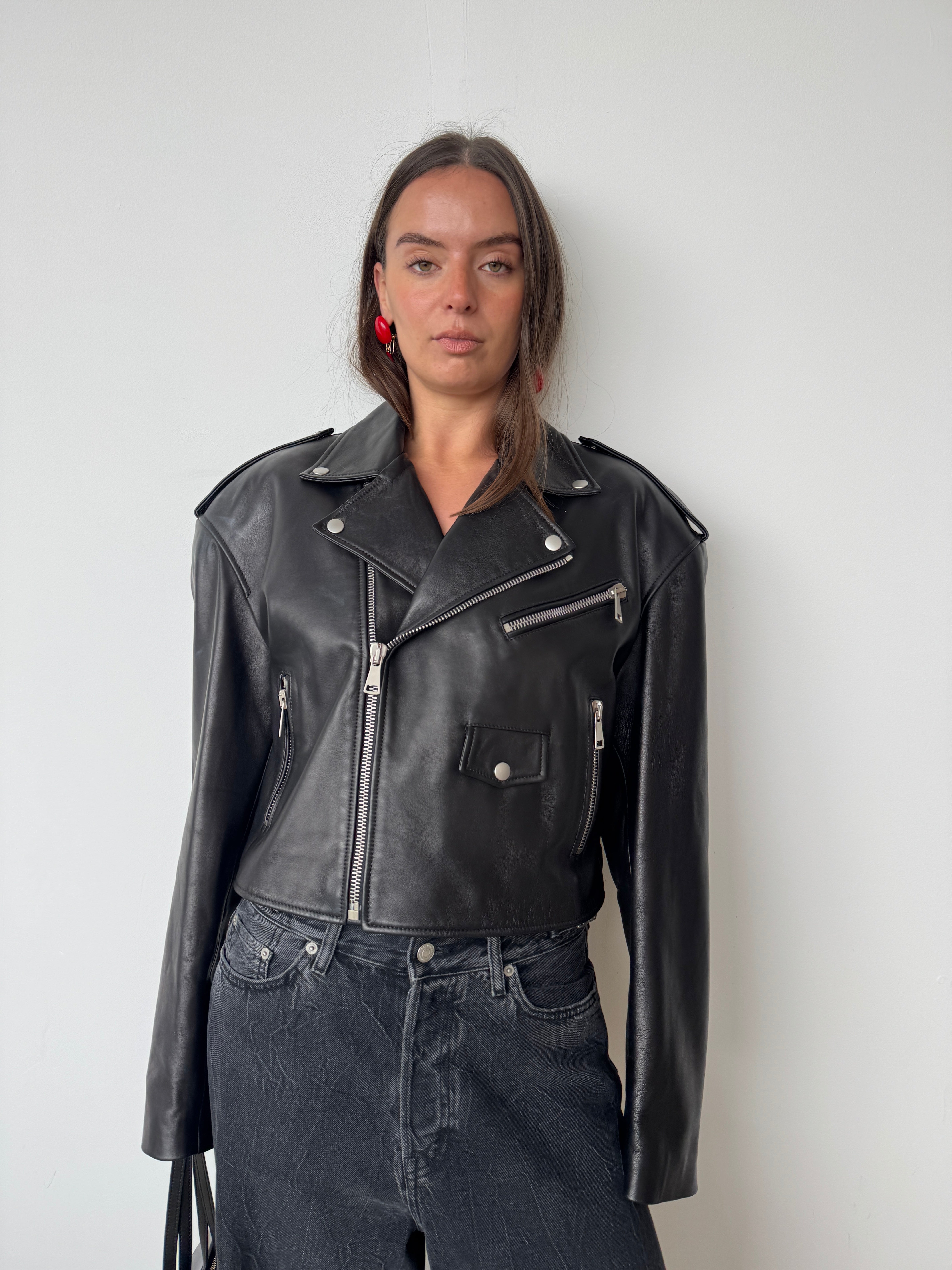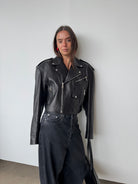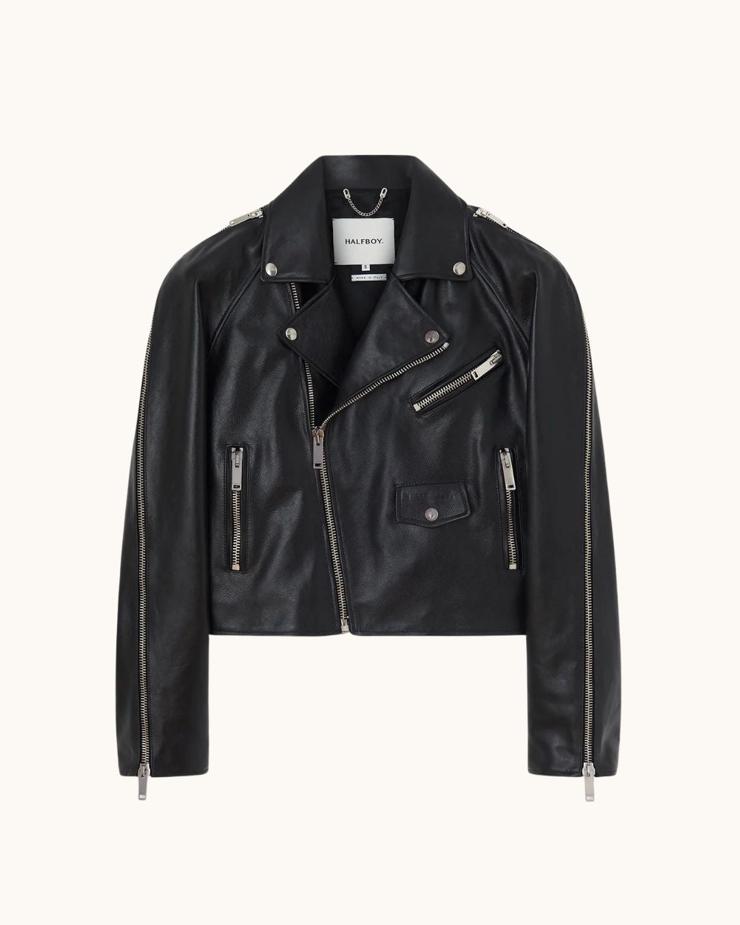 Halfboy Black 'Chiodo Crop' Leather Jacket | M