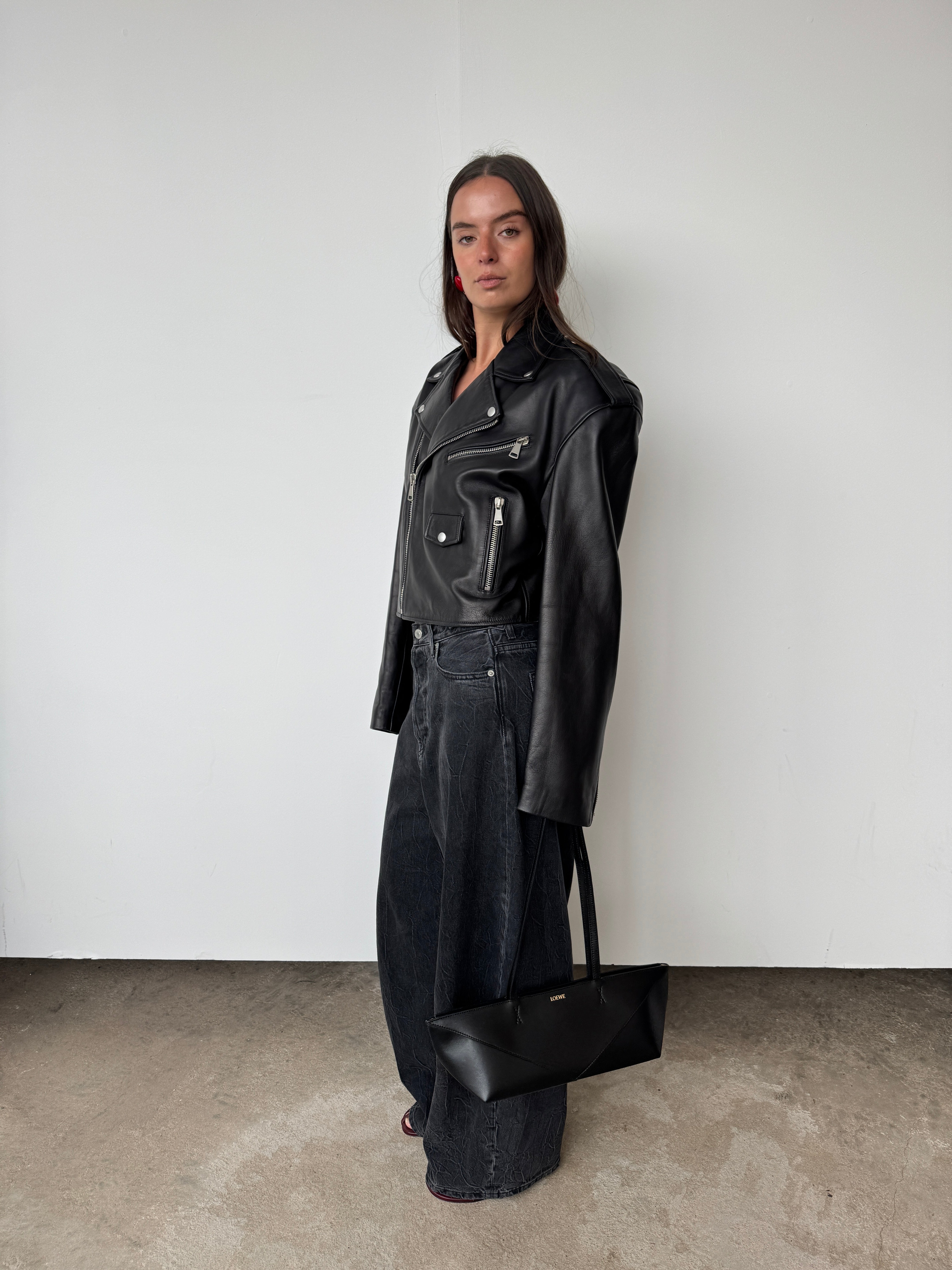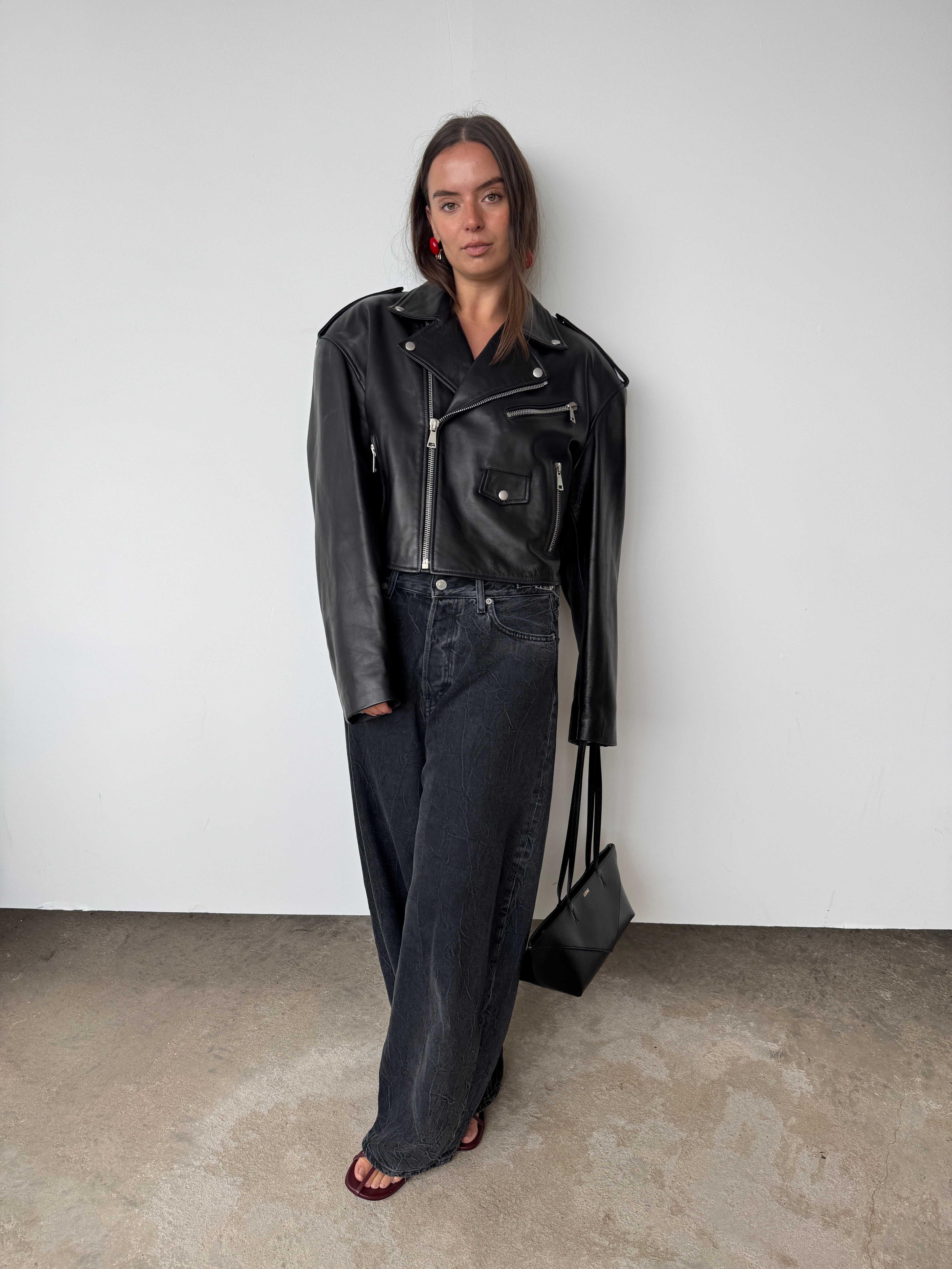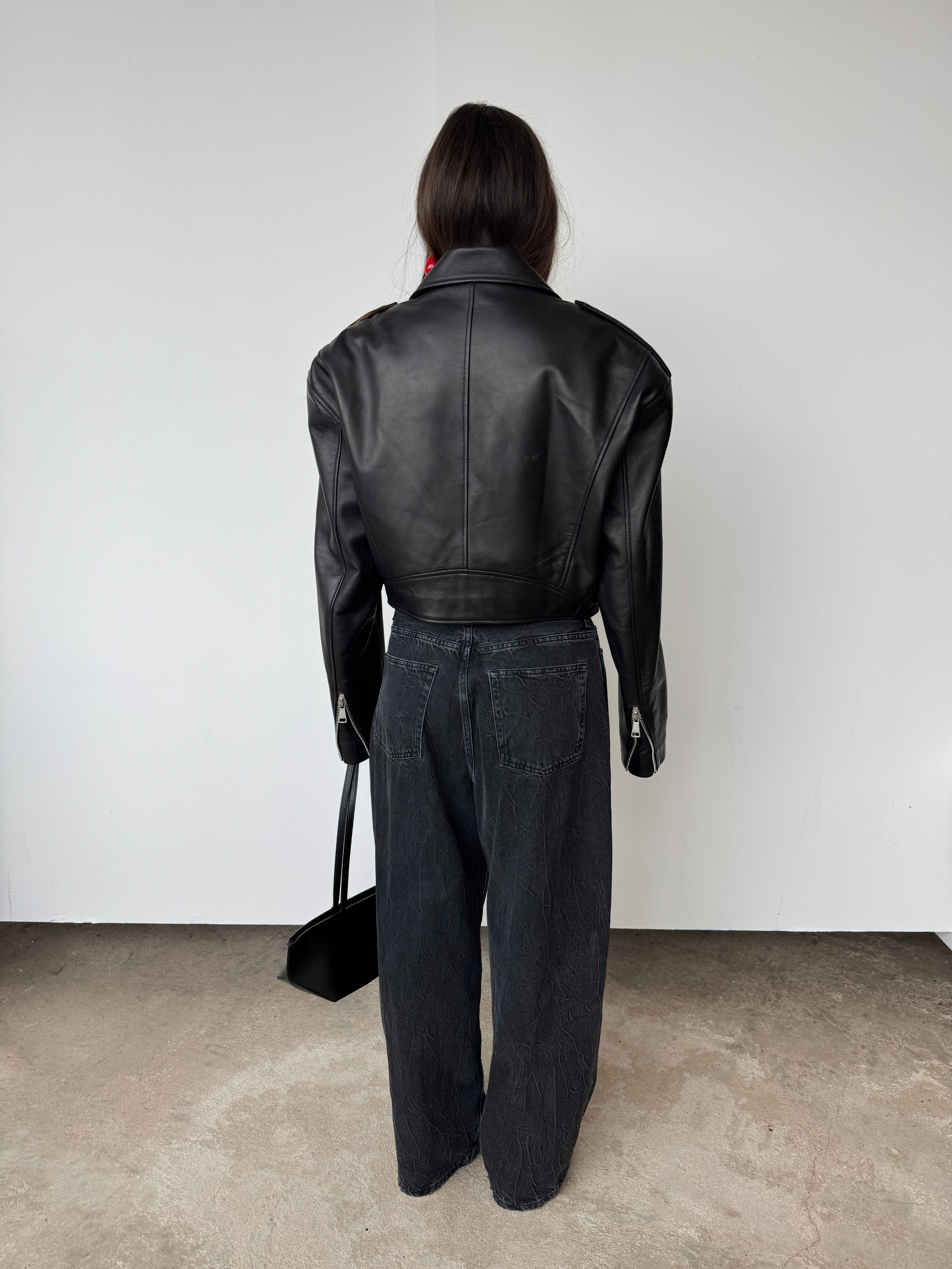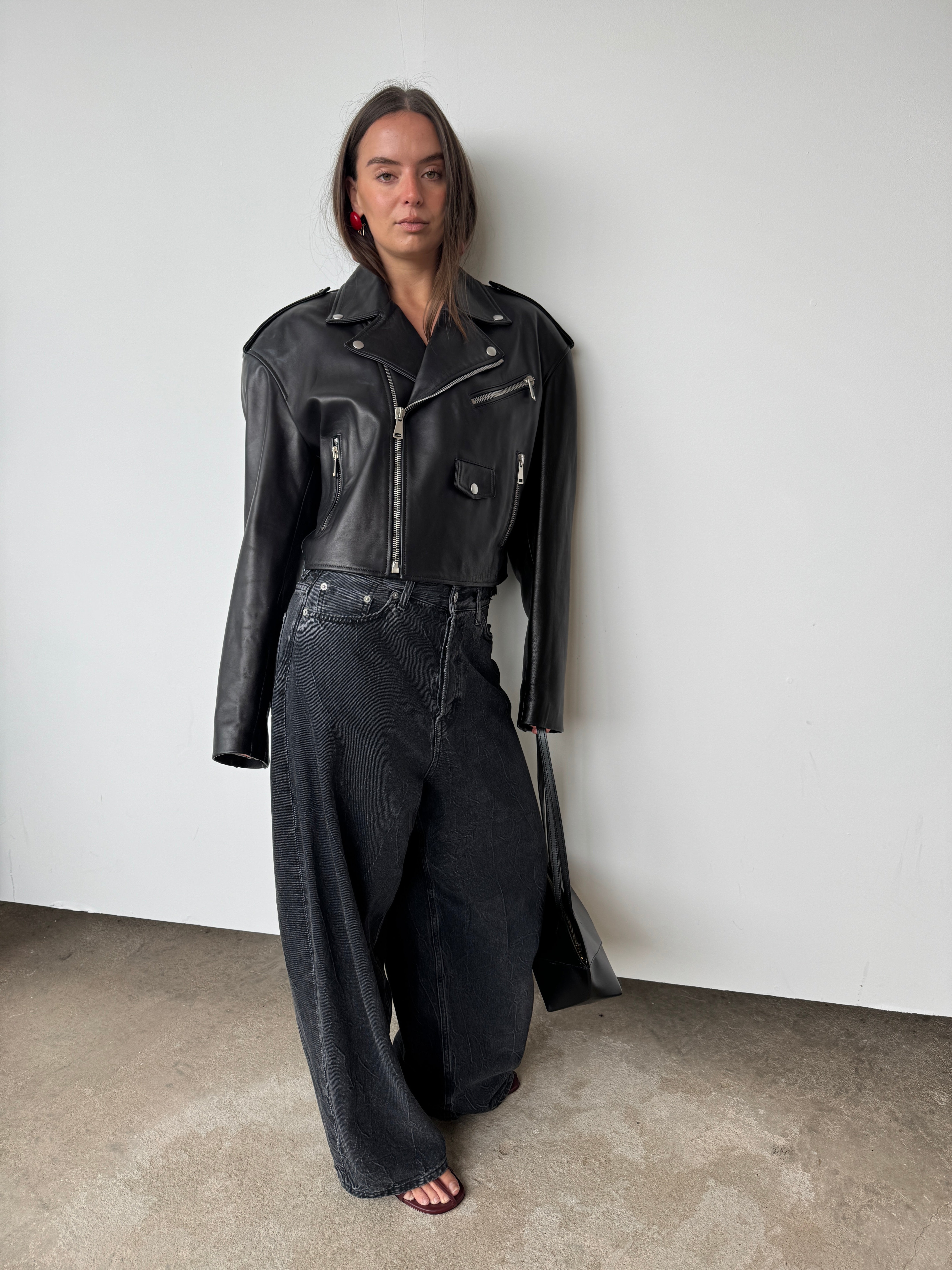 Halfboy Black 'Chiodo Crop' Leather Jacket | M
