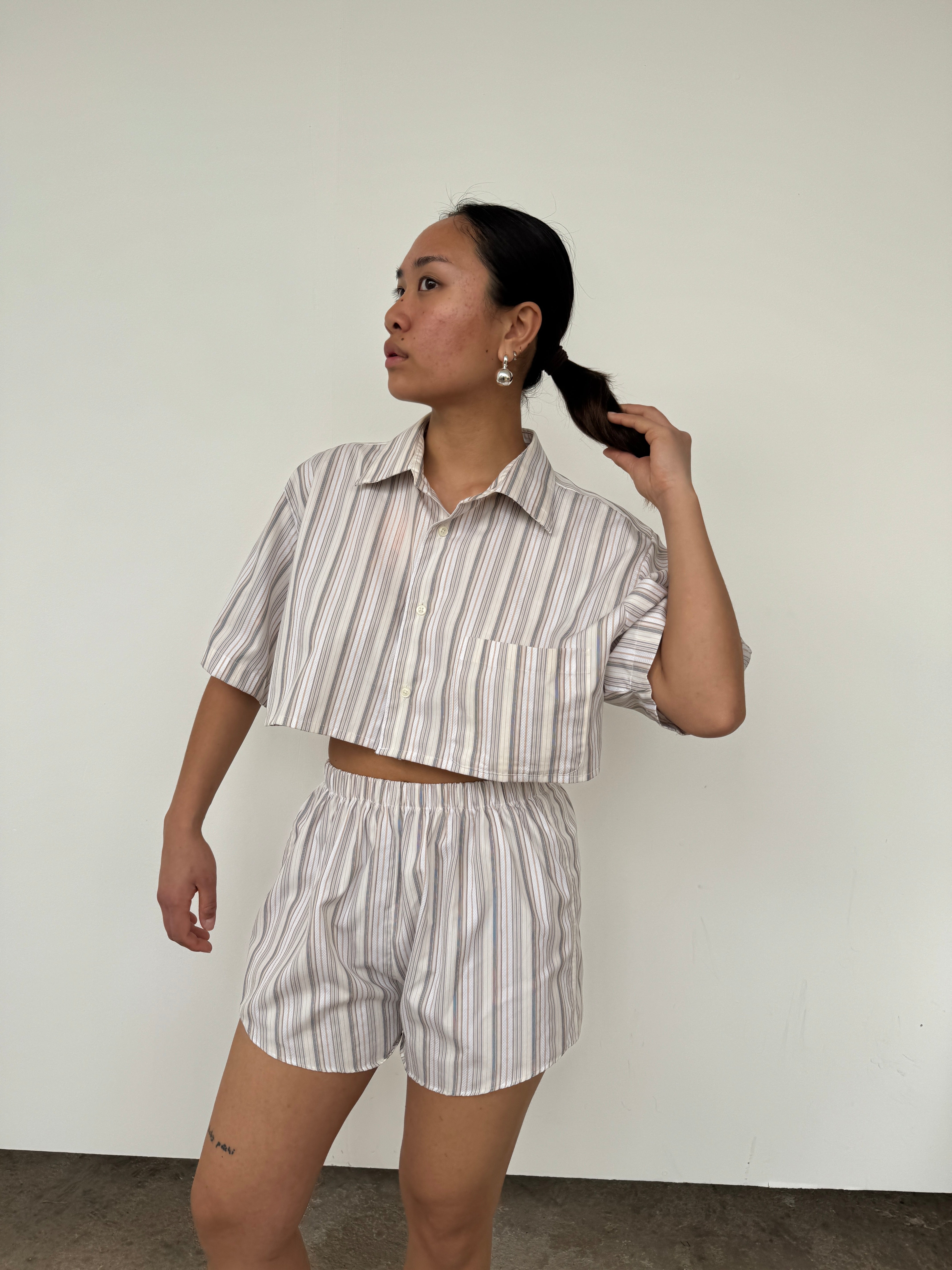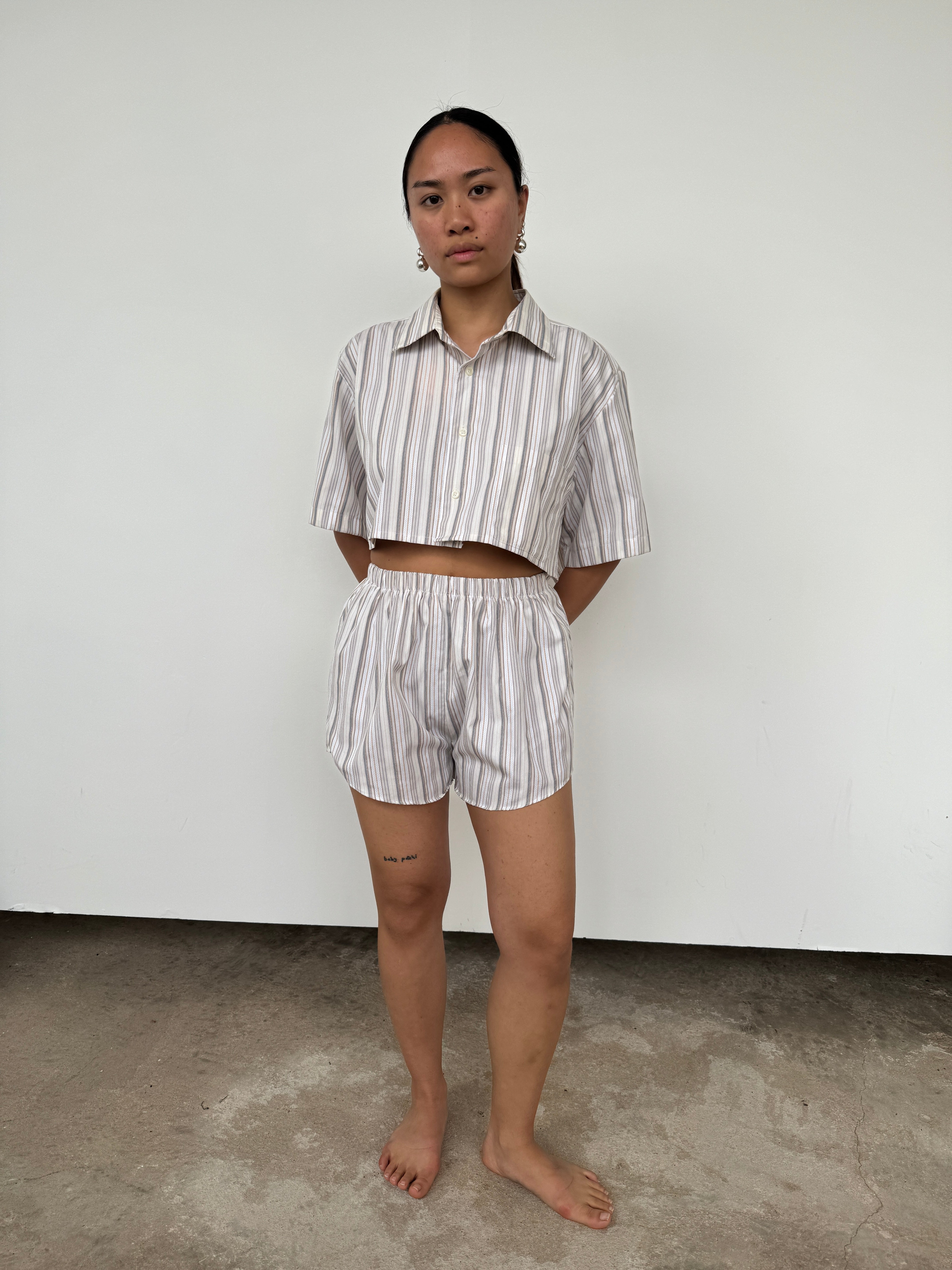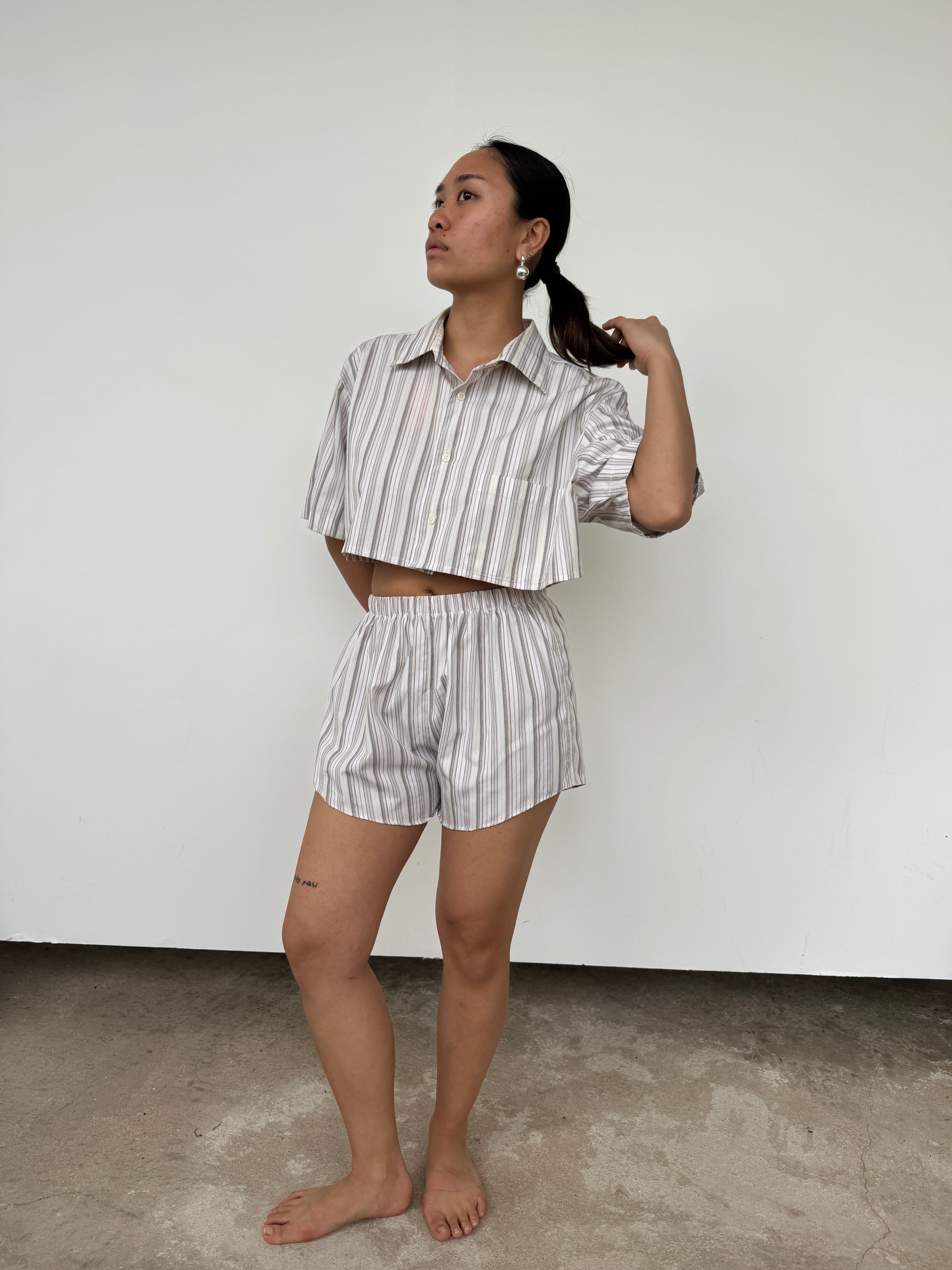 Havre Studio Beige Striped Cropped Shirt + Short Set | S