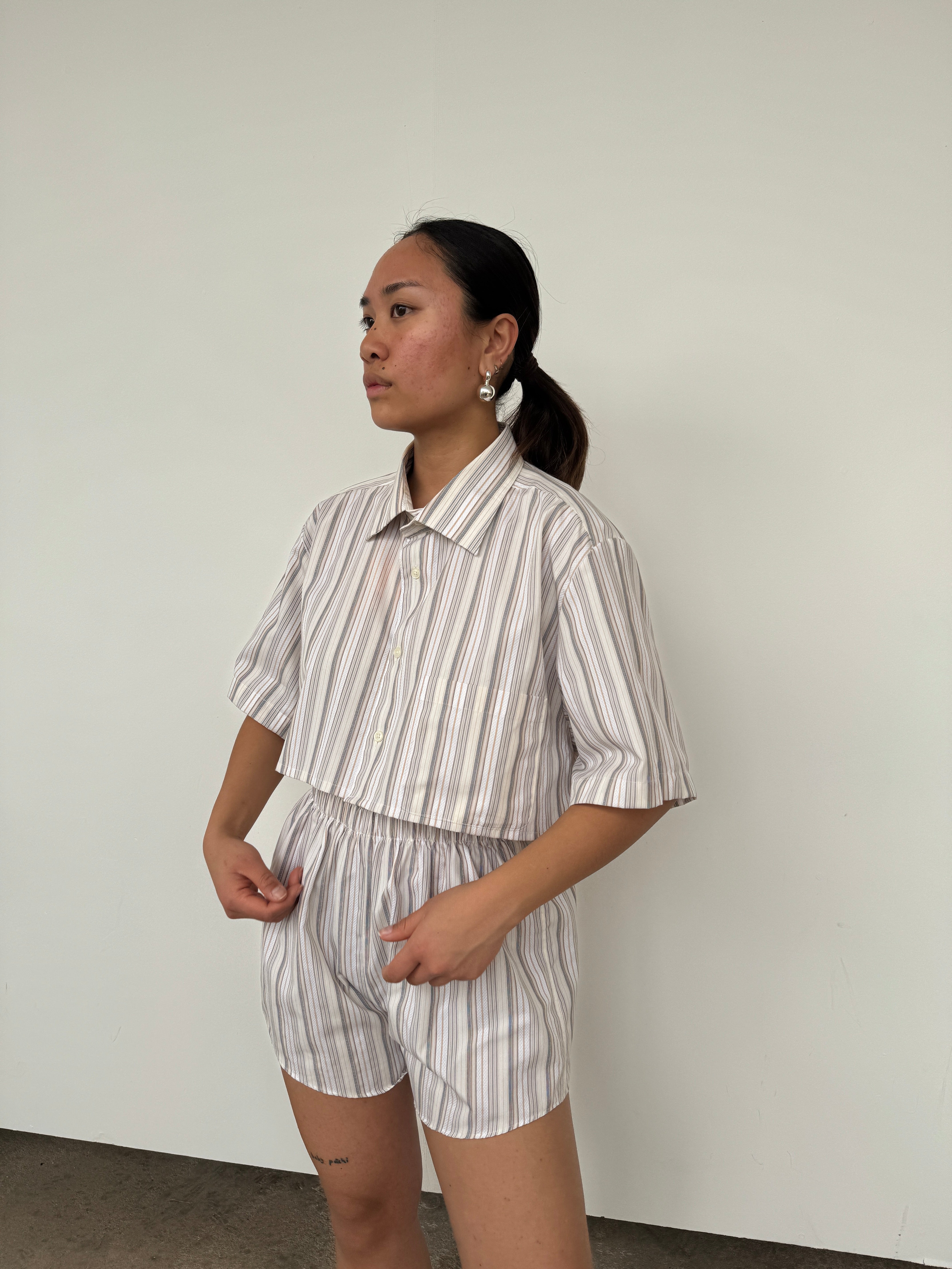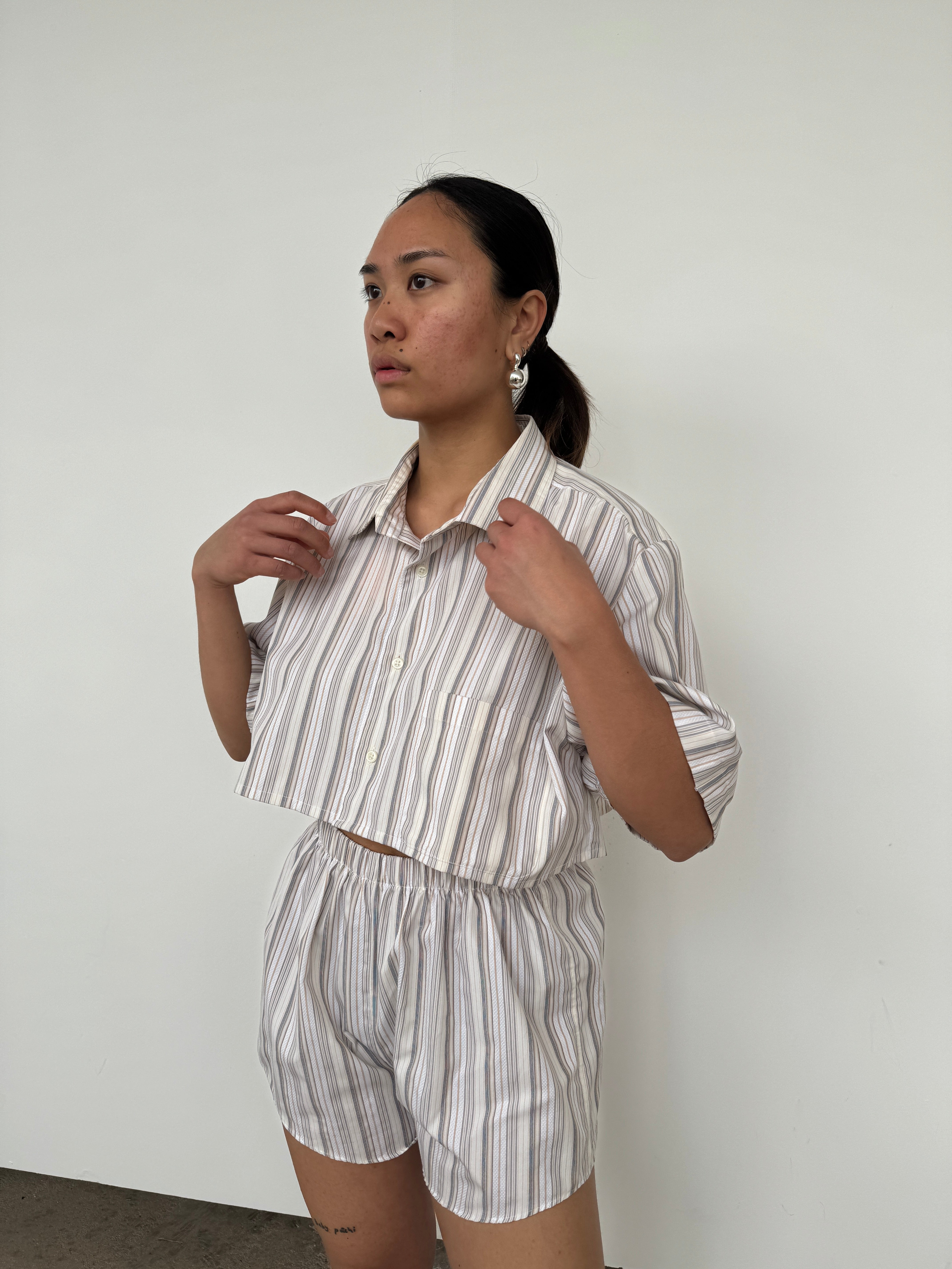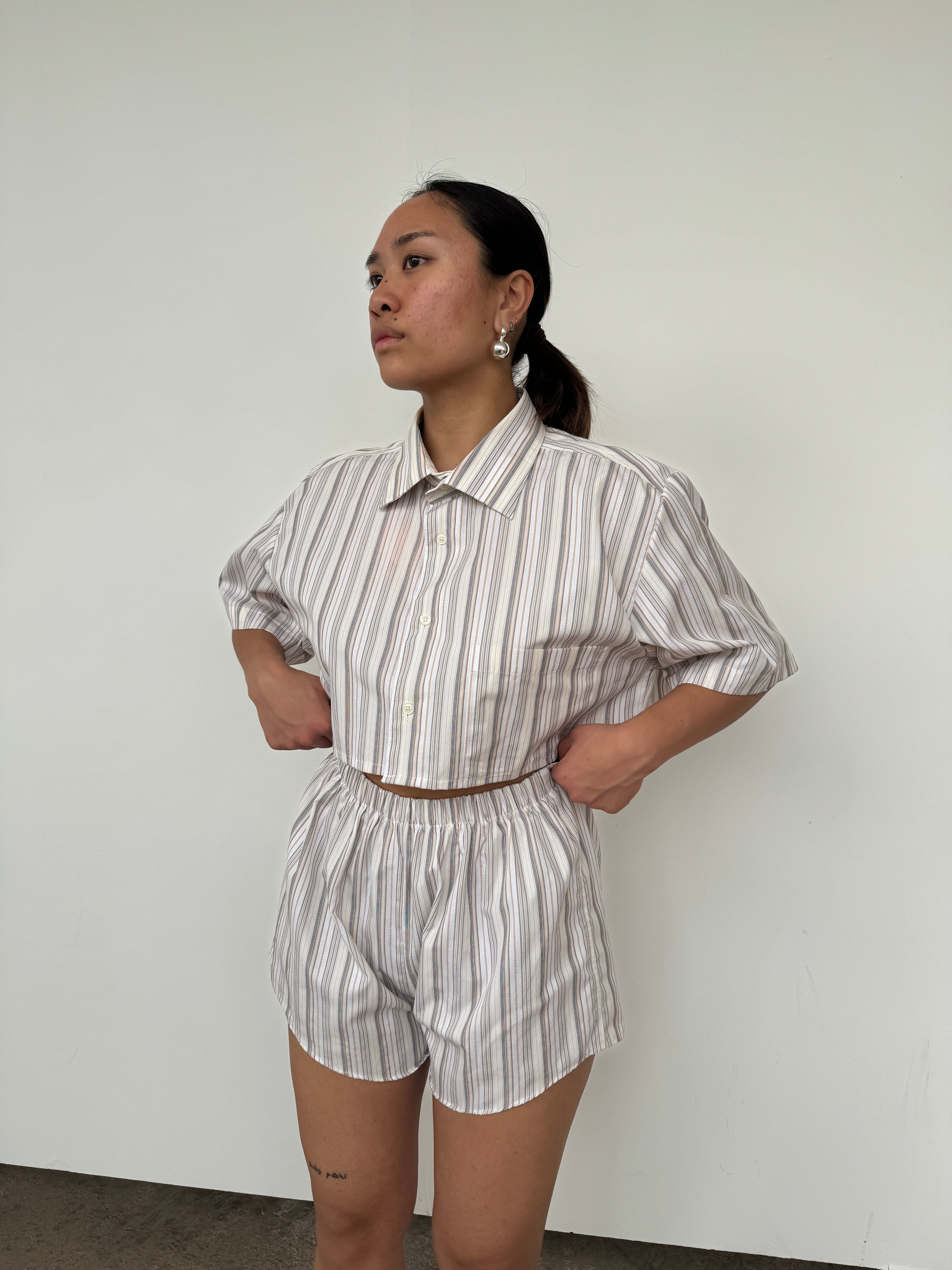 Havre Studio Beige Striped Cropped Shirt + Short Set | S