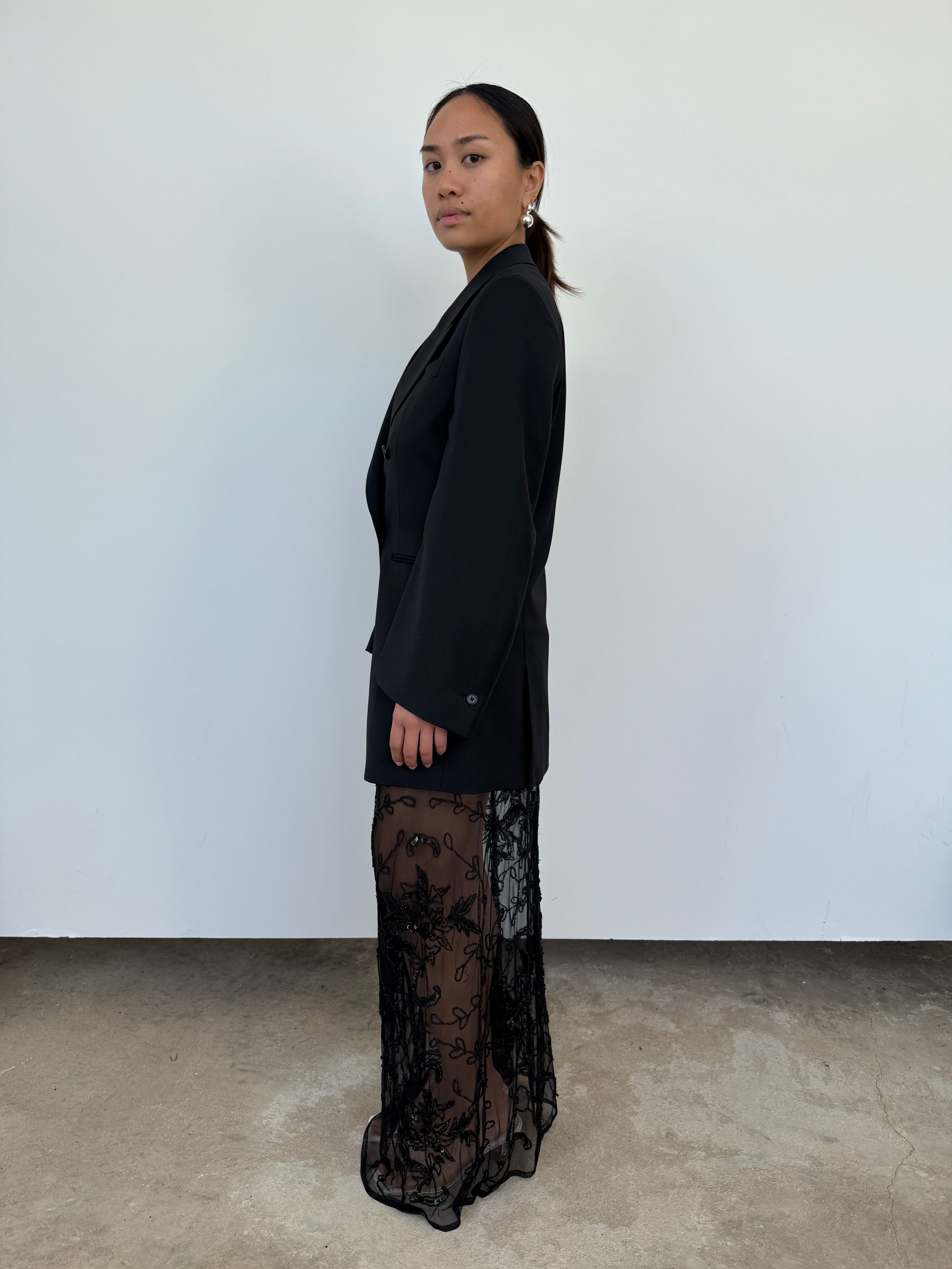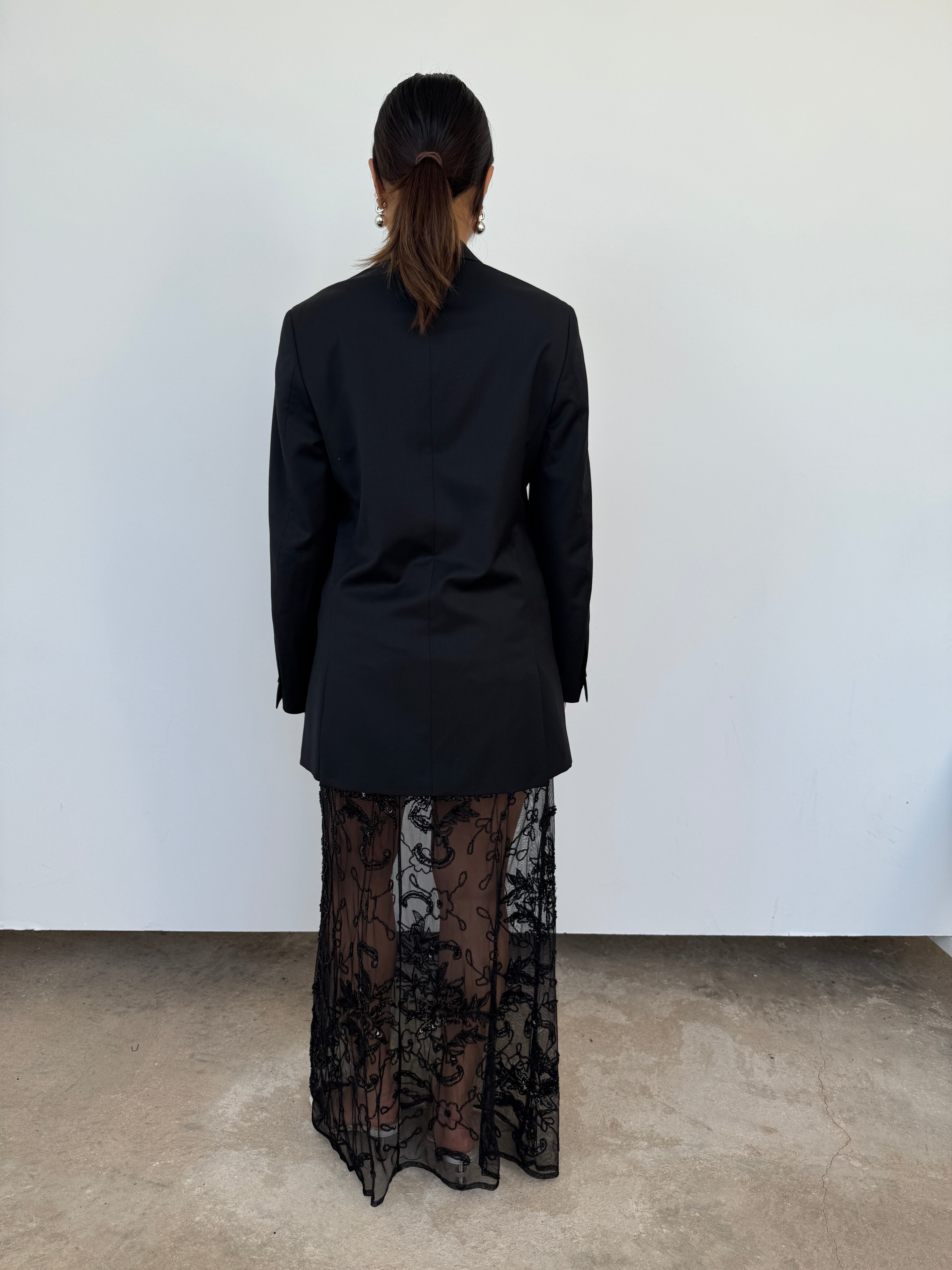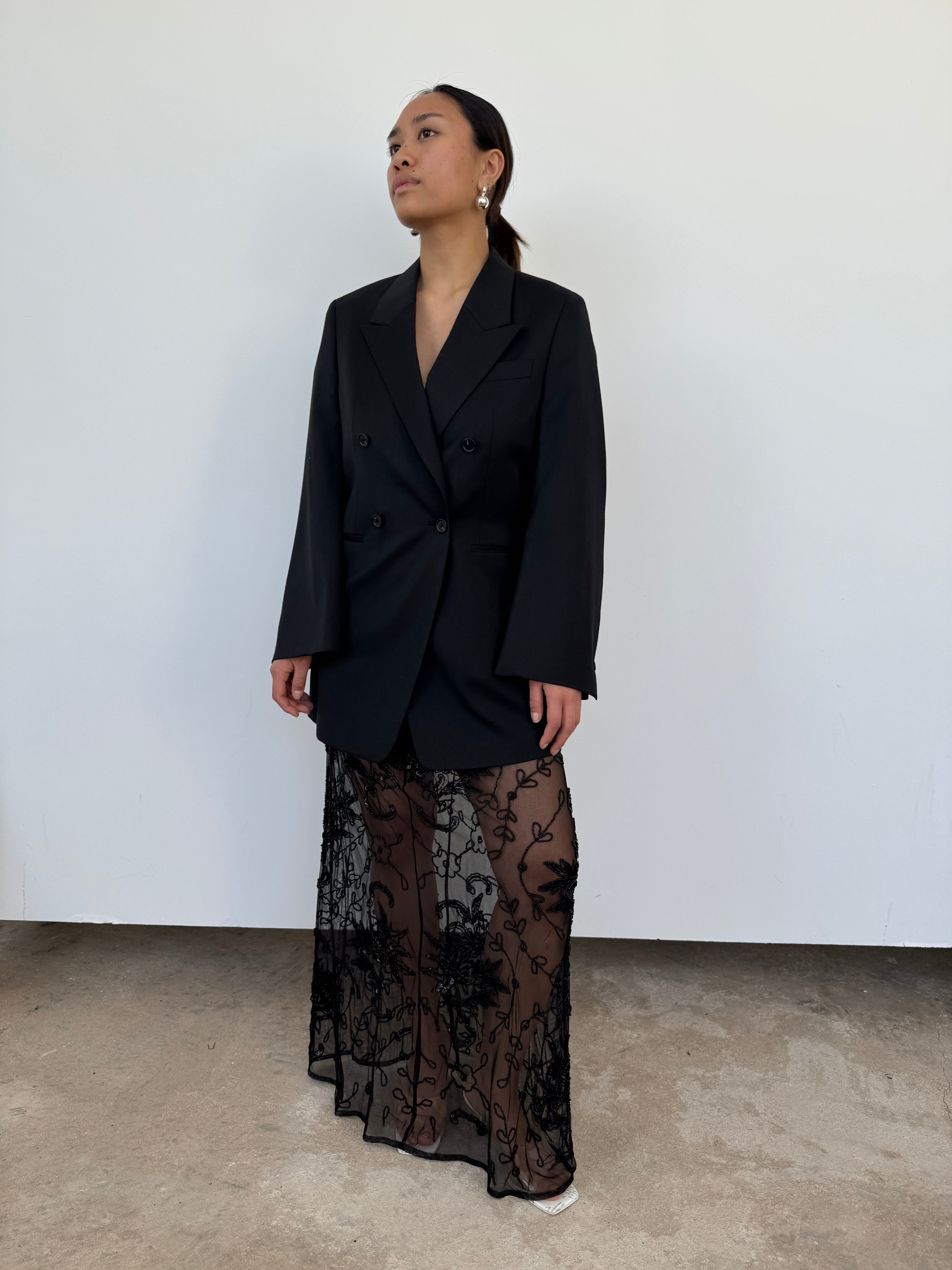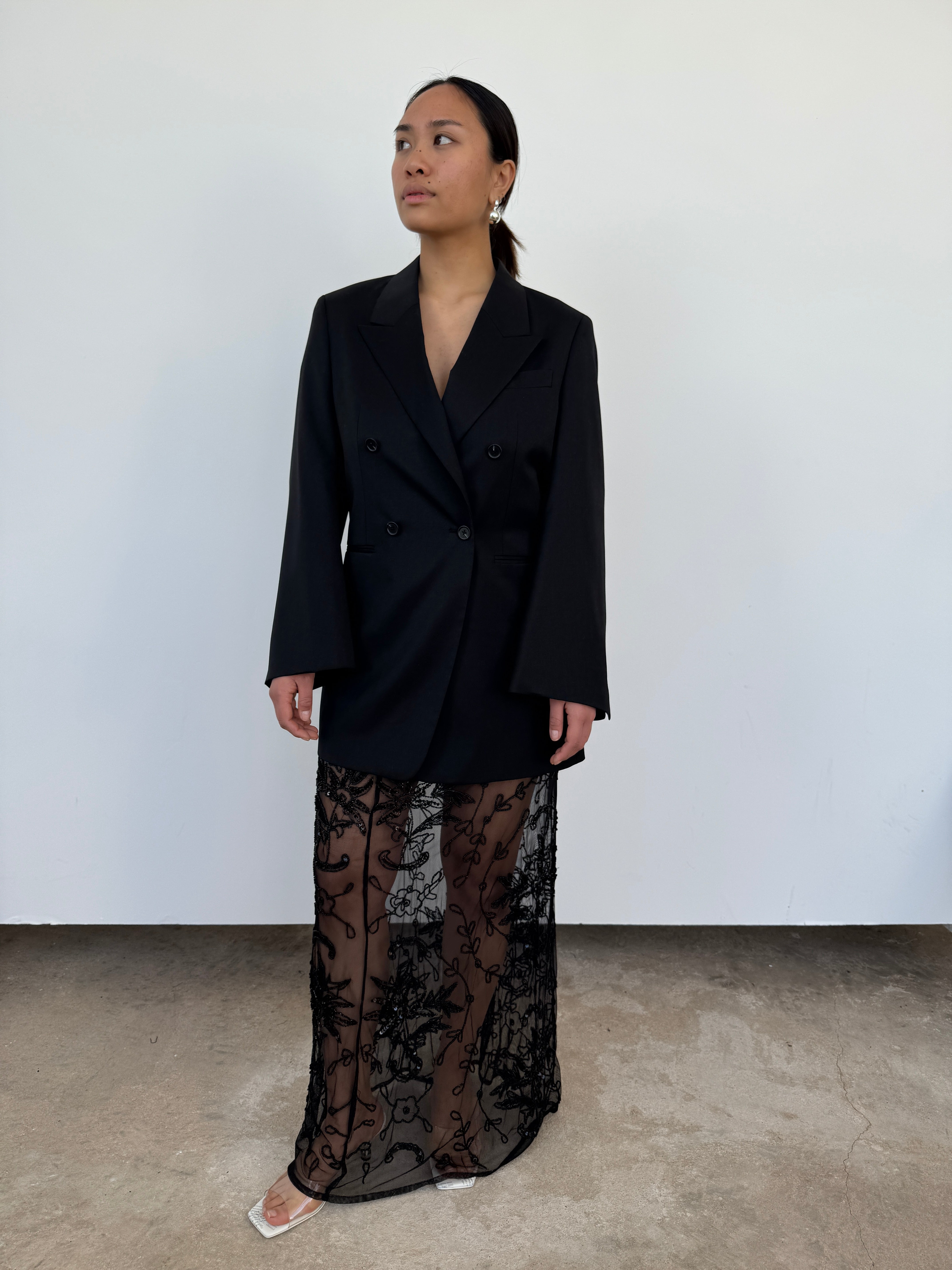 "The Annie blazer is a modern take on tailoring. Made from pure cotton with a full interior lining, it has classic lapels, a double-breasted front, flap pockets, a chest pocket and sculptural sleeves."