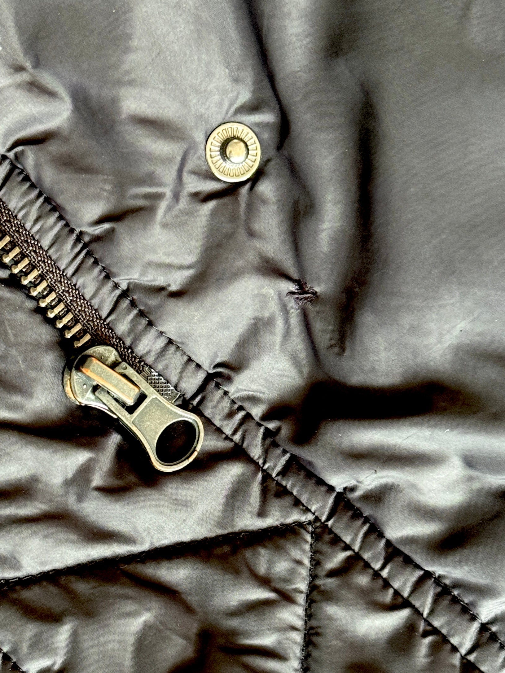 Good condition - small hole to the front bottom (not visible when coat is closed). some general wear to hardware and some light pulls