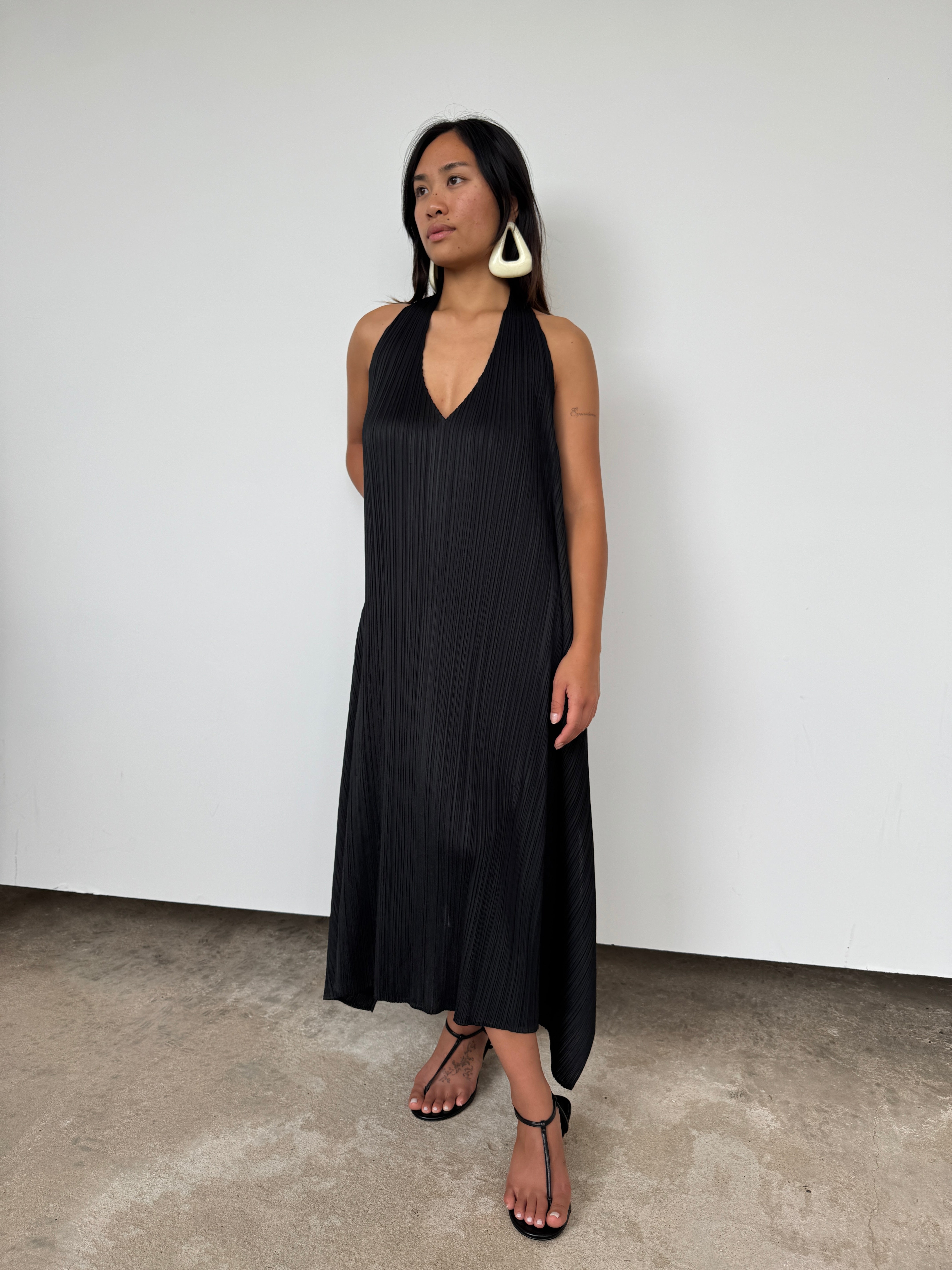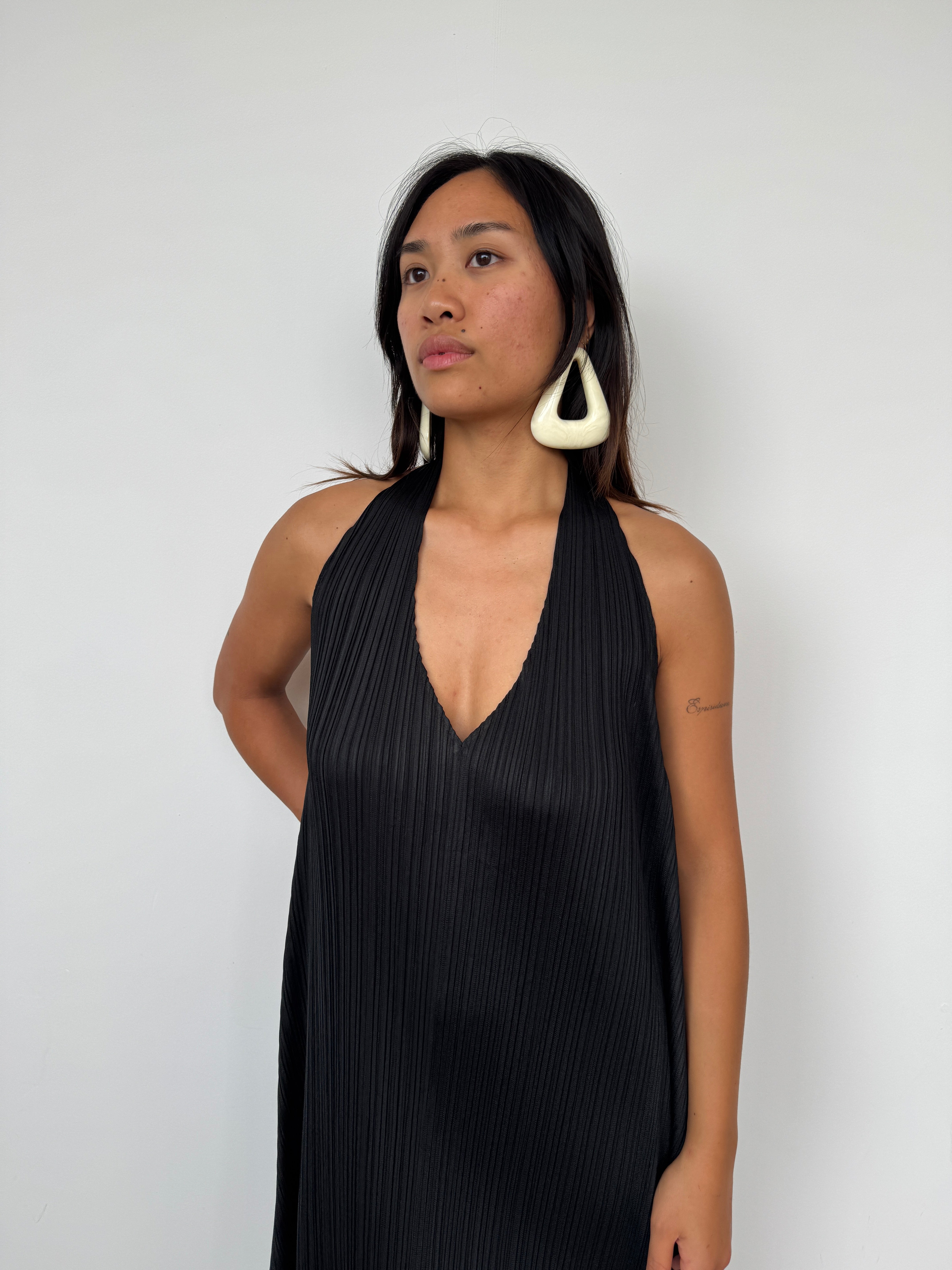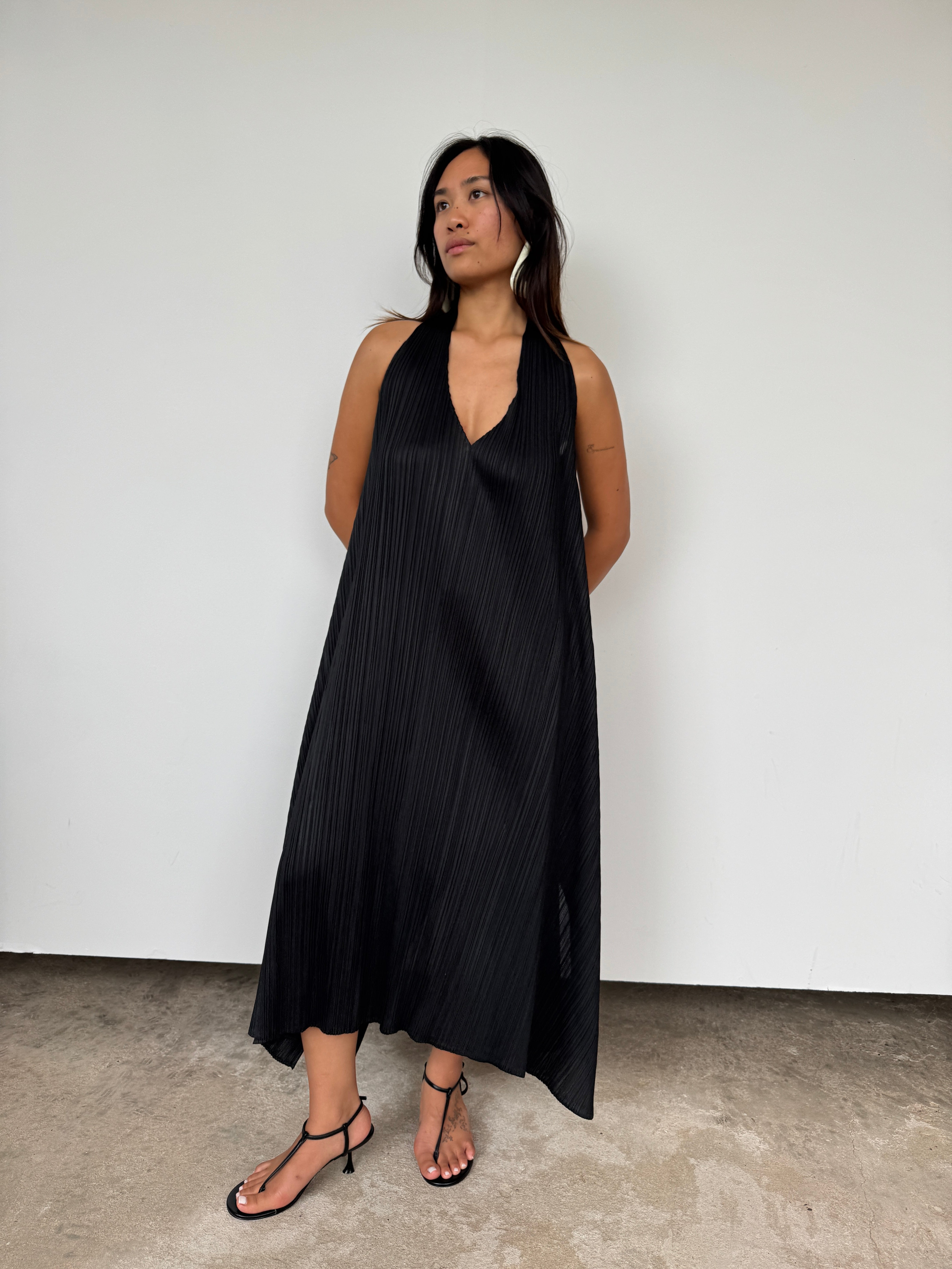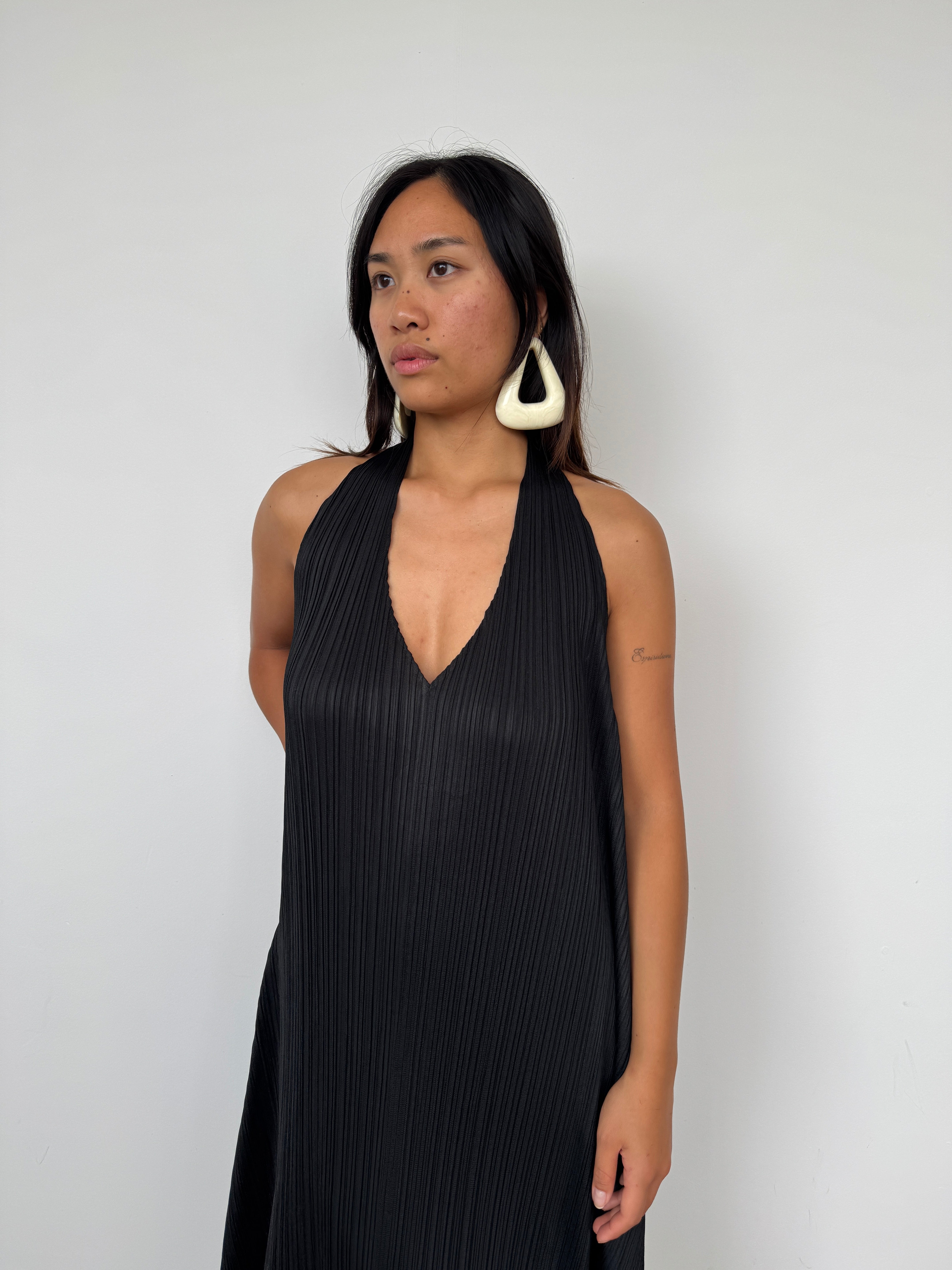 Issey Miyake Pleats Please Black 'Echo' Halterneck Wrap Dress | UK10-14