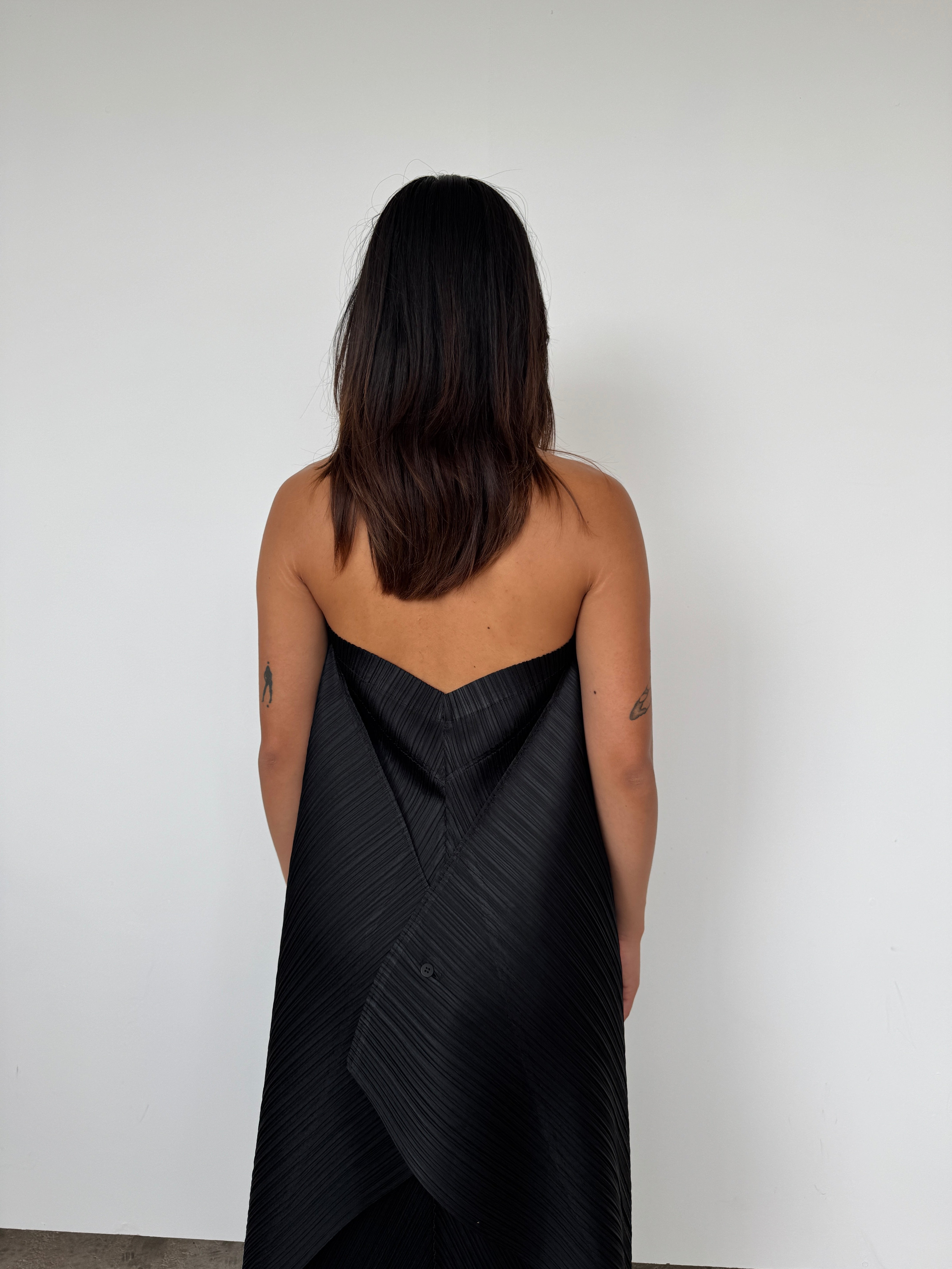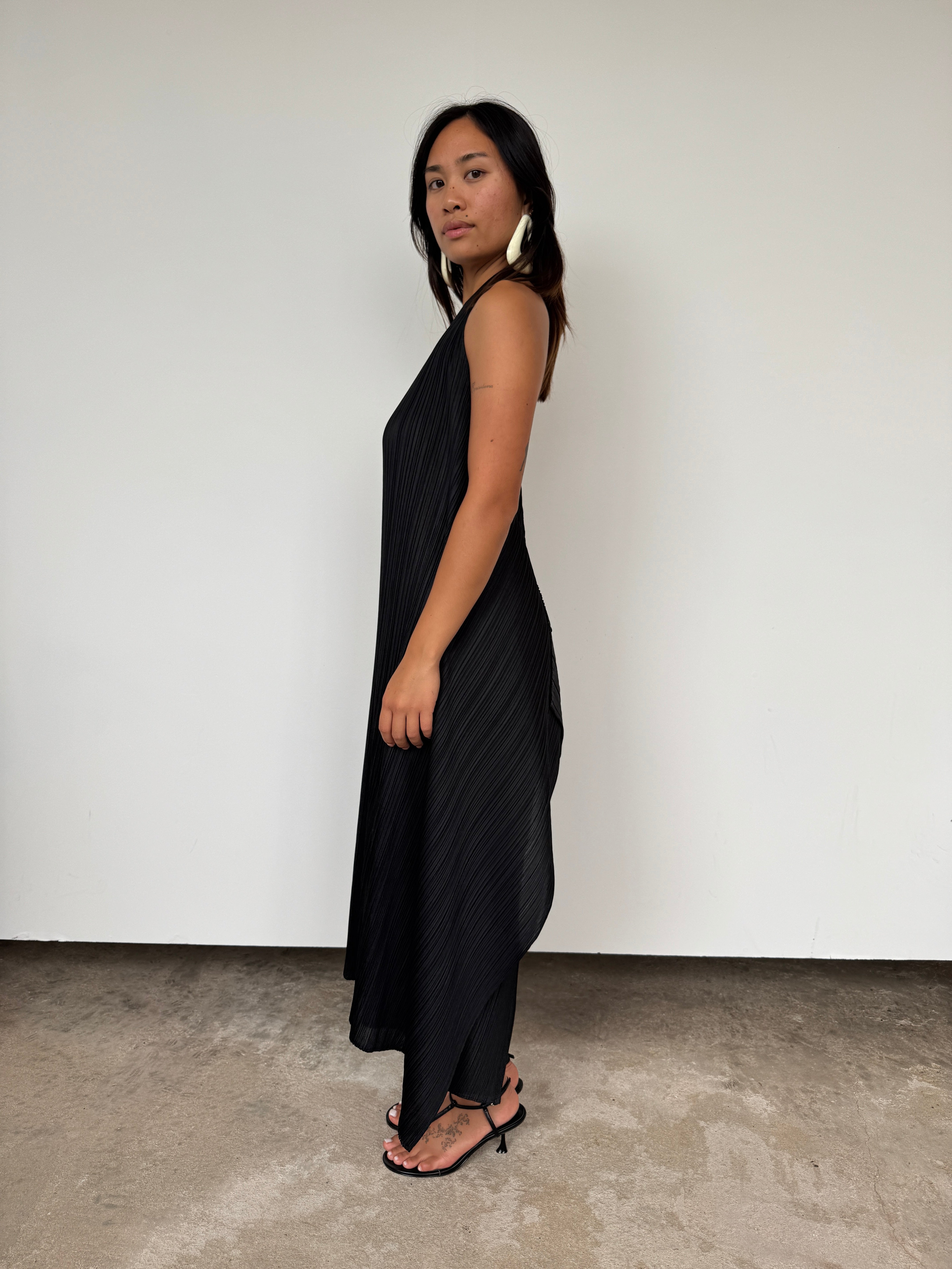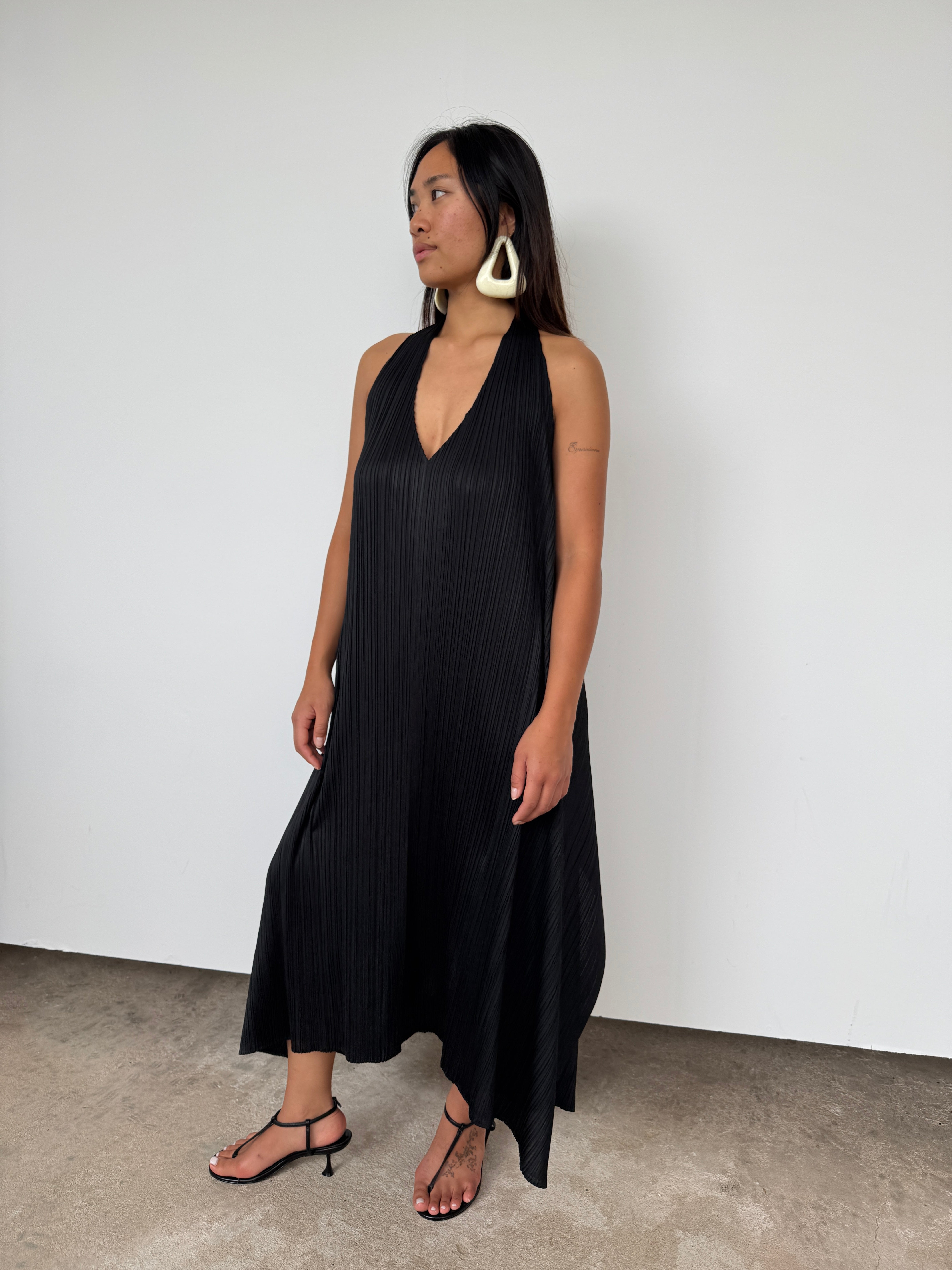Issey Miyake Pleats Please Black 'Echo' Halterneck Wrap Dress | UK10-14